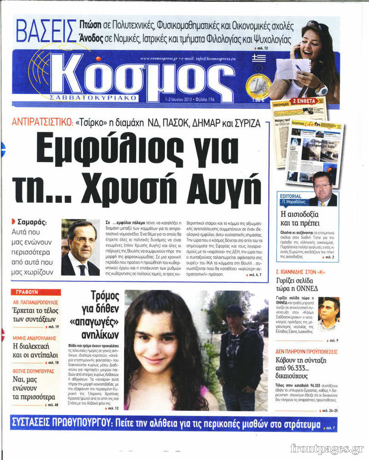 Οι πολιτικές εφημερίδες Enikos Newsroom 08:54, Σάββατο 01 Ιουνίου 2013 Media Οι πολιτικές εφημερίδες Διαβάστε τα πρωτοσέλιδα των πολιτικών εφημερίδων: ΕΦΗΜΕΡΙΔΕΣ ΠΟΛΙΤΙΚΕΣ ΕΦΗΜΕΡΙΔΕΣ ΠΡΩΤΟΣΕΛΙΔΑ Μοιράσου το: σχολίασε κι εσύ (0 σχόλια) Ακολουθήστε το enikos.gr στο Google News και μάθετε πρώτοι όλες τις ειδήσεις Δείτε όλες τις τελευταίες ειδήσεις από την Ελλάδα και τον Κόσμο στο enikos.gr Ειδήσεις Ροή Ειδήσεων 4 ώρες πριν Πώς δρούσε το κύκλωμα που διακινούσε ναρκωτικά σε σχολεία – Υπέβαλαν σε βασανιστήρια όσους δεν τηρούσαν τους «κανόνες πειθαρχίας» 5 ώρες πριν Αγρότες: Γιορτές στα μπλόκα με ανοιχτά διόδια – Δικογραφία στα Ιωάννινα για το σήκωμα των μπαρών 4 ώρες πριν Ζελένσκι: Οι Αμερικανοί πρότειναν συνάντηση Ουκρανίας, ΗΠΑ, Ρωσίας στο Μαϊάμι 3 ώρες πριν Τραμπ: Πώς περνάει τις γιορτές των Χριστουγέννων – Τα δώρα που κάνει στα εγγόνια του 3 ώρες πριν Μικαέλα Μπέντχαους: Ο πρώτος άνθρωπος σε αναπηρικό αμαξίδιο που ταξίδεψε στο διάστημα – ΒΙΝΤΕΟ 5 ώρες πριν Η τύχη χαμογελά σε 3 ζώδια έως τις 28 Δεκεμβρίου – «Προσέξτε τις επιλογές σας και η επιμονή σας θα ανταμειφθεί» 6 ώρες πριν Μία ανεκμετάλλευτη πηγή θα μπορούσε να προσφέρει ανεξάντλητη ενέργεια – Οι επιστήμονες ίσως γνωρίζουν πώς να την ξεκλειδώσουν 2 ώρες πριν Μήπως οι γιορτές σας δεν είναι τόσο τέλειες; 7 χριστουγεννιάτικες συνήθειες που μαρτυρούν ότι μια οικογένεια είναι δυσλειτουργική 12 ώρες πριν Enerwave: Το νέο «ρεύμα» στη λιανική ενέργειας που αλλάζει την εμπειρία του καταναλωτή 59 δευτερόλεπτα πριν Ζελένσκι: Μόνο οι ΗΠΑ μπορούν να πιέσουν τη Ρωσία να βάλει τέλος στον πόλεμο 11 λεπτά πριν Αριθμολογία: Ο αριθμός του φύλακα αγγέλου σας, με βάση τον μήνα γέννησής σας – «Έτσι σας στέλνει σημάδια το σύμπαν» 20 λεπτά πριν Φοινικούντα: Προφυλακιστέος ο 30χρονος για συνέργεια στη διπλή δολοφονία – Και άλλα πρόσωπα στο «μικροσκόπιο» 31 λεπτά πριν Super League: Ο Σιαμπάνης «κατέβασε ρολά» και ο Βόλος νίκησε 1-0 τον Παναιτωλικό 40 λεπτά πριν Αυτή την Κυριακή με τη Realnews: Instyle, μαζί Drive και Realnews Geopolitics ENIKOS NETWORK Οι γυναίκες αποκαλύπτουν το πιο ελκυστικό πράγμα που μπορεί να κάνει ένας άνδρας Ομορφιά και αντιγήρανση: Ειδικοί μιλούν για συσκευές περιποίησης του δέρματος Πορτοκαλί τιμολόγια ρεύματος: Τα σημεία που πρέπει να προσέξουν οι καταναλωτές – Πότε θα εφαρμοστούν Θεοδωρικάκος: Εθνική στρατηγική για τους ημιαγωγούς – Πρώτο βήμα η χρηματοδότηση του πρώτου Κέντρου Ικανοτήτων, με 3,63 εκα... Χαρτογραφώντας το «σημείο χωρίς επιστροφή»: Για πρώτη φορά αποκαλύπτεται με λεπτομέρεια το ακανθώδες όριο της ατμόσφαιρας τ... Η Google καταργεί τη λειτουργία «dark web report» – Πώς θα μπορούν οι χρήστες να διαγράφουν τα δεδομένα τους περισσότερα 20:30 , Σάββατο 20 Δεκεμβρίου 2025 Αυτή την Κυριακή με τη Realnews: Instyle, μαζί Drive και Realnews Geopolitics Αυτή την Κυριακή με τη Realnews: Instyle, μαζί Drive και Realnews Geopolitics Instyle Η Άννα Ρ... 20:28 , Σάββατο 20 Δεκεμβρίου 2025 Ο ΑΝΤ1 γεμίζει τις γιορτές με μουσική – Ποιους καλλιτέχνες θα απολαύσουμε Φέτος στον ΑΝΤ1 γιορτάζουμε τις νύχτες μας παρέα με αγαπημένους καλλιτέχνες και μεγάλες μουσι... 18:19 , Σάββατο 20 Δεκεμβρίου 2025 HOTΕΛ ΕΛVIRA: Η Ελβίρα μαθαίνει πως ο Χάρι μένει κρυφά στο ξενοδοχείο του Παντελή Συνεχίζονται οι εκλογές για πρόεδρο, στο νέο επεισόδιο της κωμικής σειράς του MEGA, HOTΕΛ ΕΛVI... 14:04 , Σάββατο 20 Δεκεμβρίου 2025 Η Realnews αυτής της Κυριακής (21/12/2025) Με τίτλο: «Ασπίδα προστασίας για την Ελλάδα» κυκλοφορεί, αυτήν την Κυριακή, η Realnews. Σημαντ... ΤΕΛΕΥΤΑΙΕΣ ΕΙΔ