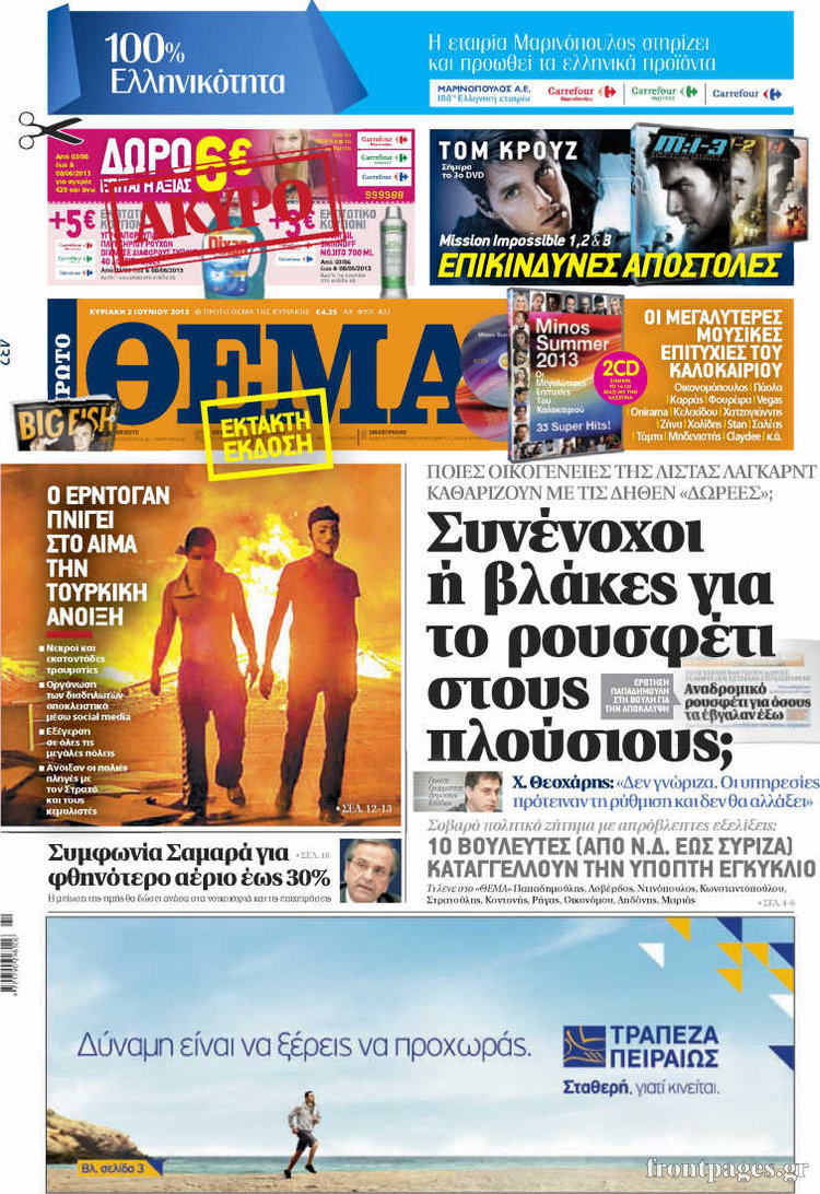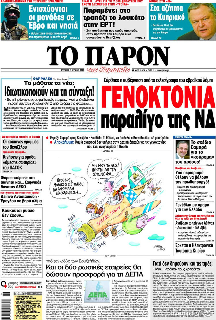 Οι πολιτικές εφημερίδες Enikos Newsroom 08:57, Κυριακή 02 Ιουνίου 2013 Media Οι πολιτικές εφημερίδες Διαβάστε τα πρωτοσέλιδα των πολιτικών εφημερίδων: ΕΦΗΜΕΡΙΔΕΣ ΠΟΛΙΤΙΚΕΣ ΕΦΗΜΕΡΙΔΕΣ ΠΡΩΤΟΣΕΛΙΔΑ Μοιράσου το: σχολίασε κι εσύ (0 σχόλια) Ακολουθήστε το enikos.gr στο Google News και μάθετε πρώτοι όλες τις ειδήσεις Δείτε όλες τις τελευταίες ειδήσεις από την Ελλάδα και τον Κόσμο στο enikos.gr Ειδήσεις Ροή Ειδήσεων 2 ώρες πριν Πώς δρούσε το κύκλωμα που διακινούσε ναρκωτικά σε σχολεία – Υπέβαλαν σε βασανιστήρια όσους δεν τηρούσαν τους «κανόνες πειθαρχίας» 3 ώρες πριν Αγρότες: Γιορτές στα μπλόκα με ανοιχτά διόδια – Δικογραφία στα Ιωάννινα για το σήκωμα των μπαρών 2 ώρες πριν Ζελένσκι: Οι Αμερικανοί πρότειναν συνάντηση Ουκρανίας, ΗΠΑ, Ρωσίας στο Μαϊάμι 2 ώρες πριν Αττική: Εξαρθρώθηκε εγκληματική οργάνωση που έκλεβε οχήματα, τα παραποιούσε και τα μεταπωλούσε σε πολίτες – Πώς δρούσε το κύκλωμα 1 ώρα πριν Μικαέλα Μπέντχαους: Ο πρώτος άνθρωπος σε αναπηρικό αμαξίδιο που ταξίδεψε στο διάστημα – ΒΙΝΤΕΟ 3 ώρες πριν Η τύχη χαμογελά σε 3 ζώδια έως τις 28 Δεκεμβρίου – «Προσέξτε τις επιλογές σας και η επιμονή σας θα ανταμειφθεί» 7 ώρες πριν Διαιτολόγος αποκαλύπτει 9 πρωινές συνήθειες που «λιώνουν» το κοιλιακό λίπος – «Υποστηρίζουν την υγιεινή απώλεια βάρους» 4 ώρες πριν Μία ανεκμετάλλευτη πηγή θα μπορούσε να προσφέρει ανεξάντλητη ενέργεια – Οι επιστήμονες ίσως γνωρίζουν πώς να την ξεκλειδώσουν 10 ώρες πριν Enerwave: Το νέο «ρεύμα» στη λιανική ενέργειας που αλλάζει την εμπειρία του καταναλωτή 4 λεπτά πριν Πηνελόπη Πλάκα: Η εξομολόγηση για την προσωπική της ζωή – «Γούσταρα πάρα πολύ την ελευθερία μου» 16 λεπτά πριν Λούλα: Προειδοποιεί πως μια επέμβαση των ΗΠΑ στη Βενεζουέλα θα μπορούσε να είναι καταστροφική 24 λεπτά πριν Τραμπ: Πώς περνάει τις γιορτές των Χριστουγέννων – Τα δώρα που κάνει στα εγγόνια του 37 λεπτά πριν HOTΕΛ ΕΛVIRA: Η Ελβίρα μαθαίνει πως ο Χάρι μένει κρυφά στο ξενοδοχείο του Παντελή 47 λεπτά πριν Ερντογάν: «Δεν έχουμε βλέψεις στα εδάφη κανενός, αλλά δεν θα επιτρέψουμε να παραβιαστούν τα δικαιώματά μας» ENIKOS NETWORK Οι γυναίκες αποκαλύπτουν το πιο ελκυστικό πράγμα που μπορεί να κάνει ένας άνδρας Ομορφιά και αντιγήρανση: Ειδικοί μιλούν για συσκευές περιποίησης του δέρματος Ολοκληρώθηκαν πληρωμές 22,16 εκατ. ευρώ για το μεταφορικό ισοδύναμο – Κικίλιας: Στηρίζουμε τη νησιωτικότητα Η Realnews στο www.pressreader.com Χαρτογραφώντας το «σημείο χωρίς επιστροφή»: Για πρώτη φορά αποκαλύπτεται με λεπτομέρεια το ακανθώδες όριο της ατμόσφαιρας τ... Η Google καταργεί τη λειτουργία «dark web report» – Πώς θα μπορούν οι χρήστες να διαγράφουν τα δεδομένα τους περισσότερα 18:19 , Σάββατο 20 Δεκεμβρίου 2025 HOTΕΛ ΕΛVIRA: Η Ελβίρα μαθαίνει πως ο Χάρι μένει κρυφά στο ξενοδοχείο του Παντελή Συνεχίζονται οι εκλογές για πρόεδρο, στο νέο επεισόδιο της κωμικής σειράς του MEGA, HOTΕΛ ΕΛVI... 14:04 , Σάββατο 20 Δεκεμβρίου 2025 Η Realnews αυτής της Κυριακής (21/12/2025) Με τίτλο: «Ασπίδα προστασίας για την Ελλάδα» κυκλοφορεί, αυτήν την Κυριακή, η Realnews. Σημαντ... 12:53 , Σάββατο 20 Δεκεμβρίου 2025 Να μ’ αγαπάς: Το παρελθόν έρχεται στο φως – Καταιγιστικές εξελίξεις στα τελευταία επεισόδια του 2025 Ο Άγγελος αποκαλύπτεται, η Φωτεινή ανησυχεί για τον Λευτέρη και η Ζωή έρχεται αντιμέτωπη με το... 11:41 , Σάββατο 20 Δεκεμβρίου 2025 «Η αγάπη δεν χάνεται ποτέ»: Η μικρού μήκους ταινία κινουμένων σχεδίων που θέτει ερωτήματα για τη ζωή και τον θάνατο Ο θάνατος είναι ένα από τα πιο σκληρά θέμ