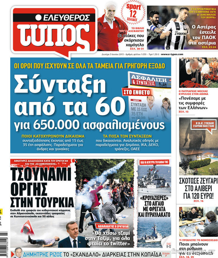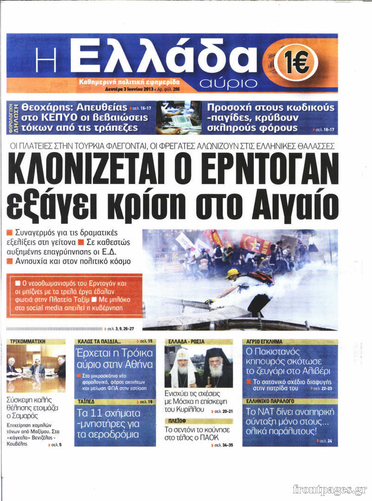 Οι πολιτικές εφημερίδες Enikos Newsroom 07:52, Δευτέρα 03 Ιουνίου 2013 Media Οι πολιτικές εφημερίδες Διαβάστε τα πρωτοσέλιδα των πολιτικών εφημερίδων: ΕΦΗΜΕΡΙΔΕΣ ΠΟΛΙΤΙΚΕΣ ΕΦΗΜΕΡΙΔΕΣ ΠΡΩΤΟΣΕΛΙΔΑ Μοιράσου το: σχολίασε κι εσύ (0 σχόλια) Ακολουθήστε το enikos.gr στο Google News και μάθετε πρώτοι όλες τις ειδήσεις Δείτε όλες τις τελευταίες ειδήσεις από την Ελλάδα και τον Κόσμο στο enikos.gr Ειδήσεις Ροή Ειδήσεων 9 ώρες πριν Κύκλωμα διακίνησης ναρκωτικών σε σχολεία: Βίντεο ντοκουμέντο από τα βασανιστήρια στους ανήλικους – Συζητούσαν για το πώς θα κάνουν «ξέπλυμα χρήματος» 8 ώρες πριν Κλιμακώνουν τις κινητοποιήσεις τους οι αγρότες: Κλείνουν τη Δευτέρα τις σήραγγες των Τεμπών για τα φορτηγά – Ανοίγουν την Τρίτη τους δρόμους για τους εκδρομείς 9 ώρες πριν Αιματηρό επεισόδιο στον Άγιο Παντελεήμονα – Δύο τραυματίες, αναζητείται ο δράστης 8 ώρες πριν ΗΠΑ: Αυξάνουν την πίεση στην Βενεζουέλα – Το νέο ρεσάλτο σε τάνκερ και ο στόχος του Τραμπ 9 ώρες πριν Κασσελάκης για παραίτηση Μάλαμα: «Η πορεία μας δεν θα καθοριστεί από μεμονωμένα πρόσωπα, μηχανισμούς και προσωπικές ατζέντες» 35 λεπτά πριν Οπτική ψευδαίσθηση: Μόνο οι πιο έξυπνοι άνθρωποι θα βρουν τον Άγιο Βασίλη σε 8 δευτερόλεπτα 50 λεπτά πριν Άνοια και εγκεφαλικό: Γιατρός προειδοποιεί για ένα δημοφιλές ρόφημα που αυξάνει τον κίνδυνο κατά 290% και 300% αντίστοιχα 1 ώρα πριν Τα ζώδια σήμερα, Δευτέρα 22 Δεκεμβρίου: Ζυγοί, αφήστε την καρδιά σας ελεύθερη 2 ημέρες πριν Enerwave: Το νέο «ρεύμα» στη λιανική ενέργειας που αλλάζει την εμπειρία του καταναλωτή 11 λεπτά πριν Επίδομα θέρμανσης: Μέχρι αύριο η προκαταβολή σε περισσότερα από 1 εκατ. νοικοκυριά – Τα ποσά που θα λάβουν οι δικαιούχοι 19 λεπτά πριν ΔΕΔΔΗΕ: Διακοπές ρεύματος σήμερα (22/12) στην Αθήνα και σε άλλες 7 περιοχές της Αττικής 28 λεπτά πριν ΗΠΑ: Το CBS αναβάλλει επ’ αόριστον την προβολή ντοκιμαντέρ για τη φυλακή CECOT του Ελ Σαλβαδόρ 35 λεπτά πριν Οπτική ψευδαίσθηση: Μόνο οι πιο έξυπνοι άνθρωποι θα βρουν τον Άγιο Βασίλη σε 8 δευτερόλεπτα 42 λεπτά πριν Τραγωδία στην Ινδονησία: Τουλάχιστον 16 νεκροί σε ανατροπή λεωφορείου ENIKOS NETWORK Οι γυναίκες έχουν βρει μια νέα απόλαυση στην κρεβατοκάμαρα που οι περισσότεροι άνδρες αγνοούν Christmas glow: 5 χρυσές συμβουλές για επιδερμίδα που λάμπει από ομορφιά τα Χριστούγεννα Νέο έτος ρεκόρ για τον ελληνικό τουρισμό το 2025: «Είμαστε μέσα στους 10 πλέον επισκέψιμους προορισμούς παγκοσμίως» λέει η ... Τιμές καυσίμων: Πόσο θα πληρώσουν οι εκδρομείς των Χριστουγέννων – Το κόστος μετακινήσεων σε δημοφιλείς προορισμούς Χαρτογραφώντας το «σημείο χωρίς επιστροφή»: Για πρώτη φορά αποκαλύπτεται με λεπτομέρεια το ακανθώδες όριο της ατμόσφαιρας τ... Η Google καταργεί τη λειτουργία «dark web report» – Πώς θα μπορούν οι χρήστες να διαγράφουν τα δεδομένα τους περισσότερα 05:48 , Δευτέρα 22 Δεκεμβρίου 2025 Οι οικονομικές εφημερίδες 22/12/2025 Διαβάστε τα πρωτοσέλιδα από τις οικονομικές εφημερίδες, σήμερα 22/12/2025 05:43 , Δευτέρα 22 Δεκεμβρίου 2025 Οι αθλητικές εφημερίδες 22/12/2025 Διαβάστε τα πρωτοσέλιδα από τις αθλητικές εφημερίδες, σήμερα 22/12/2025. 05:38 , Δευτέρα 22 Δεκεμβρίου 2025 Οι πολιτικές εφημερίδες 22/12/2025 Διαβάστε τα πρωτοσέλιδα από τις πολιτικές εφημερίδες, σήμερα 22/12/2025. 05:15 , Δευτέρα 22 Δεκεμβρίου 2025 Εφημερεύοντα φαρμακεία σε Αθήνα και Θεσσαλονίκη (22/12) Μάθετε ποια φαρμακεία εφημερεύουν σε Αθήνα και Θεσσαλονίκη. Βρείτε εύκολα και γρήγορα τα πλησι... ΤΕΛΕΥΤΑΙΕΣ ΕΙΔΗΣΕΙΣ 11 λεπτά πριν Επίδομα θέρμανσης: Μέχρι αύρ
