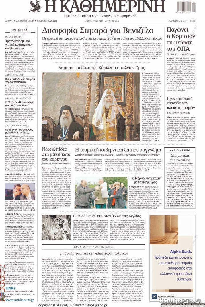 Οι πολιτικές εφημερίδες Enikos Newsroom 08:31, Τετάρτη 05 Ιουνίου 2013 Media Οι πολιτικές εφημερίδες Διαβάστε τα πρωτοσέλιδα των πολιτικών εφημερίδων: ΕΦΗΜΕΡΙΔΕΣ ΠΟΛΙΤΙΚΕΣ ΕΦΗΜΕΡΙΔΕΣ ΠΡΩΤΟΣΕΛΙΔΑ Μοιράσου το: σχολίασε κι εσύ (0 σχόλια) Ακολουθήστε το enikos.gr στο Google News και μάθετε πρώτοι όλες τις ειδήσεις Δείτε όλες τις τελευταίες ειδήσεις από την Ελλάδα και τον Κόσμο στο enikos.gr Ειδήσεις Ροή Ειδήσεων 2 ώρες πριν Πώς δρούσε το κύκλωμα που διακινούσε ναρκωτικά σε σχολεία – Υπέβαλαν σε βασανιστήρια όσους δεν τηρούσαν τους «κανόνες πειθαρχίας» 3 ώρες πριν Αγρότες: Γιορτές στα μπλόκα με ανοιχτά διόδια – Δικογραφία στα Ιωάννινα για το σήκωμα των μπαρών 2 ώρες πριν Ζελένσκι: Οι Αμερικανοί πρότειναν συνάντηση Ουκρανίας, ΗΠΑ, Ρωσίας στο Μαϊάμι 1 ώρα πριν Αττική: Εξαρθρώθηκε εγκληματική οργάνωση που έκλεβε οχήματα, τα παραποιούσε και τα μεταπωλούσε σε πολίτες – Πώς δρούσε το κύκλωμα 1 ώρα πριν Μικαέλα Μπέντχαους: Ο πρώτος άνθρωπος σε αναπηρικό αμαξίδιο που ταξίδεψε στο διάστημα – ΒΙΝΤΕΟ 3 ώρες πριν Η τύχη χαμογελά σε 3 ζώδια έως τις 28 Δεκεμβρίου – «Προσέξτε τις επιλογές σας και η επιμονή σας θα ανταμειφθεί» 7 ώρες πριν Διαιτολόγος αποκαλύπτει 9 πρωινές συνήθειες που «λιώνουν» το κοιλιακό λίπος – «Υποστηρίζουν την υγιεινή απώλεια βάρους» 4 ώρες πριν Μία ανεκμετάλλευτη πηγή θα μπορούσε να προσφέρει ανεξάντλητη ενέργεια – Οι επιστήμονες ίσως γνωρίζουν πώς να την ξεκλειδώσουν 10 ώρες πριν Enerwave: Το νέο «ρεύμα» στη λιανική ενέργειας που αλλάζει την εμπειρία του καταναλωτή 50 δευτερόλεπτα πριν Πηνελόπη Πλάκα: Η εξομολόγηση για την προσωπική της ζωή – «Γούσταρα πάρα πολύ την ελευθερία μου» 13 λεπτά πριν Λούλα: Προειδοποιεί πως μια επέμβαση των ΗΠΑ στη Βενεζουέλα θα μπορούσε να είναι καταστροφική 21 λεπτά πριν Τραμπ: Πώς περνάει τις γιορτές των Χριστουγέννων – Τα δώρα που κάνει στα εγγόνια του 34 λεπτά πριν HOTΕΛ ΕΛVIRA: Η Ελβίρα μαθαίνει πως ο Χάρι μένει κρυφά στο ξενοδοχείο του Παντελή 43 λεπτά πριν Ερντογάν: «Δεν έχουμε βλέψεις στα εδάφη κανενός, αλλά δεν θα επιτρέψουμε να παραβιαστούν τα δικαιώματά μας» ENIKOS NETWORK Γιατί πρέπει να ζητάμε χάρες; Ποιο είναι το φαινόμενο Ben Franklin που κάνει τους άλλους να μας συμπαθούν Η αποχή από την αναπαραγωγή παρατείνει τη ζωή στα ζώα, σύμφωνα με μελέτη – Τι ισχύει για τους ανθρώπους; Ολοκληρώθηκαν πληρωμές 22,16 εκατ. ευρώ για το μεταφορικό ισοδύναμο – Κικίλιας: Στηρίζουμε τη νησιωτικότητα Η Realnews στο www.pressreader.com Χαρτογραφώντας το «σημείο χωρίς επιστροφή»: Για πρώτη φορά αποκαλύπτεται με λεπτομέρεια το ακανθώδες όριο της ατμόσφαιρας τ... Η Google καταργεί τη λειτουργία «dark web report» – Πώς θα μπορούν οι χρήστες να διαγράφουν τα δεδομένα τους περισσότερα 18:19 , Σάββατο 20 Δεκεμβρίου 2025 HOTΕΛ ΕΛVIRA: Η Ελβίρα μαθαίνει πως ο Χάρι μένει κρυφά στο ξενοδοχείο του Παντελή Συνεχίζονται οι εκλογές για πρόεδρο, στο νέο επεισόδιο της κωμικής σειράς του MEGA, HOTΕΛ ΕΛVI... 14:04 , Σάββατο 20 Δεκεμβρίου 2025 Η Realnews αυτής της Κυριακής (21/12/2025) Με τίτλο: «Ασπίδα προστασίας για την Ελλάδα» κυκλοφορεί, αυτήν την Κυριακή, η Realnews. Σημαντ... 12:53 , Σάββατο 20 Δεκεμβρίου 2025 Να μ’ αγαπάς: Το παρελθόν έρχεται στο φως – Καταιγιστικές εξελίξεις στα τελευταία επεισόδια του 2025 Ο Άγγελος αποκαλύπτεται, η Φωτεινή ανησυχεί για τον Λευτέρη και η Ζωή έρχεται αντιμέτωπη με το... 11:41 , Σάββατο 20 Δεκεμβρίου 2025 «Η αγάπη δεν χάνεται ποτέ»: Η μικρού μήκους ταινία κινουμένων σχεδίων που θέτει ερωτήματα για τη ζωή και τ