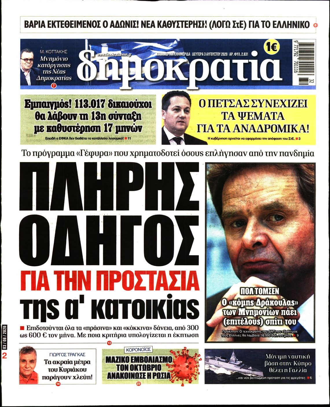 Οι πολιτικές εφημερίδες 3/8/2020 Διονύσης Νίκκας 06:13, Δευτέρα 03 Αυγούστου 2020 Media Διαβάστε τα πρωτοσέλιδα των πολιτικών εφημερίδων… ΠΟΛΙΤΙΚΕΣ ΕΦΗΜΕΡΙΔΕΣ ΠΡΩΤΟΣΕΛΙΔΑ Μοιράσου το: σχολίασε κι εσύ (0 σχόλια) Ακολουθήστε το enikos.gr στο Google News και μάθετε πρώτοι όλες τις ειδήσεις Δείτε όλες τις τελευταίες ειδήσεις από την Ελλάδα και τον Κόσμο στο enikos.gr Ειδήσεις Ροή Ειδήσεων 4 ώρες πριν Χριστούγεννα στα μπλόκα: Επιμένουν στις κινητοποιήσεις τους οι αγρότες – Ανοίγουν τα διόδια το Σαββατοκύριακο 4 ώρες πριν Ουκρανία: Η άνευ προηγουμένου επίθεση σε ρωσικό τάνκερ στη Μεσόγειο και το μήνυμα προς στον Πούτιν – Το «μακρύ χέρι» του Κιέβου 3 ώρες πριν Πούτιν: Τα μηνύματα σε Ευρώπη και ΝΑΤΟ από το μαραθώνιο «σόου» του – Η απαίτηση για «σεβασμό» και η ειρήνη «με τους όρους» της Μόσχας 4 ώρες πριν Τραμπ: Δεν αποκλείει την πιθανότητα ενός πολέμου στη Βενεζουέλα – «Ο Μαδούρο ξέρει καλύτερα από τον καθένα τι ακριβώς θέλω» 5 ώρες πριν Συνεχίζει να προκαλεί ο Μίτσκοσκι: «Για μένα το όνομα Μακεδονία είναι ιερό» 3 ώρες πριν Ανακαλύφθηκαν αρχαία χρυσά νομίσματα 2.200 ετών που απεικονίζουν τον θεό Απόλλωνα – Η άγνωστη σύνδεση με τον Φίλιππο Β΄ της Μακεδονίας 4 ώρες πριν Ύπνος: Μια κρυφή κατάσταση του εγκεφάλου πριν από τον ύπνο μπορεί να είναι το “κλειδί” για υψηλή ευφυΐα και δημιουργικότητα 5 ώρες πριν Αριθμολογία: Οι άνθρωποι που έχουν γεννηθεί αυτές τις 4 ημερομηνίες, συχνά παρεξηγούνται – «Η καλοσύνη τους κρύβει τεράστια δύναμη» 6 ώρες πριν Ξεχάστε το καθάρισμα το Σαββατοκύριακο: Ο «κανόνας των 20 λεπτών» που θα σας λύσει τα χέρια 14 λεπτά πριν ΗΠΑ: Τραγωδία στην Αλαμπάμα – Σκότωσε την δημοσιογράφο σύζυγό του και αυτοκτόνησε μπροστά στον 3χρονο γιο τους 28 λεπτά πριν Πρόταση γάμου στο ΣΕΦ κατά την διάρκεια του αγώνα Ολυμπιακός-Βιλερμπάν – Δείτε βίντεο 43 λεπτά πριν Euroleague: Επέστρεψε στις νίκες ο Ολυμπιακός, πήρε την ματσάρα της χρονιάς η Μπάρτσα – Τα αποτελέσματα και η βαθμολογία 58 λεπτά πριν Συρία: Μαζικά πλήγματα των ΗΠΑ σε θέσεις του Ισλαμικού Κράτους – Χέγκσεθ: «Δεν είναι αρχή πολέμου, είναι μια δήλωση εκδίκησης» για το θάνατο των στρατιωτών μας 1 ώρα πριν Ουκρανία: Ολοκληρώθηκαν οι συνομιλίες με τους Αμερικανούς κι Ευρωπαίους διαπραγματευτές ENIKOS NETWORK Το ΕΚΑΒ τιμήθηκε από την Ακαδημία Αθηνών για τα 40 χρόνια προσφοράς του Έχετε πραγματικά μεγάλη καρδιά; 10 χαρακτηριστικά όσων έχουν καλοσύνη Αναστολή μέτρων αναγκαστικής εκτέλεσης για κτηνοτρόφους που πλήττονται από την ευλογιά των αιγοπροβάτων Πλήρης επάρκεια προϊόντων στις λαϊκές της Αττικής, παρά τις αγροτικές κινητοποιήσεις – Τι απαντούν οι πωλητές Χαρτογραφώντας το «σημείο χωρίς επιστροφή»: Για πρώτη φορά αποκαλύπτεται με λεπτομέρεια το ακανθώδες όριο της ατμόσφαιρας τ... Η Google καταργεί τη λειτουργία «dark web report» – Πώς θα μπορούν οι χρήστες να διαγράφουν τα δεδομένα τους περισσότερα 22:42 , Παρασκευή 19 Δεκεμβρίου 2025 Γιώργος Γιαννόπουλος για “Το σόι σου”: “Είναι ευτυχία και ευλογία αυτή η σειρά” «Είναι ευτυχία και ευλογία η συγκυρία αυτής της σειράς», θα πει ο Γιώργος Γιαννόπουλος -ο αγαπ... 20:37 , Παρασκευή 19 Δεκεμβρίου 2025 Don’t Forget The Lyrics: Η Έλλη Κοκκίνου υποδέχεται 4 παίκτες που θα κάνουν τα πάντα για να μη χάσουν ούτε… μισή λέξη από τους στίχους Το «Don’t Forget The Lyrics» επιστρέφει απόψε, Παρασκευή 19 Δεκεμβρίου, στις 21:00 με νέο επει... 19:31 , Παρασκευή 19 Δεκεμβρίου 2025 GNTM: Απόψε ο μεγάλος τελικός για τους 4 φιναλίστ Έπειτα από 