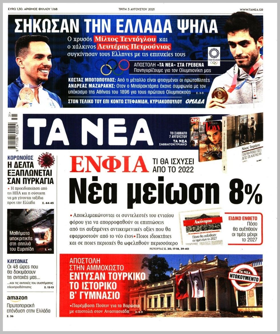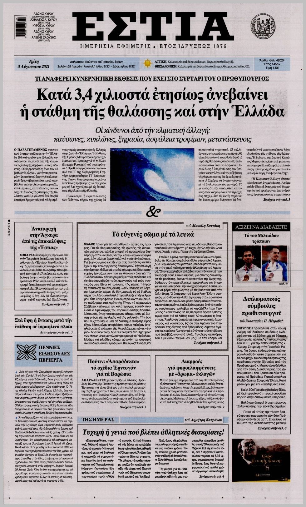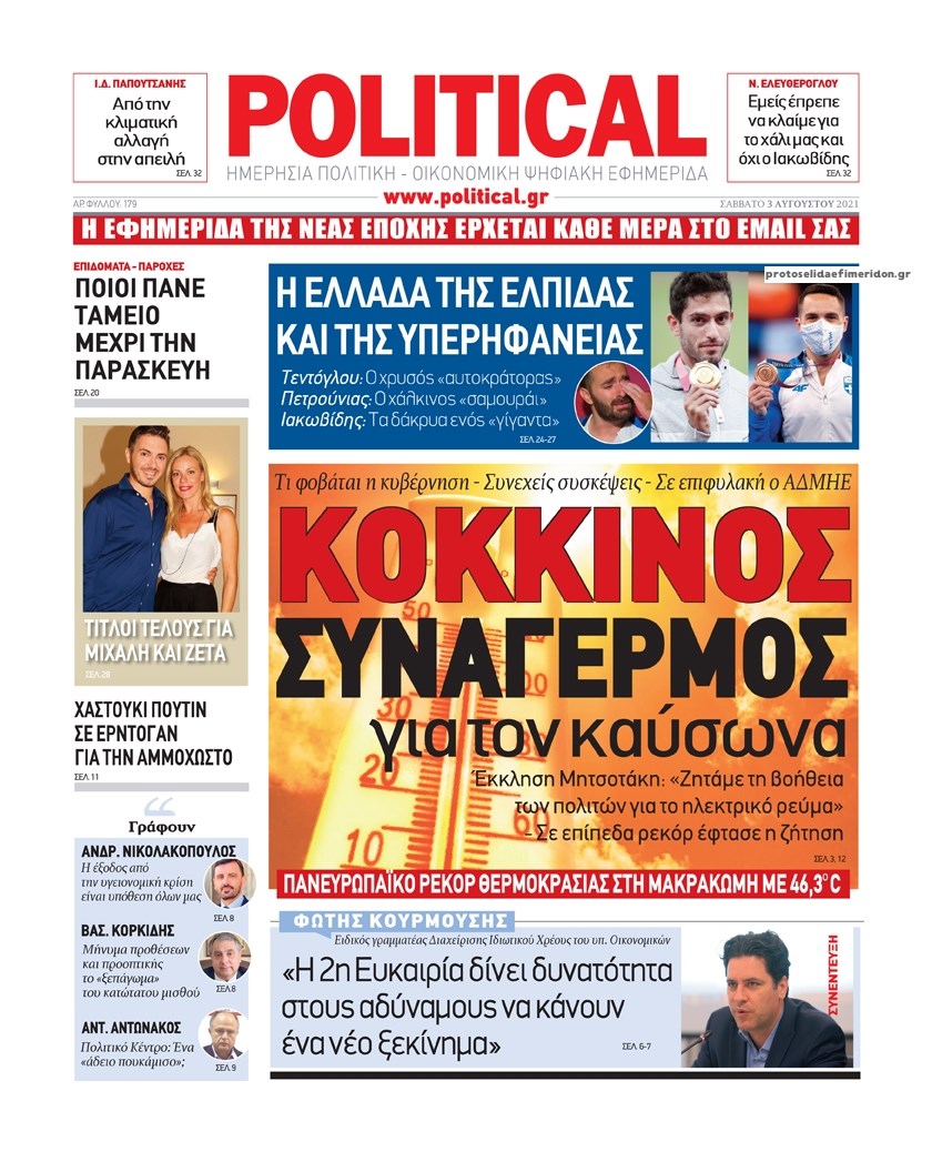 Οι πολιτικές εφημερίδες 3/8/2021 Διονύσης Νίκκας 06:14, Τρίτη 03 Αυγούστου 2021 Media Διαβάστε τα πρωτοσέλιδα των πολιτικών εφημερίδων… ΕΦΗΜΕΡΙΔΕΣ ΠΡΩΤΟΣΕΛΙΔΑ Μοιράσου το: σχολίασε κι εσύ (0 σχόλια) Ακολουθήστε το enikos.gr στο Google News και μάθετε πρώτοι όλες τις ειδήσεις Δείτε όλες τις τελευταίες ειδήσεις από την Ελλάδα και τον Κόσμο στο enikos.gr Ειδήσεις Ροή Ειδήσεων 4 ώρες πριν Υπόθεση Έπσταϊν: Το Υπουργείο Δικαιοσύνης δημοσιοποίησε μια σειρά από εξαιρετικά επεξεργασμένα αρχεία – «Λείπουν τα πιο σημαντικά έγγραφα», λένε οι Δημοκρατικοί 43 λεπτά πριν Γιορτές με μπλόκα για τους αγρότες: Ανοίγουν διόδια και μοιράζουν προϊόντα στους ταξιδιώτες 1 ώρα πριν Εξαφάνιση 33χρονου γιατρού στην Κρήτη: «Άναψα τα φώτα, τρόμαξε και άρχισε να τρέχει στα χωράφια» – Η τελευταία διαδρομή και η μαρτυρία «κλειδί» 3 ώρες πριν Ο «χάρτης» με τις αυξήσεις και τις φοροελαφρύνσεις του 2026 – Ποιοι και πόσα κερδίζουν 59 λεπτά πριν Τα αρχεία του Έπσταϊν αποκαλύπτουν φωτογραφία του έκπτωτου πρίγκιπα Άντριου – Είναι ξαπλωμένος στην αγκαλιά 5 γυναικών 1 ώρα πριν Μία νέα «χρυσή» περίοδος αρχίζει για 3 ζώδια από σήμερα – «Μία αναπάντεχη ευκαιρία οδηγεί στην επιτυχία» 5 ώρες πριν Αυγά: Πόσα μπορείτε να τρώτε την ημέρα με ασφάλεια για μέγιστη πρόσληψη πρωτεΐνης 3 ώρες πριν Αρχαιολόγοι ανακάλυψαν σε χωράφι απεικόνιση 600 ετών ενός Αγίου – Τα στοιχεία που δείχνουν ότι μαρτύρησε 2 ώρες πριν Αγχώνεται για το χριστουγεννιάτικο δώρο που πήρε στην πλούσια σύντροφό του – «Φοβάμαι πως θα το βρει φθηνιάρικο, φοράει βραχιόλια Cartier» 8 λεπτά πριν Νέες ταυτότητες: Μεγάλη αναμονή για ραντεβού στην Αττική – Τέλος τα ταξίδια εκτός Ελλάδος από τον Αύγουστο για όσους δεν έχουν αλλάξει 16 λεπτά πριν Οι 7 φράσεις που δεν λένε ποτέ οι συναισθηματικά έξυπνοι άνθρωποι κατά τη διάρκεια ενός καβγά 20 λεπτά πριν Τηλεθέαση (19/12): Ανατροπές και πρωτιές στην πρωινή ζώνη 27 λεπτά πριν Πώς η κλιματική αλλαγή επηρεάζει εγκύους και βρέφη – Οι επιπτώσεις των υψηλών θερμοκρασιών 35 λεπτά πριν e-ΕΦΚΑ και ΔΥΠΑ: Οι πληρωμές από 22 έως 24 Δεκεμβρίου – Ποιοι θα δουν χρήματα στους λογαριασμούς τους ENIKOS NETWORK Είστε μόνιμα απρόσεκτοι; 3 σημάδια που δείχνουν ότι μπορεί να είναι σύμπτωμα πάθησης Πόσα κιλά παίρνουμε πραγματικά τα Χριστούγεννα, σύμφωνα με την επιστήμη – Πώς να το αποτρέψουμε; Επίδομα παιδιού: Τι αλλάζει από το 2026 – Το όφελος από τις φορολογικές ελαφρύνσεις Mega χριστουγεννιάτικη φορολοταρία: «Κλείδωσε» η ημερομηνία για την κλήρωση – Ερωτήσεις και απαντήσεις Χαρτογραφώντας το «σημείο χωρίς επιστροφή»: Για πρώτη φορά αποκαλύπτεται με λεπτομέρεια το ακανθώδες όριο της ατμόσφαιρας τ... Η Google καταργεί τη λειτουργία «dark web report» – Πώς θα μπορούν οι χρήστες να διαγράφουν τα δεδομένα τους περισσότερα 09:30 , Σάββατο 20 Δεκεμβρίου 2025 «Porto Leone: Στη γειτονιά με τα κόκκινα φανάρια» – Ο Χρόνης αποκαλύπτει στην Αλεξάνδρα το μυστικό για το παιδί της Λένας Η μεγάλη δραματική σειρά του Apha «Porto Leone: Στη γειτονιά με τα κόκκινα φανάρια» μας μεταφέ... 08:14 , Σάββατο 20 Δεκεμβρίου 2025 Τρομεροί γονείς: Η Μαρία Καβογιάννη εισβάλλει στο σπίτι της οικογένειας Στεφανίδη Όσα θα δούμε στο νέο διπλό επεισόδιο της σειράς «Τρομεροί γονείς», σήμερα Σάββατο 20 Δεκεμβρίο... 05:48 , Σάββατο 20 Δεκεμβρίου 2025 Οι οικονομικές εφημερίδες 20/12/2025 Διαβάστε τα πρωτοσέλιδα από τις οικονομικές εφημερίδες, σήμερα 20/12/2025. 05:43 , Σάββατο 20 Δεκεμβρίου 2025 Οι αθλητικές εφημερίδες 20/12/2025 Διαβάστε τα 