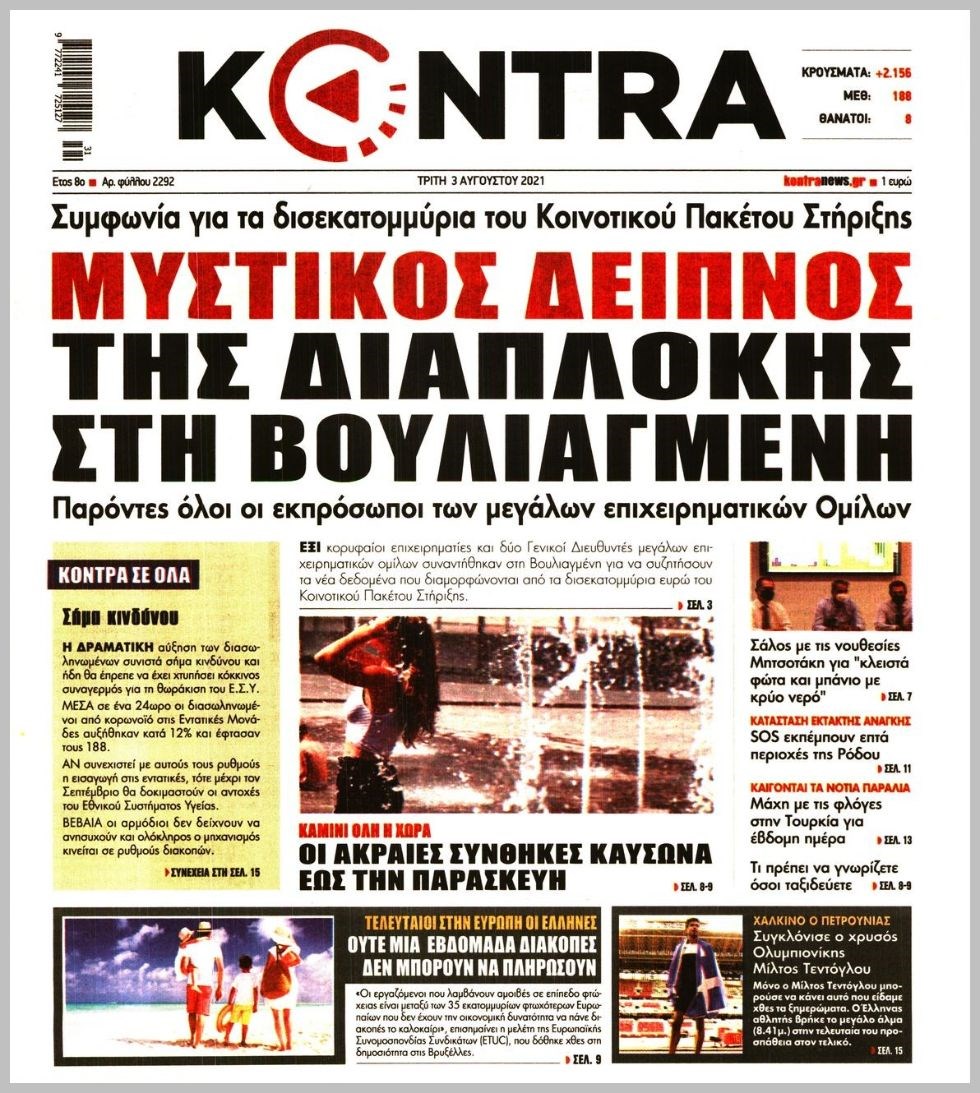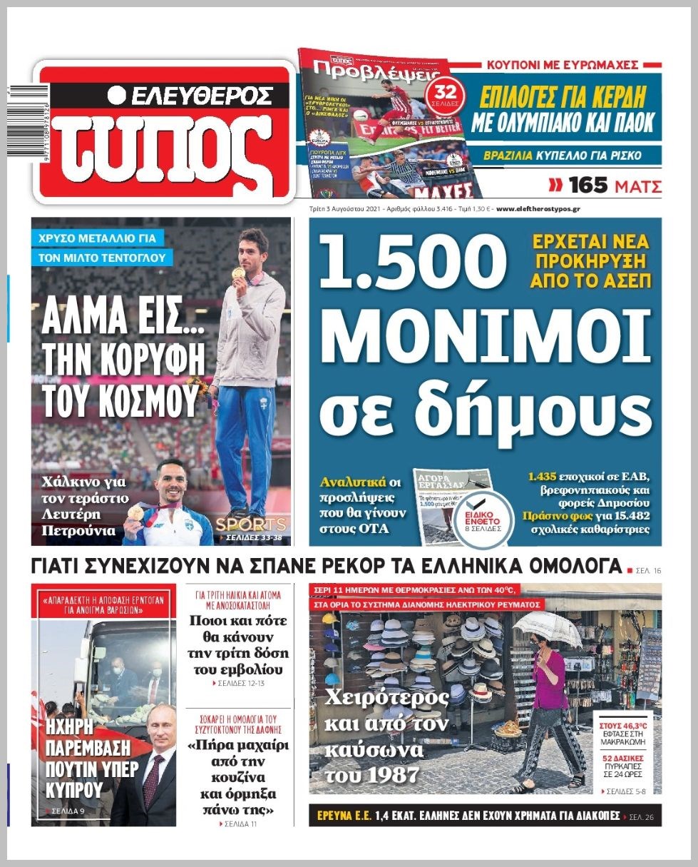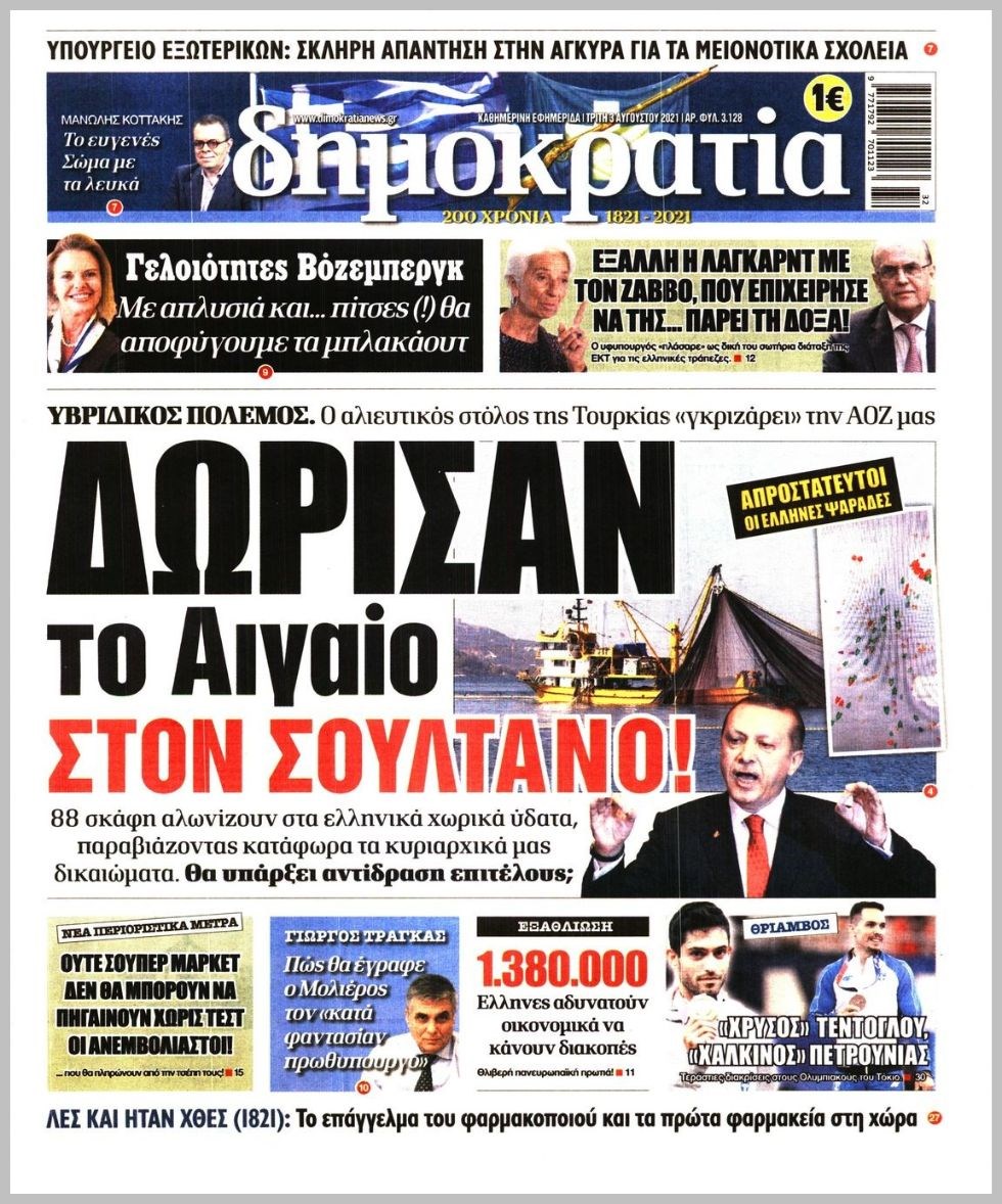Οι πολιτικές εφημερίδες 3/8/2021 Διονύσης Νίκκας 06:14, Τρίτη 03 Αυγούστου 2021 Media Διαβάστε τα πρωτοσέλιδα των πολιτικών εφημερίδων… ΕΦΗΜΕΡΙΔΕΣ ΠΡΩΤΟΣΕΛΙΔΑ Μοιράσου το: σχολίασε κι εσύ (0 σχόλια) Ακολουθήστε το enikos.gr στο Google News και μάθετε πρώτοι όλες τις ειδήσεις Δείτε όλες τις τελευταίες ειδήσεις από την Ελλάδα και τον Κόσμο στο enikos.gr Ειδήσεις Ροή Ειδήσεων 4 ώρες πριν Υπόθεση Έπσταϊν: Το Υπουργείο Δικαιοσύνης δημοσιοποίησε μια σειρά από εξαιρετικά επεξεργασμένα αρχεία – «Λείπουν τα πιο σημαντικά έγγραφα», λένε οι Δημοκρατικοί 43 λεπτά πριν Γιορτές με μπλόκα για τους αγρότες: Ανοίγουν διόδια και μοιράζουν προϊόντα στους ταξιδιώτες 1 ώρα πριν Εξαφάνιση 33χρονου γιατρού στην Κρήτη: «Άναψα τα φώτα, τρόμαξε και άρχισε να τρέχει στα χωράφια» – Η τελευταία διαδρομή και η μαρτυρία «κλειδί» 3 ώρες πριν Ο «χάρτης» με τις αυξήσεις και τις φοροελαφρύνσεις του 2026 – Ποιοι και πόσα κερδίζουν 59 λεπτά πριν Τα αρχεία του Έπσταϊν αποκαλύπτουν φωτογραφία του έκπτωτου πρίγκιπα Άντριου – Είναι ξαπλωμένος στην αγκαλιά 5 γυναικών 1 ώρα πριν Μία νέα «χρυσή» περίοδος αρχίζει για 3 ζώδια από σήμερα – «Μία αναπάντεχη ευκαιρία οδηγεί στην επιτυχία» 5 ώρες πριν Αυγά: Πόσα μπορείτε να τρώτε την ημέρα με ασφάλεια για μέγιστη πρόσληψη πρωτεΐνης 3 ώρες πριν Αρχαιολόγοι ανακάλυψαν σε χωράφι απεικόνιση 600 ετών ενός Αγίου – Τα στοιχεία που δείχνουν ότι μαρτύρησε 2 ώρες πριν Αγχώνεται για το χριστουγεννιάτικο δώρο που πήρε στην πλούσια σύντροφό του – «Φοβάμαι πως θα το βρει φθηνιάρικο, φοράει βραχιόλια Cartier» 8 λεπτά πριν Νέες ταυτότητες: Μεγάλη αναμονή για ραντεβού στην Αττική – Τέλος τα ταξίδια εκτός Ελλάδος από τον Αύγουστο για όσους δεν έχουν αλλάξει 16 λεπτά πριν Οι 7 φράσεις που δεν λένε ποτέ οι συναισθηματικά έξυπνοι άνθρωποι κατά τη διάρκεια ενός καβγά 20 λεπτά πριν Τηλεθέαση (19/12): Ανατροπές και πρωτιές στην πρωινή ζώνη 27 λεπτά πριν Πώς η κλιματική αλλαγή επηρεάζει εγκύους και βρέφη – Οι επιπτώσεις των υψηλών θερμοκρασιών 35 λεπτά πριν e-ΕΦΚΑ και ΔΥΠΑ: Οι πληρωμές από 22 έως 24 Δεκεμβρίου – Ποιοι θα δουν χρήματα στους λογαριασμούς τους ENIKOS NETWORK Είστε μόνιμα απρόσεκτοι; 3 σημάδια που δείχνουν ότι μπορεί να είναι σύμπτωμα πάθησης Πόσα κιλά παίρνουμε πραγματικά τα Χριστούγεννα, σύμφωνα με την επιστήμη – Πώς να το αποτρέψουμε; Επίδομα παιδιού: Τι αλλάζει από το 2026 – Το όφελος από τις φορολογικές ελαφρύνσεις Mega χριστουγεννιάτικη φορολοταρία: «Κλείδωσε» η ημερομηνία για την κλήρωση – Ερωτήσεις και απαντήσεις Χαρτογραφώντας το «σημείο χωρίς επιστροφή»: Για πρώτη φορά αποκαλύπτεται με λεπτομέρεια το ακανθώδες όριο της ατμόσφαιρας τ... Η Google καταργεί τη λειτουργία «dark web report» – Πώς θα μπορούν οι χρήστες να διαγράφουν τα δεδομένα τους περισσότερα 09:30 , Σάββατο 20 Δεκεμβρίου 2025 «Porto Leone: Στη γειτονιά με τα κόκκινα φανάρια» – Ο Χρόνης αποκαλύπτει στην Αλεξάνδρα το μυστικό για το παιδί της Λένας Η μεγάλη δραματική σειρά του Apha «Porto Leone: Στη γειτονιά με τα κόκκινα φανάρια» μας μεταφέ... 08:14 , Σάββατο 20 Δεκεμβρίου 2025 Τρομεροί γονείς: Η Μαρία Καβογιάννη εισβάλλει στο σπίτι της οικογένειας Στεφανίδη Όσα θα δούμε στο νέο διπλό επεισόδιο της σειράς «Τρομεροί γονείς», σήμερα Σάββατο 20 Δεκεμβρίο... 05:48 , Σάββατο 20 Δεκεμβρίου 2025 Οι οικονομικές εφημερίδες 20/12/2025 Διαβάστε τα πρωτοσέλιδα από τις οικονομικές εφημερίδες, σήμερα 20/12/2025. 05:43 , Σάββατο 20 Δεκεμβρίου 2025 Οι αθλητικές εφημερίδες 20/12/2025 Διαβάστε τα 