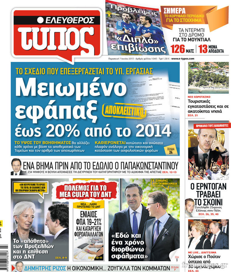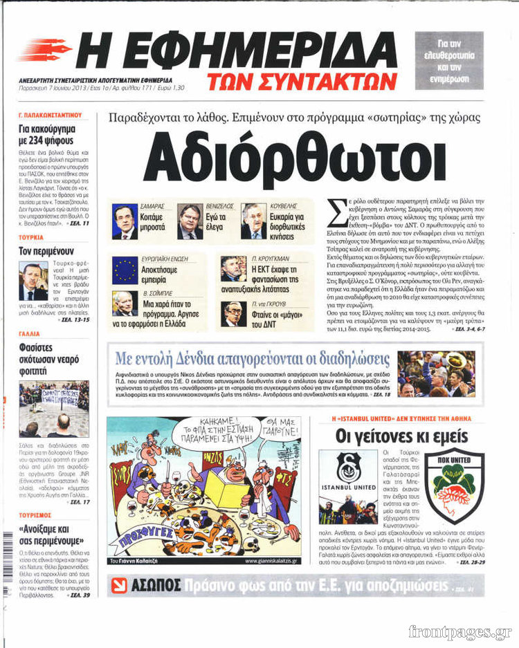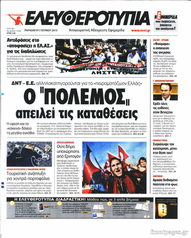 Οι πολιτικές εφημερίδες Enikos Newsroom 08:28, Παρασκευή 07 Ιουνίου 2013 Media Οι πολιτικές εφημερίδες Διαβάστε τα πρωτοσέλιδα των πολιτικών εφημερίδων: ΕΦΗΜΕΡΙΔΕΣ ΠΟΛΙΤΙΚΕΣ ΕΦΗΜΕΡΙΔΕΣ ΠΡΩΤΟΣΕΛΙΔΑ Μοιράσου το: σχολίασε κι εσύ (0 σχόλια) Ακολουθήστε το enikos.gr στο Google News και μάθετε πρώτοι όλες τις ειδήσεις Δείτε όλες τις τελευταίες ειδήσεις από την Ελλάδα και τον Κόσμο στο enikos.gr Ειδήσεις Ροή Ειδήσεων 7 ώρες πριν Εκτός ευρωομάδας ΣΥΡΙΖΑ ο Νίκος Παππάς μετά την επίθεση στον δημοσιογράφο Νίκο Γιαννόπουλο – Η μήνυση και οι νέες δηλώσεις 7 ώρες πριν «Αγριεύουν» οι αγρότες: «Δεν συντρέχει λόγος συνάντησης με τον πρωθυπουργό» – Ώρα αποφάσεων στη σύσκεψη της Πέμπτης 7 ώρες πριν Κυψέλη: Χωρίς την οικογένειά της δίπλα της απολογήθηκε η 16χρονη – «Της είχε επιτεθεί κάποιος για να την βιάσει, φοβήθηκε και κυκλοφορούσε με μαχαίρι» 7 ώρες πριν Politico: Το πρόβλημα της Ευρώπης δεν είναι το Βέλγιο αλλά ο Ντόναλντ Τραμπ 8 ώρες πριν Αλεξανδρούπολη: Πολυοργανική ανεπάρκεια λόγω υποσιτισμού η αιτία θανάτου του 3χρονου αγοριού 7 ώρες πριν Μυστήριο με τεράστιες κυκλικές πέτρες 200 κιλών – Ανακαλύφθηκαν τυχαία κατά τη διάρκεια οδικών έργων και κανείς δεν ξέρει από πού προέρχονται 8 ώρες πριν Ύπνος: Ειδικός εξηγεί τον πραγματικό λόγο που ξυπνάτε στις 4 τα ξημερώματα – Ο ρόλος των ορμονών και του κιρκάδιου ρυθμού 9 ώρες πριν Αριθμολογία: Οι άνθρωποι που έχουν γεννηθεί αυτές τις 4 ημερομηνίες, είναι τρυφεροί και αγαπούν ανιδιοτελώς 21 ώρες πριν 20 χρόνια τα Χριστούγεννα ξεκινούν στα Public με μεγάλη ποικιλία σε δώρα! 4 λεπτά πριν Σαν σήμερα 18 Δεκεμβρίου: Τα σημαντικότερα γεγονότα της ημέρας 10 λεπτά πριν Οι οικονομικές εφημερίδες 18/12/2025 14 λεπτά πριν Οι αθλητικές εφημερίδες 18/12/2025 19 λεπτά πριν Οι πολιτικές εφημερίδες 18/12/2025 28 λεπτά πριν Τα ζώδια σήμερα, Πέμπτη 18 Δεκεμβρίου: Λέοντες, η καρδιά σας θέλει να εκφραστεί ENIKOS NETWORK Αϋπνία: Το κόλπο που θα σας βοηθήσει να κοιμηθείτε απόψε – Είναι απλό και έχει αποτέλεσμα 2,6 εκατομμύρια πολίτες έχουν ήδη εμβολιαστεί κατά της γρίπης ΕΛΣΤΑΤ: Τι δείχνουν τα νέα στοιχεία για τις ηλεκτρονικές παραγγελίες των επιχειρήσεων ΚΕΠΕ: Οι 3 διακριτές συμβολές των ΜμΕ και της μεταποίησης στην ελληνική οικονομία Χαρτογραφώντας το «σημείο χωρίς επιστροφή»: Για πρώτη φορά αποκαλύπτεται με λεπτομέρεια το ακανθώδες όριο της ατμόσφαιρας τ... Η Google καταργεί τη λειτουργία «dark web report» – Πώς θα μπορούν οι χρήστες να διαγράφουν τα δεδομένα τους περισσότερα 05:48 , Πέμπτη 18 Δεκεμβρίου 2025 Οι οικονομικές εφημερίδες 18/12/2025 Διαβάστε τα πρωτοσέλιδα από τις οικονομικές εφημερίδες, σήμερα 18/12/2025. 05:43 , Πέμπτη 18 Δεκεμβρίου 2025 Οι αθλητικές εφημερίδες 18/12/2025 Διαβάστε τα πρωτοσέλιδα από τις αθλητικές εφημερίδες, σήμερα 18/12/2025. 05:38 , Πέμπτη 18 Δεκεμβρίου 2025 Οι πολιτικές εφημερίδες 18/12/2025 Διαβάστε τα πρωτοσέλιδα από τις πολιτικές εφημερίδες, σήμερα 18/12/2025. 05:22 , Πέμπτη 18 Δεκεμβρίου 2025 Το Ποντίκι σήμερα Πέμπτη 18/12/2025 Διαβάστε το πρωτοσέλιδο της εφημερίδας «Το Ποντίκι» σήμερα 18/12/2025. ΤΕΛΕΥΤΑΙΕΣ ΕΙΔΗΣΕΙΣ 4 λεπτά πριν Σαν σήμερα 18 Δεκεμβρίου: Τα σημαντικότερα γεγονότα... 10 λεπτά πριν Οι οικονομικές εφημερίδες 18/12/2025 14 λεπτά πριν Οι αθλητικές εφημερίδες 18/12/2025 19 λεπτά πριν Οι πολιτικές εφημερίδες 18/12/2025 28 λεπτά πριν Τα ζώδια σήμερα, Πέμπτη 18 Δεκεμβρίου: Λέοντες, η καρδιά... 35 λεπτά πριν Το Ποντίκι σήμερα Πέμπτη 18/12/2025 40 λεπτά πριν Εφημερεύοντα φαρμακεία σε Αθήνα και Θεσσαλονίκη (18/12) 42 λεπτά πριν Αλεξάνδρα Ούστα: 