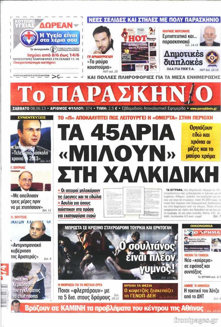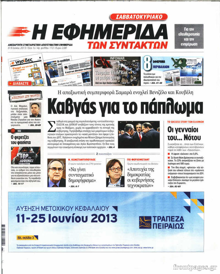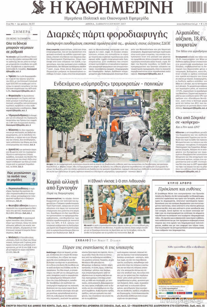 Οι πολιτικές εφημερίδες Enikos Newsroom 08:49, Σάββατο 08 Ιουνίου 2013 Media Οι πολιτικές εφημερίδες ΕΦΗΜΕΡΙΔΕΣ ΠΟΛΙΤΙΚΕΣ ΕΦΗΜΕΡΙΔΕΣ Μοιράσου το: σχολίασε κι εσύ (0 σχόλια) Ακολουθήστε το enikos.gr στο Google News και μάθετε πρώτοι όλες τις ειδήσεις Δείτε όλες τις τελευταίες ειδήσεις από την Ελλάδα και τον Κόσμο στο enikos.gr Ειδήσεις Ροή Ειδήσεων 6 ώρες πριν Κύκλωμα διακίνησης ναρκωτικών σε σχολεία: Βίντεο ντοκουμέντο από τα βασανιστήρια στους ανήλικους – Συζητούσαν για το πώς θα κάνουν «ξέπλυμα χρήματος» 5 ώρες πριν Κλιμακώνουν τις κινητοποιήσεις τους οι αγρότες: Κλείνουν τη Δευτέρα τις σήραγγες των Τεμπών για τα φορτηγά – Ανοίγουν την Τρίτη τους δρόμους για τους εκδρομείς 6 ώρες πριν Αιματηρό επεισόδιο στον Άγιο Παντελεήμονα – Δύο τραυματίες, αναζητείται ο δράστης 5 ώρες πριν ΗΠΑ: Αυξάνουν την πίεση στην Βενεζουέλα – Το νέο ρεσάλτο σε τάνκερ και ο στόχος του Τραμπ 6 ώρες πριν Κασσελάκης για παραίτηση Μάλαμα: «Η πορεία μας δεν θα καθοριστεί από μεμονωμένα πρόσωπα, μηχανισμούς και προσωπικές ατζέντες» 5 ώρες πριν Αρχαιολογικό θρίλερ στην καρδιά της Ευρώπης: Παράξενο θραύσμα με ανάγλυφα και σφηνοειδή γραφή ανακαλύφθηκε σε μέρος που δεν περίμενε κανείς 6 ώρες πριν Ύπνος: Τι είναι ο «κανόνας 3-3-3» που χρησιμοποιεί ένας γιατρός για να ξεχωρίσει την κόπωση από την αϋπνία 7 ώρες πριν Αριθμολογία: Οι άνθρωποι που έχουν γεννηθεί αυτές τις 4 ημερομηνίες, είναι οι πιο πιστοί και αφοσιωμένοι σύντροφοι 2 ημέρες πριν Enerwave: Το νέο «ρεύμα» στη λιανική ενέργειας που αλλάζει την εμπειρία του καταναλωτή 32 λεπτά πριν Συνοικισμός Κορίνθου: Αυτοκίνητο τυλίχτηκε στις φλόγες – Συναγερμός στην Πυροσβεστική 47 λεπτά πριν ΗΠΑ: Υπέρ των στρατιωτικών επιχειρήσεων κατά της Χαμάς και της Χεζμπολάχ αν δεν αφοπλιστούν, ρεπουμπλικάνος γερουσιαστής 1 ώρα πριν Ξέσπασε ο Γιώργος Μαζωνάκης μετά τις καταγγελίες: «Εκπομπές στην τηλεόραση ξεφτιλίζουν ανθρώπους» 1 ώρα πριν Κολομβία: Μονομερής εκεχειρία από τον ELN για την περίοδο των εορτών 2 ώρες πριν ΗΠΑ: Επιχείρηση αναχαίτισης τάνκερ που συνδέεται με το Ιράν και κατευθυνόταν στη Βενεζουέλα ENIKOS NETWORK Οι γυναίκες έχουν βρει μια νέα απόλαυση στην κρεβατοκάμαρα που οι περισσότεροι άνδρες αγνοούν Christmas glow: 5 χρυσές συμβουλές για επιδερμίδα που λάμπει από ομορφιά τα Χριστούγεννα Νέο έτος ρεκόρ για τον ελληνικό τουρισμό το 2025: «Είμαστε μέσα στους 10 πλέον επισκέψιμους προορισμούς παγκοσμίως» λέει η ... Τιμές καυσίμων: Πόσο θα πληρώσουν οι εκδρομείς των Χριστουγέννων – Το κόστος μετακινήσεων σε δημοφιλείς προορισμούς Χαρτογραφώντας το «σημείο χωρίς επιστροφή»: Για πρώτη φορά αποκαλύπτεται με λεπτομέρεια το ακανθώδες όριο της ατμόσφαιρας τ... Η Google καταργεί τη λειτουργία «dark web report» – Πώς θα μπορούν οι χρήστες να διαγράφουν τα δεδομένα τους περισσότερα 02:45 , Δευτέρα 22 Δεκεμβρίου 2025 Ξέσπασε ο Γιώργος Μαζωνάκης μετά τις καταγγελίες: «Εκπομπές στην τηλεόραση ξεφτιλίζουν ανθρώπους» Στο προσκήνιο της επικαιρότητας βρέθηκε ξανά ο Γιώργος Μαζωνάκης, για δεύτερη φορά μέσα σε λίγ... 00:13 , Δευτέρα 22 Δεκεμβρίου 2025 MasterChef: Στον… αέρα το τρέιλερ του 10ου κύκλου – ΒΙΝΤΕΟ Κυκλοφόρησε το τρέιλερ για τον 10ο κύκλο του MasterChef, σηματοδοτώντας την επιστροφή του δημο... 21:30 , Κυριακή 21 Δεκεμβρίου 2025 Ο Δικαστής: Στα χέρια της Αστυνομίας βίντεο, που ανατρέπει όλα τα δεδομένα – Στενεύει ο κλοιός γύρω από τον Δικαστή Καταιγιστικές εξελίξεις στο τελευταίο επεισόδιο της χρονιάς της σει