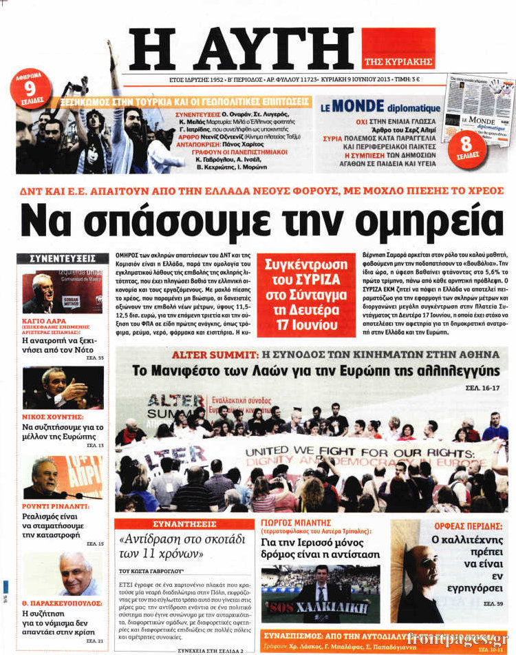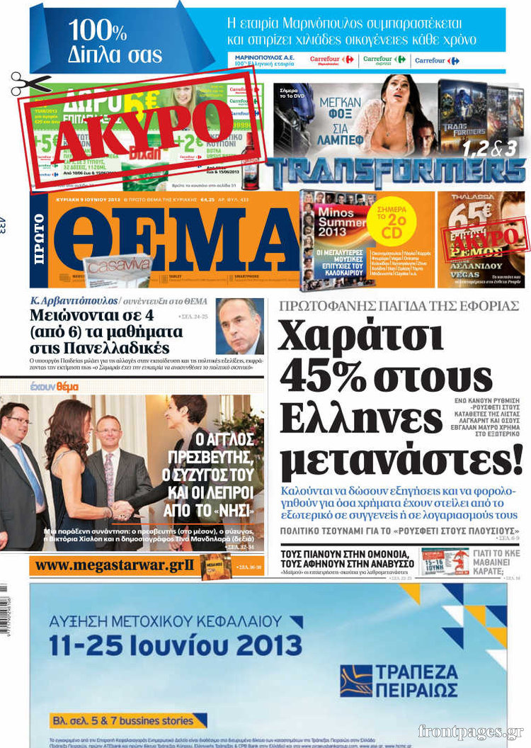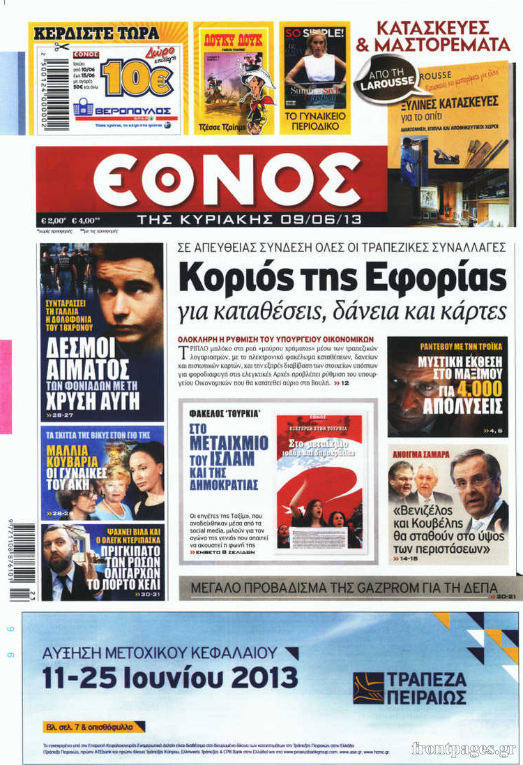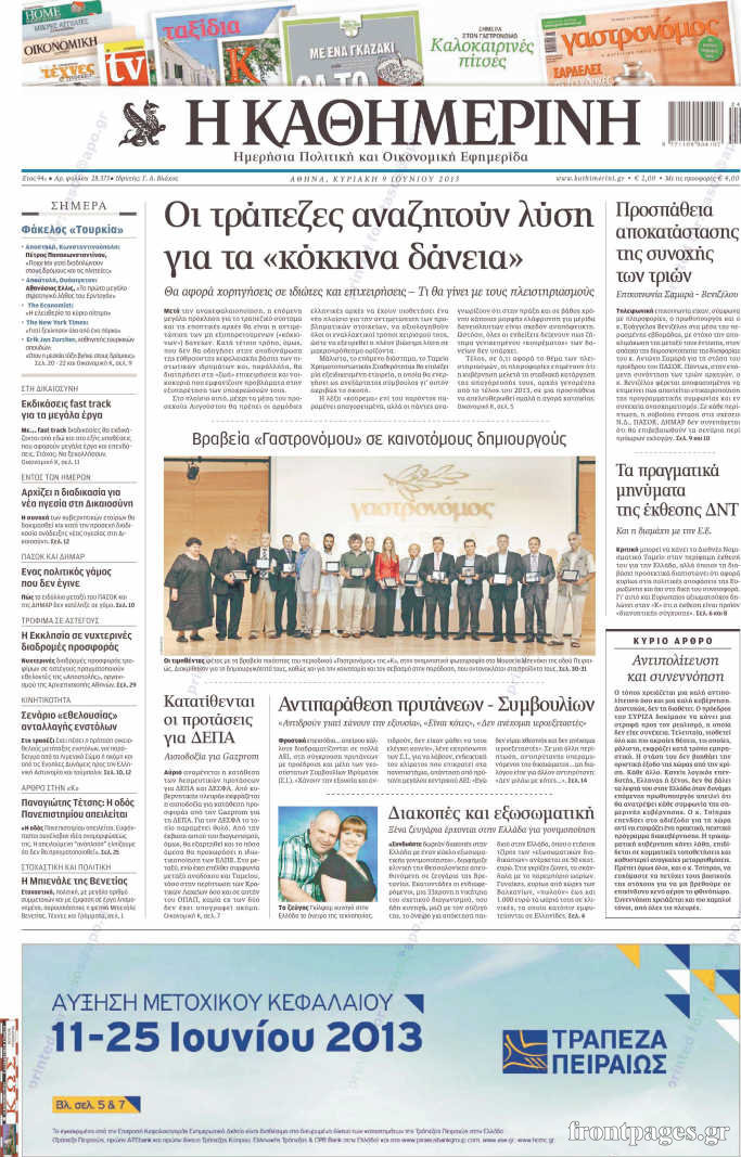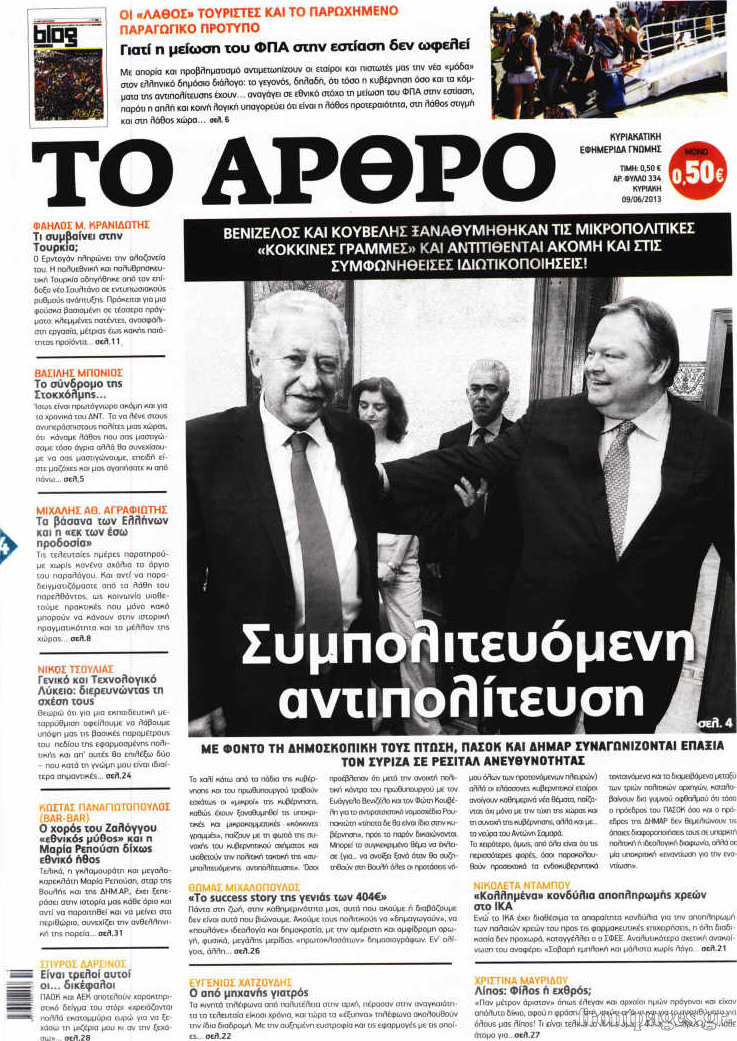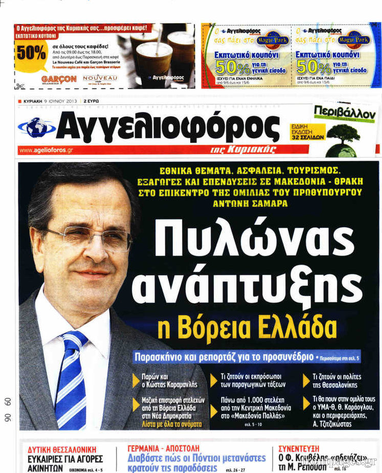 Οι πολιτικές εφημερίδες Enikos Newsroom 08:27, Κυριακή 09 Ιουνίου 2013 Media Οι πολιτικές εφημερίδες , ΕΦΗΜΕΡΙΔΕΣ ΠΟΛΙΤΙΚΕΣ ΕΦΗΜΕΡΙΔΕΣ Μοιράσου το: σχολίασε κι εσύ (0 σχόλια) Ακολουθήστε το enikos.gr στο Google News και μάθετε πρώτοι όλες τις ειδήσεις Δείτε όλες τις τελευταίες ειδήσεις από την Ελλάδα και τον Κόσμο στο enikos.gr Ειδήσεις Ροή Ειδήσεων 1 ώρα πριν Οι αγρότες έκλεισαν την σήραγγα των Τεμπών για τα φορτηγά – Εκτροπή της κυκλοφορίας όλων των οχημάτων από την Αστυνομία – ΦΩΤΟ και ΒΙΝΤΕΟ 1 ώρα πριν Χριστουγεννιάτικο «θαύμα» στη Φουρνά Ευρυτανίας: Πώς γέμισε ξανά με παιδικά χαμόγελα – «Νιώθω περήφανη» λέει η δασκάλα που «ανέστησε» το ορεινό χωριό 54 λεπτά πριν Τσιάρας στον Realfm 97,8: Ο διάλογος είναι πράξη ευθύνης – Η ανακατανομή των διαθέσιμων πόρων μπορεί να γίνει σε συνεννόηση με τους αγρότες 3 ώρες πριν Μόσχα: Πιθανή εμπλοκή της Ουκρανίας στην έκρηξη βόμβας που σκότωσε Ρώσο στρατηγό 2 ώρες πριν Από τα μέσα Ιανουαρίου τα πρώτα «ραβασάκια» στους οδηγούς από τις έξυπνες κάμερες – Τι δήλωσε ο Παπαστεργίου 4 ώρες πριν Τα 4 ζώδια που παίρνουν επιτέλους την αναγνώριση που τους αξίζει – «Απρόσμενες ευκαιρίες, που μοιάζουν με δώρα από το σύμπαν» 2 ώρες πριν Γυναίκα που έχασε 18 κιλά αποκαλύπτει τα μυστικά της επιτυχίας της: «Σταματήστε να γυμνάζεστε απλώς για να ολοκληρώσετε την προπόνηση» 3 ώρες πριν Έχετε κρατήσει αυτά 8 αντικείμενα από την παιδική ηλικία σας; Δείτε τι αποκαλύπτει για τον χαρακτήρα σας 2 ημέρες πριν Enerwave: Το νέο «ρεύμα» στη λιανική ενέργειας που αλλάζει την εμπειρία του καταναλωτή 49 δευτερόλεπτα πριν Συνάντηση Παπασταύρου – Γκιλφόιλ: Στο επίκεντρο ο ρόλος της Ελλάδας ως περιφερειακού ενεργειακού κόμβου 8 λεπτά πριν Κίνα: Eπιβάλλει προσωρινούς δασμούς σε εισαγωγές γαλακτοκομικών προϊόντων από την ΕΕ 15 λεπτά πριν Ζωγράφου: Επτά προσαγωγές στην Πολυτεχνειούπολη 19 λεπτά πριν Άγιος έρωτας – Μαρίνα Ψάλτη: «Κλείνει ένας κύκλος» 24 λεπτά πριν Στη Ραμάλα ο Κυριάκος Μητσοτάκης: Συνάντηση με τον Mαχμούντ Αμπάς – «Είμαστε έτοιμοι να συνεισφέρουμε» ENIKOS NETWORK Νέα μελέτη «αθωώνει» τα κορεσμένα λιπαρά; Τι ισχύει για βούτυρο, τυρί και κόκκινο κρέας Η χειμερινή δραστηριότητα που μπορεί να αυξήσει τον κίνδυνο καρδιακής προσβολής Συντάξεις Ιανουαρίου 2026 και επιδόματα από ΟΠΕΚΑ: Ποιοι πληρώνονται σήμερα Υπερταμείο: Αυτός είναι ο νέος Διευθύνων Σύμβουλος των Συγκοινωνιών Αθηνών – Ομίλου ΟΑΣΑ Χαρτογραφώντας το «σημείο χωρίς επιστροφή»: Για πρώτη φορά αποκαλύπτεται με λεπτομέρεια το ακανθώδες όριο της ατμόσφαιρας τ... Η Google καταργεί τη λειτουργία «dark web report» – Πώς θα μπορούν οι χρήστες να διαγράφουν τα δεδομένα τους περισσότερα 12:25 , Δευτέρα 22 Δεκεμβρίου 2025 Χαμός on air ανάμεσα στις πρωινές εκπομπές του Open και του Mega – «Έχω να δω κάτι τέτοιο από τη δεκαετία του 90’» – «Κάποιοι να κοιτάνε και λίγο στον καθρέφτη» Κόντρα στον… αέρα είχαν οι ενημερωτικές εκπομπές της πρωινής ζώνης στο Open και το Mega,... 10:15 , Δευτέρα 22 Δεκεμβρίου 2025 Πρωτοχρονιάτικο δώρο της ΕΡΤ η «Μεγάλη χίμαιρα» – Διπλή πρεμιέρα για την ακριβότερη ελληνική σειρά Με πρωτότυπο τρόπο και σπαστή πρεμιέρα σε ΕΡΤflix και ΕΡΤ1 θα κάνει η δημόσια τηλεόραση το λαν... 09:45 , Δευτέρα 22 Δεκεμβρίου 2025 Ο χριστουγεννιάτικος τηλεμαραθώνιος αλληλεγγύης του ANT1 για τα παιδιά Ο ANT1 διοργανώνει Χριστουγεννιάτικο Τηλεμαραθώνιο για τα Παιδιά την 22η Δεκεμβρίου 2025, με σ... 09:30 , Δευτέρα 22 Δεκεμβρίου 2025 Eurovision 2026: Φαβορί η Μπέττυ Μαγγίρα Στη