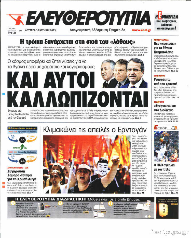 Οι πολιτικές εφημερίδες Enikos Newsroom 08:33, Δευτέρα 10 Ιουνίου 2013 Media Οι πολιτικές εφημερίδες Διαβάστε τα πρωτοσέλιδα των πολιτικών εφημερίδων: ΕΦΗΜΕΡΙΔΕΣ ΠΟΛΙΤΙΚΕΣ ΕΦΗΜΕΡΙΔΕΣ ΠΡΩΤΟΣΕΛΙΔΑ Μοιράσου το: σχολίασε κι εσύ (0 σχόλια) Ακολουθήστε το enikos.gr στο Google News και μάθετε πρώτοι όλες τις ειδήσεις Δείτε όλες τις τελευταίες ειδήσεις από την Ελλάδα και τον Κόσμο στο enikos.gr Ειδήσεις Ροή Ειδήσεων 45 λεπτά πριν Αγρότες: Ανοίγουν το τελωνείο των Κήπων και για τα φορτηγά από απόψε έως και την Παρασκευή 1 ώρα πριν Προκλήσεις: Έστειλαν πάλι οπλισμένα F-16 στο Αιγαίο οι Τούρκοι – Παραβιάσεις και αερομαχίες 45 λεπτά πριν Ποινική δίωξη για δύο κακουργήματα άσκησε ο Εισαγγελέας σε 3 αγρότες 50 λεπτά πριν Σύλλογος Πληγέντων Τεμπών για ΣΔΟΕ: «Δεν τρομοκρατούμαστε. Συνεχίζουμε!» 3 ώρες πριν Πέθανε ο τραγουδιστής Chris Rea σε ηλικία 74 ετών 56 λεπτά πριν Τα μυστικά του «αόρατου» φλερτ: 7 τρόποι για να δείξετε το ενδιαφέρον σας για κάποιον χωρίς να αποκαλυφθούν οι προθέσεις σας 4 ώρες πριν Αυτό το ζώδιο θα ξαναγεννηθεί το 2026 – «Αφήνετε τις δυσκολίες στο παρελθόν και κάνετε restart» 2 ημέρες πριν Enerwave: Το νέο «ρεύμα» στη λιανική ενέργειας που αλλάζει την εμπειρία του καταναλωτή 5 ώρες πριν Ιστορική ανακάλυψη στη Φυσική – Επιβεβαιώθηκε η ύπαρξη του «δεύτερου ήχου» 5 λεπτά πριν Σωκράτης Φάμελλος: Επισκέφθηκε κοινωνικές δομές στη Θεσσαλονίκη – «Χρειαζόμαστε μια ισχυρή Πολιτεία για να υπάρχει κοινωνικό κράτος» 10 λεπτά πριν Ποιοι λόγοι κάνουν τους οδηγούς να οδηγούν γρήγορα 15 λεπτά πριν Porto Leone: Στη γειτονιά με τα κόκκινα φανάρια – Η Αλεξάνδρα ανακαλύπτει το μυστικό της Γαλήνης και της στήνει παγίδα 20 λεπτά πριν Λήξη συναγερμού στη Λαμία: Προσήχθη ο άνδρας που απειλούσε ότι θα βάλει φωτιά ύστερα από επιχείρηση της ΕΛΑΣ 24 λεπτά πριν ΑΠΕΥΘΕΙΑΣ – Οι δηλώσεις Νετανιάχου – Μητσοτάκη – Χριστοδουλίδη μετά την τριμερή Σύνοδο ENIKOS NETWORK Στέλνετε ακόμα Χριστουγεννιάτικες κάρτες; Τι μπορεί να δείχνει για την προσωπικότητά σας Ενεργειακή αναβάθμιση του νοσοκομείου Πατρών «Ο Άγιος Ανδρέας» ΔΥΠΑ: 2.000 νέες θέσεις εργασίας για Άτομα με Αναπηρία σε Δήμους – Λήγει η προθεσμία υποβολής αιτήσεων Κίνα: Γιατί το Πεκίνο επιβάλλει προσωρινούς δασμούς σε εισαγωγές γαλακτοκομικών προϊόντων από την ΕΕ Ο Google Assistant θα παραμείνει λίγο περισσότερο για ορισμένους χρήστες Android Τεστ προσωπικότητας: Το βάζο που θα επιλέξετε αποκαλύπτει πώς λύνετε προβλήματα στη ζωή σας περισσότερα 19:41 , Δευτέρα 22 Δεκεμβρίου 2025 Porto Leone: Στη γειτονιά με τα κόκκινα φανάρια – Η Αλεξάνδρα ανακαλύπτει το μυστικό της Γαλήνης και της στήνει παγίδα Απόψε στις 22:30 στον Alpha η συγκλονιστική συνέχεια της δραματικής σειράς του Apha «Porto Leo... 19:16 , Δευτέρα 22 Δεκεμβρίου 2025 Άγιος έρωτας: Η Πετρούλα αφήνει την τελευταία της πνοή Καθηλώνει το προτελευταίο επεισόδιο της χρονιάς της σειράς “Άγιος Έρωτας” απόψε στ... 18:39 , Δευτέρα 22 Δεκεμβρίου 2025 Να μ’αγαπάς: Ο Θεόφιλος απειλεί να καταστρέψει τη Ζωή Σοκαριστικές αποκαλύψεις έρχονται στο νέο επεισόδιο της σειράς “Να μ΄αγαπάς” απόψε... 17:48 , Δευτέρα 22 Δεκεμβρίου 2025 Βελτιωτικές κινήσεις με νέους συνεργάτες Στοχευμένες κινήσεις για την ενίσχυση του «Καλημέρα Ελλάδα» κάνει ο ΑΝΤ1 ενόψει της νέας χρονι... ΤΕΛΕΥΤΑΙΕΣ ΕΙΔΗΣΕΙΣ 5 λεπτά πριν Σωκράτης Φάμελλος: Επισκέφθηκε κοινωνικές δομές στη... 10 λεπτά πριν Ποιοι λόγοι κάνουν τους οδηγούς να οδηγούν γρήγορα 15 λεπτά πριν Porto Leone: Στη γειτονιά με τα κόκκινα φανάρια – Η.
