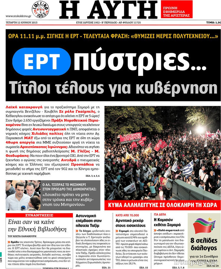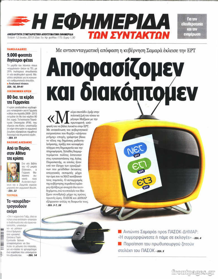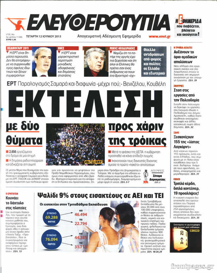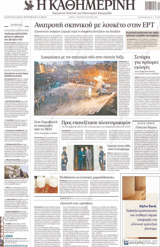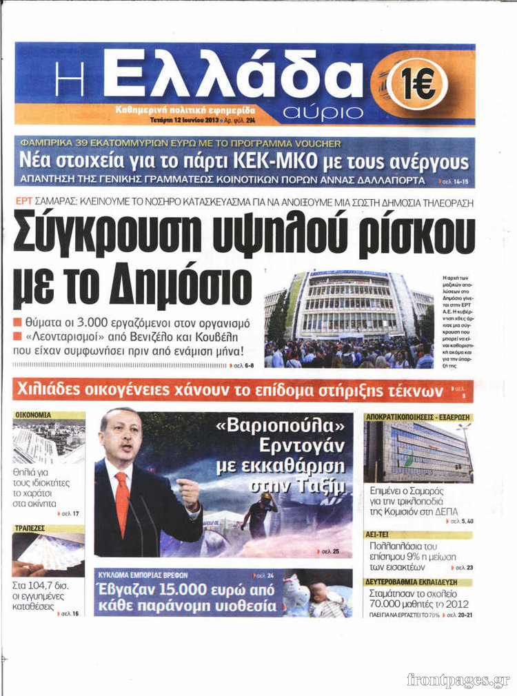 Οι πολιτικές εφημερίδες Enikos Newsroom 08:55, Τετάρτη 12 Ιουνίου 2013 Media Οι πολιτικές εφημερίδες Διαβάστε τα πρωτοσέλιδα των πολιτικών εφημερίδων: ΕΦΗΜΕΡΙΔΕΣ ΠΟΛΙΤΙΚΕΣ ΕΦΗΜΕΡΙΔΕΣ ΠΡΩΤΟΣΕΛΙΔΑ Μοιράσου το: σχολίασε κι εσύ (0 σχόλια) Ακολουθήστε το enikos.gr στο Google News και μάθετε πρώτοι όλες τις ειδήσεις Δείτε όλες τις τελευταίες ειδήσεις από την Ελλάδα και τον Κόσμο στο enikos.gr Ειδήσεις Ροή Ειδήσεων 3 ώρες πριν Χριστούγεννα στα μπλόκα: Επιμένουν στις κινητοποιήσεις τους οι αγρότες – Ανοίγουν τα διόδια το Σαββατοκύριακο 3 ώρες πριν Ουκρανία: Η άνευ προηγουμένου επίθεση σε ρωσικό τάνκερ στη Μεσόγειο και το μήνυμα προς στον Πούτιν – Το «μακρύ χέρι» του Κιέβου 2 ώρες πριν Πούτιν: Τα μηνύματα σε Ευρώπη και ΝΑΤΟ από το μαραθώνιο «σόου» του – Η απαίτηση για «σεβασμό» και η ειρήνη «με τους όρους» της Μόσχας 3 ώρες πριν Τραμπ: Δεν αποκλείει την πιθανότητα ενός πολέμου στη Βενεζουέλα – «Ο Μαδούρο ξέρει καλύτερα από τον καθένα τι ακριβώς θέλω» 4 ώρες πριν Συνεχίζει να προκαλεί ο Μίτσκοσκι: «Για μένα το όνομα Μακεδονία είναι ιερό» 2 ώρες πριν Ανακαλύφθηκαν αρχαία χρυσά νομίσματα 2.200 ετών που απεικονίζουν τον θεό Απόλλωνα – Η άγνωστη σύνδεση με τον Φίλιππο Β΄ της Μακεδονίας 3 ώρες πριν Ύπνος: Μια κρυφή κατάσταση του εγκεφάλου πριν από τον ύπνο μπορεί να είναι το “κλειδί” για υψηλή ευφυΐα και δημιουργικότητα 4 ώρες πριν Αριθμολογία: Οι άνθρωποι που έχουν γεννηθεί αυτές τις 4 ημερομηνίες, συχνά παρεξηγούνται – «Η καλοσύνη τους κρύβει τεράστια δύναμη» 5 ώρες πριν Ξεχάστε το καθάρισμα το Σαββατοκύριακο: Ο «κανόνας των 20 λεπτών» που θα σας λύσει τα χέρια 8 λεπτά πριν Συρία: Μαζικά πλήγματα των ΗΠΑ σε θέσεις του Ισλαμικού Κράτους – Χέγκσεθ: «Δεν είναι αρχή πολέμου, είναι μια δήλωση εκδίκησης» για το θάνατο των στρατιωτών μας 21 λεπτά πριν Ουκρανία: Ολοκληρώθηκαν οι συνομιλίες με τους Αμερικανούς κι Ευρωπαίους διαπραγματευτές 36 λεπτά πριν Μπαρτσελόνα – Μπασκόνια 134-124: Οι «μπλαουγκράνα» πήραν το ματς της χρονιάς ύστερα από τρεις παρατάσεις 51 λεπτά πριν Φαίη Σκορδά: «Παλιότερα τα κομπλιμέντα τα προσπερνούσα, τώρα τα έχω ανάγκη» 1 ώρα πριν Βασίλης Σπανούλης: Δεν εμφανίστηκε ούτε ένας δημοσιογράφος στην συνέντευξη Τύπου – «Καλησπέρα στον… κανέναν», δείτε βίντεο ENIKOS NETWORK Το ΕΚΑΒ τιμήθηκε από την Ακαδημία Αθηνών για τα 40 χρόνια προσφοράς του Έχετε πραγματικά μεγάλη καρδιά; 10 χαρακτηριστικά όσων έχουν καλοσύνη Αναστολή μέτρων αναγκαστικής εκτέλεσης για κτηνοτρόφους που πλήττονται από την ευλογιά των αιγοπροβάτων Πλήρης επάρκεια προϊόντων στις λαϊκές της Αττικής, παρά τις αγροτικές κινητοποιήσεις – Τι απαντούν οι πωλητές Χαρτογραφώντας το «σημείο χωρίς επιστροφή»: Για πρώτη φορά αποκαλύπτεται με λεπτομέρεια το ακανθώδες όριο της ατμόσφαιρας τ... Η Google καταργεί τη λειτουργία «dark web report» – Πώς θα μπορούν οι χρήστες να διαγράφουν τα δεδομένα τους περισσότερα 22:42 , Παρασκευή 19 Δεκεμβρίου 2025 Γιώργος Γιαννόπουλος για “Το σόι σου”: “Είναι ευτυχία και ευλογία αυτή η σειρά” «Είναι ευτυχία και ευλογία η συγκυρία αυτής της σειράς», θα πει ο Γιώργος Γιαννόπουλος -ο αγαπ... 20:37 , Παρασκευή 19 Δεκεμβρίου 2025 Don’t Forget The Lyrics: Η Έλλη Κοκκίνου υποδέχεται 4 παίκτες που θα κάνουν τα πάντα για να μη χάσουν ούτε… μισή λέξη από τους στίχους Το «Don’t Forget The Lyrics» επιστρέφει απόψε, Παρασκευή 19 Δεκεμβρίου, στις 21:00 με νέο επει... 19:31 , Παρασκευή 19 Δεκεμβρίου 2025 GNTM: Απόψε ο μεγάλος τελικός για τους 4 φιναλίστ Έ