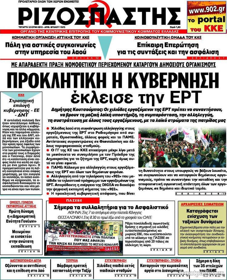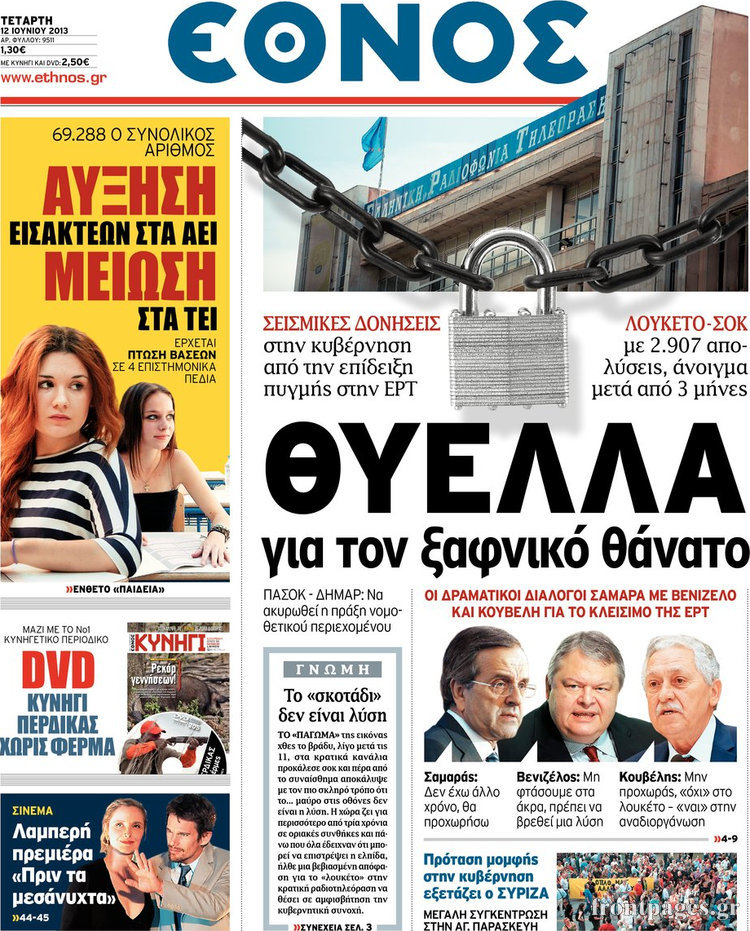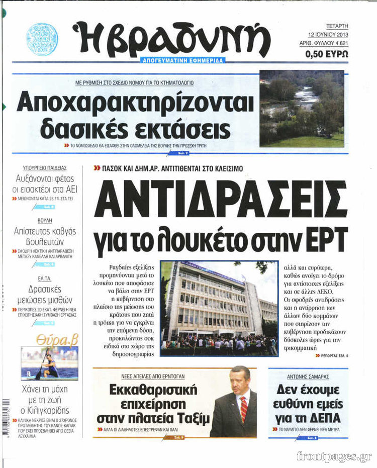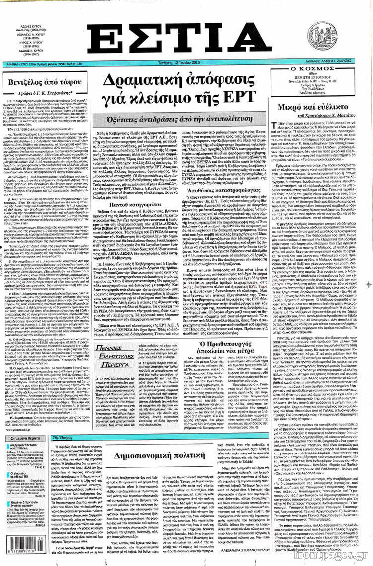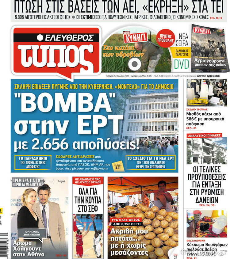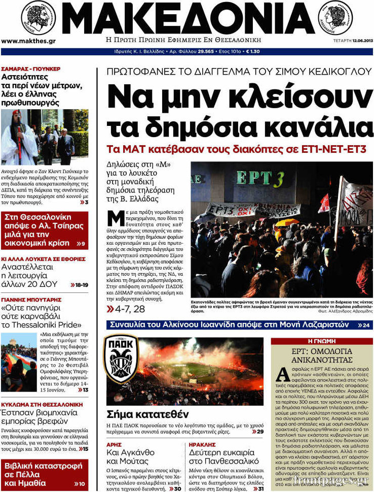 Οι πολιτικές εφημερίδες Enikos Newsroom 08:55, Τετάρτη 12 Ιουνίου 2013 Media Οι πολιτικές εφημερίδες Διαβάστε τα πρωτοσέλιδα των πολιτικών εφημερίδων: ΕΦΗΜΕΡΙΔΕΣ ΠΟΛΙΤΙΚΕΣ ΕΦΗΜΕΡΙΔΕΣ ΠΡΩΤΟΣΕΛΙΔΑ Μοιράσου το: σχολίασε κι εσύ (0 σχόλια) Ακολουθήστε το enikos.gr στο Google News και μάθετε πρώτοι όλες τις ειδήσεις Δείτε όλες τις τελευταίες ειδήσεις από την Ελλάδα και τον Κόσμο στο enikos.gr Ειδήσεις Ροή Ειδήσεων 3 ώρες πριν Χριστούγεννα στα μπλόκα: Επιμένουν στις κινητοποιήσεις τους οι αγρότες – Ανοίγουν τα διόδια το Σαββατοκύριακο 3 ώρες πριν Ουκρανία: Η άνευ προηγουμένου επίθεση σε ρωσικό τάνκερ στη Μεσόγειο και το μήνυμα προς στον Πούτιν – Το «μακρύ χέρι» του Κιέβου 2 ώρες πριν Πούτιν: Τα μηνύματα σε Ευρώπη και ΝΑΤΟ από το μαραθώνιο «σόου» του – Η απαίτηση για «σεβασμό» και η ειρήνη «με τους όρους» της Μόσχας 3 ώρες πριν Τραμπ: Δεν αποκλείει την πιθανότητα ενός πολέμου στη Βενεζουέλα – «Ο Μαδούρο ξέρει καλύτερα από τον καθένα τι ακριβώς θέλω» 4 ώρες πριν Συνεχίζει να προκαλεί ο Μίτσκοσκι: «Για μένα το όνομα Μακεδονία είναι ιερό» 2 ώρες πριν Ανακαλύφθηκαν αρχαία χρυσά νομίσματα 2.200 ετών που απεικονίζουν τον θεό Απόλλωνα – Η άγνωστη σύνδεση με τον Φίλιππο Β΄ της Μακεδονίας 3 ώρες πριν Ύπνος: Μια κρυφή κατάσταση του εγκεφάλου πριν από τον ύπνο μπορεί να είναι το “κλειδί” για υψηλή ευφυΐα και δημιουργικότητα 4 ώρες πριν Αριθμολογία: Οι άνθρωποι που έχουν γεννηθεί αυτές τις 4 ημερομηνίες, συχνά παρεξηγούνται – «Η καλοσύνη τους κρύβει τεράστια δύναμη» 5 ώρες πριν Ξεχάστε το καθάρισμα το Σαββατοκύριακο: Ο «κανόνας των 20 λεπτών» που θα σας λύσει τα χέρια 8 λεπτά πριν Συρία: Μαζικά πλήγματα των ΗΠΑ σε θέσεις του Ισλαμικού Κράτους – Χέγκσεθ: «Δεν είναι αρχή πολέμου, είναι μια δήλωση εκδίκησης» για το θάνατο των στρατιωτών μας 21 λεπτά πριν Ουκρανία: Ολοκληρώθηκαν οι συνομιλίες με τους Αμερικανούς κι Ευρωπαίους διαπραγματευτές 36 λεπτά πριν Μπαρτσελόνα – Μπασκόνια 134-124: Οι «μπλαουγκράνα» πήραν το ματς της χρονιάς ύστερα από τρεις παρατάσεις 51 λεπτά πριν Φαίη Σκορδά: «Παλιότερα τα κομπλιμέντα τα προσπερνούσα, τώρα τα έχω ανάγκη» 1 ώρα πριν Βασίλης Σπανούλης: Δεν εμφανίστηκε ούτε ένας δημοσιογράφος στην συνέντευξη Τύπου – «Καλησπέρα στον… κανέναν», δείτε βίντεο ENIKOS NETWORK Το ΕΚΑΒ τιμήθηκε από την Ακαδημία Αθηνών για τα 40 χρόνια προσφοράς του Έχετε πραγματικά μεγάλη καρδιά; 10 χαρακτηριστικά όσων έχουν καλοσύνη Αναστολή μέτρων αναγκαστικής εκτέλεσης για κτηνοτρόφους που πλήττονται από την ευλογιά των αιγοπροβάτων Πλήρης επάρκεια προϊόντων στις λαϊκές της Αττικής, παρά τις αγροτικές κινητοποιήσεις – Τι απαντούν οι πωλητές Χαρτογραφώντας το «σημείο χωρίς επιστροφή»: Για πρώτη φορά αποκαλύπτεται με λεπτομέρεια το ακανθώδες όριο της ατμόσφαιρας τ... Η Google καταργεί τη λειτουργία «dark web report» – Πώς θα μπορούν οι χρήστες να διαγράφουν τα δεδομένα τους περισσότερα 22:42 , Παρασκευή 19 Δεκεμβρίου 2025 Γιώργος Γιαννόπουλος για “Το σόι σου”: “Είναι ευτυχία και ευλογία αυτή η σειρά” «Είναι ευτυχία και ευλογία η συγκυρία αυτής της σειράς», θα πει ο Γιώργος Γιαννόπουλος -ο αγαπ... 20:37 , Παρασκευή 19 Δεκεμβρίου 2025 Don’t Forget The Lyrics: Η Έλλη Κοκκίνου υποδέχεται 4 παίκτες που θα κάνουν τα πάντα για να μη χάσουν ούτε… μισή λέξη από τους στίχους Το «Don’t Forget The Lyrics» επιστρέφει απόψε, Παρασκευή 19 Δεκεμβρίου, στις 21:00 με νέο επει... 19:31 , Παρασκευή 19 Δεκεμβρίου 2025 GNTM: Απόψε ο μεγάλος τελικός για τους 4 φιναλίστ Έ