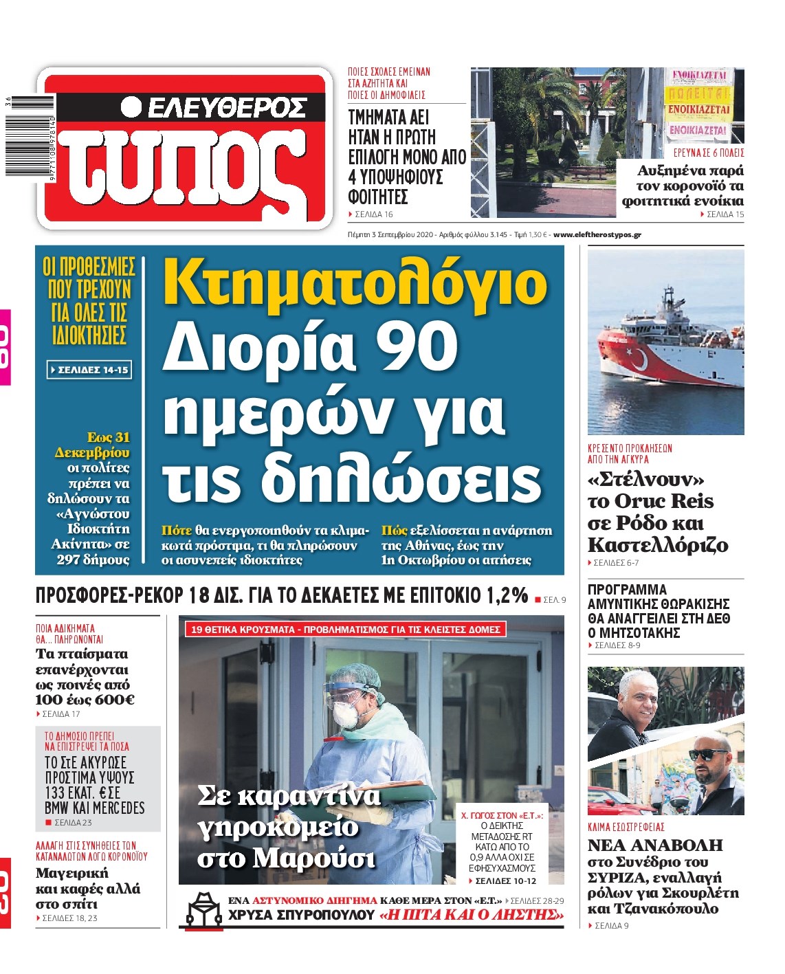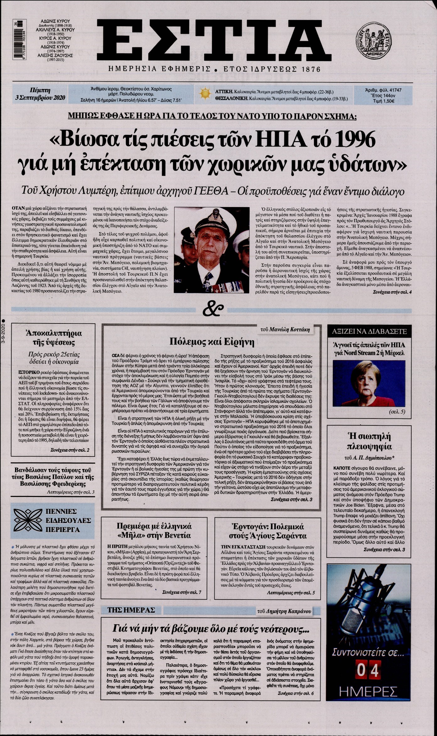 Οι πολιτικές εφημερίδες 3/9/2020 Διονύσης Νίκκας 06:14, Πέμπτη 03 Σεπτεμβρίου 2020 Media Διαβάστε τα πρωτοσέλιδα των πολιτικών εφημερίδων… ΠΟΛΙΤΙΚΕΣ ΕΦΗΜΕΡΙΔΕΣ ΠΡΩΤΟΣΕΛΙΔΑ Μοιράσου το: σχολίασε κι εσύ (0 σχόλια) Ακολουθήστε το enikos.gr στο Google News και μάθετε πρώτοι όλες τις ειδήσεις Δείτε όλες τις τελευταίες ειδήσεις από την Ελλάδα και τον Κόσμο στο enikos.gr Ειδήσεις Ροή Ειδήσεων 9 ώρες πριν Χριστούγεννα στα μπλόκα: Επιμένουν στις κινητοποιήσεις τους οι αγρότες – Ανοίγουν τα διόδια το Σαββατοκύριακο 2 ώρες πριν Σαρωτικοί οι έλεγχοι στους δρόμους ενόψει εορτών – Μπλόκα της τροχαίας σε κεντρικές αρτηρίες της Αττικής 9 ώρες πριν Πούτιν: Τα μηνύματα σε Ευρώπη και ΝΑΤΟ από το μαραθώνιο «σόου» του – Η απαίτηση για «σεβασμό» και η ειρήνη «με τους όρους» της Μόσχας 8 ώρες πριν ΗΠΑ: Η κυβέρνηση του Ντόναλντ Τραμπ άρχισε να δημοσιοποιεί τα αρχεία Έπσταϊν 8 ώρες πριν Άνω Λιόσια: Πυροβολισμοί σε επιχείρηση με χαλιά – Εντοπίστηκαν 10 κάλυκες 2 ώρες πριν Αυγά: Πόσα μπορείτε να τρώτε την ημέρα με ασφάλεια για μέγιστη πρόσληψη πρωτεΐνης 2 ώρες πριν Τα ζώδια σήμερα, Σάββατο 20 Δεκεμβρίου: Παρθένοι, το σύμπαν σας δίνει το κλειδί 9 ώρες πριν Ανακαλύφθηκαν αρχαία χρυσά νομίσματα 2.200 ετών που απεικονίζουν τον θεό Απόλλωνα – Η άγνωστη σύνδεση με τον Φίλιππο Β΄ της Μακεδονίας 2 ώρες πριν Οπτική ψευδαίσθηση: Μόνο αν είσαι ο Σέρλοκ Χολμς θα βρεις τον αριθμό «87» σε 7 δευτερόλεπτα 47 δευτερόλεπτα πριν Υπόθεση Έπσταϊν: Το Υπουργείο Δικαιοσύνης δημοσιοποίησε μια σειρά από εξαιρετικά επεξεργασμένα αρχεία – «Λείπουν τα πιο σημαντικά έγγραφα», λένε οι Δημοκρατικοί 4 λεπτά πριν Καιρός: Αλλαγή σκηνικού σήμερα με βροχές και πτώση της θερμοκρασίας – Οι προβλέψεις των μετεωρολόγων για τα Χριστούγεννα 11 λεπτά πριν ΟΝΕΧ – MEGATUGS: Ξεκίνησε η ναυπήγηση ρυμουλκών στην Ελλάδα – Προθάλαμος πολεμικών πλοίων – Δείτε φωτογραφίες και βίντεο 20 λεπτά πριν Φοινικούντα: Σήμερα απολογείται ο 30χρονος γιος γνωστού επιχειρηματία της Πλάκας 28 λεπτά πριν Οι αθλητικές μεταδόσεις 20/12/2025 ENIKOS NETWORK Πρέπει να αποδέχεστε ή να απορρίπτετε όλα τα cookies; Ένας ειδικός εξηγεί Η αγαπημένη λιχουδιά των πόνι που μπορεί να ενισχύσει όραση, εγκέφαλο και ανοσοποιητικό Αναστολή μέτρων αναγκαστικής εκτέλεσης για κτηνοτρόφους που πλήττονται από την ευλογιά των αιγοπροβάτων Πλήρης επάρκεια προϊόντων στις λαϊκές της Αττικής, παρά τις αγροτικές κινητοποιήσεις – Τι απαντούν οι πωλητές Χαρτογραφώντας το «σημείο χωρίς επιστροφή»: Για πρώτη φορά αποκαλύπτεται με λεπτομέρεια το ακανθώδες όριο της ατμόσφαιρας τ... Η Google καταργεί τη λειτουργία «dark web report» – Πώς θα μπορούν οι χρήστες να διαγράφουν τα δεδομένα τους περισσότερα 05:48 , Σάββατο 20 Δεκεμβρίου 2025 Οι οικονομικές εφημερίδες 20/12/2025 Διαβάστε τα πρωτοσέλιδα από τις οικονομικές εφημερίδες, σήμερα 20/12/2025. 05:43 , Σάββατο 20 Δεκεμβρίου 2025 Οι αθλητικές εφημερίδες 20/12/2025 Διαβάστε τα πρωτοσέλιδα από τις αθλητικές εφημερίδες, σήμερα 20/12/2025. 05:38 , Σάββατο 20 Δεκεμβρίου 2025 Οι πολιτικές εφημερίδες 20/12/2025 Διαβάστε τα πρωτοσέλιδα από τις πολιτικές εφημερίδες, σήμερα 20/12/2025. 04:20 , Σάββατο 20 Δεκεμβρίου 2025 Αγγελική Νικολούλη: Τα συλλυπητήρια για την απώλεια της Ειρήνης Μαρινάκη Τα συλληπητήρια στον πρόεδρο του Mega, τον Βαγγέλη Μαρινάκη, για την απώλεια της μητέρας του Ε... ΤΕΛΕΥΤΑΙΕΣ ΕΙΔΗΣΕΙΣ 47 δευτερόλεπτα πριν Υπόθεση Έπσταϊν: Το Υπουργείο Δικαιοσύνης... 4 λεπτά πριν Καιρός: Αλλαγή σκηνικού σήμερα με βροχές 