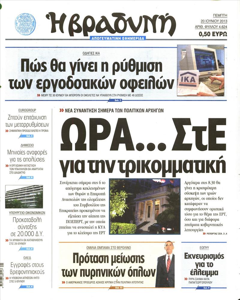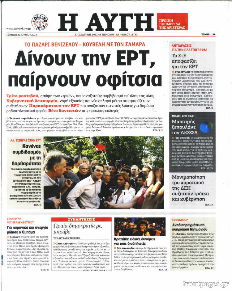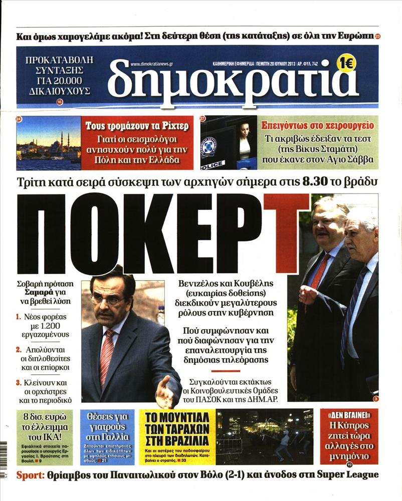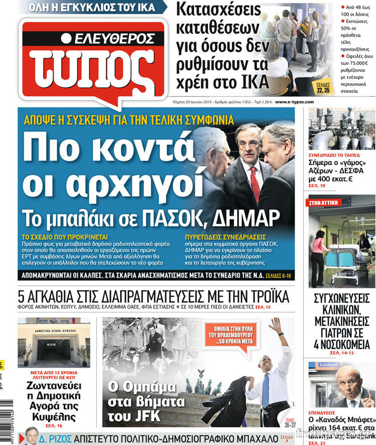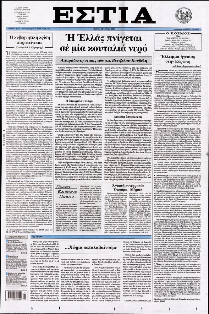 Οι πολιτικές εφημερίδες Enikos Newsroom 08:29, Πέμπτη 20 Ιουνίου 2013 Media Οι πολιτικές εφημερίδες Διαβάστε τα πρωτοσέλιδα των πολιτικών εφημερίδων: ΕΦΗΜΕΡΙΔΕΣ ΠΟΛΙΤΙΚΕΣ ΕΦΗΜΕΡΙΔΕΣ ΠΡΩΤΟΣΕΛΙΔΑ Μοιράσου το: σχολίασε κι εσύ (0 σχόλια) Ακολουθήστε το enikos.gr στο Google News και μάθετε πρώτοι όλες τις ειδήσεις Δείτε όλες τις τελευταίες ειδήσεις από την Ελλάδα και τον Κόσμο στο enikos.gr Ειδήσεις Ροή Ειδήσεων 2 ώρες πριν Ζελένσκι: Μόνο οι ΗΠΑ και ο Τραμπ μπορούν να πιέσουν τη Ρωσία να βάλει τέλος στον πόλεμο 2 ώρες πριν Φοινικούντα: Προφυλακιστέος ο 30χρονος για συνέργεια στη διπλή δολοφονία – Και άλλα πρόσωπα στο «μικροσκόπιο» 3 ώρες πριν Κυριάκος Μητσοτάκης: Στην Ιερουσαλήμ την Τρίτη ο Πρωθυπουργός για την τριμερή Ελλάδας, Κύπρου, Ισραήλ – Θα συναντηθεί και με τον Αμπάς 6 ώρες πριν Πώς δρούσε το κύκλωμα που διακινούσε ναρκωτικά σε σχολεία – Υπέβαλαν σε βασανιστήρια όσους δεν τηρούσαν τους «κανόνες πειθαρχίας» 2 ώρες πριν Πάπας Λέων: Όταν έχει αϋπνίες επενδύει παραγωγικά τον χρόνο του – Ποιο παιχνίδι παίζει στο κινητό 2 ώρες πριν Αριθμολογία: Ο αριθμός του φύλακα αγγέλου σας, με βάση τον μήνα γέννησής σας – «Έτσι σας στέλνει σημάδια το σύμπαν» 3 ώρες πριν Πώς να απαλλαγείτε από τη μυρωδιά του τηγανητού φαγητού: Το μυστικό βρίσκεται στην κουζίνα σας 4 ώρες πριν Μήπως οι γιορτές σας δεν είναι τόσο τέλειες; 7 χριστουγεννιάτικες συνήθειες που μαρτυρούν ότι μια οικογένεια είναι δυσλειτουργική 14 ώρες πριν Enerwave: Το νέο «ρεύμα» στη λιανική ενέργειας που αλλάζει την εμπειρία του καταναλωτή 6 λεπτά πριν Ολυμπιακός – Κηφισιά 1-1: Δεύτερη σερί ισοπαλία για τους Ερυθρόλευκους – Υπό… αμφισβήτηση η κορυφή της Super League 17 λεπτά πριν Κύκλωμα διακίνησης ναρκωτικών σε σχολεία: Τηλεφωνούσαν στους ανηλίκους την ώρα του μαθήματος – Οι διάλογοι-σοκ, τα «ψευδώνυμα» και τα βασανιστήρια 26 λεπτά πριν Χαβιέρ Μιλέι: Ο πρόεδρος της Αργεντινής χαιρετίζει την «πίεση των ΗΠΑ» στη Βενεζουέλα 34 λεπτά πριν Ξένια Τσίρκοβα: Έμαθε από την τηλεόραση ότι είναι η μεγάλη νικήτρια του GNTM – Η αντίδρασή της – ΒΙΝΤΕΟ 42 λεπτά πριν Ύπνος: Η διατροφή που μπορεί να σας βοηθήσει να κοιμάστε καλύτερα και να ζήσετε περισσότερο ENIKOS NETWORK Οι γυναίκες αποκαλύπτουν το πιο ελκυστικό πράγμα που μπορεί να κάνει ένας άνδρας Ομορφιά και αντιγήρανση: Ειδικοί μιλούν για συσκευές περιποίησης του δέρματος Ακύρωση ΑΦΜ για απάτες – Ποιους βάζει στο στόχαστρο η ΑΑΔΕ Ρεύμα: Πώς μπορείτε να αλλάξετε πάροχο γρήγορα και εύκολα – Τα βήματα της διαδικασίας Χαρτογραφώντας το «σημείο χωρίς επιστροφή»: Για πρώτη φορά αποκαλύπτεται με λεπτομέρεια το ακανθώδες όριο της ατμόσφαιρας τ... Η Google καταργεί τη λειτουργία «dark web report» – Πώς θα μπορούν οι χρήστες να διαγράφουν τα δεδομένα τους περισσότερα 20:30 , Σάββατο 20 Δεκεμβρίου 2025 Αυτή την Κυριακή με τη Realnews: Instyle, μαζί Drive και Realnews Geopolitics Αυτή την Κυριακή με τη Realnews: Instyle, μαζί Drive και Realnews Geopolitics Instyle Η Άννα Ρ... 20:28 , Σάββατο 20 Δεκεμβρίου 2025 Ο ΑΝΤ1 γεμίζει τις γιορτές με μουσική – Ποιους καλλιτέχνες θα απολαύσουμε Φέτος στον ΑΝΤ1 γιορτάζουμε τις νύχτες μας παρέα με αγαπημένους καλλιτέχνες και μεγάλες μουσι... 18:19 , Σάββατο 20 Δεκεμβρίου 2025 HOTΕΛ ΕΛVIRA: Η Ελβίρα μαθαίνει πως ο Χάρι μένει κρυφά στο ξενοδοχείο του Παντελή Συνεχίζονται οι εκλογές για πρόεδρο, στο νέο επεισόδιο της κωμικής σειράς του MEGA, HOTΕΛ ΕΛVI... 14:04 , Σάββατο 20 Δεκεμβρίου 2025 Η Realnews αυτής της Κυριακής (21/12/2025) Με τίτλο: «Ασπίδα προστασίας για την Ελλάδ