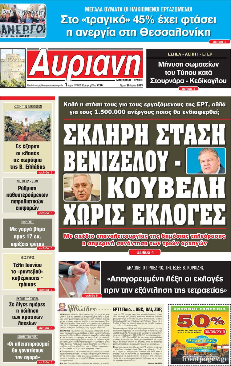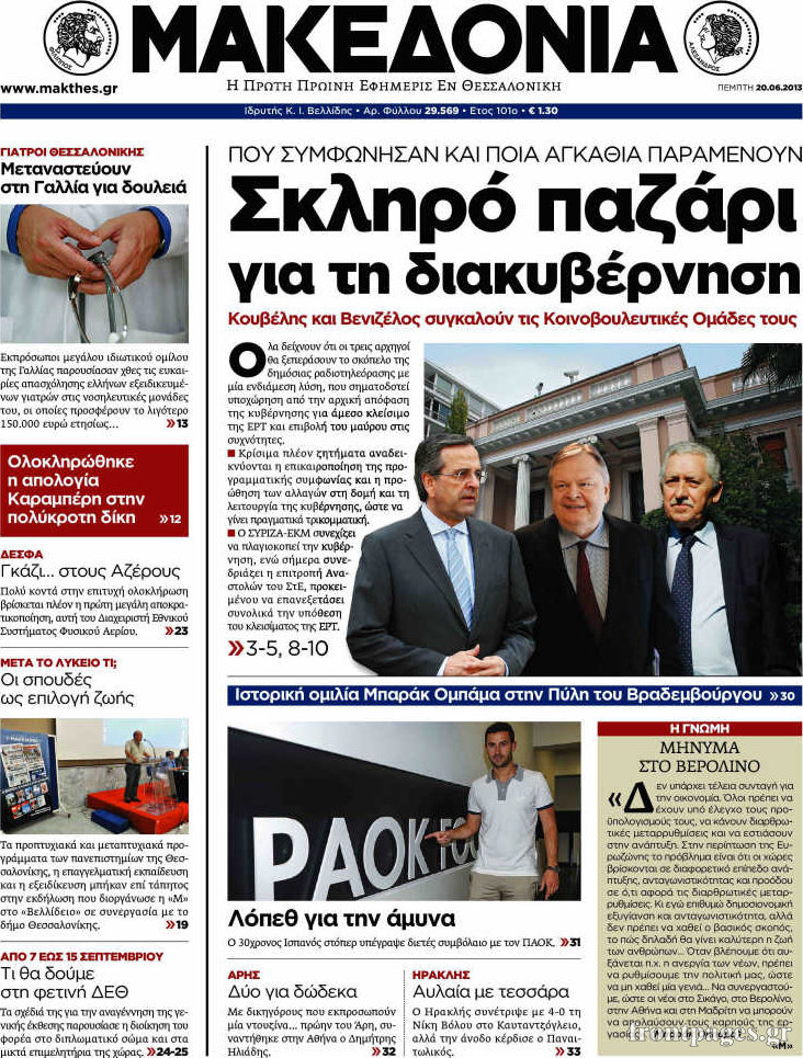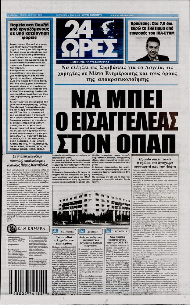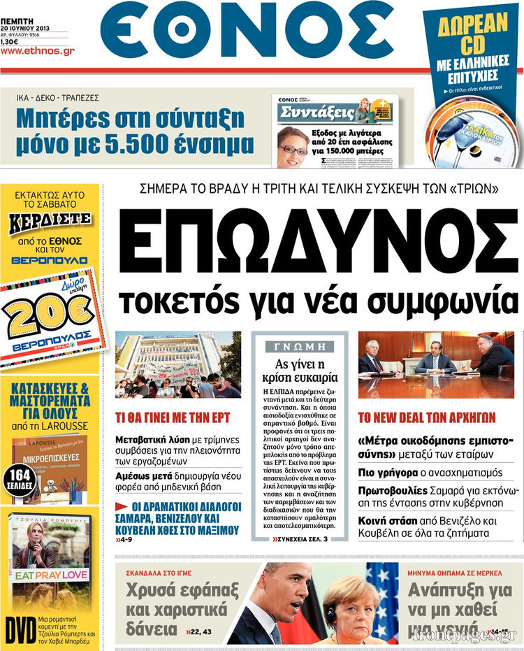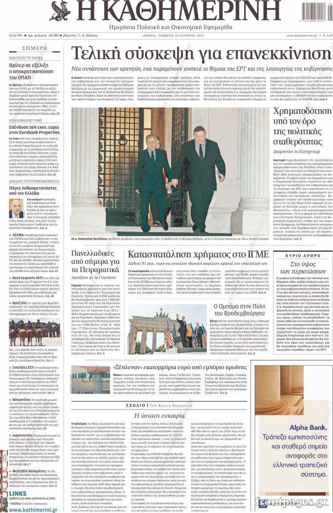Οι πολιτικές εφημερίδες Enikos Newsroom 08:29, Πέμπτη 20 Ιουνίου 2013 Media Οι πολιτικές εφημερίδες Διαβάστε τα πρωτοσέλιδα των πολιτικών εφημερίδων: ΕΦΗΜΕΡΙΔΕΣ ΠΟΛΙΤΙΚΕΣ ΕΦΗΜΕΡΙΔΕΣ ΠΡΩΤΟΣΕΛΙΔΑ Μοιράσου το: σχολίασε κι εσύ (0 σχόλια) Ακολουθήστε το enikos.gr στο Google News και μάθετε πρώτοι όλες τις ειδήσεις Δείτε όλες τις τελευταίες ειδήσεις από την Ελλάδα και τον Κόσμο στο enikos.gr Ειδήσεις Ροή Ειδήσεων 2 ώρες πριν Ζελένσκι: Μόνο οι ΗΠΑ και ο Τραμπ μπορούν να πιέσουν τη Ρωσία να βάλει τέλος στον πόλεμο 2 ώρες πριν Φοινικούντα: Προφυλακιστέος ο 30χρονος για συνέργεια στη διπλή δολοφονία – Και άλλα πρόσωπα στο «μικροσκόπιο» 3 ώρες πριν Κυριάκος Μητσοτάκης: Στην Ιερουσαλήμ την Τρίτη ο Πρωθυπουργός για την τριμερή Ελλάδας, Κύπρου, Ισραήλ – Θα συναντηθεί και με τον Αμπάς 6 ώρες πριν Πώς δρούσε το κύκλωμα που διακινούσε ναρκωτικά σε σχολεία – Υπέβαλαν σε βασανιστήρια όσους δεν τηρούσαν τους «κανόνες πειθαρχίας» 2 ώρες πριν Πάπας Λέων: Όταν έχει αϋπνίες επενδύει παραγωγικά τον χρόνο του – Ποιο παιχνίδι παίζει στο κινητό 2 ώρες πριν Αριθμολογία: Ο αριθμός του φύλακα αγγέλου σας, με βάση τον μήνα γέννησής σας – «Έτσι σας στέλνει σημάδια το σύμπαν» 3 ώρες πριν Πώς να απαλλαγείτε από τη μυρωδιά του τηγανητού φαγητού: Το μυστικό βρίσκεται στην κουζίνα σας 4 ώρες πριν Μήπως οι γιορτές σας δεν είναι τόσο τέλειες; 7 χριστουγεννιάτικες συνήθειες που μαρτυρούν ότι μια οικογένεια είναι δυσλειτουργική 14 ώρες πριν Enerwave: Το νέο «ρεύμα» στη λιανική ενέργειας που αλλάζει την εμπειρία του καταναλωτή 6 λεπτά πριν Ολυμπιακός – Κηφισιά 1-1: Δεύτερη σερί ισοπαλία για τους Ερυθρόλευκους – Υπό… αμφισβήτηση η κορυφή της Super League 17 λεπτά πριν Κύκλωμα διακίνησης ναρκωτικών σε σχολεία: Τηλεφωνούσαν στους ανηλίκους την ώρα του μαθήματος – Οι διάλογοι-σοκ, τα «ψευδώνυμα» και τα βασανιστήρια 26 λεπτά πριν Χαβιέρ Μιλέι: Ο πρόεδρος της Αργεντινής χαιρετίζει την «πίεση των ΗΠΑ» στη Βενεζουέλα 34 λεπτά πριν Ξένια Τσίρκοβα: Έμαθε από την τηλεόραση ότι είναι η μεγάλη νικήτρια του GNTM – Η αντίδρασή της – ΒΙΝΤΕΟ 42 λεπτά πριν Ύπνος: Η διατροφή που μπορεί να σας βοηθήσει να κοιμάστε καλύτερα και να ζήσετε περισσότερο ENIKOS NETWORK Οι γυναίκες αποκαλύπτουν το πιο ελκυστικό πράγμα που μπορεί να κάνει ένας άνδρας Ομορφιά και αντιγήρανση: Ειδικοί μιλούν για συσκευές περιποίησης του δέρματος Ακύρωση ΑΦΜ για απάτες – Ποιους βάζει στο στόχαστρο η ΑΑΔΕ Ρεύμα: Πώς μπορείτε να αλλάξετε πάροχο γρήγορα και εύκολα – Τα βήματα της διαδικασίας Χαρτογραφώντας το «σημείο χωρίς επιστροφή»: Για πρώτη φορά αποκαλύπτεται με λεπτομέρεια το ακανθώδες όριο της ατμόσφαιρας τ... Η Google καταργεί τη λειτουργία «dark web report» – Πώς θα μπορούν οι χρήστες να διαγράφουν τα δεδομένα τους περισσότερα 20:30 , Σάββατο 20 Δεκεμβρίου 2025 Αυτή την Κυριακή με τη Realnews: Instyle, μαζί Drive και Realnews Geopolitics Αυτή την Κυριακή με τη Realnews: Instyle, μαζί Drive και Realnews Geopolitics Instyle Η Άννα Ρ... 20:28 , Σάββατο 20 Δεκεμβρίου 2025 Ο ΑΝΤ1 γεμίζει τις γιορτές με μουσική – Ποιους καλλιτέχνες θα απολαύσουμε Φέτος στον ΑΝΤ1 γιορτάζουμε τις νύχτες μας παρέα με αγαπημένους καλλιτέχνες και μεγάλες μουσι... 18:19 , Σάββατο 20 Δεκεμβρίου 2025 HOTΕΛ ΕΛVIRA: Η Ελβίρα μαθαίνει πως ο Χάρι μένει κρυφά στο ξενοδοχείο του Παντελή Συνεχίζονται οι εκλογές για πρόεδρο, στο νέο επεισόδιο της κωμικής σειράς του MEGA, HOTΕΛ ΕΛVI... 14:04 , Σάββατο 20 Δεκεμβρίου 2025 Η Realnews αυτής της Κυριακής (21/12/2025) Με τίτλο: «Ασπίδα προστασίας για την Ελλάδ