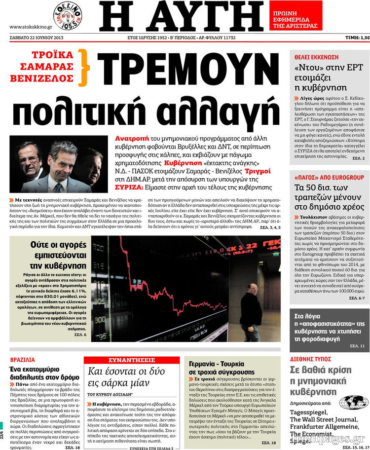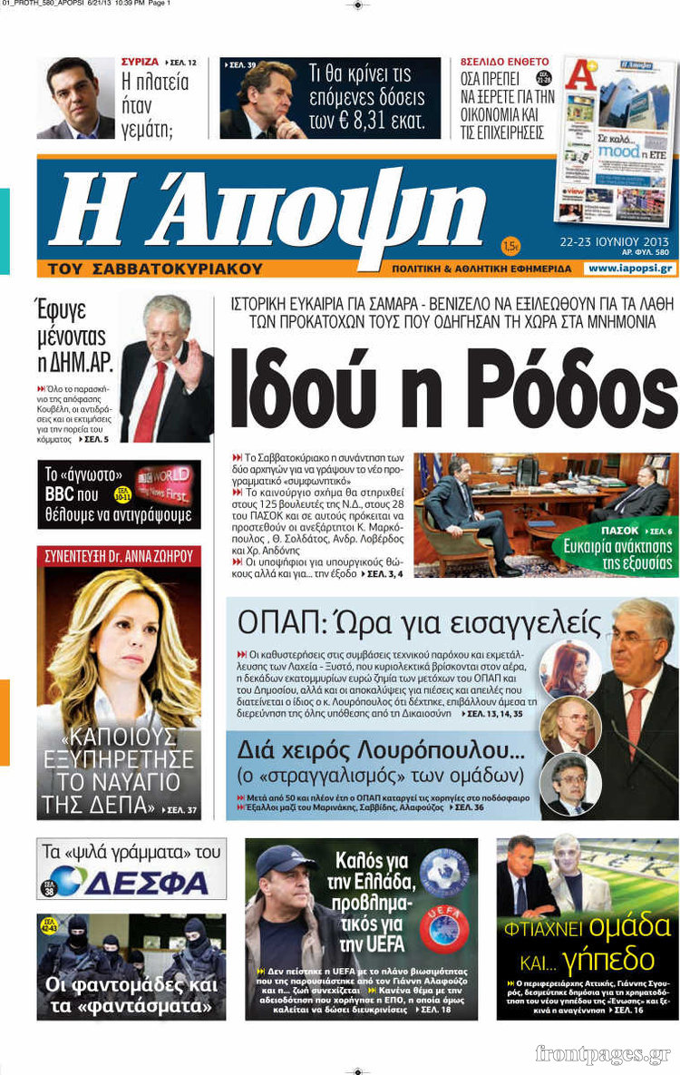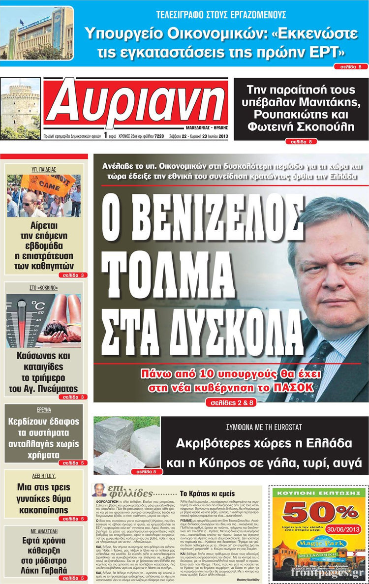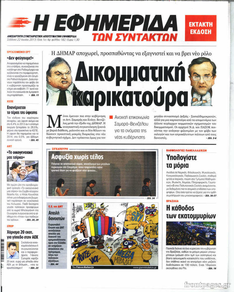 Οι πολιτικές εφημερίδες Enikos Newsroom 08:10, Σάββατο 22 Ιουνίου 2013 Media Οι πολιτικές εφημερίδες ΕΦΗΜΕΡΙΔΕΣ ΠΟΛΙΤΙΚΕΣ ΕΦΗΜΕΡΙΔΕΣ Μοιράσου το: σχολίασε κι εσύ (0 σχόλια) Ακολουθήστε το enikos.gr στο Google News και μάθετε πρώτοι όλες τις ειδήσεις Δείτε όλες τις τελευταίες ειδήσεις από την Ελλάδα και τον Κόσμο στο enikos.gr Ειδήσεις Ροή Ειδήσεων 5 ώρες πριν Κύκλωμα διακίνησης ναρκωτικών σε σχολεία: Βίντεο ντοκουμέντο από τα βασανιστήρια στους ανήλικους – Συζητούσαν για το πώς θα κάνουν «ξέπλυμα χρήματος» 4 ώρες πριν Κλιμακώνουν τις κινητοποιήσεις τους οι αγρότες: Κλείνουν τη Δευτέρα τις σήραγγες των Τεμπών για τα φορτηγά – Ανοίγουν την Τρίτη τους δρόμους για τους εκδρομείς 5 ώρες πριν Αιματηρό επεισόδιο στον Άγιο Παντελεήμονα – Δύο τραυματίες, αναζητείται ο δράστης 4 ώρες πριν ΗΠΑ: Αυξάνουν την πίεση στην Βενεζουέλα – Το νέο ρεσάλτο σε τάνκερ και ο στόχος του Τραμπ 4 ώρες πριν Κασσελάκης για παραίτηση Μάλαμα: «Η πορεία μας δεν θα καθοριστεί από μεμονωμένα πρόσωπα, μηχανισμούς και προσωπικές ατζέντες» 4 ώρες πριν Αρχαιολογικό θρίλερ στην καρδιά της Ευρώπης: Παράξενο θραύσμα με ανάγλυφα και σφηνοειδή γραφή ανακαλύφθηκε σε μέρος που δεν περίμενε κανείς 5 ώρες πριν Ύπνος: Τι είναι ο «κανόνας 3-3-3» που χρησιμοποιεί ένας γιατρός για να ξεχωρίσει την κόπωση από την αϋπνία 6 ώρες πριν Αριθμολογία: Οι άνθρωποι που έχουν γεννηθεί αυτές τις 4 ημερομηνίες, είναι οι πιο πιστοί και αφοσιωμένοι σύντροφοι 2 ημέρες πριν Enerwave: Το νέο «ρεύμα» στη λιανική ενέργειας που αλλάζει την εμπειρία του καταναλωτή 9 λεπτά πριν Κολομβία: Μονομερής εκεχειρία από τον ELN για την περίοδο των εορτών 24 λεπτά πριν ΗΠΑ: Επιχείρηση αναχαίτισης τάνκερ που συνδέεται με το Ιράν και κατευθυνόταν στη Βενεζουέλα 39 λεπτά πριν Στιβ Γουίτκοφ: «Eποικοδομητικές» οι συνομιλίες με τη Ρωσία για την Ουκρανία 54 λεπτά πριν Άννα Βίσση: Απάντησε στις φήμες περί αποχώρησης από τις πίστες – «…όσο έχω φωνή θα σας τραγουδάω» 1 ώρα πριν David και Victoria Beckham: Ξύπνησαν… μπλοκαρισμένοι στο Instagram, από τον γιο τους Brooklyn ENIKOS NETWORK Οι γυναίκες έχουν βρει μια νέα απόλαυση στην κρεβατοκάμαρα που οι περισσότεροι άνδρες αγνοούν Christmas glow: 5 χρυσές συμβουλές για επιδερμίδα που λάμπει από ομορφιά τα Χριστούγεννα Νέο έτος ρεκόρ για τον ελληνικό τουρισμό το 2025: «Είμαστε μέσα στους 10 πλέον επισκέψιμους προορισμούς παγκοσμίως» λέει η ... Τιμές καυσίμων: Πόσο θα πληρώσουν οι εκδρομείς των Χριστουγέννων – Το κόστος μετακινήσεων σε δημοφιλείς προορισμούς Χαρτογραφώντας το «σημείο χωρίς επιστροφή»: Για πρώτη φορά αποκαλύπτεται με λεπτομέρεια το ακανθώδες όριο της ατμόσφαιρας τ... Η Google καταργεί τη λειτουργία «dark web report» – Πώς θα μπορούν οι χρήστες να διαγράφουν τα δεδομένα τους περισσότερα 00:13 , Δευτέρα 22 Δεκεμβρίου 2025 MasterChef: Στον… αέρα το τρέιλερ του 10ου κύκλου – ΒΙΝΤΕΟ Κυκλοφόρησε το τρέιλερ για τον 10ο κύκλο του MasterChef, σηματοδοτώντας την επιστροφή του δημο... 21:30 , Κυριακή 21 Δεκεμβρίου 2025 Ο Δικαστής: Στα χέρια της Αστυνομίας βίντεο, που ανατρέπει όλα τα δεδομένα – Στενεύει ο κλοιός γύρω από τον Δικαστή Καταιγιστικές εξελίξεις στο τελευταίο επεισόδιο της χρονιάς της σειράς “Ο Δικαστής”... 17:18 , Κυριακή 21 Δεκεμβρίου 2025 «Η Μεγάλη Χίμαιρα»: Μάγεψε το κοινό κατά την avant-première της προβολής της Την Πρωτοχρονιά (Πέμπτη 1η Ιανουαρίου 2026) στο ERTFLIX θα γίνει η πρεμιέρα της πολυαναμενόμεν... 15:08 , Κυριακή 21 Δεκεμβρίου 2025 Μια νύχτα μόνο: Η Αρετή και ο Οδυσσέας έρχονται 