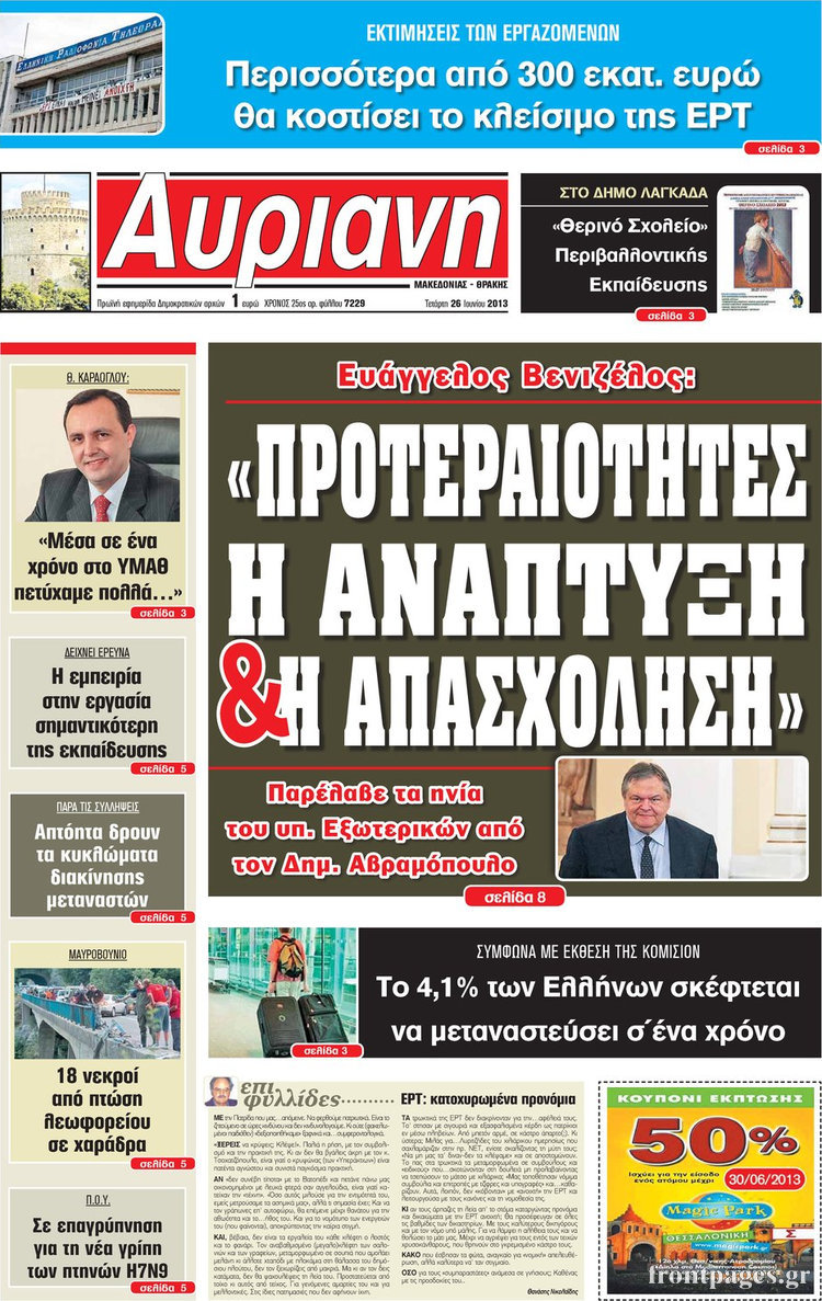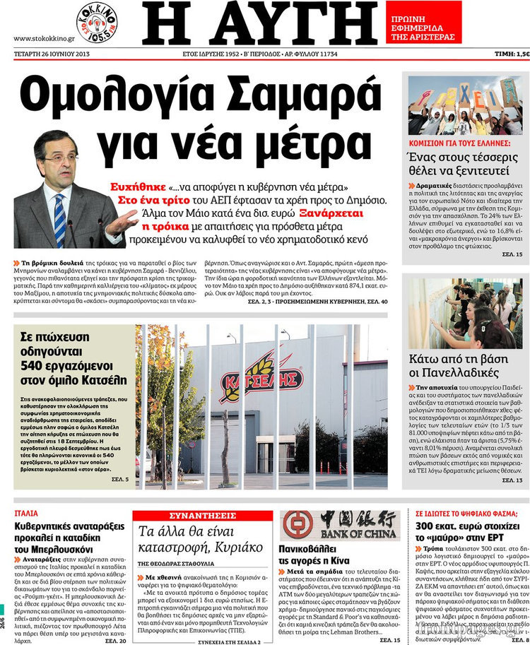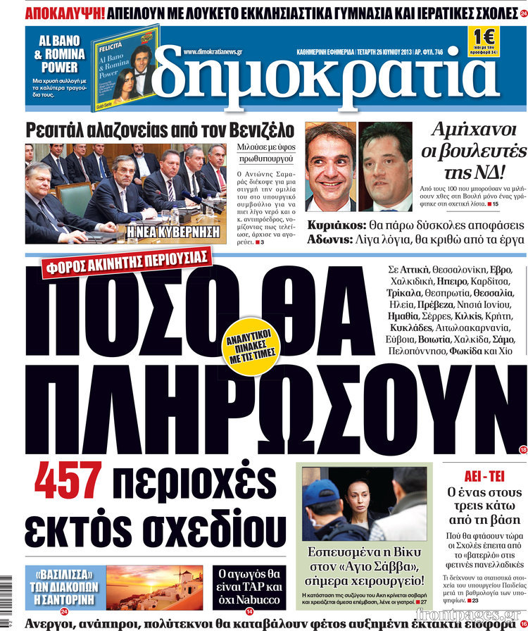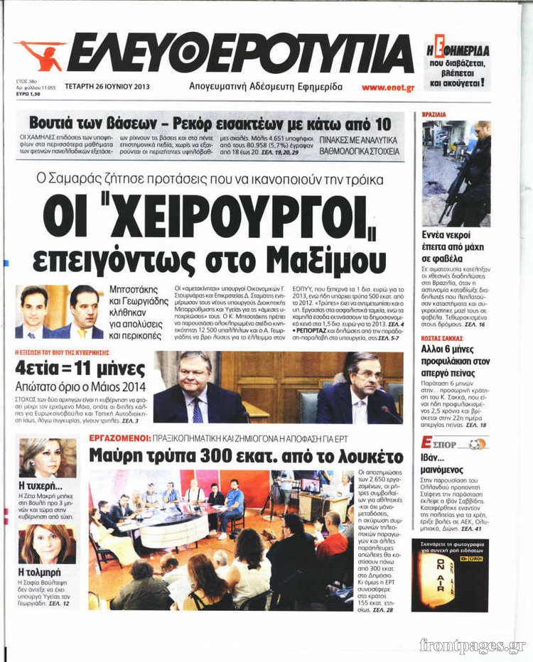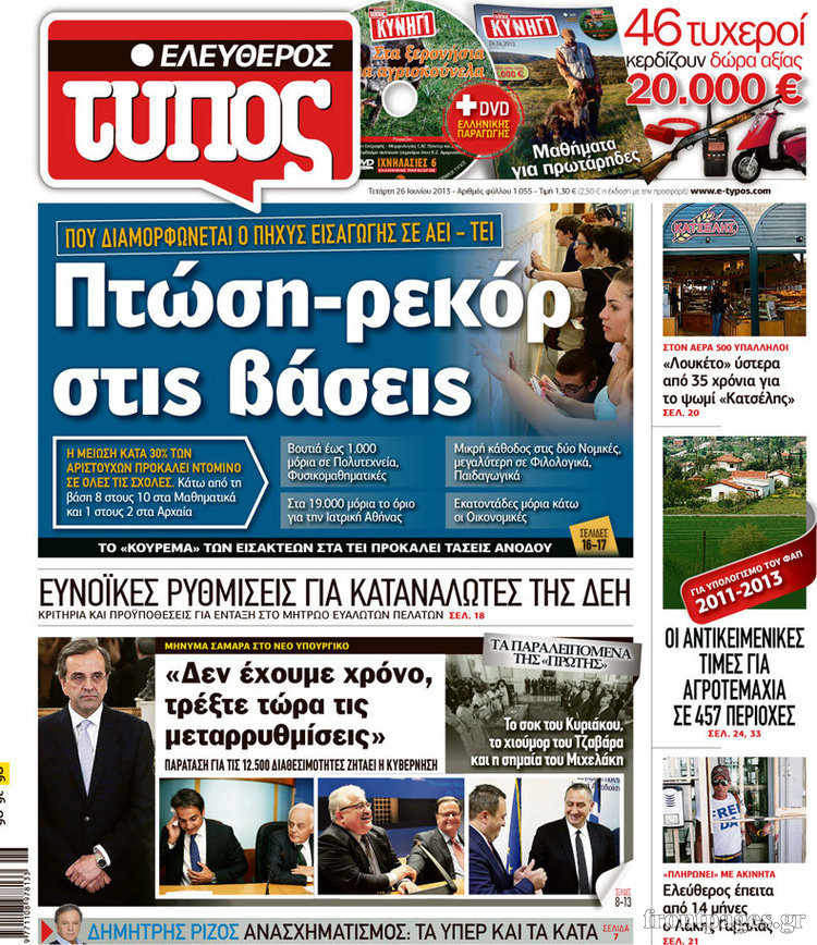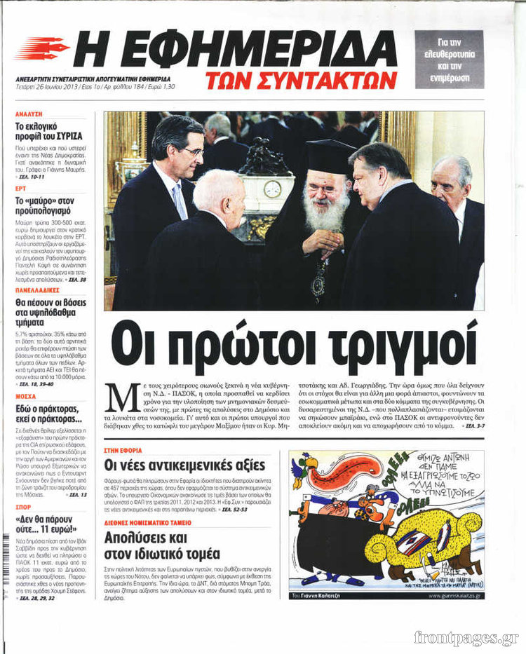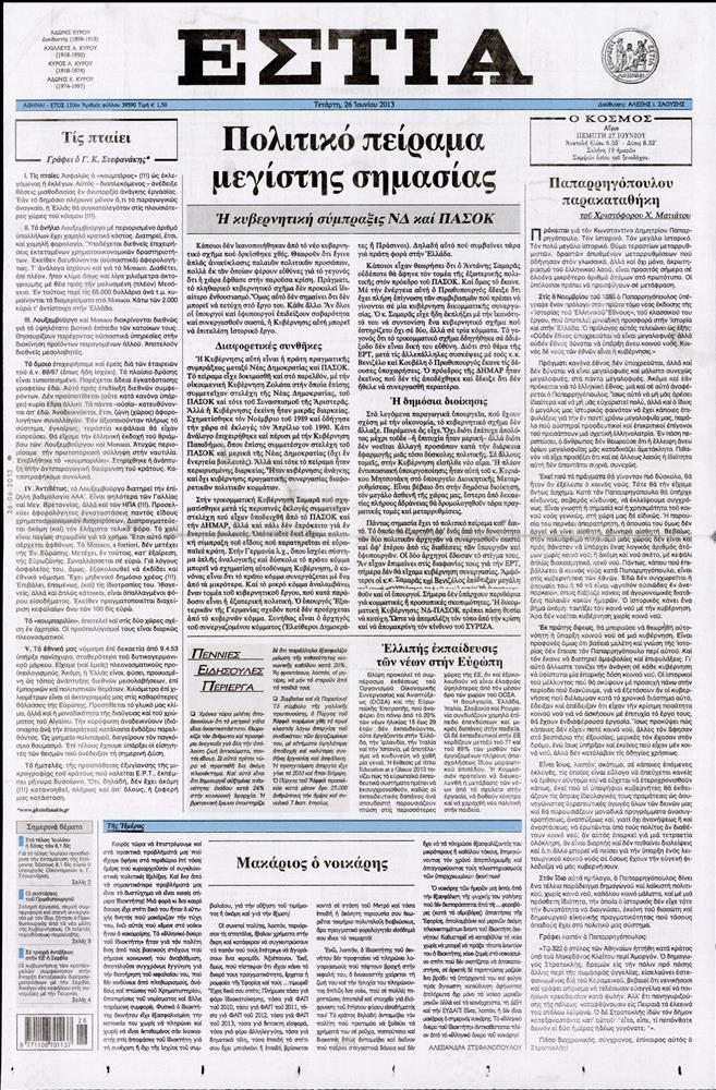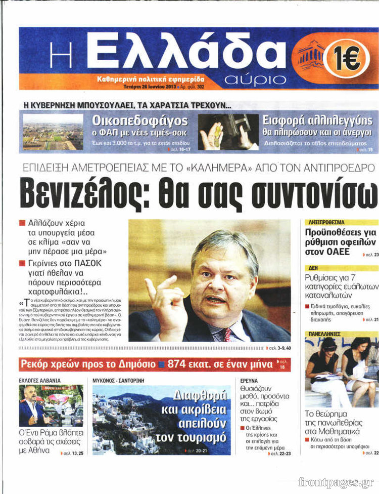 Οι πολιτικές εφημερίδες Enikos Newsroom 08:33, Τετάρτη 26 Ιουνίου 2013 Media Οι πολιτικές εφημερίδες Διαβάστε τα πρωτοσέλιδα των πολιτικών εφημερίδων: ΕΦΗΜΕΡΙΔΕΣ ΠΟΛΙΤΙΚΕΣ ΕΦΗΜΕΡΙΔΕΣ ΠΡΩΤΟΣΕΛΙΔΑ Μοιράσου το: σχολίασε κι εσύ (0 σχόλια) Ακολουθήστε το enikos.gr στο Google News και μάθετε πρώτοι όλες τις ειδήσεις Δείτε όλες τις τελευταίες ειδήσεις από την Ελλάδα και τον Κόσμο στο enikos.gr Ειδήσεις Ροή Ειδήσεων 26 λεπτά πριν Ευρωπαϊκή Ένωση: Συμφωνία για δάνειο 90 δισ. ευρώ στην Ουκρανία τη διετία 2026-2027 5 ώρες πριν ΟΠΕΚΕΠΕ: Προφυλακιστέος ο φερόμενος αρχηγός και ο λογιστής της εγκληματικής οργάνωσης 6 ώρες πριν Αυξάνουν την πίεση προς την κυβέρνηση οι αγρότες: Κλείνουν παρακαμπτήριους και ανοίγουν διόδια – Τι θα γίνει τις γιορτές 6 ώρες πριν Φοινικούντα: Το Σάββατο απολογείται ο 30χρονος γιος γνωστού επιχειρηματία της Πλάκας που παραδόθηκε – Όσα είπε στους αστυνομικούς και ο ρόλος του στο έγκλημα 5 ώρες πριν ΑΕΚ – Κραϊόβα 3-2: Επική ανατροπή και πρόκριση στους «16» του Conference League η Ένωση 6 ώρες πριν Αρχαιολόγοι ανακάλυψαν ρωμαϊκά τεχνουργήματα από μια πόλη που δεν υπήρξε ποτέ – Τα τρία εντυπωσιακά κτίρια και ο αμφορέας με τις… σαρδέλες 7 ώρες πριν Ύπνος: Η απλή βραδινή ρουτίνα για να προστατεύσετε τα μαλλιά σας από το κρύο κατά τη διάρκεια του χειμώνα 8 ώρες πριν Manifesting: Πώς να συναντήσετε τον σύντροφο της ζωής σας, ανάλογα με τον μήνα γέννησής σας 2 ημέρες πριν 20 χρόνια τα Χριστούγεννα ξεκινούν στα Public με μεγάλη ποικιλία σε δώρα! 14 λεπτά πριν Γουατεμάλα: Εξαρθρώθηκε κύκλωμα διακίνησης μεταναστών προς τις ΗΠΑ – Συνελήφθησαν 14 άτομα 18 λεπτά πριν Βουλγαρία: Χιλιάδες πολίτες στους δρόμους κατά της απερχόμενης κυβέρνησης και της διαφθοράς 26 λεπτά πριν Ευρωπαϊκή Ένωση: Συμφωνία για δάνειο 90 δισ. ευρώ στην Ουκρανία τη διετία 2026-2027 49 λεπτά πριν Αιματηρή βομβιστική επίθεση στην Υεμένη: Τουλάχιστον τρεις νεκροί και 13 τραυματίες 52 λεπτά πριν Στη Φλόριντα σήμερα οι διαβουλεύσεις σχετικά με τα επόμενα στάδια για τη Λωρίδα της Γάζας ENIKOS NETWORK Σε περίοδο αυξημένης δραστηριότητας η γρίπη στην Ελλάδα-Μέτρα προστασίας από τον ΕΟΔΥ Σκέφτεστε συνέχεια συζητήσεις που έχετε κάνει; Τι σημαίνει αυτό, σύμφωνα με ειδικό Στεγαστικό: Τι λέει η ΠΟΜΙΔΑ για τα νέα μέτρα που ανακοίνωσε ο Κυριάκος Μητσοτάκης Λαγκάρντ: Αισιόδοξη για την ανάπτυξη της Ευρωζώνης, αβέβαιη για τον πληθωρισμό Χαρτογραφώντας το «σημείο χωρίς επιστροφή»: Για πρώτη φορά αποκαλύπτεται με λεπτομέρεια το ακανθώδες όριο της ατμόσφαιρας τ... Η Google καταργεί τη λειτουργία «dark web report» – Πώς θα μπορούν οι χρήστες να διαγράφουν τα δεδομένα τους περισσότερα 02:50 , Παρασκευή 19 Δεκεμβρίου 2025 GNTM: «Κλείδωσαν» οι τέσσερις φιναλίστ – Μεγάλη ανατροπή στις τελευταίες αποχωρήσεις Για προτελευταία φορά εμφανίστηκαν στο πλατό του GNTM οι φιναλίστ του φετινού κύκλου, το βράδυ... 17:45 , Πέμπτη 18 Δεκεμβρίου 2025 ROUK ZOUK: Εορταστικό επεισόδιο με καλεσμένους τους πρωταγωνιστές του «Γιατί ρε πατέρα» Το Σάββατο 20 Δεκεμβρίου στις 21:00, η Ζέτα Μακρυπούλια υποδέχεται εκλεκτούς ηθοποιούς που όλο... 17:20 , Πέμπτη 18 Δεκεμβρίου 2025 Άγιος έρωτας: Η Χριστίνα εξομολογείται στον πατέρα Νικόλαο, απόψε στις 21:00 στον Alpha Η Νότα αποφασίζει να εκδικηθεί τον Πέτρο και τον Στέφανο, για χάρη του Λούη, όμως τα πράγματα ... 16:50 , Πέμπτη 18 Δεκεμβρίου 2025 Να μ’ αγαπάς: Ζωή και Φωτεινή συμφιλιώνονται ως μάνα με κόρη, απόψε στις 20:00 Η ταυτότητα του Άγγελου αποκαλύπτεται στο νέο επεισόδιο της σειράς “