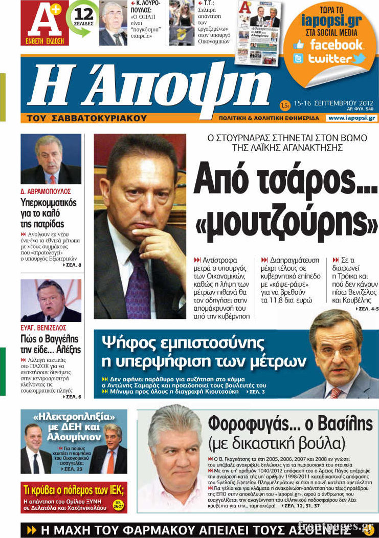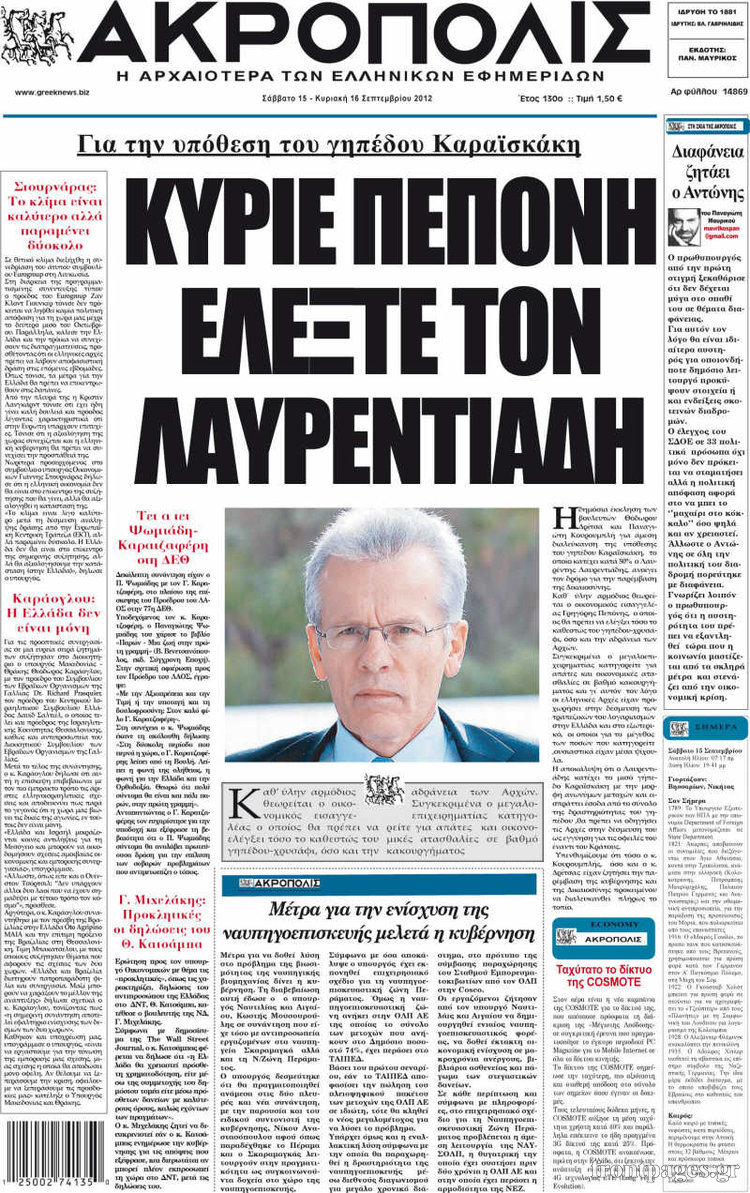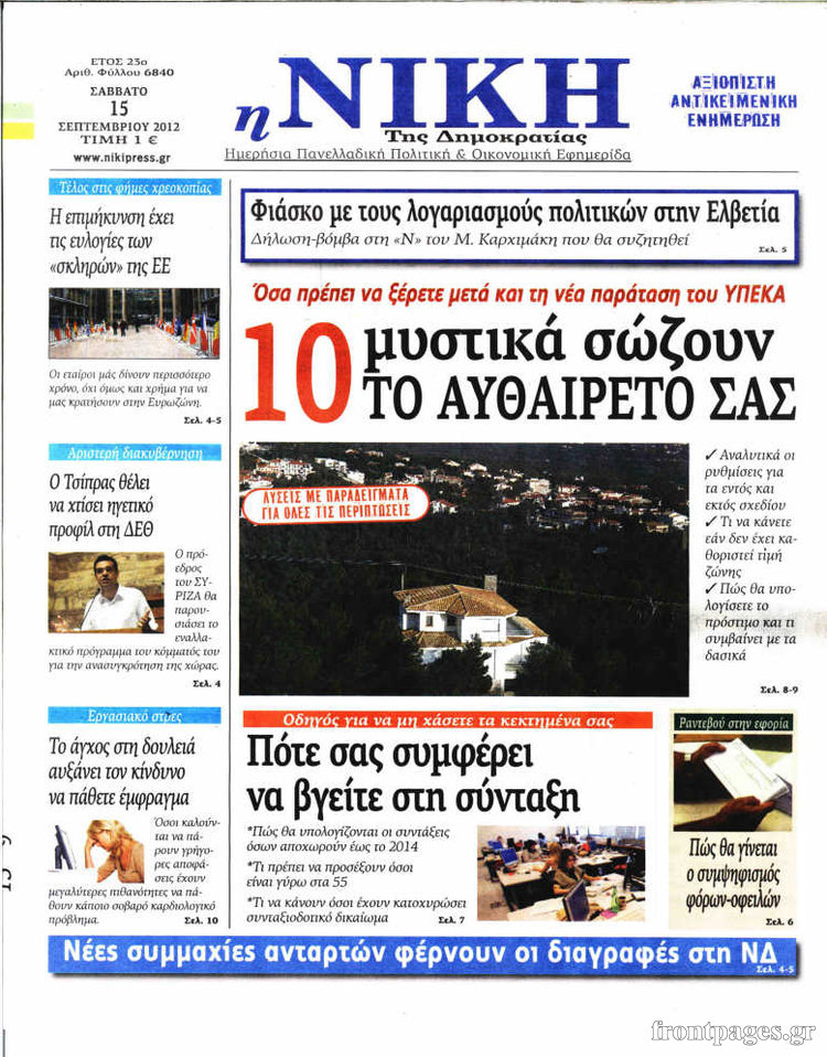 Δείτε τα πρωτοσέλιδα των πολιτικών εφημερίδων…
