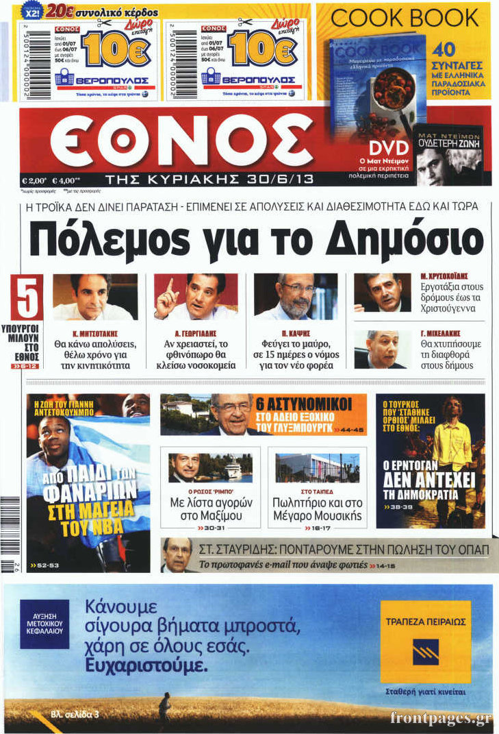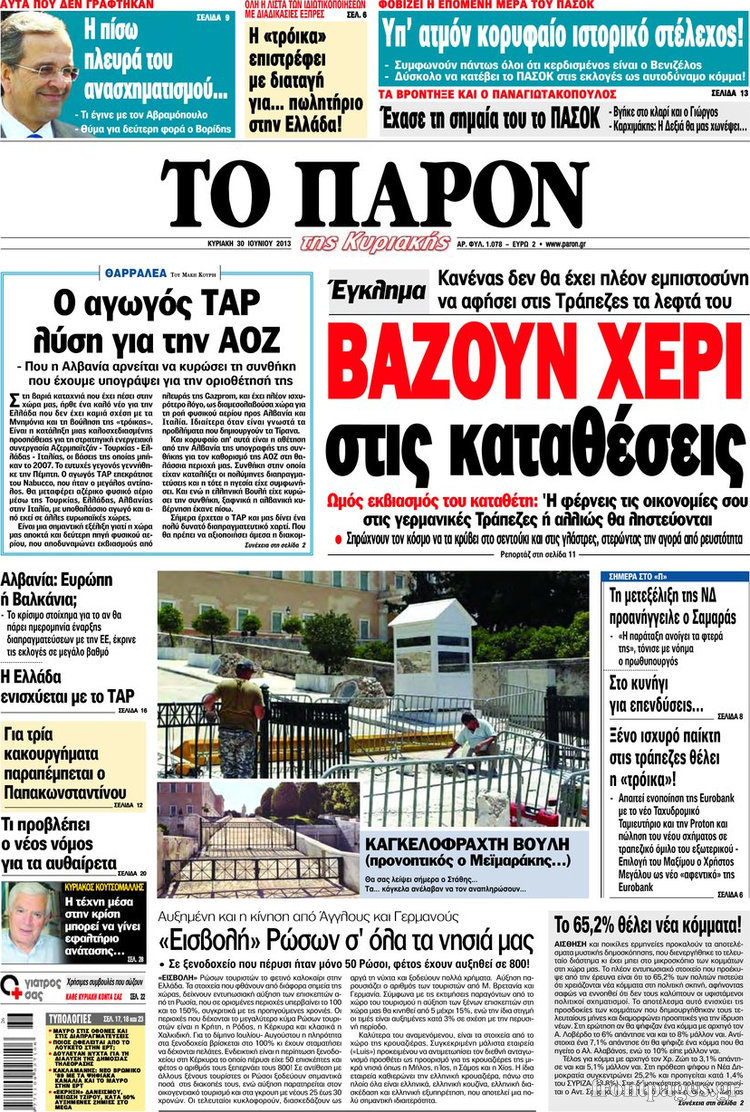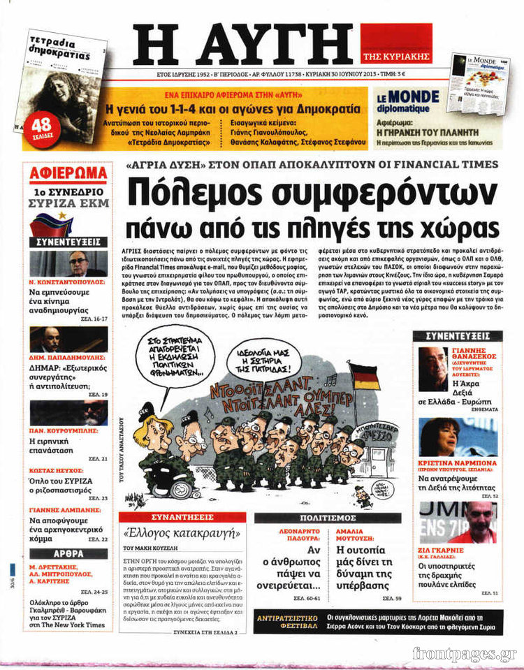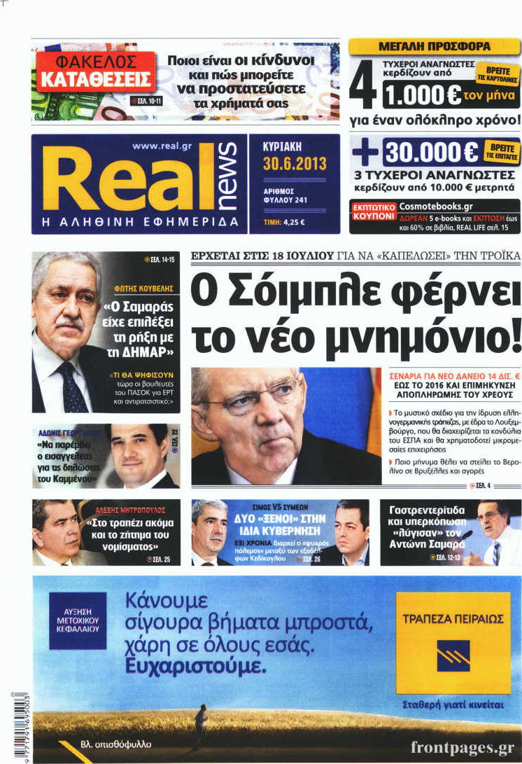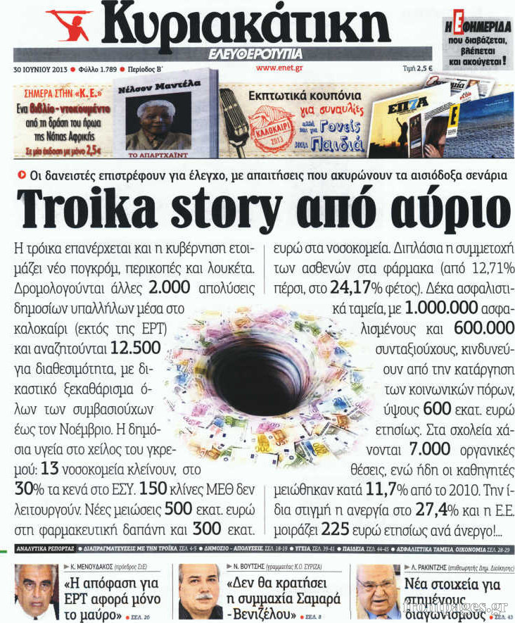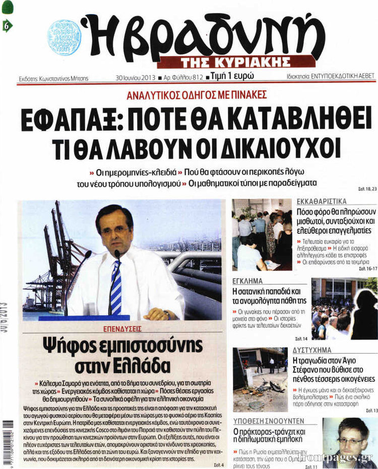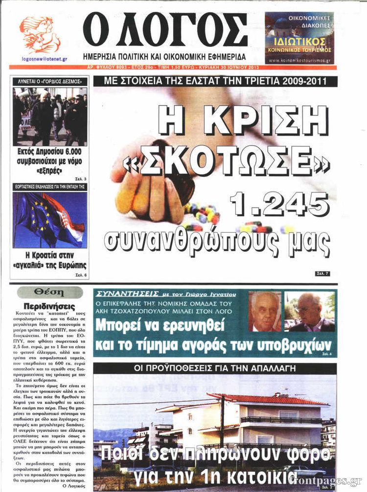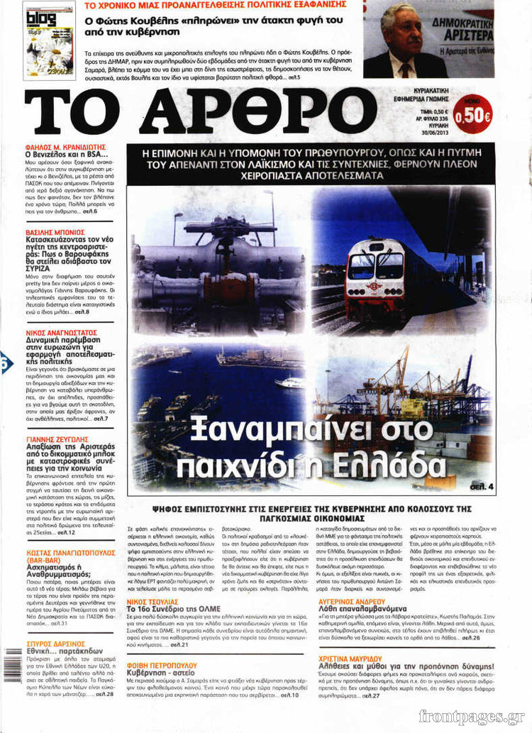 Οι πολιτικές εφημερίδες Enikos Newsroom 08:55, Κυριακή 30 Ιουνίου 2013 Media Οι πολιτικές εφημερίδες Διαβάστε τα πρωτοσέλιδα των πολιτικών εφημερίδων ΠΟΛΙΤΙΚΕΣ ΕΦΗΜΕΡΙΔΕΣ ΠΡΩΤΟΣΕΛΙΔΑ Μοιράσου το: σχολίασε κι εσύ (0 σχόλια) Ακολουθήστε το enikos.gr στο Google News και μάθετε πρώτοι όλες τις ειδήσεις Δείτε όλες τις τελευταίες ειδήσεις από την Ελλάδα και τον Κόσμο στο enikos.gr Ειδήσεις Ροή Ειδήσεων 4 ώρες πριν Εκτός ευρωομάδας ΣΥΡΙΖΑ ο Νίκος Παππάς μετά την επίθεση στον δημοσιογράφο Νίκο Γιαννόπουλο – Η μήνυση και οι νέες δηλώσεις 4 ώρες πριν «Αγριεύουν» οι αγρότες: «Δεν συντρέχει λόγος συνάντησης με τον πρωθυπουργό» – Ώρα αποφάσεων στη σύσκεψη της Πέμπτης 4 ώρες πριν Κυψέλη: Χωρίς την οικογένειά της δίπλα της απολογήθηκε η 16χρονη – «Της είχε επιτεθεί κάποιος για να την βιάσει, φοβήθηκε και κυκλοφορούσε με μαχαίρι» 4 ώρες πριν Politico: Το πρόβλημα της Ευρώπης δεν είναι το Βέλγιο αλλά ο Ντόναλντ Τραμπ 5 ώρες πριν Αλεξανδρούπολη: Πολυοργανική ανεπάρκεια λόγω υποσιτισμού η αιτία θανάτου του 3χρονου αγοριού 4 ώρες πριν Μυστήριο με τεράστιες κυκλικές πέτρες 200 κιλών – Ανακαλύφθηκαν τυχαία κατά τη διάρκεια οδικών έργων και κανείς δεν ξέρει από πού προέρχονται 5 ώρες πριν Ύπνος: Ειδικός εξηγεί τον πραγματικό λόγο που ξυπνάτε στις 4 τα ξημερώματα – Ο ρόλος των ορμονών και του κιρκάδιου ρυθμού 6 ώρες πριν Αριθμολογία: Οι άνθρωποι που έχουν γεννηθεί αυτές τις 4 ημερομηνίες, είναι τρυφεροί και αγαπούν ανιδιοτελώς 17 ώρες πριν 20 χρόνια τα Χριστούγεννα ξεκινούν στα Public με μεγάλη ποικιλία σε δώρα! 5 λεπτά πριν Σουδάν: Επιδρομή drone σε χωριό του Νότιου Κορντοφάν – Οκτώ νεκροί 21 λεπτά πριν Αλ Τσαντίρι Νιουζ: Η κόρη της Πάολα στο κοινό – Η ατάκα Λαζόπουλου που την έκανε να «κοκκινήσει» 36 λεπτά πριν Ρωσία: Ουκρανικές δυνάμεις έπληξαν πλοίο στο λιμάνι του Ροστόφ – Αναφορές για θύματα 51 λεπτά πριν Βρυξέλλες: Νυχτερινό… μπλόκο αγροτών μπροστά από το κτίριο της Ευρωπαϊκής Επιτροπής – Πάνω από 100 τρακτέρ απέκλεισαν την λεωφόρο 1 ώρα πριν Euroleague: Απρόσμενη ήττα για την Μονακό του Βασίλη Σπανούλη – Η βαθμολογία μετά το τέλος της 16ης αγωνιστικής ENIKOS NETWORK Αϋπνία: Το κόλπο που θα σας βοηθήσει να κοιμηθείτε απόψε – Είναι απλό και έχει αποτέλεσμα 2,6 εκατομμύρια πολίτες έχουν ήδη εμβολιαστεί κατά της γρίπης ΕΛΣΤΑΤ: Τι δείχνουν τα νέα στοιχεία για τις ηλεκτρονικές παραγγελίες των επιχειρήσεων ΚΕΠΕ: Οι 3 διακριτές συμβολές των ΜμΕ και της μεταποίησης στην ελληνική οικονομία Χαρτογραφώντας το «σημείο χωρίς επιστροφή»: Για πρώτη φορά αποκαλύπτεται με λεπτομέρεια το ακανθώδες όριο της ατμόσφαιρας τ... Η Google καταργεί τη λειτουργία «dark web report» – Πώς θα μπορούν οι χρήστες να διαγράφουν τα δεδομένα τους περισσότερα 02:30 , Πέμπτη 18 Δεκεμβρίου 2025 Αλ Τσαντίρι Νιουζ: Η κόρη της Πάολα στο κοινό – Η ατάκα Λαζόπουλου που την έκανε να «κοκκινήσει» Γιορτινή διάθεση και ευχάριστες στιγμές γέμισε η αποψινή, τελευταία για το 2025, εκπομπή του «... 22:24 , Τετάρτη 17 Δεκεμβρίου 2025 Το Σπίτι Δίπλα Στο Ποτάμι: Σε κίνδυνο η υγεία του Απόστολου – Τι θα δούμε απόψε “Το Σπίτι Δίπλα στο Ποτάμι” ξετυλίγει το νήμα της ζωής των πέντε αδελφών με καταισ... 21:14 , Τετάρτη 17 Δεκεμβρίου 2025 Παιχνίδια Εκδίκησης: Θα καταφέρει ο Χρήστος να κλονίσει την εμπιστοσύνη της Μάγιας απέναντι στον Άγη; Τα «Παιχνίδια Εκδίκησης» έρχονται απόψε στις 22:30, στον Αντ1, με το τελευταίο επεισόδιο της χ... 20:57 , Τετάρτη 17 Δεκεμβρίου 2025 Άγιος Έρωτας: Η Χλόη καταθέτει εναντίον 
