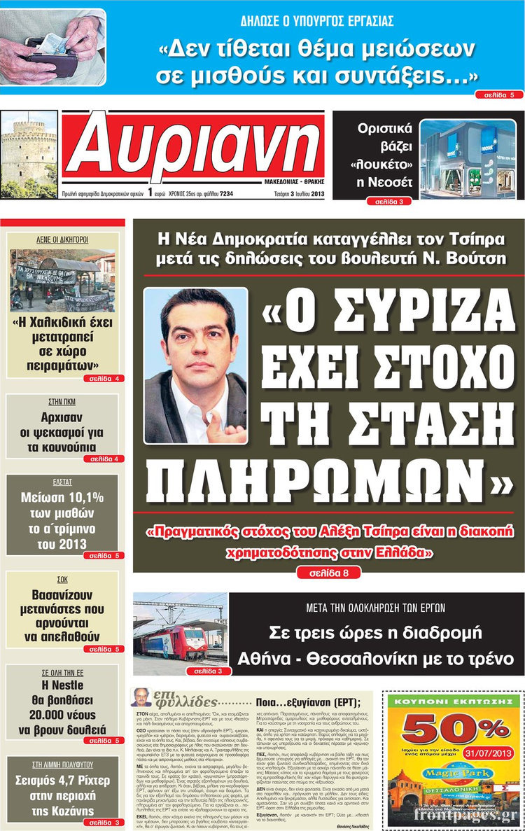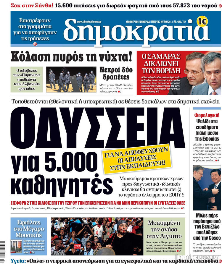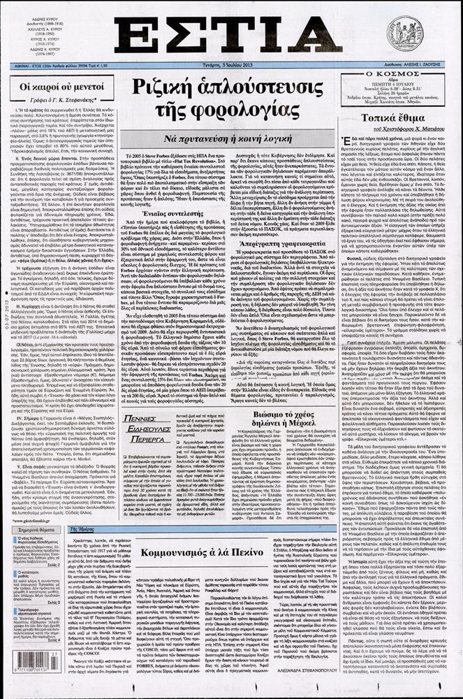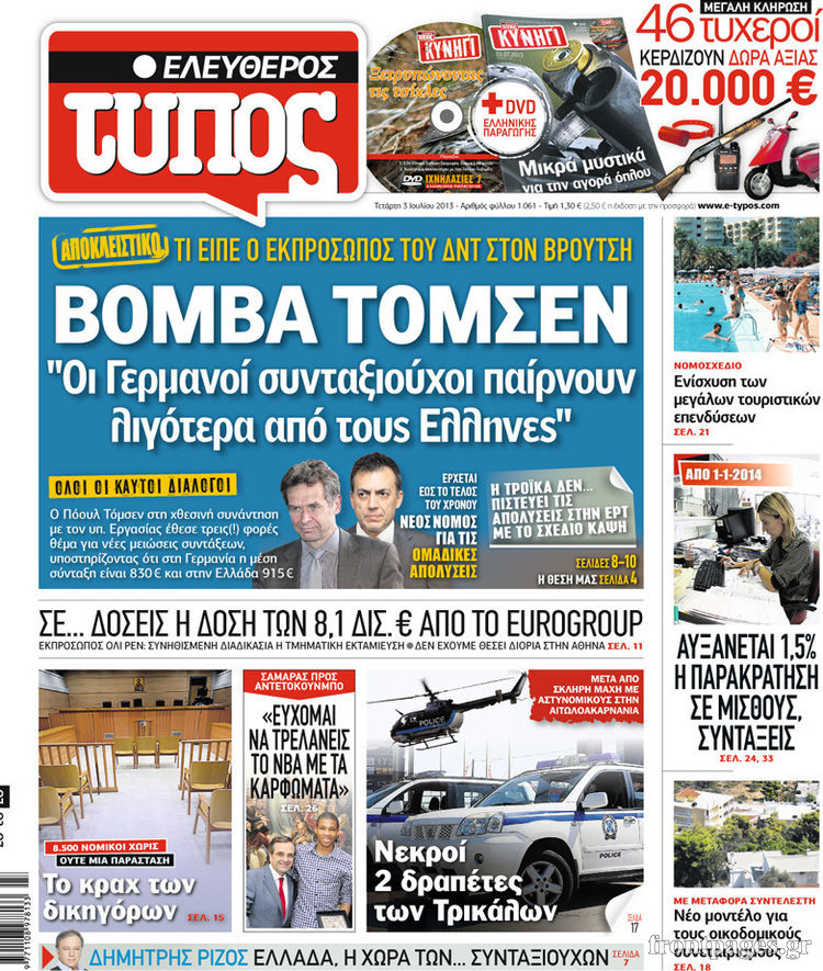 Οι πολιτικές εφημερίδες Enikos Newsroom 08:18, Τετάρτη 03 Ιουλίου 2013 Media Οι πολιτικές εφημερίδες Διαβάστε τα πρωτοσέλιδα των πολιτικών εφημερίδων: ΕΦΗΜΕΡΙΔΕΣ ΠΟΛΙΤΙΚΕΣ ΕΦΗΜΕΡΙΔΕΣ ΠΡΩΤΟΣΕΛΙΔΑ Μοιράσου το: σχολίασε κι εσύ (0 σχόλια) Ακολουθήστε το enikos.gr στο Google News και μάθετε πρώτοι όλες τις ειδήσεις Δείτε όλες τις τελευταίες ειδήσεις από την Ελλάδα και τον Κόσμο στο enikos.gr Ειδήσεις Ροή Ειδήσεων 1 ώρα πριν Ευρωπαϊκή Ένωση: Συμφωνία για δάνειο 90 δισ. ευρώ στην Ουκρανία τη διετία 2026-2027 6 ώρες πριν ΟΠΕΚΕΠΕ: Προφυλακιστέος ο φερόμενος αρχηγός και ο λογιστής της εγκληματικής οργάνωσης 7 ώρες πριν Αυξάνουν την πίεση προς την κυβέρνηση οι αγρότες: Κλείνουν παρακαμπτήριους και ανοίγουν διόδια – Τι θα γίνει τις γιορτές 7 ώρες πριν Φοινικούντα: Το Σάββατο απολογείται ο 30χρονος γιος γνωστού επιχειρηματία της Πλάκας που παραδόθηκε – Όσα είπε στους αστυνομικούς και ο ρόλος του στο έγκλημα 5 ώρες πριν ΑΕΚ – Κραϊόβα 3-2: Επική ανατροπή και πρόκριση στους «16» του Conference League η Ένωση 7 ώρες πριν Αρχαιολόγοι ανακάλυψαν ρωμαϊκά τεχνουργήματα από μια πόλη που δεν υπήρξε ποτέ – Τα τρία εντυπωσιακά κτίρια και ο αμφορέας με τις… σαρδέλες 8 ώρες πριν Ύπνος: Η απλή βραδινή ρουτίνα για να προστατεύσετε τα μαλλιά σας από το κρύο κατά τη διάρκεια του χειμώνα 9 ώρες πριν Manifesting: Πώς να συναντήσετε τον σύντροφο της ζωής σας, ανάλογα με τον μήνα γέννησής σας 2 ημέρες πριν 20 χρόνια τα Χριστούγεννα ξεκινούν στα Public με μεγάλη ποικιλία σε δώρα! 3 λεπτά πριν Τα ζώδια σήμερα, Παρασκευή 19 Δεκεμβρίου: Τοξότες, με τη Νέα Σελήνη έρχεται η προσωπική ανανέωσή σας 11 λεπτά πριν Εφημερεύοντα φαρμακεία σε Αθήνα και Θεσσαλονίκη (19/12) 18 λεπτά πριν Η TikTok στις ΗΠΑ πωλείται σε Oracle, Silver Lake και MGX – Οι λεπτομέρειες του «deal» 26 λεπτά πριν Αλεξάντερ Λουκασένκο: Η Λευκορωσία βρίσκεται κοντά στην αποκατάσταση των σχέσεών της με τις ΗΠΑ 42 λεπτά πριν Αυστραλία: Κήρυξε την Κυριακή (21/12) ημέρα εθνικού πένθους για τη φονική επίθεση στην παραλία Μπόνταϊ ENIKOS NETWORK Σε περίοδο αυξημένης δραστηριότητας η γρίπη στην Ελλάδα-Μέτρα προστασίας από τον ΕΟΔΥ Σκέφτεστε συνέχεια συζητήσεις που έχετε κάνει; Τι σημαίνει αυτό, σύμφωνα με ειδικό Στεγαστικό: Τι λέει η ΠΟΜΙΔΑ για τα νέα μέτρα που ανακοίνωσε ο Κυριάκος Μητσοτάκης Λαγκάρντ: Αισιόδοξη για την ανάπτυξη της Ευρωζώνης, αβέβαιη για τον πληθωρισμό Χαρτογραφώντας το «σημείο χωρίς επιστροφή»: Για πρώτη φορά αποκαλύπτεται με λεπτομέρεια το ακανθώδες όριο της ατμόσφαιρας τ... Η Google καταργεί τη λειτουργία «dark web report» – Πώς θα μπορούν οι χρήστες να διαγράφουν τα δεδομένα τους περισσότερα 02:50 , Παρασκευή 19 Δεκεμβρίου 2025 GNTM: «Κλείδωσαν» οι τέσσερις φιναλίστ – Μεγάλη ανατροπή στις τελευταίες αποχωρήσεις Για προτελευταία φορά εμφανίστηκαν στο πλατό του GNTM οι φιναλίστ του φετινού κύκλου, το βράδυ... 17:45 , Πέμπτη 18 Δεκεμβρίου 2025 ROUK ZOUK: Εορταστικό επεισόδιο με καλεσμένους τους πρωταγωνιστές του «Γιατί ρε πατέρα» Το Σάββατο 20 Δεκεμβρίου στις 21:00, η Ζέτα Μακρυπούλια υποδέχεται εκλεκτούς ηθοποιούς που όλο... 17:20 , Πέμπτη 18 Δεκεμβρίου 2025 Άγιος έρωτας: Η Χριστίνα εξομολογείται στον πατέρα Νικόλαο, απόψε στις 21:00 στον Alpha Η Νότα αποφασίζει να εκδικηθεί τον Πέτρο και τον Στέφανο, για χάρη του Λούη, όμως τα πράγματα ... 16:50 , Πέμπτη 18 Δεκεμβρίου 2025 Να μ’ αγαπάς: Ζωή και Φωτεινή συμφιλιώνονται ως μάνα με κόρη, απόψε στις 20:00 Η ταυτότητα του Άγγελου αποκαλύπτεται στο νέο επεισόδιο της σειράς “Να μ’ αγαπάς... ΤΕΛΕΥΤ