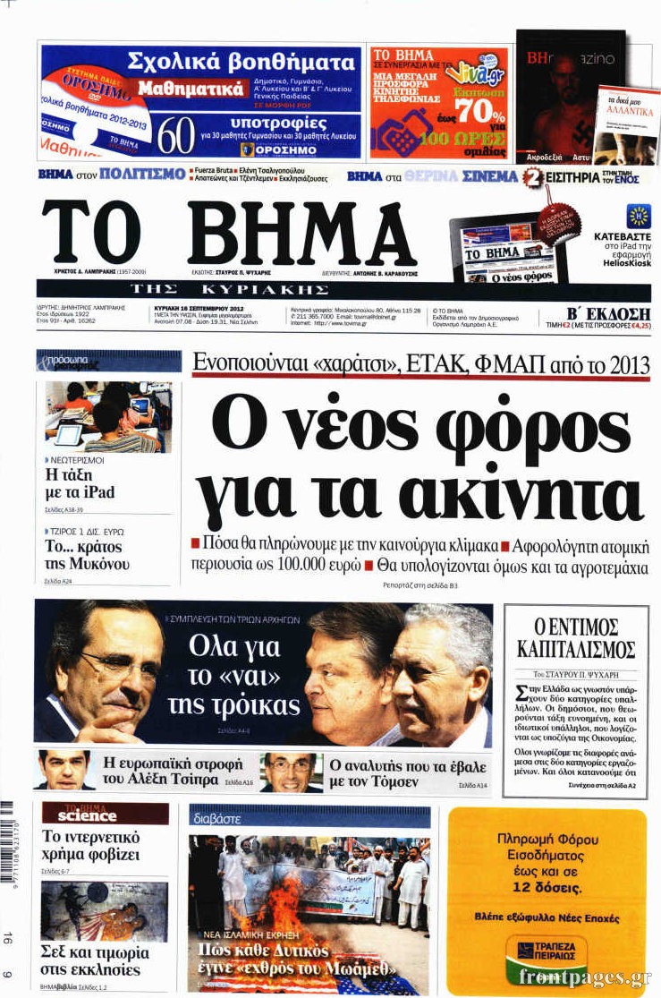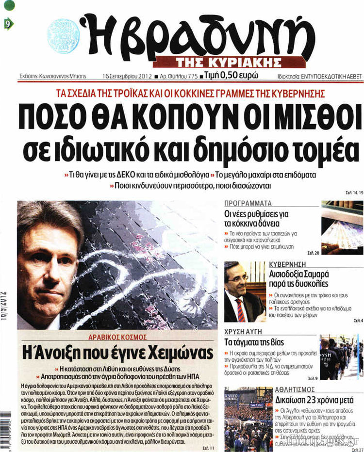 Δείτε τα πρωτοσέλιδα των κυριακάτικων εφημερίδων…