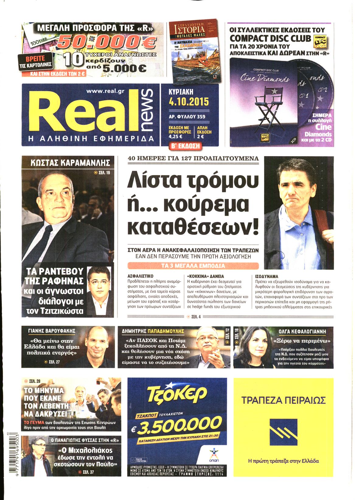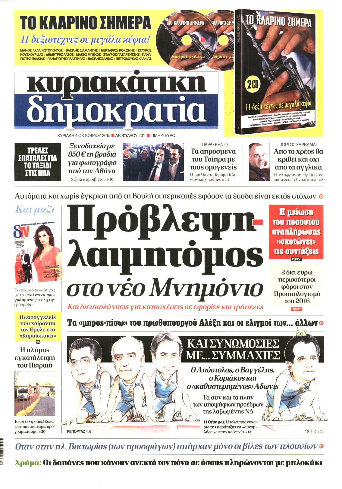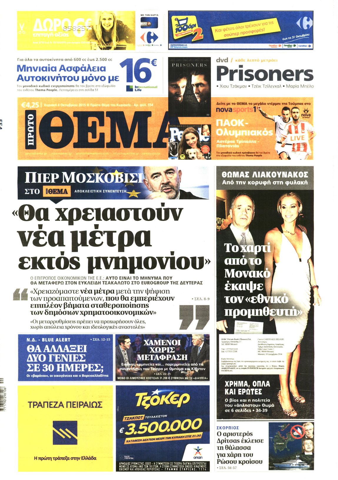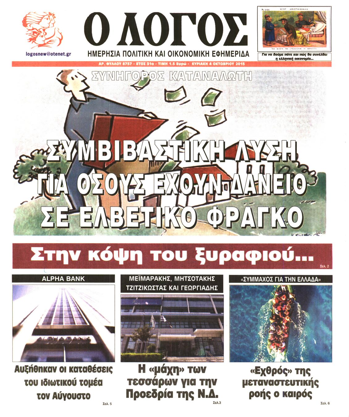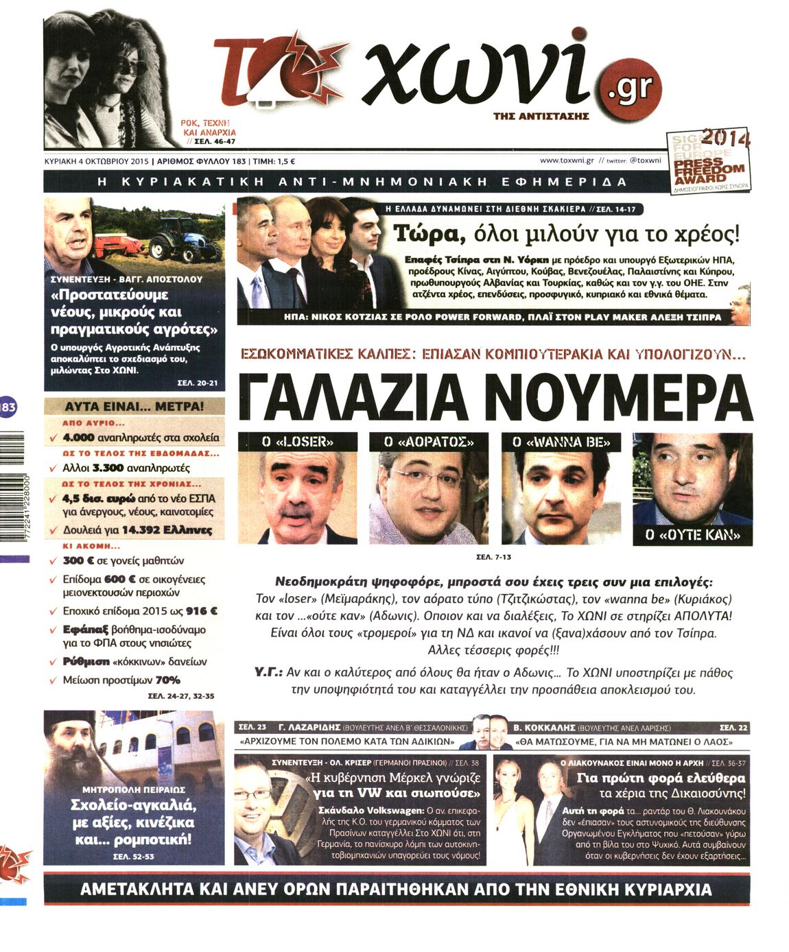 Οι πολιτικές εφημερίδες 4/10/2015 Enikos Newsroom 07:50, Κυριακή 04 Οκτωβρίου 2015 Media Διαβάστε τα σημερινά πρωτοσέλιδα των πολιτικών εφημερίδων. ΕΦΗΜΕΡΙΔΕΣ ΠΟΛΙΤΙΚΕΣ ΕΦΗΜΕΡΙΔΕΣ ΠΡΩΤΟΣΕΛΙΔΑ Μοιράσου το: σχολίασε κι εσύ (0 σχόλια) Ακολουθήστε το enikos.gr στο Google News και μάθετε πρώτοι όλες τις ειδήσεις Δείτε όλες τις τελευταίες ειδήσεις από την Ελλάδα και τον Κόσμο στο enikos.gr Ειδήσεις Ροή Ειδήσεων 4 ώρες πριν Υπόθεση Έπσταϊν: Το Υπουργείο Δικαιοσύνης δημοσιοποίησε μια σειρά από εξαιρετικά επεξεργασμένα αρχεία – «Λείπουν τα πιο σημαντικά έγγραφα», λένε οι Δημοκρατικοί 56 λεπτά πριν Γιορτές με μπλόκα για τους αγρότες: Ανοίγουν διόδια και μοιράζουν προϊόντα στους ταξιδιώτες 1 ώρα πριν Εξαφάνιση 33χρονου γιατρού στην Κρήτη: «Άναψα τα φώτα, τρόμαξε και άρχισε να τρέχει στα χωράφια» – Η τελευταία διαδρομή και η μαρτυρία «κλειδί» 3 ώρες πριν Ο «χάρτης» με τις αυξήσεις και τις φοροελαφρύνσεις του 2026 – Ποιοι και πόσα κερδίζουν 1 ώρα πριν Τα αρχεία του Έπσταϊν αποκαλύπτουν φωτογραφία του έκπτωτου πρίγκιπα Άντριου – Είναι ξαπλωμένος στην αγκαλιά 5 γυναικών 1 ώρα πριν Μία νέα «χρυσή» περίοδος αρχίζει για 3 ζώδια από σήμερα – «Μία αναπάντεχη ευκαιρία οδηγεί στην επιτυχία» 6 ώρες πριν Αυγά: Πόσα μπορείτε να τρώτε την ημέρα με ασφάλεια για μέγιστη πρόσληψη πρωτεΐνης 3 ώρες πριν Αρχαιολόγοι ανακάλυψαν σε χωράφι απεικόνιση 600 ετών ενός Αγίου – Τα στοιχεία που δείχνουν ότι μαρτύρησε 2 ώρες πριν Αγχώνεται για το χριστουγεννιάτικο δώρο που πήρε στην πλούσια σύντροφό του – «Φοβάμαι πως θα το βρει φθηνιάρικο, φοράει βραχιόλια Cartier» 5 λεπτά πριν Τραγωδία στην άσφαλτο στα Χανιά: Νεκρός 37χρονος οδηγός ΙΧ – Τον βρήκαν ώρες μετά το τροχαίο 13 λεπτά πριν Τα Labubu «μετακομίζουν» στο Χόλιγουντ: Η Sony Pictures ετοιμάζει live-action ταινία με τον σκηνοθέτη του «Wonka» 21 λεπτά πριν Νέες ταυτότητες: Μεγάλη αναμονή για ραντεβού στην Αττική – Τέλος τα ταξίδια εκτός Ελλάδος από τον Αύγουστο για όσους δεν έχουν αλλάξει 29 λεπτά πριν Οι 7 φράσεις που δεν λένε ποτέ οι συναισθηματικά έξυπνοι άνθρωποι κατά τη διάρκεια ενός καβγά 33 λεπτά πριν Τηλεθέαση (19/12): Ανατροπές και πρωτιές στην πρωινή ζώνη ENIKOS NETWORK Είστε μόνιμα απρόσεκτοι; 3 σημάδια που δείχνουν ότι μπορεί να είναι σύμπτωμα πάθησης Πόσα κιλά παίρνουμε πραγματικά τα Χριστούγεννα, σύμφωνα με την επιστήμη – Πώς να το αποτρέψουμε; e-ΕΦΚΑ και ΔΥΠΑ: Έρχονται νέες πληρωμές έως τις 24 Δεκεμβρίου – Ποιοι πάνε ταμείο Επίδομα παιδιού: Τι αλλάζει από το 2026 – Το όφελος από τις φορολογικές ελαφρύνσεις Χαρτογραφώντας το «σημείο χωρίς επιστροφή»: Για πρώτη φορά αποκαλύπτεται με λεπτομέρεια το ακανθώδες όριο της ατμόσφαιρας τ... Η Google καταργεί τη λειτουργία «dark web report» – Πώς θα μπορούν οι χρήστες να διαγράφουν τα δεδομένα τους περισσότερα 09:30 , Σάββατο 20 Δεκεμβρίου 2025 «Porto Leone: Στη γειτονιά με τα κόκκινα φανάρια» – Ο Χρόνης αποκαλύπτει στην Αλεξάνδρα το μυστικό για το παιδί της Λένας Η μεγάλη δραματική σειρά του Apha «Porto Leone: Στη γειτονιά με τα κόκκινα φανάρια» μας μεταφέ... 08:14 , Σάββατο 20 Δεκεμβρίου 2025 Τρομεροί γονείς: Η Μαρία Καβογιάννη εισβάλλει στο σπίτι της οικογένειας Στεφανίδη Όσα θα δούμε στο νέο διπλό επεισόδιο της σειράς «Τρομεροί γονείς», σήμερα Σάββατο 20 Δεκεμβρίο... 05:48 , Σάββατο 20 Δεκεμβρίου 2025 Οι οικονομικές εφημερίδες 20/12/2025 Διαβάστε τα πρωτοσέλιδα από τις οικονομικές εφημερίδες, σήμερα 20/12/2025. 05:43 , Σάββατο 20 Δεκεμβρίου 2025 Οι αθλητικές εφημερίδες 20/12/2025 Διαβάστε τα πρω