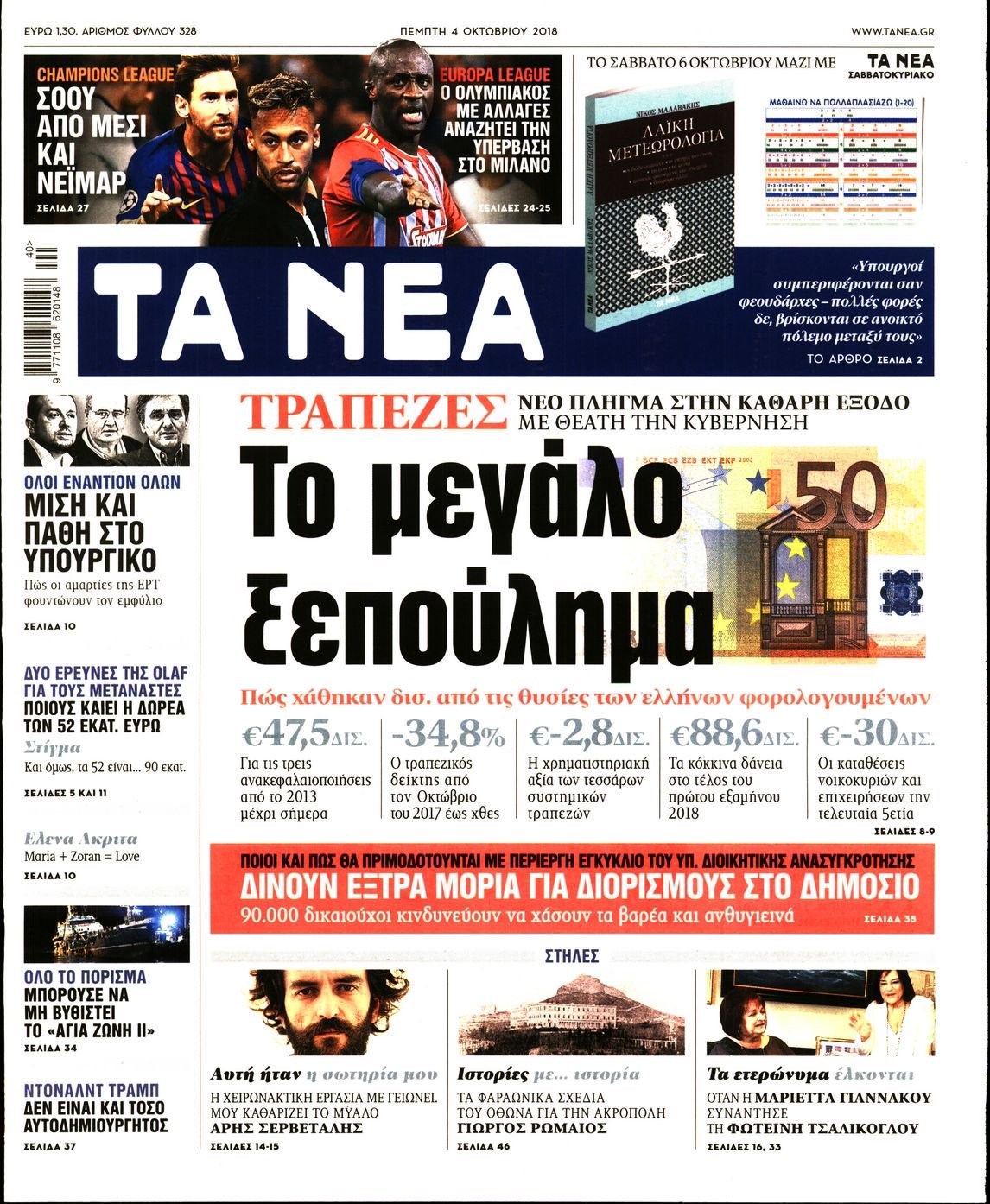 Οι πολιτικές εφημερίδες 4/10/2018 Enikos Newsroom 06:30, Πέμπτη 04 Οκτωβρίου 2018 Media Διαβάστε τα πρωτοσέλιδα: ΠΟΛΙΤΙΚΕΣ ΕΦΗΜΕΡΙΔΕΣ ΠΡΩΤΟΣΕΛΙΔΑ Μοιράσου το: σχολίασε κι εσύ (0 σχόλια) Ακολουθήστε το enikos.gr στο Google News και μάθετε πρώτοι όλες τις ειδήσεις Δείτε όλες τις τελευταίες ειδήσεις από την Ελλάδα και τον Κόσμο στο enikos.gr Ειδήσεις Ροή Ειδήσεων 4 ώρες πριν Πώς δρούσε το κύκλωμα που διακινούσε ναρκωτικά σε σχολεία – Υπέβαλαν σε βασανιστήρια όσους δεν τηρούσαν τους «κανόνες πειθαρχίας» 4 ώρες πριν Αγρότες: Γιορτές στα μπλόκα με ανοιχτά διόδια – Δικογραφία στα Ιωάννινα για το σήκωμα των μπαρών 4 ώρες πριν Ζελένσκι: Οι Αμερικανοί πρότειναν συνάντηση Ουκρανίας, ΗΠΑ, Ρωσίας στο Μαϊάμι 2 ώρες πριν Τραμπ: Πώς περνάει τις γιορτές των Χριστουγέννων – Τα δώρα που κάνει στα εγγόνια του 3 ώρες πριν Μικαέλα Μπέντχαους: Ο πρώτος άνθρωπος σε αναπηρικό αμαξίδιο που ταξίδεψε στο διάστημα – ΒΙΝΤΕΟ 4 ώρες πριν Η τύχη χαμογελά σε 3 ζώδια έως τις 28 Δεκεμβρίου – «Προσέξτε τις επιλογές σας και η επιμονή σας θα ανταμειφθεί» 5 ώρες πριν Μία ανεκμετάλλευτη πηγή θα μπορούσε να προσφέρει ανεξάντλητη ενέργεια – Οι επιστήμονες ίσως γνωρίζουν πώς να την ξεκλειδώσουν 1 ώρα πριν Μήπως οι γιορτές σας δεν είναι τόσο τέλειες; 7 χριστουγεννιάτικες συνήθειες που μαρτυρούν ότι μια οικογένεια είναι δυσλειτουργική 12 ώρες πριν Enerwave: Το νέο «ρεύμα» στη λιανική ενέργειας που αλλάζει την εμπειρία του καταναλωτή 1 λεπτό πριν Ο ΑΝΤ1 γεμίζει τις γιορτές με μουσική – Ποιους καλλιτέχνες θα απολαύσουμε 19 λεπτά πριν Πέθανε η σπουδαία αρχαιολόγος Λίλα Μαραγκού – 29 λεπτά πριν Πώς να απαλλαγείτε από τη μυρωδιά του τηγανητού φαγητού: Το μυστικό βρίσκεται στην κουζίνα σας 35 λεπτά πριν Βλαχοδήμος: «Νιώθω καλά που είμαι σημαντικός για τη Σεβίλλη» – Τι είπε για τη Ρεάλ Μαδρίτης και τον Μπαπέ 44 λεπτά πριν Πρίγκιπας Ουίλιαμ: Μαγείρεψε παρέα με τον πρίγκιπα Τζορτζ για τους αστέγους – ΦΩΤΟ και ΒΙΝΤΕΟ ENIKOS NETWORK Οι γυναίκες αποκαλύπτουν το πιο ελκυστικό πράγμα που μπορεί να κάνει ένας άνδρας Ομορφιά και αντιγήρανση: Ειδικοί μιλούν για συσκευές περιποίησης του δέρματος Θεοδωρικάκος: Εθνική στρατηγική για τους ημιαγωγούς – Πρώτο βήμα η χρηματοδότηση του πρώτου Κέντρου Ικανοτήτων, με 3,63 εκα... Επίδομα θέρμανσης: Μπαίνει η πρώτη δόση την Τρίτη – Οι επόμενες πληρωμές Χαρτογραφώντας το «σημείο χωρίς επιστροφή»: Για πρώτη φορά αποκαλύπτεται με λεπτομέρεια το ακανθώδες όριο της ατμόσφαιρας τ... Η Google καταργεί τη λειτουργία «dark web report» – Πώς θα μπορούν οι χρήστες να διαγράφουν τα δεδομένα τους περισσότερα 20:28 , Σάββατο 20 Δεκεμβρίου 2025 Ο ΑΝΤ1 γεμίζει τις γιορτές με μουσική – Ποιους καλλιτέχνες θα απολαύσουμε Φέτος στον ΑΝΤ1 γιορτάζουμε τις νύχτες μας παρέα με αγαπημένους καλλιτέχνες και μεγάλες μουσι... 18:19 , Σάββατο 20 Δεκεμβρίου 2025 HOTΕΛ ΕΛVIRA: Η Ελβίρα μαθαίνει πως ο Χάρι μένει κρυφά στο ξενοδοχείο του Παντελή Συνεχίζονται οι εκλογές για πρόεδρο, στο νέο επεισόδιο της κωμικής σειράς του MEGA, HOTΕΛ ΕΛVI... 14:04 , Σάββατο 20 Δεκεμβρίου 2025 Η Realnews αυτής της Κυριακής (21/12/2025) Με τίτλο: «Ασπίδα προστασίας για την Ελλάδα» κυκλοφορεί, αυτήν την Κυριακή, η Realnews. Σημαντ... 12:53 , Σάββατο 20 Δεκεμβρίου 2025 Να μ’ αγαπάς: Το παρελθόν έρχεται στο φως – Καταιγιστικές εξελίξεις στα τελευταία επεισόδια του 2025 Ο Άγγελος αποκαλύπτεται, η Φωτεινή ανησυχεί για τον Λευτέρη και η Ζωή έρχεται αντιμέτωπη με το... ΤΕΛΕΥΤΑΙΕΣ ΕΙΔΗΣΕΙΣ 1 λεπτό πριν Ο ΑΝΤ1 γεμίζει τις γιο
