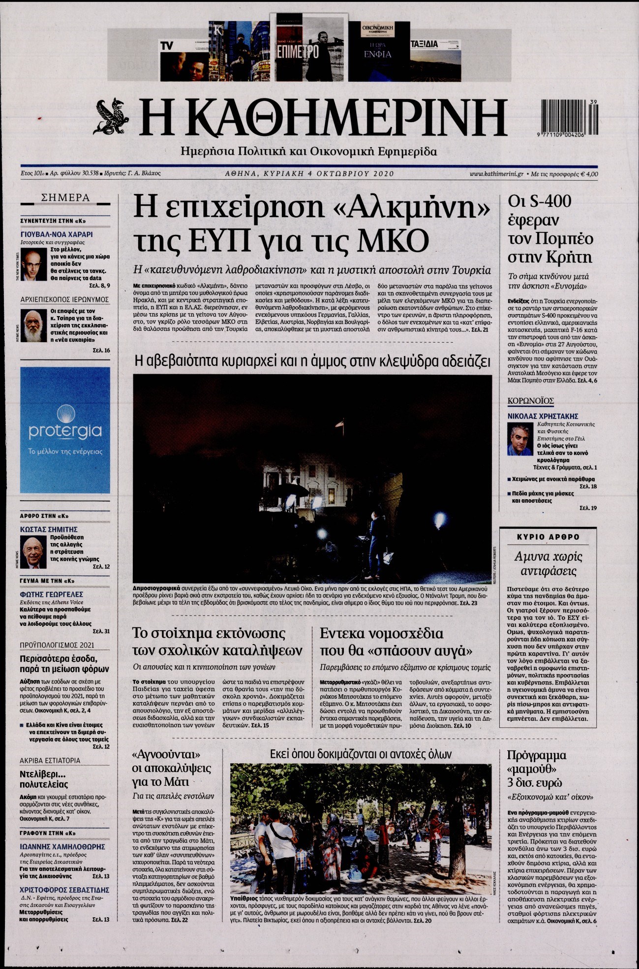 Οι πολιτικές εφημερίδες 4/10/2020 Διονύσης Νίκκας 07:14, Κυριακή 04 Οκτωβρίου 2020 Media Διαβάστε τα πρωτοσέλιδα των πολιτικών εφημερίδων… ΠΟΛΙΤΙΚΕΣ ΕΦΗΜΕΡΙΔΕΣ ΠΡΩΤΟΣΕΛΙΔΑ Μοιράσου το: σχολίασε κι εσύ (0 σχόλια) Ακολουθήστε το enikos.gr στο Google News και μάθετε πρώτοι όλες τις ειδήσεις Δείτε όλες τις τελευταίες ειδήσεις από την Ελλάδα και τον Κόσμο στο enikos.gr Ειδήσεις Ροή Ειδήσεων 53 λεπτά πριν Χριστούγεννα στα μπλόκα: Επιμένουν στις κινητοποιήσεις τους οι αγρότες – Ανοίγουν τα διόδια το Σαββατοκύριακο 1 ώρα πριν Ουκρανία: Η άνευ προηγουμένου επίθεση σε ρωσικό τάνκερ στη Μεσόγειο και το μήνυμα προς στον Πούτιν – Το «μακρύ χέρι» του Κιέβου 30 λεπτά πριν Πούτιν: Τα μηνύματα σε Ευρώπη και ΝΑΤΟ από το μαραθώνιο «σόου» του – Η απαίτηση για «σεβασμό» και η ειρήνη «με τους όρους» της Μόσχας 1 ώρα πριν Τραμπ: Δεν αποκλείει την πιθανότητα ενός πολέμου στη Βενεζουέλα – «Ο Μαδούρο ξέρει καλύτερα από τον καθένα τι ακριβώς θέλω» 2 ώρες πριν Συνεχίζει να προκαλεί ο Μίτσκοσκι: «Για μένα το όνομα Μακεδονία είναι ιερό» 4 ώρες πριν Πούτιν: «Ναι, είμαι ερωτευμένος» – Βίντεο από τη σπάνια προσωπική παραδοχή του 3 ώρες πριν Αριθμολογία: Οι άνθρωποι που έχουν γεννηθεί αυτές τις 4 ημερομηνίες, συχνά παρεξηγούνται – «Η καλοσύνη τους κρύβει τεράστια δύναμη» 2 ώρες πριν Ύπνος: Μια κρυφή κατάσταση του εγκεφάλου πριν από τον ύπνο μπορεί να είναι το “κλειδί” για υψηλή ευφυΐα και δημιουργικότητα 4 ώρες πριν Ξεχάστε το καθάρισμα το Σαββατοκύριακο: Ο «κανόνας των 20 λεπτών» που θα σας λύσει τα χέρια 31 λεπτά πριν Ανακαλύφθηκαν αρχαία χρυσά νομίσματα 2.200 ετών που απεικονίζουν τον θεό Απόλλωνα – Η άγνωστη σύνδεση με τον Φίλιππο Β΄ της Μακεδονίας 51 δευτερόλεπτα πριν Γάζα: Ισραηλινό πλήγμα σε σχολείο που είχαν καταφύγει εκτοπισμένοι – Τουλάχιστον έξι νεκροί 15 λεπτά πριν Ολυμπιακός – Βιλερμπάν 107-84: Επιστροφή στις νίκες με… προπόνηση 21 λεπτά πριν Νέος Κόσμος: Συνελήφθη 41χρονος με ένταλμα από την Τουρκία για εμπόριο ναρκωτικών και ληστεία 30 λεπτά πριν Πούτιν: Τα μηνύματα σε Ευρώπη και ΝΑΤΟ από το μαραθώνιο «σόου» του – Η απαίτηση για «σεβασμό» και η ειρήνη «με τους όρους» της Μόσχας 31 λεπτά πριν Ανακαλύφθηκαν αρχαία χρυσά νομίσματα 2.200 ετών που απεικονίζουν τον θεό Απόλλωνα – Η άγνωστη σύνδεση με τον Φίλιππο Β΄ της Μακεδονίας ENIKOS NETWORK Το ΕΚΑΒ τιμήθηκε από την Ακαδημία Αθηνών για τα 40 χρόνια προσφοράς του Έχετε πραγματικά μεγάλη καρδιά; 10 χαρακτηριστικά όσων έχουν καλοσύνη Αναστολή μέτρων αναγκαστικής εκτέλεσης για κτηνοτρόφους που πλήττονται από την ευλογιά των αιγοπροβάτων Πλήρης επάρκεια προϊόντων στις λαϊκές της Αττικής, παρά τις αγροτικές κινητοποιήσεις – Τι απαντούν οι πωλητές Χαρτογραφώντας το «σημείο χωρίς επιστροφή»: Για πρώτη φορά αποκαλύπτεται με λεπτομέρεια το ακανθώδες όριο της ατμόσφαιρας τ... Η Google καταργεί τη λειτουργία «dark web report» – Πώς θα μπορούν οι χρήστες να διαγράφουν τα δεδομένα τους περισσότερα 22:42 , Παρασκευή 19 Δεκεμβρίου 2025 Γιώργος Γιαννόπουλος για “Το σόι σου”: “Είναι ευτυχία και ευλογία αυτή η σειρά” «Είναι ευτυχία και ευλογία η συγκυρία αυτής της σειράς», θα πει ο Γιώργος Γιαννόπουλος -ο αγαπ... 20:37 , Παρασκευή 19 Δεκεμβρίου 2025 Don’t Forget The Lyrics: Η Έλλη Κοκκίνου υποδέχεται 4 παίκτες που θα κάνουν τα πάντα για να μη χάσουν ούτε… μισή λέξη από τους στίχους Το «Don’t Forget The Lyrics» επιστρέφει απόψε, Παρασκευή 19 Δεκεμβρίου, στις 21:00 με νέο επει... 19:31 , Παρασκευή 19 Δεκεμβρίου 2025