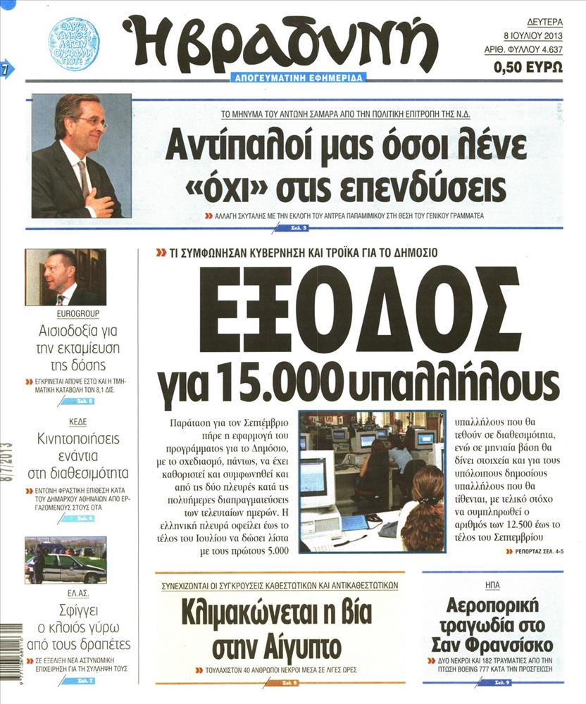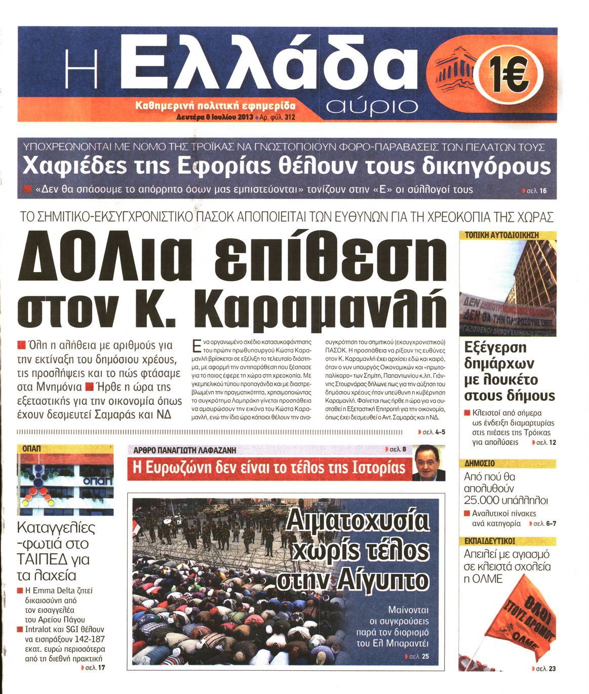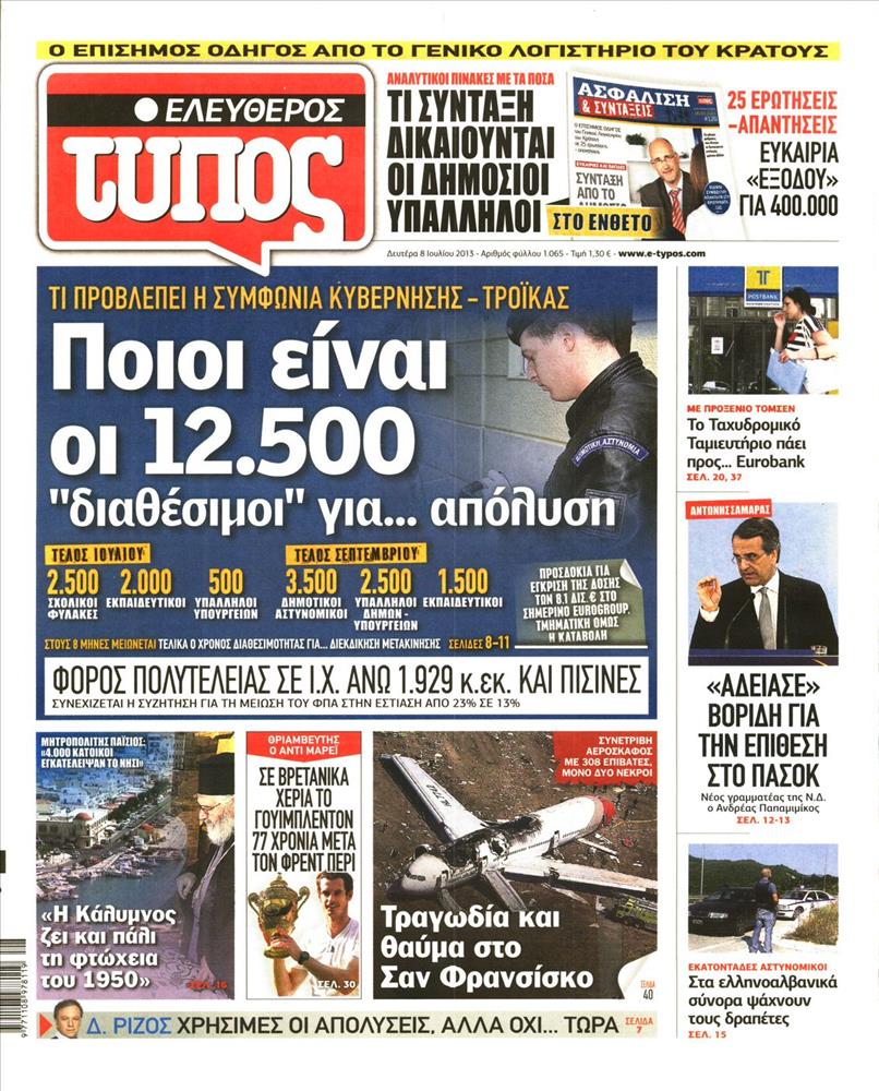Οι πολιτικές εφημερίδες Enikos Newsroom 08:53, Δευτέρα 08 Ιουλίου 2013 Media Οι πολιτικές εφημερίδες Διαβάστε τα πρωτοσέλιδα των πολιτικών εφημερίδων: ΕΦΗΜΕΡΙΔΕΣ ΠΟΛΙΤΙΚΕΣ ΕΦΗΜΕΡΙΔΕΣ ΠΡΩΤΟΣΕΛΙΔΑ Μοιράσου το: σχολίασε κι εσύ (0 σχόλια) Ακολουθήστε το enikos.gr στο Google News και μάθετε πρώτοι όλες τις ειδήσεις Δείτε όλες τις τελευταίες ειδήσεις από την Ελλάδα και τον Κόσμο στο enikos.gr Ειδήσεις Ροή Ειδήσεων 33 λεπτά πριν Τσιάρας προς αγρότες: Τα μπλόκα και τα πείσματα δεν ωφελούν – Οι λύσεις περνούν μέσα από τον διάλογο 1 ώρα πριν Αρχεία Έπσταϊν: Οι συγκλονιστικές φωτογραφίες – Ο Μάικλ Τζάκσον, ο Μικ Τζάγκερ και ο Κέβιν Σπέισι ανάμεσα στους διάσημους που απεικονίζονται 3 ώρες πριν Νέες ταυτότητες: Μεγάλη αναμονή για ραντεβού στην Αττική – Τέλος τα ταξίδια εκτός Ελλάδος από τον Αύγουστο για όσους δεν έχουν αλλάξει 2 ώρες πριν Ινδία: Επτά ελέφαντες σκοτώθηκαν κατά τη σύγκρουση επιβατικού τρένου με κοπάδι 3 ώρες πριν Συνελήφθη οδηγός μηχανής που έτρεχε με 161 χλμ στη Συγγρού – Τον έπιασε το ραντάρ της Τροχαίας 4 ώρες πριν Μία νέα «χρυσή» περίοδος αρχίζει για 3 ζώδια από σήμερα – «Μία αναπάντεχη ευκαιρία οδηγεί στην επιτυχία» 5 ώρες πριν Αγχώνεται για το χριστουγεννιάτικο δώρο που πήρε στην πλούσια σύντροφό του – «Φοβάμαι πως θα το βρει φθηνιάρικο, φοράει βραχιόλια Cartier» 2 ώρες πριν Διαιτολόγος αποκαλύπτει 9 πρωινές συνήθειες που «λιώνουν» το κοιλιακό λίπος – «Υποστηρίζουν την υγιεινή απώλεια βάρους» 3 ώρες πριν Οι 7 φράσεις που δεν λένε ποτέ οι συναισθηματικά έξυπνοι άνθρωποι κατά τη διάρκεια ενός καβγά 8 λεπτά πριν Κικίλιας: «Ολοκληρώθηκαν πληρωμές 22,16 εκ. ευρώ για το μεταφορικό ισοδύναμο» 16 λεπτά πριν Πάτρα: Πέθανε 46χρονος έπειτα από λιποθυμικό επεισόδιο στο σπίτι του 24 λεπτά πριν «Μεγάλη Χίμαιρα»: Πότε κάνει πρεμιέρα η σειρά 32 λεπτά πριν Καλλιθέα: Έφοδος του «ελληνικού FBI» σε δύο καταστήματα stripshow – 5 συλλήψεις – Βίντεο 33 λεπτά πριν Τσιάρας προς αγρότες: Τα μπλόκα και τα πείσματα δεν ωφελούν – Οι λύσεις περνούν μέσα από τον διάλογο ENIKOS NETWORK Γήρανση του εγκεφάλου: Νευροεπιστήμονες ανακάλυψαν τη 10λεπτη δραστηριότητα που μπορεί να τη σταματήσει Είστε μόνιμα απρόσεκτοι; 3 σημάδια που δείχνουν ότι μπορεί να είναι σύμπτωμα πάθησης Χειμερινές εκπτώσεις 2026: Πρεμιέρα στις 12 Ιανουαρίου – Πόσο θα διαρκέσουν και τι πρέπει να γνωρίζουν οι καταναλωτές Χρήστος Δήμας: Στα 2,5 εκατ. ευρώ την ημέρα το κόστος από το άνοιγμα των διοδίων από τους αγρότες – Θα αξιώσουν αποζημίωση ... Χαρτογραφώντας το «σημείο χωρίς επιστροφή»: Για πρώτη φορά αποκαλύπτεται με λεπτομέρεια το ακανθώδες όριο της ατμόσφαιρας τ... Η Google καταργεί τη λειτουργία «dark web report» – Πώς θα μπορούν οι χρήστες να διαγράφουν τα δεδομένα τους περισσότερα 12:53 , Σάββατο 20 Δεκεμβρίου 2025 Να μ’ αγαπάς: Το παρελθόν έρχεται στο φως – Καταιγιστικές εξελίξεις στα τελευταία επεισόδια του 2025 Ο Άγγελος αποκαλύπτεται, η Φωτεινή ανησυχεί για τον Λευτέρη και η Ζωή έρχεται αντιμέτωπη με το... 11:41 , Σάββατο 20 Δεκεμβρίου 2025 «Η αγάπη δεν χάνεται ποτέ»: Η μικρού μήκους ταινία κινουμένων σχεδίων που θέτει ερωτήματα για τη ζωή και τον θάνατο Ο θάνατος είναι ένα από τα πιο σκληρά θέματα που καλείται να διαχειριστεί κάποιος στη διάρκεια... 09:30 , Σάββατο 20 Δεκεμβρίου 2025 «Porto Leone: Στη γειτονιά με τα κόκκινα φανάρια» – Ο Χρόνης αποκαλύπτει στην Αλεξάνδρα το μυστικό για το παιδί της Λένας Η μεγάλη δραματική σειρά του Apha «Porto Leone: Στη γειτονιά με τα κόκκινα 