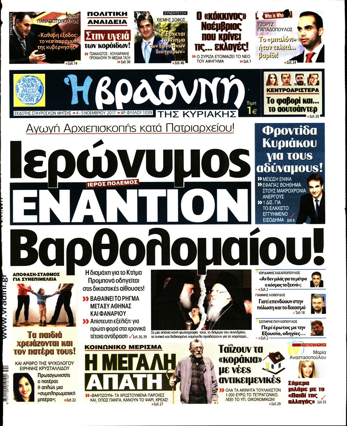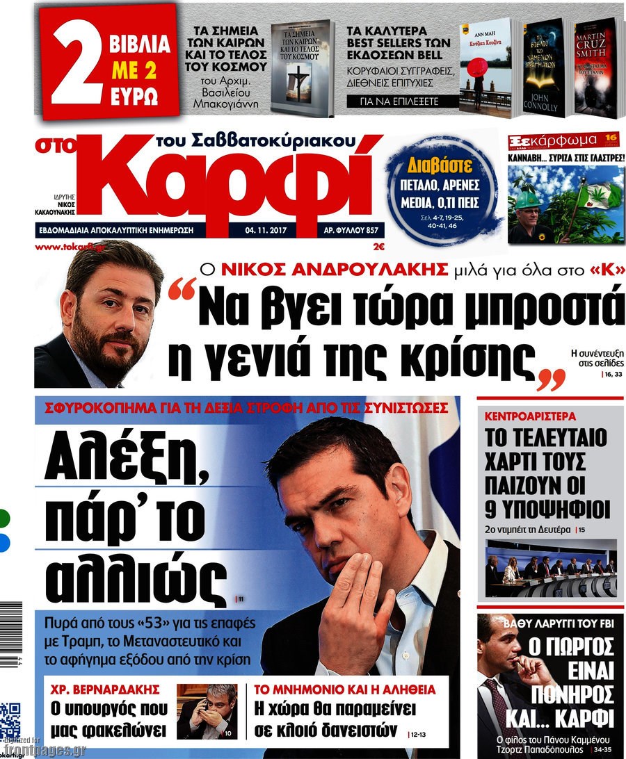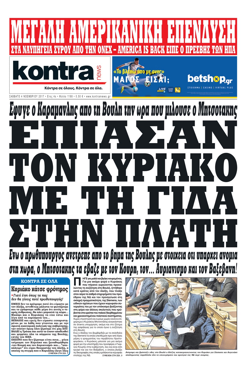 Οι πολιτικές εφημερίδες 4/11/2017 Enikos Newsroom 07:56, Σάββατο 04 Νοεμβρίου 2017 Media Διαβάστε τα σημερινά πρωτοσέλιδα των πολιτικών εφημερίδων: ΠΟΛΙΤΙΚΕΣ ΕΦΗΜΕΡΙΔΕΣ ΠΡΩΤΟΣΕΛΙΔΑ Μοιράσου το: σχολίασε κι εσύ (0 σχόλια) Ακολουθήστε το enikos.gr στο Google News και μάθετε πρώτοι όλες τις ειδήσεις Δείτε όλες τις τελευταίες ειδήσεις από την Ελλάδα και τον Κόσμο στο enikos.gr Ειδήσεις Ροή Ειδήσεων 3 ώρες πριν Χριστούγεννα στα μπλόκα: Επιμένουν στις κινητοποιήσεις τους οι αγρότες – Ανοίγουν τα διόδια το Σαββατοκύριακο 3 ώρες πριν Ουκρανία: Η άνευ προηγουμένου επίθεση σε ρωσικό τάνκερ στη Μεσόγειο και το μήνυμα προς στον Πούτιν – Το «μακρύ χέρι» του Κιέβου 2 ώρες πριν Πούτιν: Τα μηνύματα σε Ευρώπη και ΝΑΤΟ από το μαραθώνιο «σόου» του – Η απαίτηση για «σεβασμό» και η ειρήνη «με τους όρους» της Μόσχας 3 ώρες πριν Τραμπ: Δεν αποκλείει την πιθανότητα ενός πολέμου στη Βενεζουέλα – «Ο Μαδούρο ξέρει καλύτερα από τον καθένα τι ακριβώς θέλω» 4 ώρες πριν Συνεχίζει να προκαλεί ο Μίτσκοσκι: «Για μένα το όνομα Μακεδονία είναι ιερό» 2 ώρες πριν Ανακαλύφθηκαν αρχαία χρυσά νομίσματα 2.200 ετών που απεικονίζουν τον θεό Απόλλωνα – Η άγνωστη σύνδεση με τον Φίλιππο Β΄ της Μακεδονίας 3 ώρες πριν Ύπνος: Μια κρυφή κατάσταση του εγκεφάλου πριν από τον ύπνο μπορεί να είναι το “κλειδί” για υψηλή ευφυΐα και δημιουργικότητα 4 ώρες πριν Αριθμολογία: Οι άνθρωποι που έχουν γεννηθεί αυτές τις 4 ημερομηνίες, συχνά παρεξηγούνται – «Η καλοσύνη τους κρύβει τεράστια δύναμη» 5 ώρες πριν Ξεχάστε το καθάρισμα το Σαββατοκύριακο: Ο «κανόνας των 20 λεπτών» που θα σας λύσει τα χέρια 6 λεπτά πριν Συρία: Μαζικά πλήγματα των ΗΠΑ σε θέσεις του Ισλαμικού Κράτους – Χέγκσεθ: «Δεν είναι αρχή πολέμου, είναι μια δήλωση εκδίκησης» για το θάνατο των στρατιωτών μας 18 λεπτά πριν Ουκρανία: Ολοκληρώθηκαν οι συνομιλίες με τους Αμερικανούς κι Ευρωπαίους διαπραγματευτές 33 λεπτά πριν Μπαρτσελόνα – Μπασκόνια 134-124: Οι «μπλαουγκράνα» πήραν το ματς της χρονιάς ύστερα από τρεις παρατάσεις 48 λεπτά πριν Φαίη Σκορδά: «Παλιότερα τα κομπλιμέντα τα προσπερνούσα, τώρα τα έχω ανάγκη» 1 ώρα πριν Βασίλης Σπανούλης: Δεν εμφανίστηκε ούτε ένας δημοσιογράφος στην συνέντευξη Τύπου – «Καλησπέρα στον… κανέναν», δείτε βίντεο ENIKOS NETWORK Το ΕΚΑΒ τιμήθηκε από την Ακαδημία Αθηνών για τα 40 χρόνια προσφοράς του Έχετε πραγματικά μεγάλη καρδιά; 10 χαρακτηριστικά όσων έχουν καλοσύνη Αναστολή μέτρων αναγκαστικής εκτέλεσης για κτηνοτρόφους που πλήττονται από την ευλογιά των αιγοπροβάτων Πλήρης επάρκεια προϊόντων στις λαϊκές της Αττικής, παρά τις αγροτικές κινητοποιήσεις – Τι απαντούν οι πωλητές Χαρτογραφώντας το «σημείο χωρίς επιστροφή»: Για πρώτη φορά αποκαλύπτεται με λεπτομέρεια το ακανθώδες όριο της ατμόσφαιρας τ... Η Google καταργεί τη λειτουργία «dark web report» – Πώς θα μπορούν οι χρήστες να διαγράφουν τα δεδομένα τους περισσότερα 22:42 , Παρασκευή 19 Δεκεμβρίου 2025 Γιώργος Γιαννόπουλος για “Το σόι σου”: “Είναι ευτυχία και ευλογία αυτή η σειρά” «Είναι ευτυχία και ευλογία η συγκυρία αυτής της σειράς», θα πει ο Γιώργος Γιαννόπουλος -ο αγαπ... 20:37 , Παρασκευή 19 Δεκεμβρίου 2025 Don’t Forget The Lyrics: Η Έλλη Κοκκίνου υποδέχεται 4 παίκτες που θα κάνουν τα πάντα για να μη χάσουν ούτε… μισή λέξη από τους στίχους Το «Don’t Forget The Lyrics» επιστρέφει απόψε, Παρασκευή 19 Δεκεμβρίου, στις 21:00 με νέο επει... 19:31 , Παρασκευή 19 Δεκεμβρίου 2025 GNTM: Απόψε ο μεγάλος τελικός για τους 4 φιναλίστ Έπειτα από μήνες γεμ