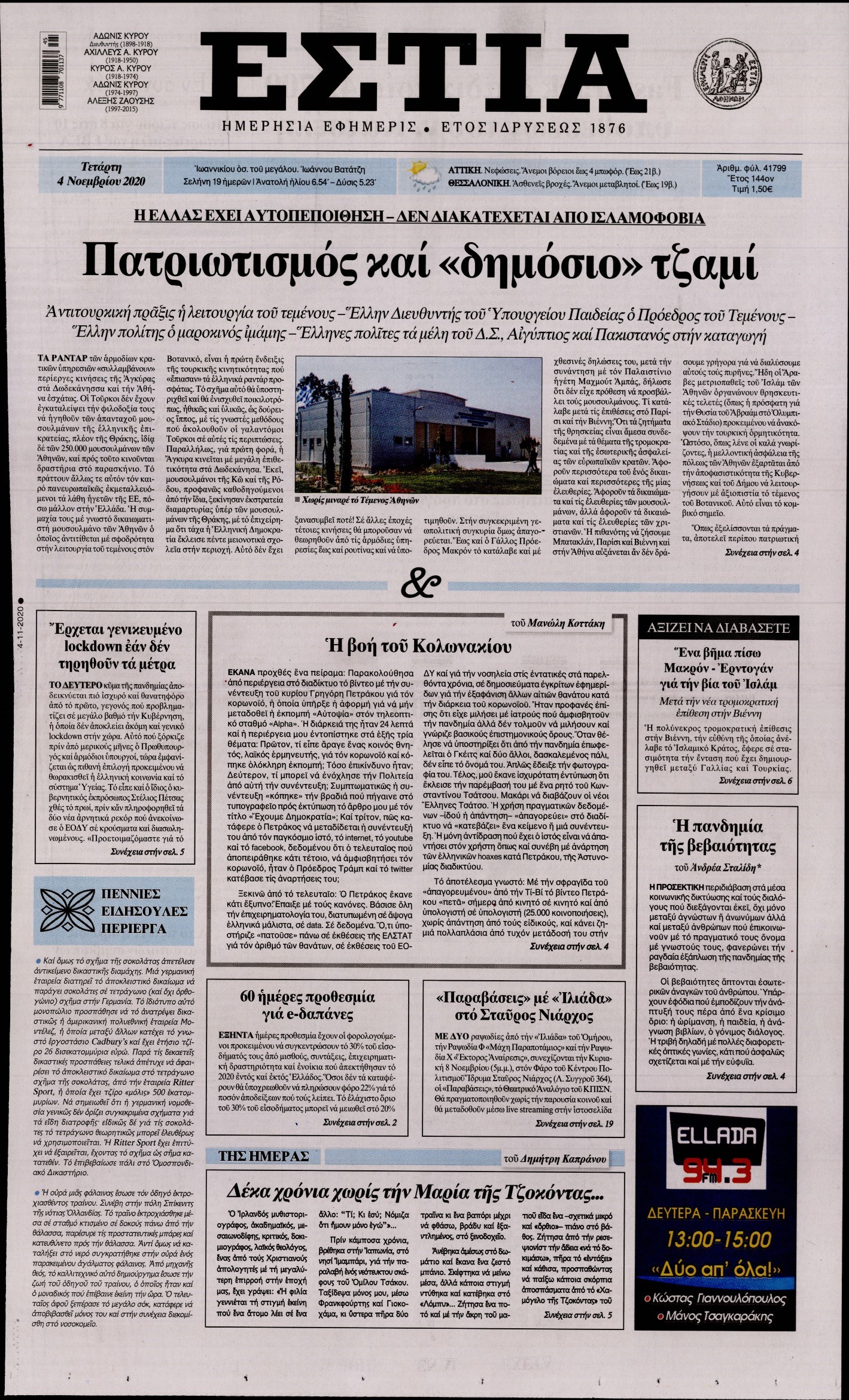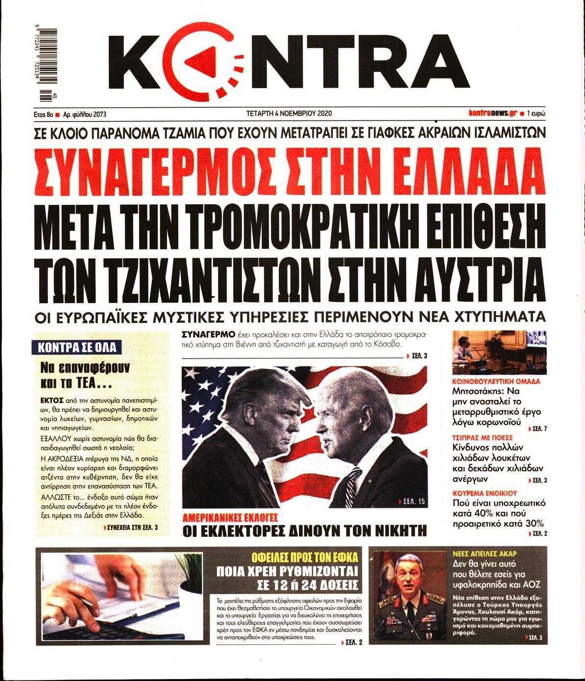 Οι πολιτικές εφημερίδες 4/11/2020 Διονύσης Νίκκας 06:06, Τετάρτη 04 Νοεμβρίου 2020 Media Διαβάστε τα πρωτοσέλιδα των πολιτικών εφημερίδων… ΕΦΗΜΕΡΙΔΕΣ ΠΟΛΙΤΙΚΕΣ ΕΦΗΜΕΡΙΔΕΣ ΠΡΩΤΟΣΕΛΙΔΑ Μοιράσου το: σχολίασε κι εσύ (0 σχόλια) Ακολουθήστε το enikos.gr στο Google News και μάθετε πρώτοι όλες τις ειδήσεις Δείτε όλες τις τελευταίες ειδήσεις από την Ελλάδα και τον Κόσμο στο enikos.gr Ειδήσεις Ροή Ειδήσεων 3 λεπτά πριν Υπόθεση Έπσταϊν: Το Υπουργείο Δικαιοσύνης δημοσιοποίησε μια σειρά από εξαιρετικά επεξεργασμένα αρχεία – «Λείπουν τα πιο σημαντικά έγγραφα», λένε οι Δημοκρατικοί 9 ώρες πριν Χριστούγεννα στα μπλόκα: Επιμένουν στις κινητοποιήσεις τους οι αγρότες – Ανοίγουν τα διόδια το Σαββατοκύριακο 2 ώρες πριν Σαρωτικοί οι έλεγχοι στους δρόμους ενόψει εορτών – Μπλόκα της τροχαίας σε κεντρικές αρτηρίες της Αττικής 9 ώρες πριν Πούτιν: Τα μηνύματα σε Ευρώπη και ΝΑΤΟ από το μαραθώνιο «σόου» του – Η απαίτηση για «σεβασμό» και η ειρήνη «με τους όρους» της Μόσχας 8 ώρες πριν Άνω Λιόσια: Πυροβολισμοί σε επιχείρηση με χαλιά – Εντοπίστηκαν 10 κάλυκες 2 ώρες πριν Αυγά: Πόσα μπορείτε να τρώτε την ημέρα με ασφάλεια για μέγιστη πρόσληψη πρωτεΐνης 2 ώρες πριν Τα ζώδια σήμερα, Σάββατο 20 Δεκεμβρίου: Παρθένοι, το σύμπαν σας δίνει το κλειδί 9 ώρες πριν Ανακαλύφθηκαν αρχαία χρυσά νομίσματα 2.200 ετών που απεικονίζουν τον θεό Απόλλωνα – Η άγνωστη σύνδεση με τον Φίλιππο Β΄ της Μακεδονίας 2 ώρες πριν Οπτική ψευδαίσθηση: Μόνο αν είσαι ο Σέρλοκ Χολμς θα βρεις τον αριθμό «87» σε 7 δευτερόλεπτα 3 λεπτά πριν Υπόθεση Έπσταϊν: Το Υπουργείο Δικαιοσύνης δημοσιοποίησε μια σειρά από εξαιρετικά επεξεργασμένα αρχεία – «Λείπουν τα πιο σημαντικά έγγραφα», λένε οι Δημοκρατικοί 6 λεπτά πριν Καιρός: Αλλαγή σκηνικού σήμερα με βροχές και πτώση της θερμοκρασίας – Οι προβλέψεις των μετεωρολόγων για τα Χριστούγεννα 13 λεπτά πριν ΟΝΕΧ – MEGATUGS: Ξεκίνησε η ναυπήγηση ρυμουλκών στην Ελλάδα – Προθάλαμος πολεμικών πλοίων – Δείτε φωτογραφίες και βίντεο 22 λεπτά πριν Φοινικούντα: Σήμερα απολογείται ο 30χρονος γιος γνωστού επιχειρηματία της Πλάκας 30 λεπτά πριν Οι αθλητικές μεταδόσεις 20/12/2025 ENIKOS NETWORK Πρέπει να αποδέχεστε ή να απορρίπτετε όλα τα cookies; Ένας ειδικός εξηγεί Η αγαπημένη λιχουδιά των πόνι που μπορεί να ενισχύσει όραση, εγκέφαλο και ανοσοποιητικό Αναστολή μέτρων αναγκαστικής εκτέλεσης για κτηνοτρόφους που πλήττονται από την ευλογιά των αιγοπροβάτων Πλήρης επάρκεια προϊόντων στις λαϊκές της Αττικής, παρά τις αγροτικές κινητοποιήσεις – Τι απαντούν οι πωλητές Χαρτογραφώντας το «σημείο χωρίς επιστροφή»: Για πρώτη φορά αποκαλύπτεται με λεπτομέρεια το ακανθώδες όριο της ατμόσφαιρας τ... Η Google καταργεί τη λειτουργία «dark web report» – Πώς θα μπορούν οι χρήστες να διαγράφουν τα δεδομένα τους περισσότερα 05:48 , Σάββατο 20 Δεκεμβρίου 2025 Οι οικονομικές εφημερίδες 20/12/2025 Διαβάστε τα πρωτοσέλιδα από τις οικονομικές εφημερίδες, σήμερα 20/12/2025. 05:43 , Σάββατο 20 Δεκεμβρίου 2025 Οι αθλητικές εφημερίδες 20/12/2025 Διαβάστε τα πρωτοσέλιδα από τις αθλητικές εφημερίδες, σήμερα 20/12/2025. 05:38 , Σάββατο 20 Δεκεμβρίου 2025 Οι πολιτικές εφημερίδες 20/12/2025 Διαβάστε τα πρωτοσέλιδα από τις πολιτικές εφημερίδες, σήμερα 20/12/2025. 04:20 , Σάββατο 20 Δεκεμβρίου 2025 Αγγελική Νικολούλη: Τα συλλυπητήρια για την απώλεια της Ειρήνης Μαρινάκη Τα συλληπητήρια στον πρόεδρο του Mega, τον Βαγγέλη Μαρινάκη, για την απώλεια της μητέρας του Ε... ΤΕΛΕΥΤΑΙΕΣ ΕΙΔΗΣΕΙΣ 3 λεπτά πριν Υπόθεση Έπσταϊ