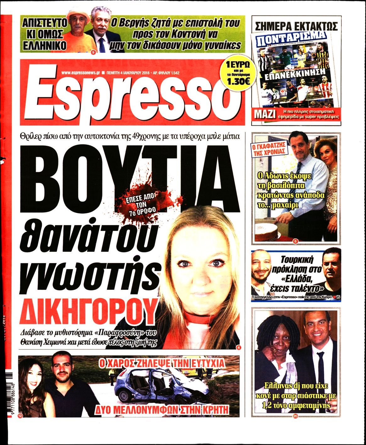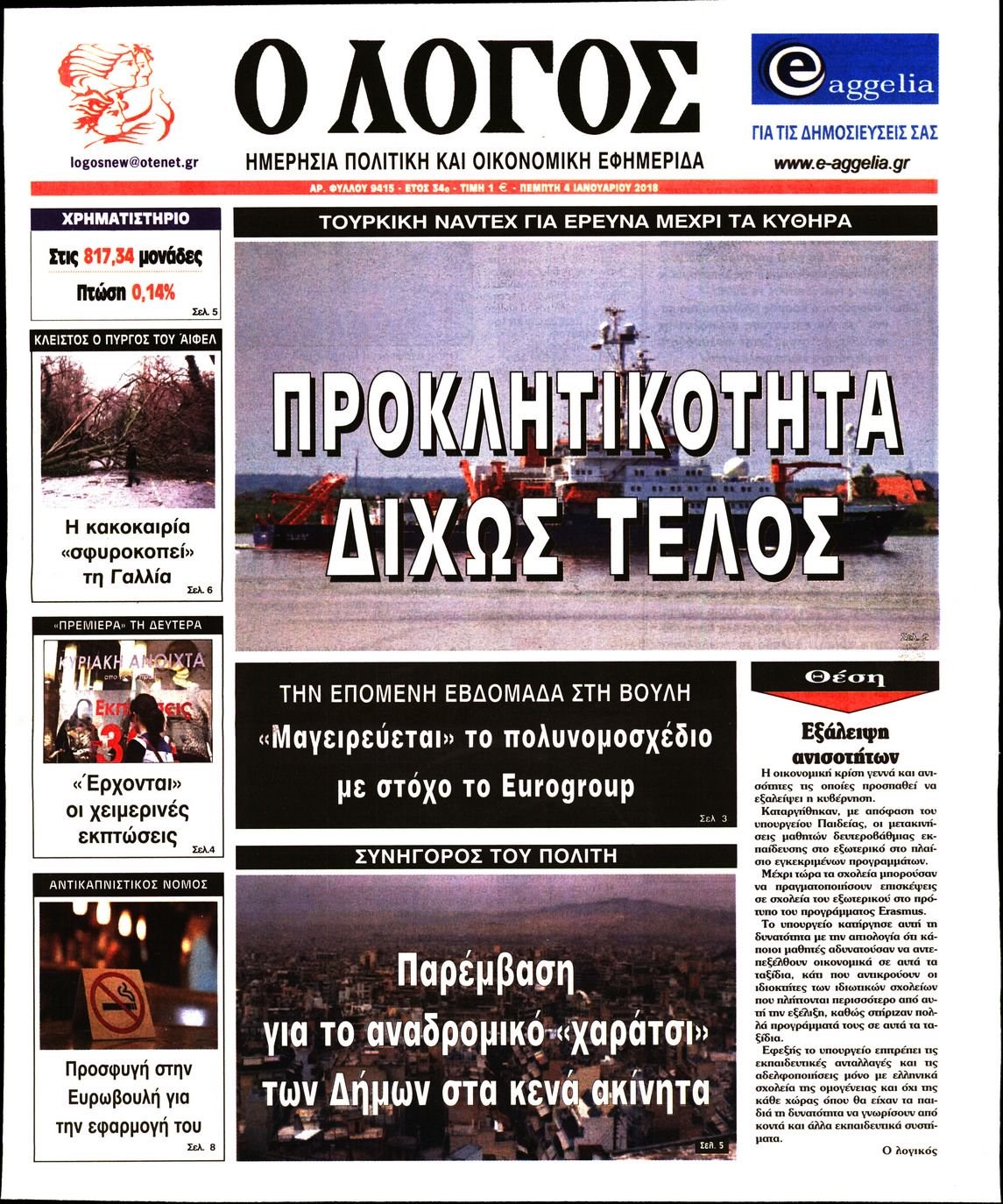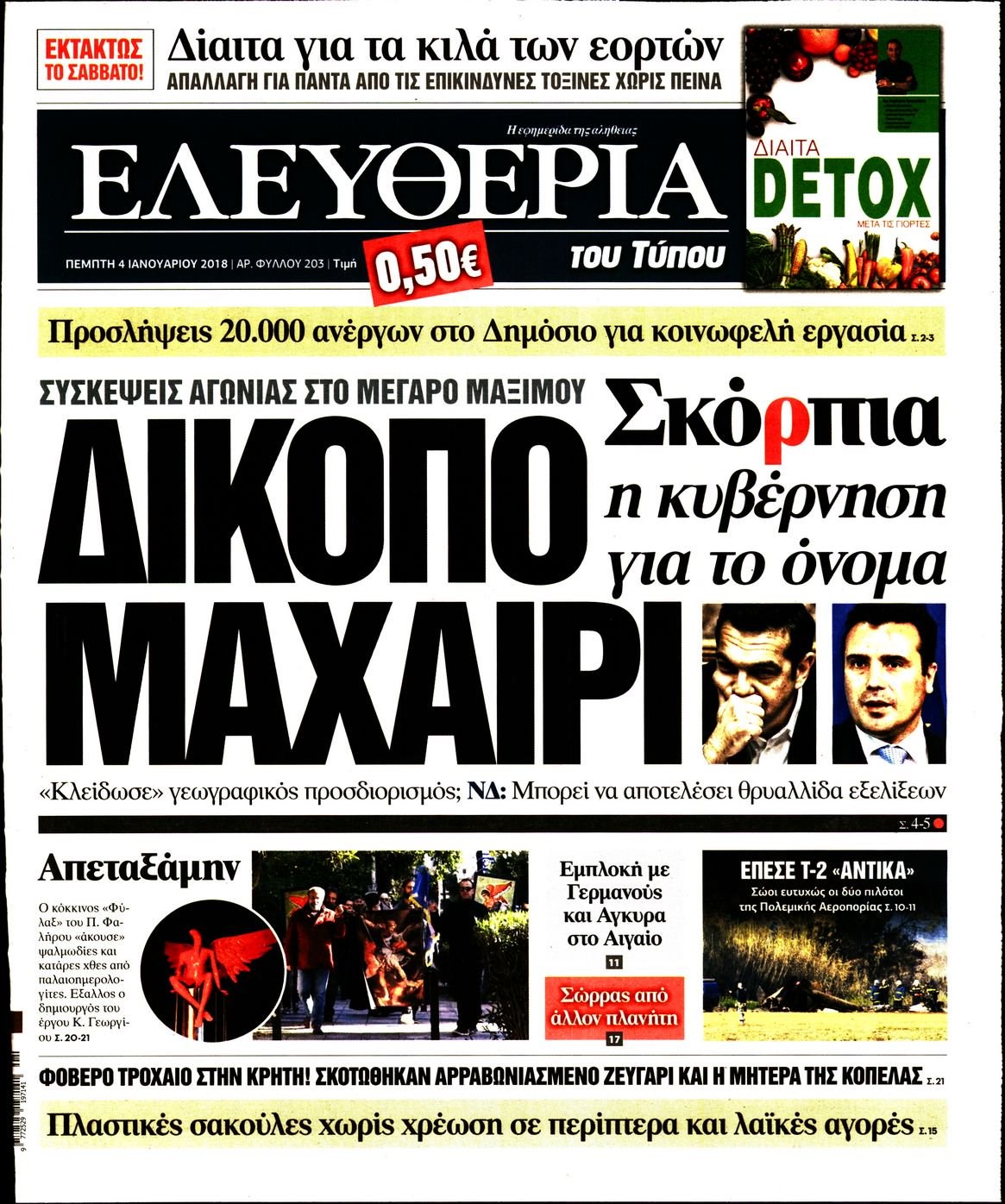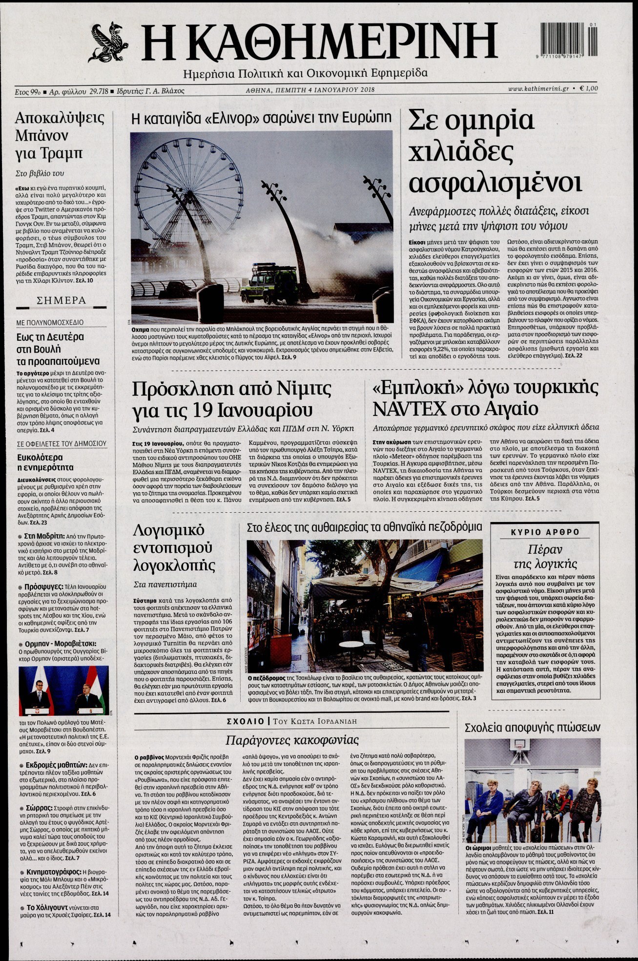 Οι πολιτικές εφημερίδες 4/1/2018 Enikos Newsroom 07:33, Πέμπτη 04 Ιανουαρίου 2018 Media Διαβάστε τα σημερινά πρωτοσέλιδα των πολιτικών εφημερίδων: ΠΟΛΙΤΙΚΕΣ ΕΦΗΜΕΡΙΔΕΣ ΠΡΩΤΟΣΕΛΙΔΑ Μοιράσου το: σχολίασε κι εσύ (0 σχόλια) Ακολουθήστε το enikos.gr στο Google News και μάθετε πρώτοι όλες τις ειδήσεις Δείτε όλες τις τελευταίες ειδήσεις από την Ελλάδα και τον Κόσμο στο enikos.gr Ειδήσεις Ροή Ειδήσεων 8 ώρες πριν Χριστούγεννα στα μπλόκα: Επιμένουν στις κινητοποιήσεις τους οι αγρότες – Ανοίγουν τα διόδια το Σαββατοκύριακο 9 ώρες πριν Ουκρανία: Η άνευ προηγουμένου επίθεση σε ρωσικό τάνκερ στη Μεσόγειο και το μήνυμα προς στον Πούτιν – Το «μακρύ χέρι» του Κιέβου 8 ώρες πριν Πούτιν: Τα μηνύματα σε Ευρώπη και ΝΑΤΟ από το μαραθώνιο «σόου» του – Η απαίτηση για «σεβασμό» και η ειρήνη «με τους όρους» της Μόσχας 7 ώρες πριν ΗΠΑ: Η κυβέρνηση του Ντόναλντ Τραμπ άρχισε να δημοσιοποιεί τα αρχεία Έπσταϊν 7 ώρες πριν Άνω Λιόσια: Πυροβολισμοί σε επιχείρηση με χαλιά – Εντοπίστηκαν 10 κάλυκες 57 λεπτά πριν Αυγά: Πόσα μπορείτε να τρώτε την ημέρα με ασφάλεια για μέγιστη πρόσληψη πρωτεΐνης 1 ώρα πριν Τα ζώδια σήμερα, Σάββατο 20 Δεκεμβρίου: Παρθένοι, το σύμπαν σας δίνει το κλειδί 8 ώρες πριν Ανακαλύφθηκαν αρχαία χρυσά νομίσματα 2.200 ετών που απεικονίζουν τον θεό Απόλλωνα – Η άγνωστη σύνδεση με τον Φίλιππο Β΄ της Μακεδονίας 9 ώρες πριν Ύπνος: Μια κρυφή κατάσταση του εγκεφάλου πριν από τον ύπνο μπορεί να είναι το “κλειδί” για υψηλή ευφυΐα και δημιουργικότητα 3 λεπτά πριν Αναβολή συμφωνίας ΕΕ-Mercosur: Ο χρόνος «δεν είναι απεριόριστος» προειδοποιεί η Παραγουάη 17 λεπτά πριν Κίριλ Ντμίτριεφ: Στις ΗΠΑ ο απεσταλμένος της Ρωσίας για συνομιλίες με τους ομολόγους του, Γουίτκοφ και Κούσνερ 25 λεπτά πριν ΔΕΔΔΗΕ: Διακοπές ρεύματος σήμερα (20/12) στην Αθήνα και σε άλλες 7 περιοχές της Αττικής 33 λεπτά πριν Κολομβία: Είκοσι χρόνια κάθειρξη σε πρώην ανώτερο αξιωματικό για 72 εκτελέσεις αμάχων 41 λεπτά πριν Οπτική ψευδαίσθηση: Μόνο αν είσαι ο Σέρλοκ Χολμς θα βρεις τον αριθμό «87» σε 7 δευτερόλεπτα ENIKOS NETWORK Πρέπει να αποδέχεστε ή να απορρίπτετε όλα τα cookies; Ένας ειδικός εξηγεί Η αγαπημένη λιχουδιά των πόνι που μπορεί να ενισχύσει όραση, εγκέφαλο και ανοσοποιητικό Αναστολή μέτρων αναγκαστικής εκτέλεσης για κτηνοτρόφους που πλήττονται από την ευλογιά των αιγοπροβάτων Πλήρης επάρκεια προϊόντων στις λαϊκές της Αττικής, παρά τις αγροτικές κινητοποιήσεις – Τι απαντούν οι πωλητές Χαρτογραφώντας το «σημείο χωρίς επιστροφή»: Για πρώτη φορά αποκαλύπτεται με λεπτομέρεια το ακανθώδες όριο της ατμόσφαιρας τ... Η Google καταργεί τη λειτουργία «dark web report» – Πώς θα μπορούν οι χρήστες να διαγράφουν τα δεδομένα τους περισσότερα 05:48 , Σάββατο 20 Δεκεμβρίου 2025 Οι οικονομικές εφημερίδες 20/12/2025 Διαβάστε τα πρωτοσέλιδα από τις οικονομικές εφημερίδες, σήμερα 20/12/2025. 05:43 , Σάββατο 20 Δεκεμβρίου 2025 Οι αθλητικές εφημερίδες 20/12/2025 Διαβάστε τα πρωτοσέλιδα από τις αθλητικές εφημερίδες, σήμερα 20/12/2025. 05:38 , Σάββατο 20 Δεκεμβρίου 2025 Οι πολιτικές εφημερίδες 20/12/2025 Διαβάστε τα πρωτοσέλιδα από τις πολιτικές εφημερίδες, σήμερα 20/12/2025. 04:20 , Σάββατο 20 Δεκεμβρίου 2025 Αγγελική Νικολούλη: Τα συλλυπητήρια για την απώλεια της Ειρήνης Μαρινάκη Τα συλληπητήρια στον πρόεδρο του Mega, τον Βαγγέλη Μαρινάκη, για την απώλεια της μητέρας του Ε... ΤΕΛΕΥΤΑΙΕΣ ΕΙΔΗΣΕΙΣ 17 λεπτά πριν Κίριλ Ντμίτριεφ: Στις ΗΠΑ ο απεσταλμένος της Ρωσίας... 25 λεπτά πριν ΔΕΔΔΗΕ: Διακοπές ρεύματος σήμερα (20/12) στην Αθήνα κ