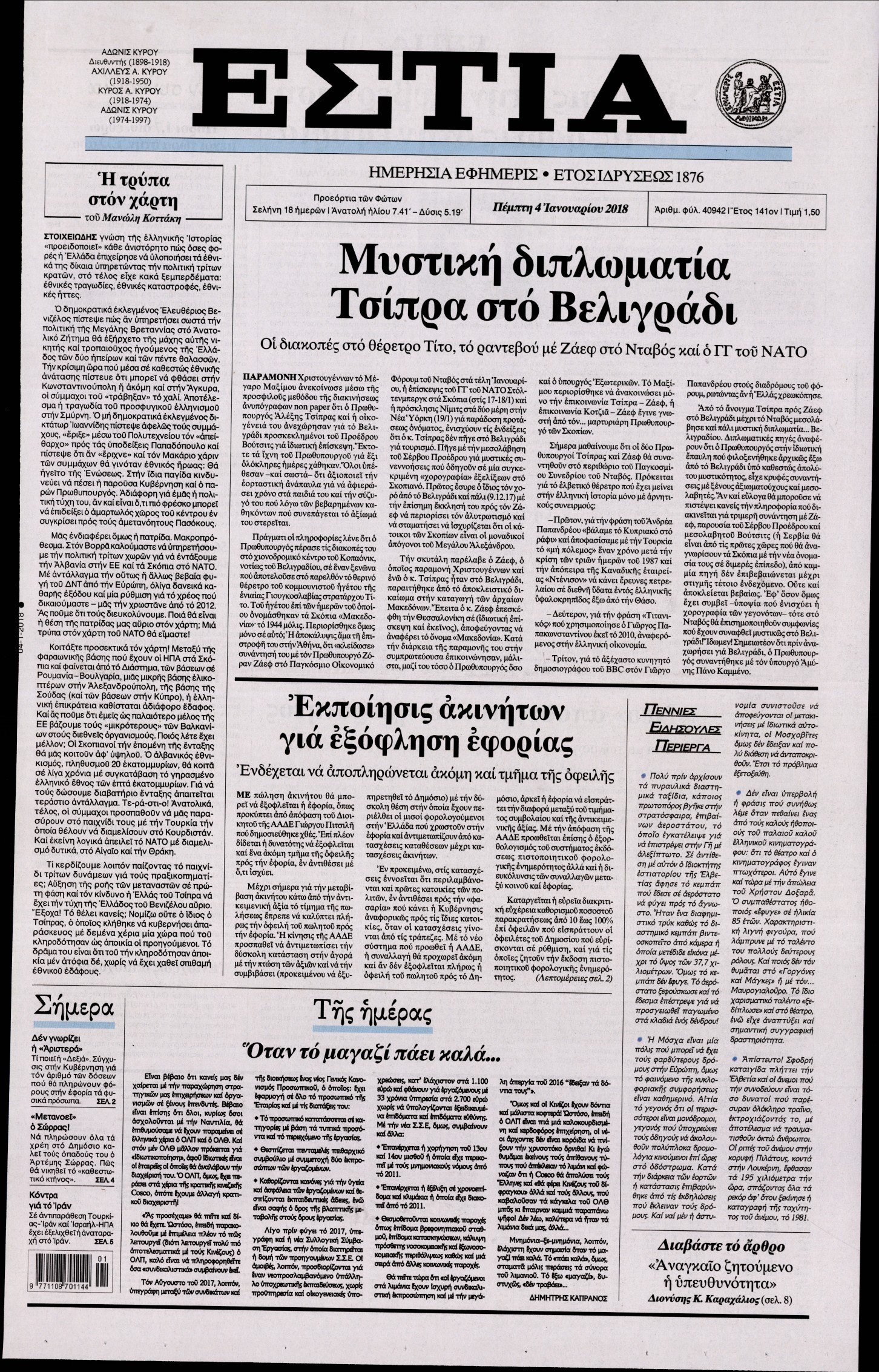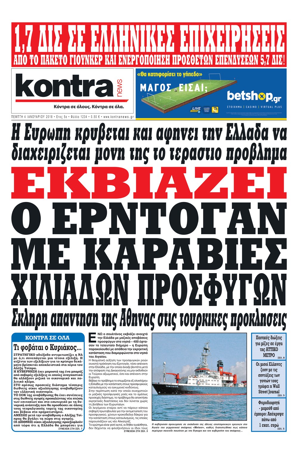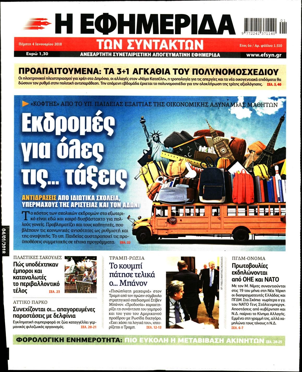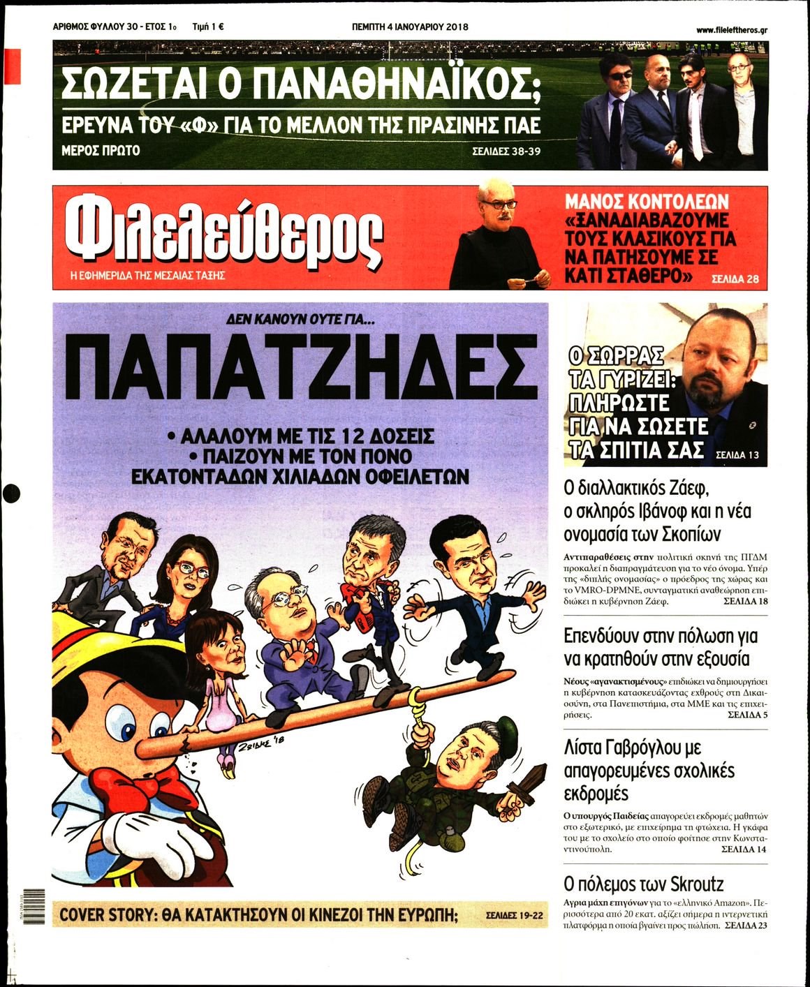 Οι πολιτικές εφημερίδες 4/1/2018 Enikos Newsroom 07:33, Πέμπτη 04 Ιανουαρίου 2018 Media Διαβάστε τα σημερινά πρωτοσέλιδα των πολιτικών εφημερίδων: ΠΟΛΙΤΙΚΕΣ ΕΦΗΜΕΡΙΔΕΣ ΠΡΩΤΟΣΕΛΙΔΑ Μοιράσου το: σχολίασε κι εσύ (0 σχόλια) Ακολουθήστε το enikos.gr στο Google News και μάθετε πρώτοι όλες τις ειδήσεις Δείτε όλες τις τελευταίες ειδήσεις από την Ελλάδα και τον Κόσμο στο enikos.gr Ειδήσεις Ροή Ειδήσεων 8 ώρες πριν Χριστούγεννα στα μπλόκα: Επιμένουν στις κινητοποιήσεις τους οι αγρότες – Ανοίγουν τα διόδια το Σαββατοκύριακο 9 ώρες πριν Ουκρανία: Η άνευ προηγουμένου επίθεση σε ρωσικό τάνκερ στη Μεσόγειο και το μήνυμα προς στον Πούτιν – Το «μακρύ χέρι» του Κιέβου 8 ώρες πριν Πούτιν: Τα μηνύματα σε Ευρώπη και ΝΑΤΟ από το μαραθώνιο «σόου» του – Η απαίτηση για «σεβασμό» και η ειρήνη «με τους όρους» της Μόσχας 7 ώρες πριν ΗΠΑ: Η κυβέρνηση του Ντόναλντ Τραμπ άρχισε να δημοσιοποιεί τα αρχεία Έπσταϊν 7 ώρες πριν Άνω Λιόσια: Πυροβολισμοί σε επιχείρηση με χαλιά – Εντοπίστηκαν 10 κάλυκες 57 λεπτά πριν Αυγά: Πόσα μπορείτε να τρώτε την ημέρα με ασφάλεια για μέγιστη πρόσληψη πρωτεΐνης 1 ώρα πριν Τα ζώδια σήμερα, Σάββατο 20 Δεκεμβρίου: Παρθένοι, το σύμπαν σας δίνει το κλειδί 8 ώρες πριν Ανακαλύφθηκαν αρχαία χρυσά νομίσματα 2.200 ετών που απεικονίζουν τον θεό Απόλλωνα – Η άγνωστη σύνδεση με τον Φίλιππο Β΄ της Μακεδονίας 9 ώρες πριν Ύπνος: Μια κρυφή κατάσταση του εγκεφάλου πριν από τον ύπνο μπορεί να είναι το “κλειδί” για υψηλή ευφυΐα και δημιουργικότητα 3 λεπτά πριν Αναβολή συμφωνίας ΕΕ-Mercosur: Ο χρόνος «δεν είναι απεριόριστος» προειδοποιεί η Παραγουάη 17 λεπτά πριν Κίριλ Ντμίτριεφ: Στις ΗΠΑ ο απεσταλμένος της Ρωσίας για συνομιλίες με τους ομολόγους του, Γουίτκοφ και Κούσνερ 25 λεπτά πριν ΔΕΔΔΗΕ: Διακοπές ρεύματος σήμερα (20/12) στην Αθήνα και σε άλλες 7 περιοχές της Αττικής 33 λεπτά πριν Κολομβία: Είκοσι χρόνια κάθειρξη σε πρώην ανώτερο αξιωματικό για 72 εκτελέσεις αμάχων 41 λεπτά πριν Οπτική ψευδαίσθηση: Μόνο αν είσαι ο Σέρλοκ Χολμς θα βρεις τον αριθμό «87» σε 7 δευτερόλεπτα ENIKOS NETWORK Πρέπει να αποδέχεστε ή να απορρίπτετε όλα τα cookies; Ένας ειδικός εξηγεί Η αγαπημένη λιχουδιά των πόνι που μπορεί να ενισχύσει όραση, εγκέφαλο και ανοσοποιητικό Αναστολή μέτρων αναγκαστικής εκτέλεσης για κτηνοτρόφους που πλήττονται από την ευλογιά των αιγοπροβάτων Πλήρης επάρκεια προϊόντων στις λαϊκές της Αττικής, παρά τις αγροτικές κινητοποιήσεις – Τι απαντούν οι πωλητές Χαρτογραφώντας το «σημείο χωρίς επιστροφή»: Για πρώτη φορά αποκαλύπτεται με λεπτομέρεια το ακανθώδες όριο της ατμόσφαιρας τ... Η Google καταργεί τη λειτουργία «dark web report» – Πώς θα μπορούν οι χρήστες να διαγράφουν τα δεδομένα τους περισσότερα 05:48 , Σάββατο 20 Δεκεμβρίου 2025 Οι οικονομικές εφημερίδες 20/12/2025 Διαβάστε τα πρωτοσέλιδα από τις οικονομικές εφημερίδες, σήμερα 20/12/2025. 05:43 , Σάββατο 20 Δεκεμβρίου 2025 Οι αθλητικές εφημερίδες 20/12/2025 Διαβάστε τα πρωτοσέλιδα από τις αθλητικές εφημερίδες, σήμερα 20/12/2025. 05:38 , Σάββατο 20 Δεκεμβρίου 2025 Οι πολιτικές εφημερίδες 20/12/2025 Διαβάστε τα πρωτοσέλιδα από τις πολιτικές εφημερίδες, σήμερα 20/12/2025. 04:20 , Σάββατο 20 Δεκεμβρίου 2025 Αγγελική Νικολούλη: Τα συλλυπητήρια για την απώλεια της Ειρήνης Μαρινάκη Τα συλληπητήρια στον πρόεδρο του Mega, τον Βαγγέλη Μαρινάκη, για την απώλεια της μητέρας του Ε... ΤΕΛΕΥΤΑΙΕΣ ΕΙΔΗΣΕΙΣ 17 λεπτά πριν Κίριλ Ντμίτριεφ: Στις ΗΠΑ ο απεσταλμένος της Ρωσίας... 25 λεπτά πριν ΔΕΔΔΗΕ: Διακοπές ρεύματος σήμερα (20/12) στην Αθήνα κ