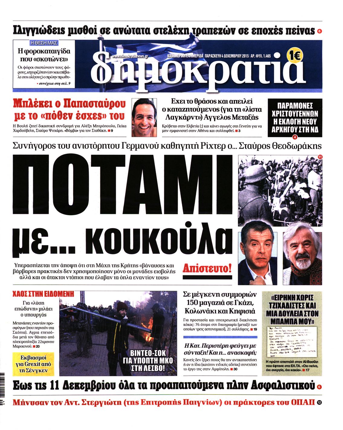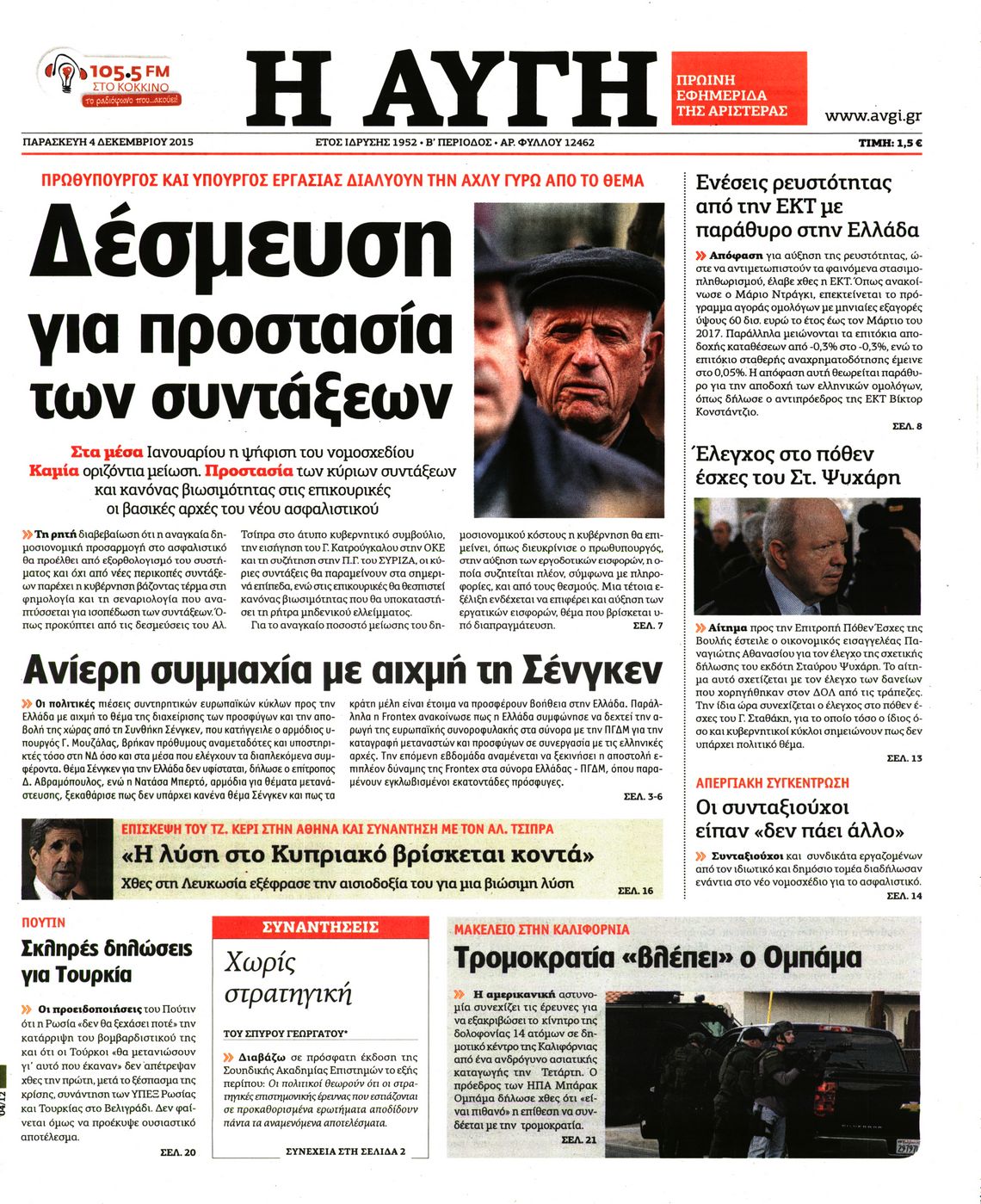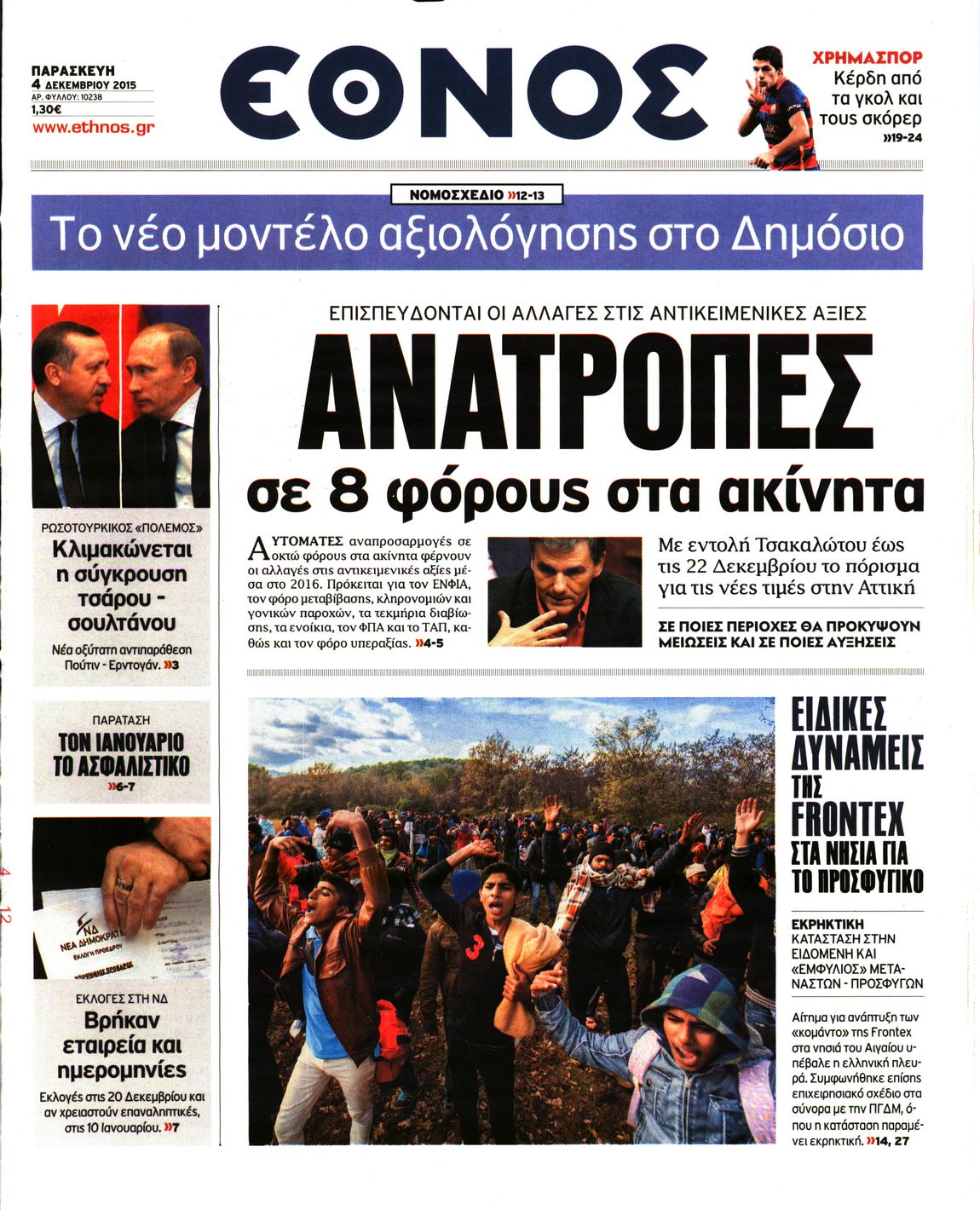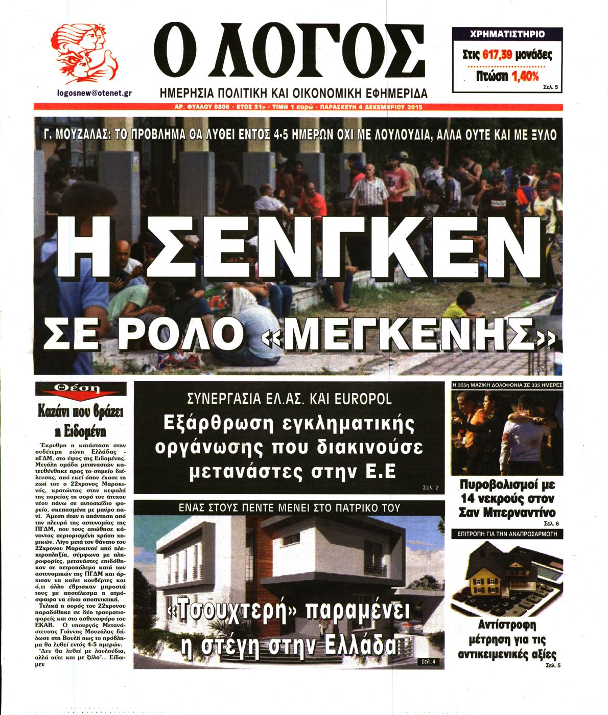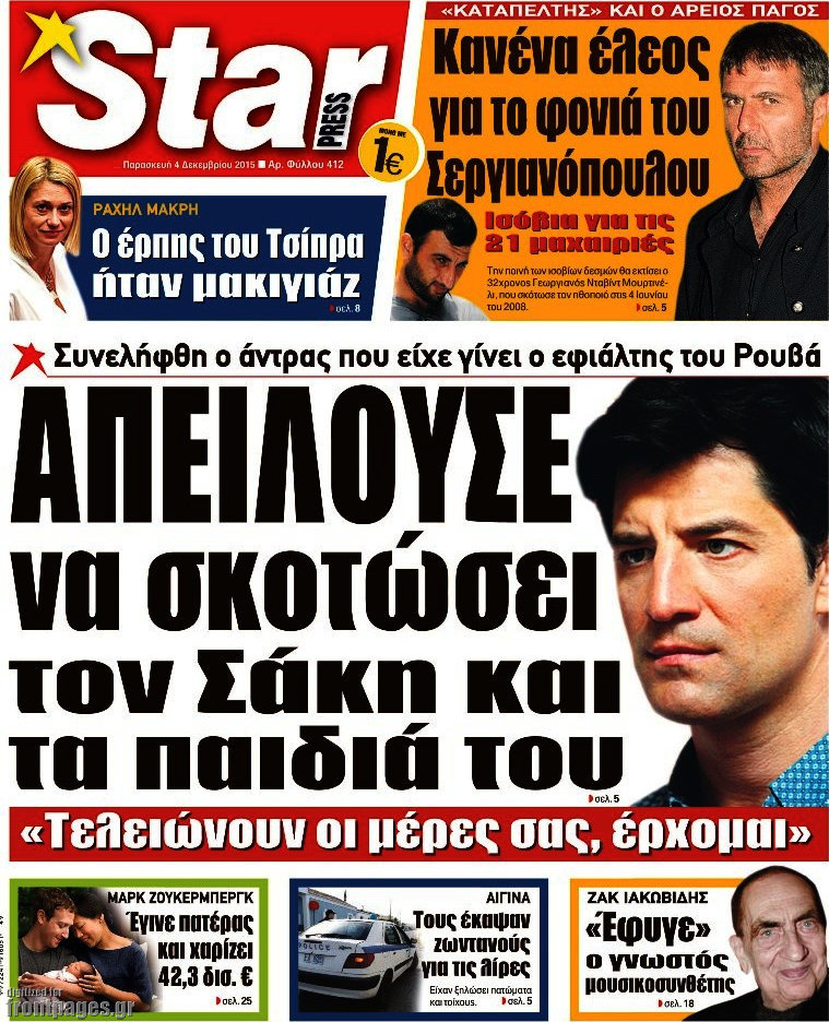 Οι πολιτικές εφημερίδες 4/12/2015 Enikos Newsroom 06:42, Παρασκευή 04 Δεκεμβρίου 2015 Media Διαβάστε τα σημερινά πρωτοσέλιδα των πολιτικών εφημερίδων: ΠΟΛΙΤΙΚΕΣ ΕΦΗΜΕΡΙΔΕΣ ΠΡΩΤΟΣΕΛΙΔΑ Μοιράσου το: σχολίασε κι εσύ (0 σχόλια) Ακολουθήστε το enikos.gr στο Google News και μάθετε πρώτοι όλες τις ειδήσεις Δείτε όλες τις τελευταίες ειδήσεις από την Ελλάδα και τον Κόσμο στο enikos.gr Ειδήσεις Ροή Ειδήσεων 57 λεπτά πριν Μεσόγειος: Η διαδρομή του ρωσικού τάνκερ «Qendil» και η στοχευμένη επίθεση της Ουκρανίας με drone – Ο Πούτιν προειδοποίησε για αντίποινα 51 λεπτά πριν Αττική: Θρίλερ με νεκρό βρέφος 5 μηνών – Κοιμόταν στο ίδιο κρεβάτι με τους γονείς του 2 ώρες πριν Από το Ορμένιο ως τα Μάλγαρα κι από τη Σιάτιστα μέχρι τη Νίκαια: Μπλόκα σε όλη την Ελλάδα – Το Σάββατο ανοίγουν τα διόδια οι αγρότες 2 ώρες πριν «Έλληνας Εσκομπάρ»: Φωτογραφίες με τους 4 τόνους κοκαΐνης που κατασχέθηκαν από το σκάφος «Ουρανία» 3 ώρες πριν Πούτιν: Σαρκαστικά μηνύματα, παράπονα και απρόοπτα στη συνέντευξη Τύπου – Η πρόταση γάμου on air και οι ερωτήσεις για τα αγγούρια και τους… εξωγήινους 3 ώρες πριν Τα 5 ζώδια που ευνοούνται στην ερωτική ζωή τους την επόμενη εβδομάδα – «Η ενέργεια του Αιγόκερου φέρνει αγάπη και σταθερότητα» 7 ώρες πριν Ειδικός μοιράζεται 6 κόλπα για να διατηρείστε σε φόρμα με πάνω από 40 ώρες εργασίας την εβδομάδα: «Προπονηθείτε πριν από τη δουλειά, όχι μετά» 4 ώρες πριν Αυτό το έξυπνο μαθηματικό κόλπο θα μπορούσε να αλλάξει τον τρόπο με τον οποίο οι επιστήμονες μελετούν τους σεισμούς 2 ώρες πριν Κουίζ για την παλιά Αθήνα: Αναγνωρίζετε την περιοχή; Έχετε περάσει 100% από εκεί 3 λεπτά πριν Τέμπη: Διεκόπη για τις 9 Ιανουαρίου η δίκη για τα χαμένα βίντεο της εμπορικής αμαξοστοιχίας – «Απαιτούμε να μας σέβονται» 9 λεπτά πριν Hellenic Train: Αλλαγές και καταργήσεις δρομολογίων λεωφορείων λόγω των αγροτικών κινητοποιήσεων 15 λεπτά πριν Ζελένσκι: «Δεν χρειάζεται αναθεώρηση του Συντάγματος» για να εγκαταλείψει η Ουκρανία τον στόχο ένταξης στο ΝΑΤΟ 19 λεπτά πριν Παναγιώτα Βλαντή: Η τρυφερή εξομολόγηση για τον σύζυγό της – «Πραγματικά ήταν για μένα αυτό που ήθελα σε όλη μου τη ζωή» 26 λεπτά πριν Επίσημη η «βόμβα»: Ο ΠΑΟΚ ανακοίνωσε την απόκτηση του Πάτρικ Μπέβερλι ENIKOS NETWORK «Η σούπερ» γρίπη εξαπλώνεται στην Ευρώπη-Στοιχεία για την αποτελεσματικότητα του εμβολίου από το ECDC ΕΛΣΤΑΤ: Αύξηση κατά 1,7% των επαγγελματιών υγείας το 2024 Η απάντηση της κυβέρνησης στα αιτήματα των αγροτών: 16 έχουν ικανοποιηθεί, 4 βρίσκονται υπό επεξεργασία και 7 δεν είναι εφι... Μισθολογική διαφάνεια: Το 68% των εργαζομένων αγνοεί τη νέα οδηγία – Αναλυτικά τα στοιχεία έρευνας Χαρτογραφώντας το «σημείο χωρίς επιστροφή»: Για πρώτη φορά αποκαλύπτεται με λεπτομέρεια το ακανθώδες όριο της ατμόσφαιρας τ... Η Google καταργεί τη λειτουργία «dark web report» – Πώς θα μπορούν οι χρήστες να διαγράφουν τα δεδομένα τους περισσότερα 18:11 , Παρασκευή 19 Δεκεμβρίου 2025 Το σόι σου: Ο Άρης έρχεται στην Ελλάδα για τις γιορτές των Χριστουγέννων – Τι θα δούμε στο αποψινό εορταστικό επεισόδιο Ένα απολαυστικό, εορταστικό επεισόδιο της σειράς “Το σόι σου”, γεμάτο ευτράπελα αλ... 15:15 , Παρασκευή 19 Δεκεμβρίου 2025 Την Κυριακή με τη Realnews: Ό,τι και αν αγοράσεις, σκανάρεις και κερδίζεις! Την Κυριακή με τη Realnews: Ό,τι και αν αγοράσεις, σκανάρεις και κερδίζεις! Με το PADU app, το... 08:00 , Παρασκευή 19 Δεκεμβρίου 2025 Την Κυριακή με τη Realnews: Δωροεπιταγή 10€ Δωροεπιταγή αξίας 10€ για αγορές άνω των 60€ από τα πολυκα