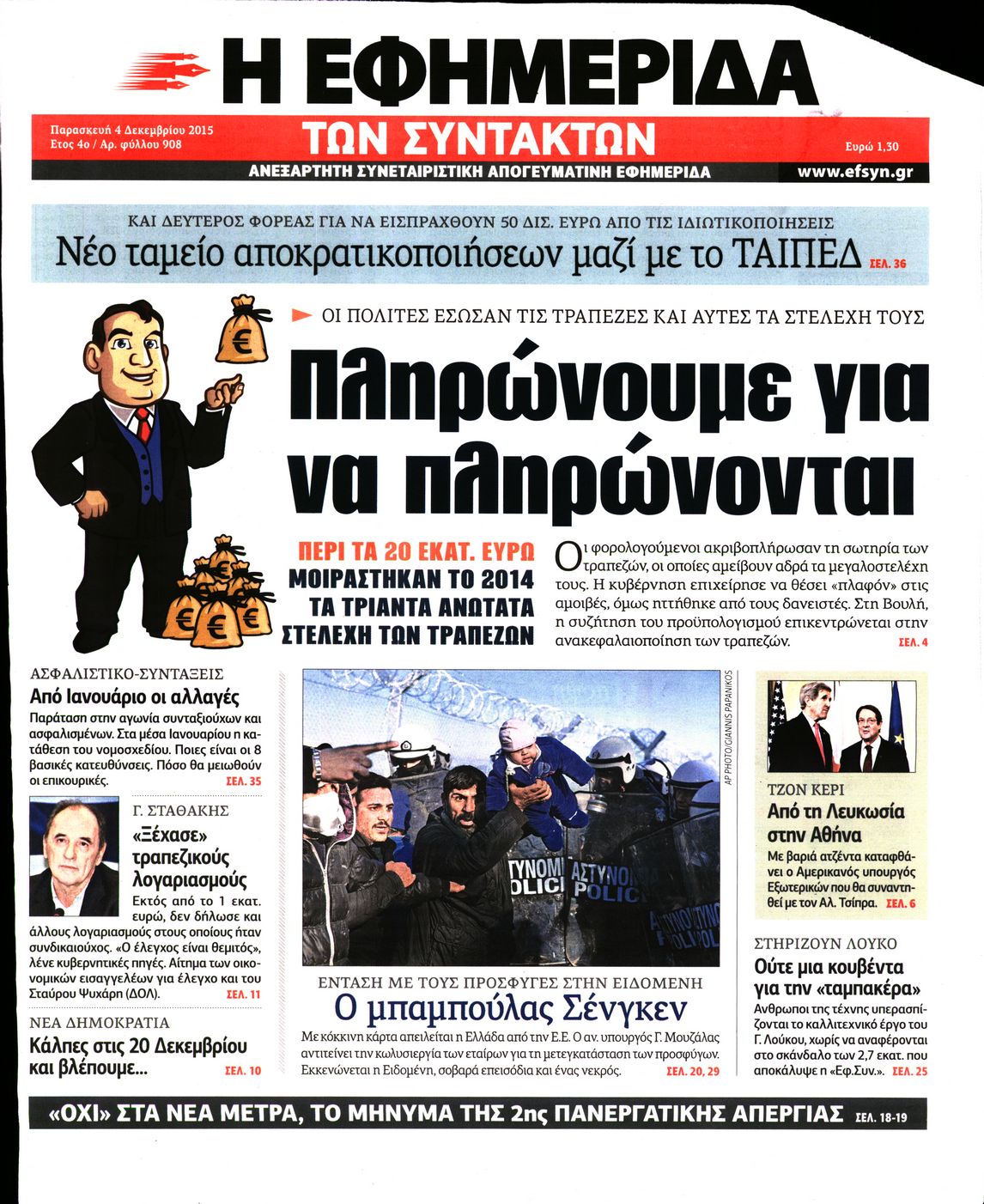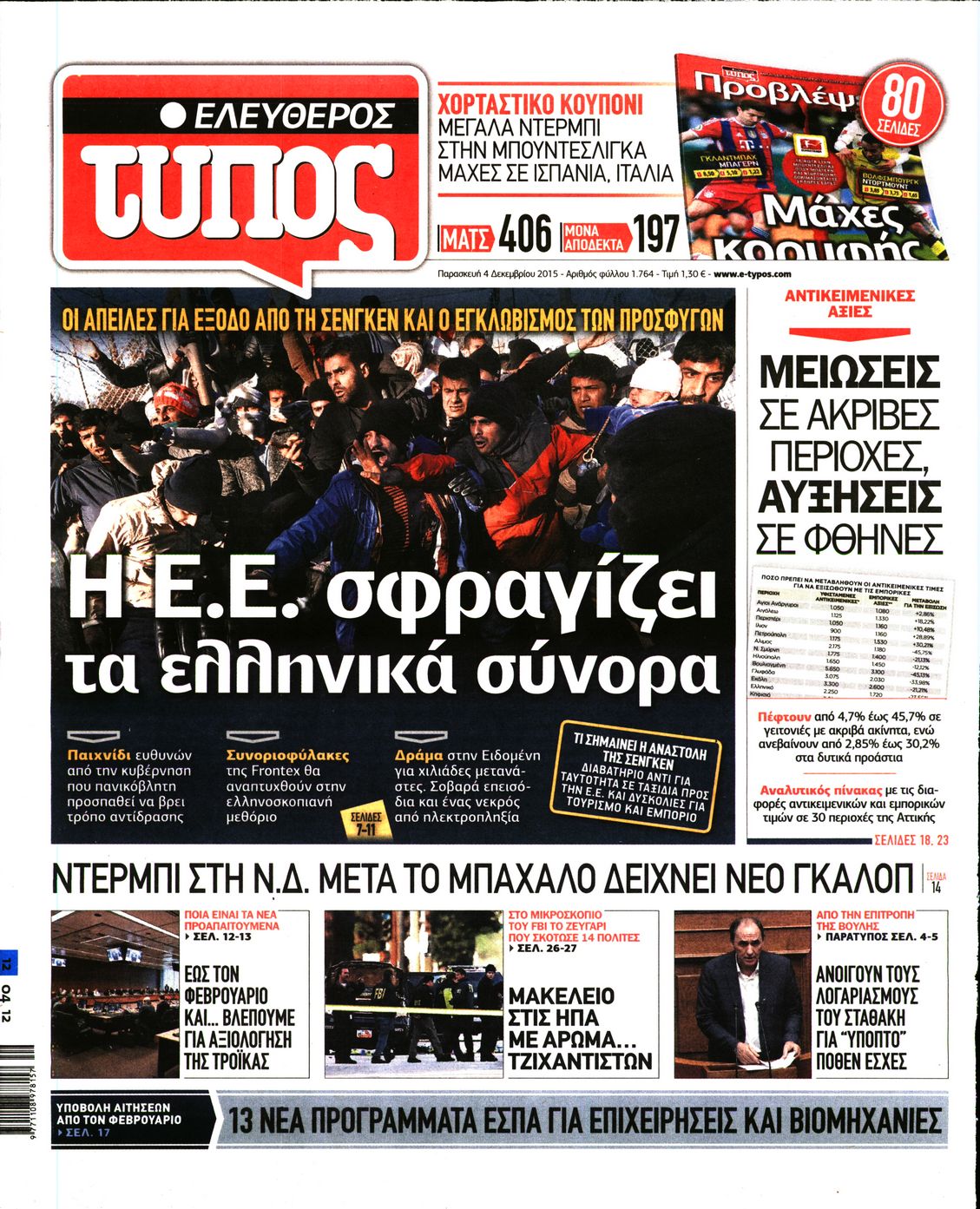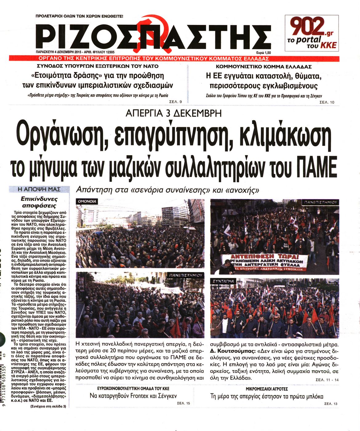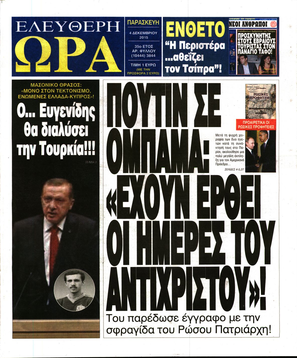 Οι πολιτικές εφημερίδες 4/12/2015 Enikos Newsroom 06:42, Παρασκευή 04 Δεκεμβρίου 2015 Media Διαβάστε τα σημερινά πρωτοσέλιδα των πολιτικών εφημερίδων: ΠΟΛΙΤΙΚΕΣ ΕΦΗΜΕΡΙΔΕΣ ΠΡΩΤΟΣΕΛΙΔΑ Μοιράσου το: σχολίασε κι εσύ (0 σχόλια) Ακολουθήστε το enikos.gr στο Google News και μάθετε πρώτοι όλες τις ειδήσεις Δείτε όλες τις τελευταίες ειδήσεις από την Ελλάδα και τον Κόσμο στο enikos.gr Ειδήσεις Ροή Ειδήσεων 57 λεπτά πριν Μεσόγειος: Η διαδρομή του ρωσικού τάνκερ «Qendil» και η στοχευμένη επίθεση της Ουκρανίας με drone – Ο Πούτιν προειδοποίησε για αντίποινα 51 λεπτά πριν Αττική: Θρίλερ με νεκρό βρέφος 5 μηνών – Κοιμόταν στο ίδιο κρεβάτι με τους γονείς του 2 ώρες πριν Από το Ορμένιο ως τα Μάλγαρα κι από τη Σιάτιστα μέχρι τη Νίκαια: Μπλόκα σε όλη την Ελλάδα – Το Σάββατο ανοίγουν τα διόδια οι αγρότες 2 ώρες πριν «Έλληνας Εσκομπάρ»: Φωτογραφίες με τους 4 τόνους κοκαΐνης που κατασχέθηκαν από το σκάφος «Ουρανία» 3 ώρες πριν Πούτιν: Σαρκαστικά μηνύματα, παράπονα και απρόοπτα στη συνέντευξη Τύπου – Η πρόταση γάμου on air και οι ερωτήσεις για τα αγγούρια και τους… εξωγήινους 3 ώρες πριν Τα 5 ζώδια που ευνοούνται στην ερωτική ζωή τους την επόμενη εβδομάδα – «Η ενέργεια του Αιγόκερου φέρνει αγάπη και σταθερότητα» 7 ώρες πριν Ειδικός μοιράζεται 6 κόλπα για να διατηρείστε σε φόρμα με πάνω από 40 ώρες εργασίας την εβδομάδα: «Προπονηθείτε πριν από τη δουλειά, όχι μετά» 4 ώρες πριν Αυτό το έξυπνο μαθηματικό κόλπο θα μπορούσε να αλλάξει τον τρόπο με τον οποίο οι επιστήμονες μελετούν τους σεισμούς 2 ώρες πριν Κουίζ για την παλιά Αθήνα: Αναγνωρίζετε την περιοχή; Έχετε περάσει 100% από εκεί 3 λεπτά πριν Τέμπη: Διεκόπη για τις 9 Ιανουαρίου η δίκη για τα χαμένα βίντεο της εμπορικής αμαξοστοιχίας – «Απαιτούμε να μας σέβονται» 9 λεπτά πριν Hellenic Train: Αλλαγές και καταργήσεις δρομολογίων λεωφορείων λόγω των αγροτικών κινητοποιήσεων 15 λεπτά πριν Ζελένσκι: «Δεν χρειάζεται αναθεώρηση του Συντάγματος» για να εγκαταλείψει η Ουκρανία τον στόχο ένταξης στο ΝΑΤΟ 19 λεπτά πριν Παναγιώτα Βλαντή: Η τρυφερή εξομολόγηση για τον σύζυγό της – «Πραγματικά ήταν για μένα αυτό που ήθελα σε όλη μου τη ζωή» 26 λεπτά πριν Επίσημη η «βόμβα»: Ο ΠΑΟΚ ανακοίνωσε την απόκτηση του Πάτρικ Μπέβερλι ENIKOS NETWORK «Η σούπερ» γρίπη εξαπλώνεται στην Ευρώπη-Στοιχεία για την αποτελεσματικότητα του εμβολίου από το ECDC ΕΛΣΤΑΤ: Αύξηση κατά 1,7% των επαγγελματιών υγείας το 2024 Η απάντηση της κυβέρνησης στα αιτήματα των αγροτών: 16 έχουν ικανοποιηθεί, 4 βρίσκονται υπό επεξεργασία και 7 δεν είναι εφι... Μισθολογική διαφάνεια: Το 68% των εργαζομένων αγνοεί τη νέα οδηγία – Αναλυτικά τα στοιχεία έρευνας Χαρτογραφώντας το «σημείο χωρίς επιστροφή»: Για πρώτη φορά αποκαλύπτεται με λεπτομέρεια το ακανθώδες όριο της ατμόσφαιρας τ... Η Google καταργεί τη λειτουργία «dark web report» – Πώς θα μπορούν οι χρήστες να διαγράφουν τα δεδομένα τους περισσότερα 18:11 , Παρασκευή 19 Δεκεμβρίου 2025 Το σόι σου: Ο Άρης έρχεται στην Ελλάδα για τις γιορτές των Χριστουγέννων – Τι θα δούμε στο αποψινό εορταστικό επεισόδιο Ένα απολαυστικό, εορταστικό επεισόδιο της σειράς “Το σόι σου”, γεμάτο ευτράπελα αλ... 15:15 , Παρασκευή 19 Δεκεμβρίου 2025 Την Κυριακή με τη Realnews: Ό,τι και αν αγοράσεις, σκανάρεις και κερδίζεις! Την Κυριακή με τη Realnews: Ό,τι και αν αγοράσεις, σκανάρεις και κερδίζεις! Με το PADU app, το... 08:00 , Παρασκευή 19 Δεκεμβρίου 2025 Την Κυριακή με τη Realnews: Δωροεπιταγή 10€ Δωροεπιταγή αξίας 10€ για αγορές άνω των 60€ από τα πολυκα