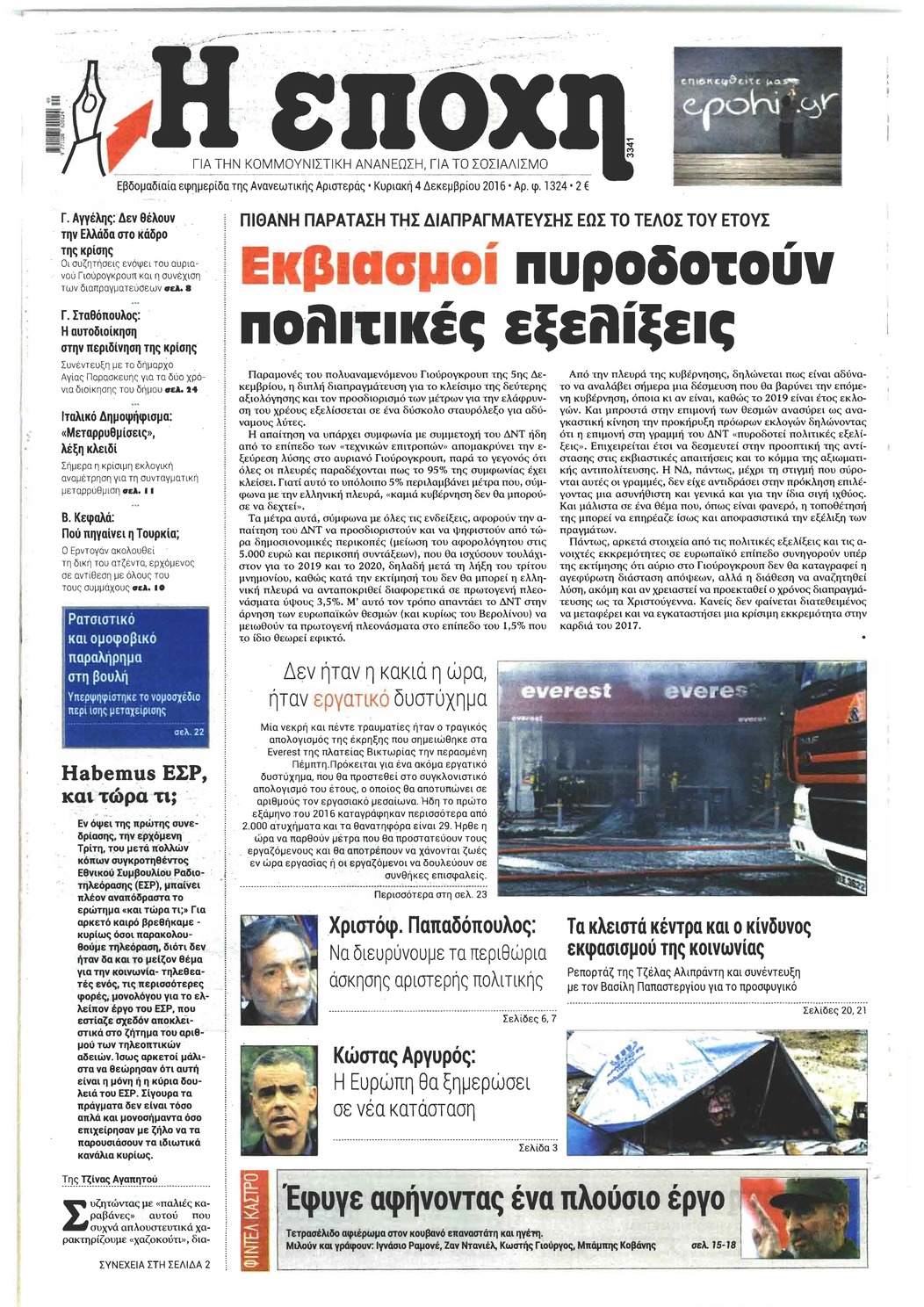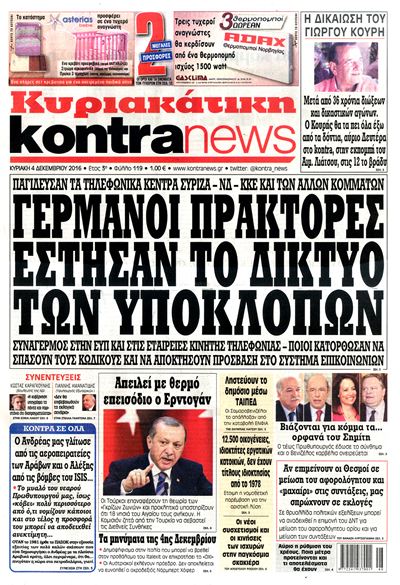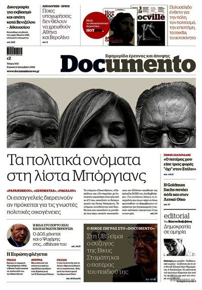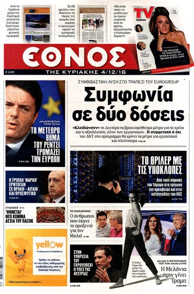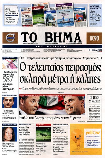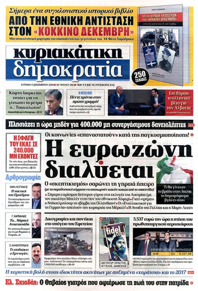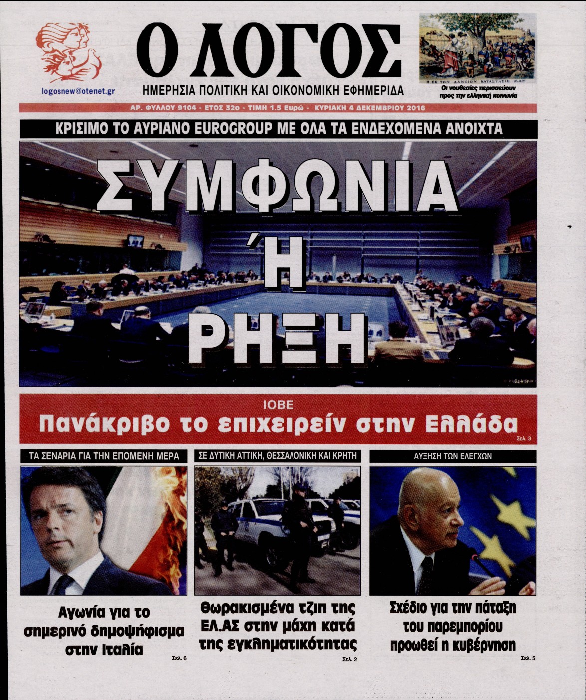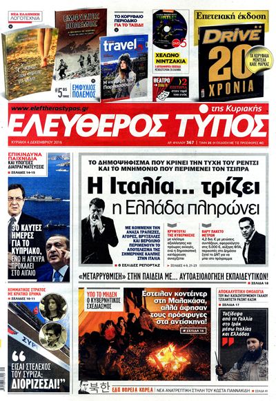 Οι πολιτικές εφημερίδες 4/12/2016 Κώστας Τεό 02:58, Κυριακή 04 Δεκεμβρίου 2016 Media Διαβάστε τα σημερινά πρωτοσέλιδα των πολιτικών εφημερίδων: ΠΟΛΙΤΙΚΕΣ ΕΦΗΜΕΡΙΔΕΣ ΠΡΩΤΟΣΕΛΙΔΑ Μοιράσου το: σχολίασε κι εσύ (0 σχόλια) Ακολουθήστε το enikos.gr στο Google News και μάθετε πρώτοι όλες τις ειδήσεις Δείτε όλες τις τελευταίες ειδήσεις από την Ελλάδα και τον Κόσμο στο enikos.gr Ειδήσεις Ροή Ειδήσεων 1 ώρα πριν Γιορτές με μπλόκα για τους αγρότες: Ανοίγουν διόδια και μοιράζουν προϊόντα στους ταξιδιώτες 2 ώρες πριν Τα αρχεία του Έπσταϊν αποκαλύπτουν φωτογραφία του έκπτωτου πρίγκιπα Άντριου – Είναι ξαπλωμένος στην αγκαλιά 5 γυναικών 47 λεπτά πριν Νέες ταυτότητες: Μεγάλη αναμονή για ραντεβού στην Αττική – Τέλος τα ταξίδια εκτός Ελλάδος από τον Αύγουστο για όσους δεν έχουν αλλάξει 2 ώρες πριν Εξαφάνιση 33χρονου γιατρού στην Κρήτη: «Άναψα τα φώτα, τρόμαξε και άρχισε να τρέχει στα χωράφια» – Η τελευταία διαδρομή και η μαρτυρία «κλειδί» 3 ώρες πριν Ο «χάρτης» με τις αυξήσεις και τις φοροελαφρύνσεις του 2026 – Ποιοι και πόσα κερδίζουν 2 ώρες πριν Μία νέα «χρυσή» περίοδος αρχίζει για 3 ζώδια από σήμερα – «Μία αναπάντεχη ευκαιρία οδηγεί στην επιτυχία» 6 ώρες πριν Αυγά: Πόσα μπορείτε να τρώτε την ημέρα με ασφάλεια για μέγιστη πρόσληψη πρωτεΐνης 4 ώρες πριν Αρχαιολόγοι ανακάλυψαν σε χωράφι απεικόνιση 600 ετών ενός Αγίου – Τα στοιχεία που δείχνουν ότι μαρτύρησε 3 ώρες πριν Αγχώνεται για το χριστουγεννιάτικο δώρο που πήρε στην πλούσια σύντροφό του – «Φοβάμαι πως θα το βρει φθηνιάρικο, φοράει βραχιόλια Cartier» 8 λεπτά πριν Βούλα: Συνελήφθη 24χρονος με 69 κιλά ακατέργαστης κάνναβης – Κυκλοφορούσε με κλεμμένο αυτοκίνητο 16 λεπτά πριν «Η αγάπη δεν χάνεται ποτέ»: Η μικρού μήκους ταινία κινουμένων σχεδίων που θέτει ερωτήματα για τη ζωή και τον θάνατο 24 λεπτά πριν Στέφανος Παπαδόπουλος: Η συνέντευξη μετά τη μήνυση στον Γιώργο Μαζωνάκη – «Δεν θέλω να τα βρούμε εξωδικαστικά» 31 λεπτά πριν Τραγωδία στην άσφαλτο στα Χανιά: Νεκρός 37χρονος οδηγός ΙΧ – Τον βρήκαν ώρες μετά το τροχαίο 39 λεπτά πριν Τα Labubu «μετακομίζουν» στο Χόλιγουντ: Η Sony Pictures ετοιμάζει live-action ταινία με τον σκηνοθέτη του «Wonka» ENIKOS NETWORK Είστε μόνιμα απρόσεκτοι; 3 σημάδια που δείχνουν ότι μπορεί να είναι σύμπτωμα πάθησης Πόσα κιλά παίρνουμε πραγματικά τα Χριστούγεννα, σύμφωνα με την επιστήμη – Πώς να το αποτρέψουμε; e-ΕΦΚΑ και ΔΥΠΑ: Έρχονται νέες πληρωμές έως τις 24 Δεκεμβρίου – Ποιοι πάνε ταμείο Επίδομα παιδιού: Τι αλλάζει από το 2026 – Το όφελος από τις φορολογικές ελαφρύνσεις Χαρτογραφώντας το «σημείο χωρίς επιστροφή»: Για πρώτη φορά αποκαλύπτεται με λεπτομέρεια το ακανθώδες όριο της ατμόσφαιρας τ... Η Google καταργεί τη λειτουργία «dark web report» – Πώς θα μπορούν οι χρήστες να διαγράφουν τα δεδομένα τους περισσότερα 11:41 , Σάββατο 20 Δεκεμβρίου 2025 «Η αγάπη δεν χάνεται ποτέ»: Η μικρού μήκους ταινία κινουμένων σχεδίων που θέτει ερωτήματα για τη ζωή και τον θάνατο Ο θάνατος είναι ένα από τα πιο σκληρά θέματα που καλείται να διαχειριστεί κάποιος στη διάρκεια... 09:30 , Σάββατο 20 Δεκεμβρίου 2025 «Porto Leone: Στη γειτονιά με τα κόκκινα φανάρια» – Ο Χρόνης αποκαλύπτει στην Αλεξάνδρα το μυστικό για το παιδί της Λένας Η μεγάλη δραματική σειρά του Apha «Porto Leone: Στη γειτονιά με τα κόκκινα φανάρια» μας μεταφέ... 08:14 , Σάββατο 20 Δεκεμβρίου 2025 Τρομεροί γονείς: Η Μαρία Καβογιάννη εισβάλλει στο σπίτι της οικογένειας Στεφανίδη Όσα θα δούμε στο νέο διπλό επεισόδιο της σειράς «Τρομερ