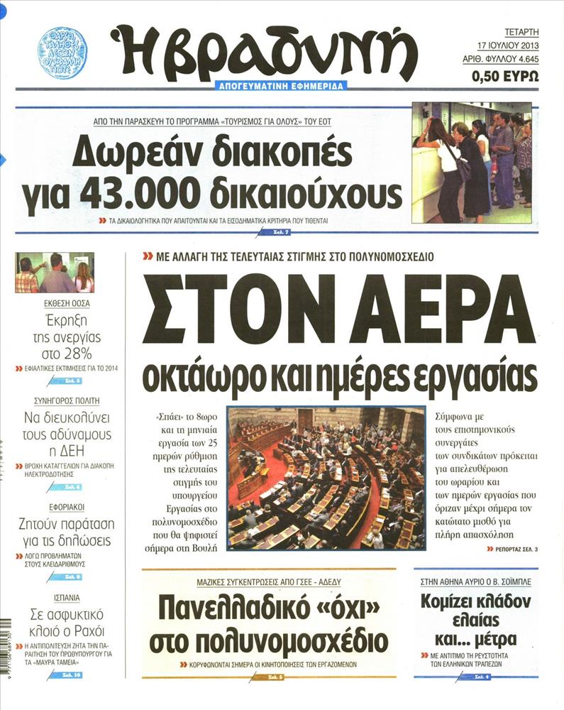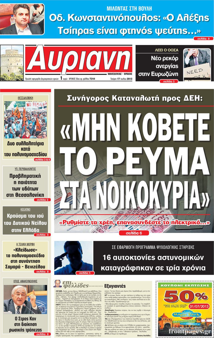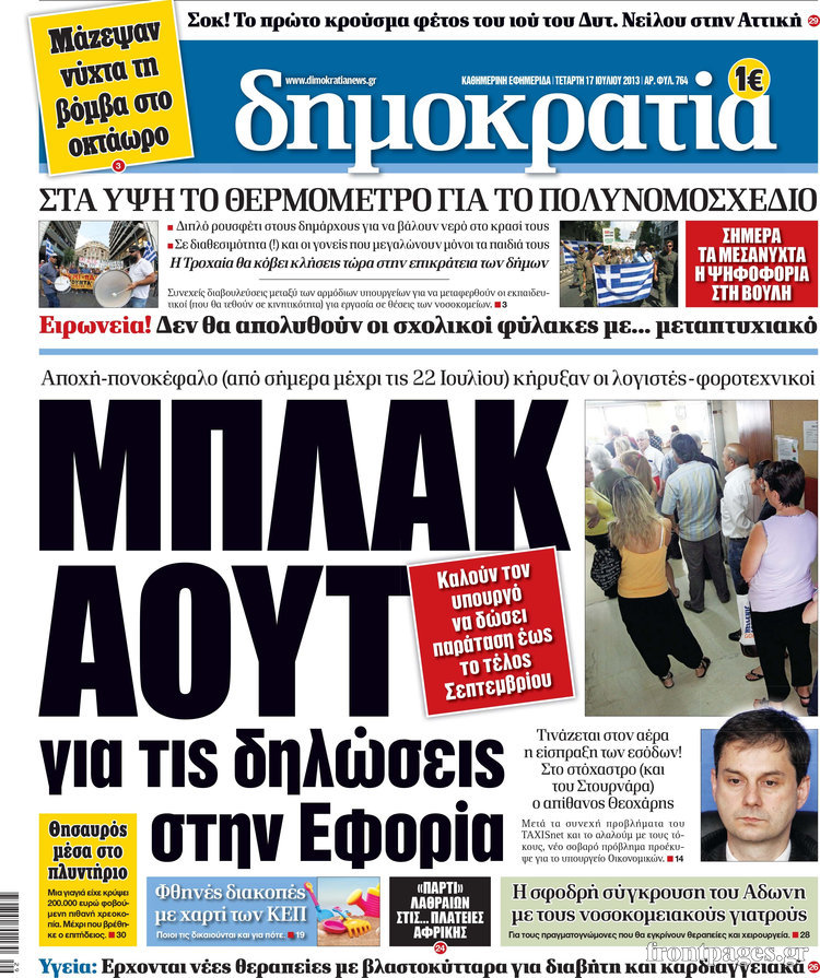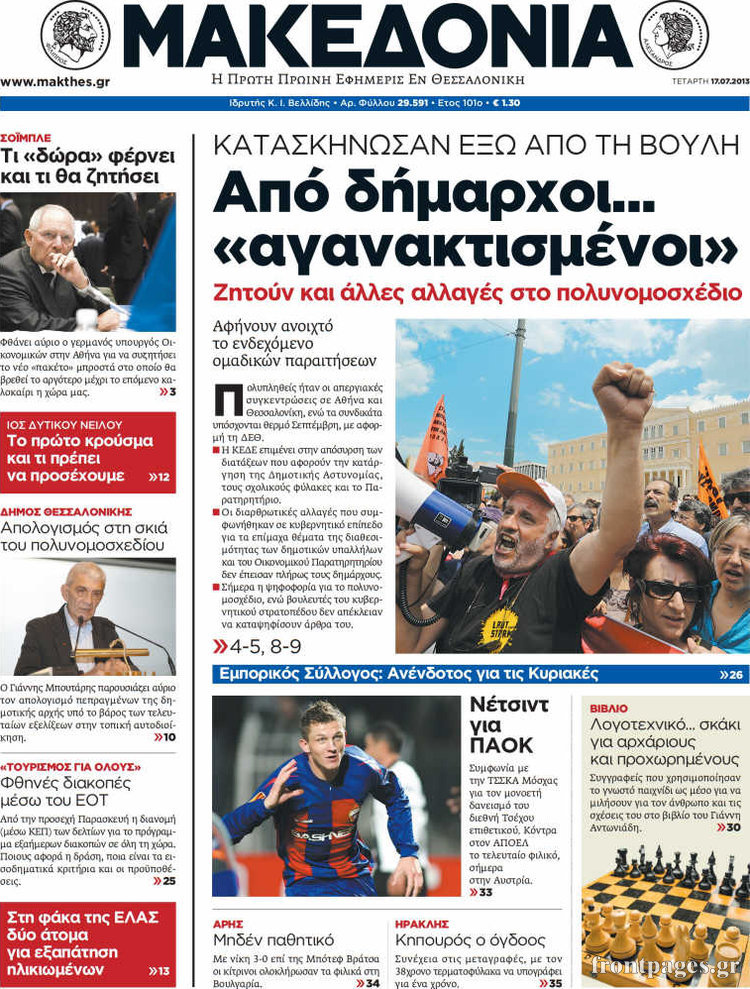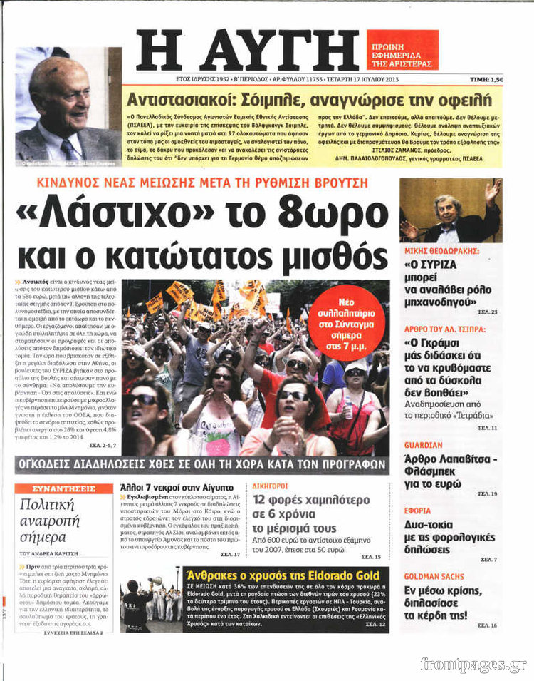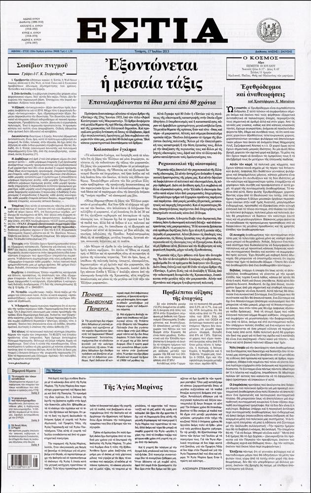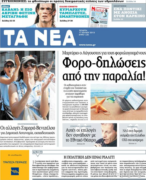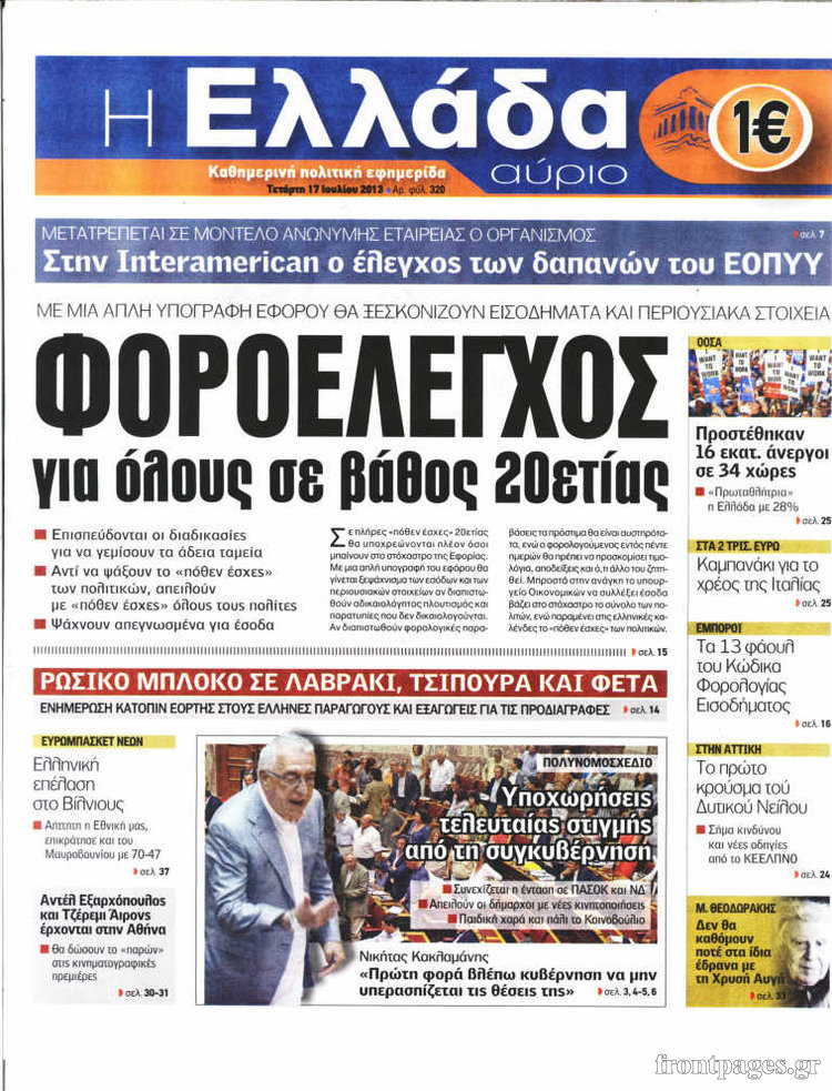Οι πολιτικές εφημερίδες Enikos Newsroom 08:31, Τετάρτη 17 Ιουλίου 2013 Media Οι πολιτικές εφημερίδες Διαβάστε τα πρωτοσέλιδα των πολιτικών εφημερίδων: ΕΦΗΜΕΡΙΔΕΣ ΠΟΛΙΤΙΚΕΣ ΕΦΗΜΕΡΙΔΕΣ ΠΡΩΤΟΣΕΛΙΔΑ Μοιράσου το: σχολίασε κι εσύ (0 σχόλια) Ακολουθήστε το enikos.gr στο Google News και μάθετε πρώτοι όλες τις ειδήσεις Δείτε όλες τις τελευταίες ειδήσεις από την Ελλάδα και τον Κόσμο στο enikos.gr Ειδήσεις Ροή Ειδήσεων 1 ώρα πριν Ζελένσκι: Μόνο οι ΗΠΑ και ο Τραμπ μπορούν να πιέσουν τη Ρωσία να βάλει τέλος στον πόλεμο 1 ώρα πριν Φοινικούντα: Προφυλακιστέος ο 30χρονος για συνέργεια στη διπλή δολοφονία – Και άλλα πρόσωπα στο «μικροσκόπιο» 3 ώρες πριν Κυριάκος Μητσοτάκης: Στην Ιερουσαλήμ την Τρίτη ο Πρωθυπουργός για την τριμερή Ελλάδας, Κύπρου, Ισραήλ – Θα συναντηθεί και με τον Αμπάς 6 ώρες πριν Πώς δρούσε το κύκλωμα που διακινούσε ναρκωτικά σε σχολεία – Υπέβαλαν σε βασανιστήρια όσους δεν τηρούσαν τους «κανόνες πειθαρχίας» 2 ώρες πριν Πάπας Λέων: Όταν έχει αϋπνίες επενδύει παραγωγικά τον χρόνο του – Ποιο παιχνίδι παίζει στο κινητό 1 ώρα πριν Αριθμολογία: Ο αριθμός του φύλακα αγγέλου σας, με βάση τον μήνα γέννησής σας – «Έτσι σας στέλνει σημάδια το σύμπαν» 2 ώρες πριν Πώς να απαλλαγείτε από τη μυρωδιά του τηγανητού φαγητού: Το μυστικό βρίσκεται στην κουζίνα σας 3 ώρες πριν Μήπως οι γιορτές σας δεν είναι τόσο τέλειες; 7 χριστουγεννιάτικες συνήθειες που μαρτυρούν ότι μια οικογένεια είναι δυσλειτουργική 13 ώρες πριν Enerwave: Το νέο «ρεύμα» στη λιανική ενέργειας που αλλάζει την εμπειρία του καταναλωτή 3 λεπτά πριν Χαβιέρ Μιλέι: Ο πρόεδρος της Αργεντινής χαιρετίζει την «πίεση των ΗΠΑ» στη Βενεζουέλα 10 λεπτά πριν Ξένια Τσίρκοβα: Έμαθε από την τηλεόραση ότι είναι η μεγάλη νικήτρια του GNTM – Η αντίδρασή της – ΒΙΝΤΕΟ 19 λεπτά πριν Ύπνος: Η διατροφή που μπορεί να σας βοηθήσει να κοιμάστε καλύτερα και να ζήσετε περισσότερο 30 λεπτά πριν Ιταλία: Επεισόδια και τραυματίες σε διαδήλωση μελών ακροαριστερού “κοινωνικού κέντρου ” στο Τορίνο 43 λεπτά πριν Γαλλία: Αστυνομικοί πυροβόλησαν και σκότωσαν έναν 26χρονο που απειλούσε περαστικούς με μαχαίρι – BINTEO ENIKOS NETWORK Οι γυναίκες αποκαλύπτουν το πιο ελκυστικό πράγμα που μπορεί να κάνει ένας άνδρας Ομορφιά και αντιγήρανση: Ειδικοί μιλούν για συσκευές περιποίησης του δέρματος Ρεύμα: Πώς μπορείτε να αλλάξετε πάροχο γρήγορα και εύκολα – Τα βήματα της διαδικασίας Εφορία: 7 αλλαγές σε δηλώσεις και ελέγχους ακινήτων – Όλα όσα πρέπει να γνωρίζετε Χαρτογραφώντας το «σημείο χωρίς επιστροφή»: Για πρώτη φορά αποκαλύπτεται με λεπτομέρεια το ακανθώδες όριο της ατμόσφαιρας τ... Η Google καταργεί τη λειτουργία «dark web report» – Πώς θα μπορούν οι χρήστες να διαγράφουν τα δεδομένα τους περισσότερα 20:30 , Σάββατο 20 Δεκεμβρίου 2025 Αυτή την Κυριακή με τη Realnews: Instyle, μαζί Drive και Realnews Geopolitics Αυτή την Κυριακή με τη Realnews: Instyle, μαζί Drive και Realnews Geopolitics Instyle Η Άννα Ρ... 20:28 , Σάββατο 20 Δεκεμβρίου 2025 Ο ΑΝΤ1 γεμίζει τις γιορτές με μουσική – Ποιους καλλιτέχνες θα απολαύσουμε Φέτος στον ΑΝΤ1 γιορτάζουμε τις νύχτες μας παρέα με αγαπημένους καλλιτέχνες και μεγάλες μουσι... 18:19 , Σάββατο 20 Δεκεμβρίου 2025 HOTΕΛ ΕΛVIRA: Η Ελβίρα μαθαίνει πως ο Χάρι μένει κρυφά στο ξενοδοχείο του Παντελή Συνεχίζονται οι εκλογές για πρόεδρο, στο νέο επεισόδιο της κωμικής σειράς του MEGA, HOTΕΛ ΕΛVI... 14:04 , Σάββατο 20 Δεκεμβρίου 2025 Η Realnews αυτής της Κυριακής (21/12/2025) Με τίτλο: «Ασπίδα προστασίας για την Ελλάδα» κυκλοφορεί, αυτήν την Κυριακή, η Re