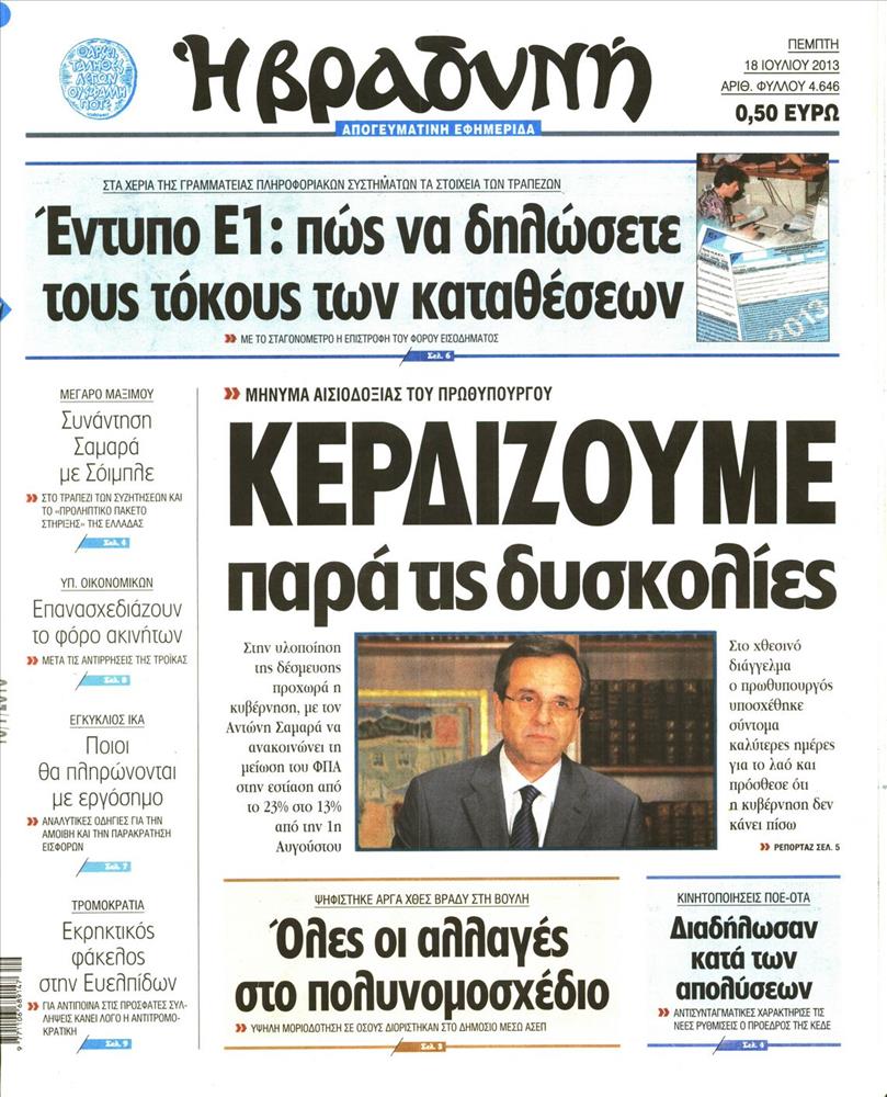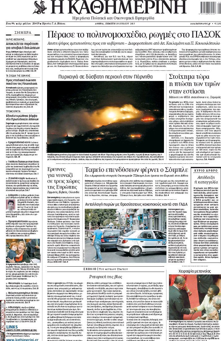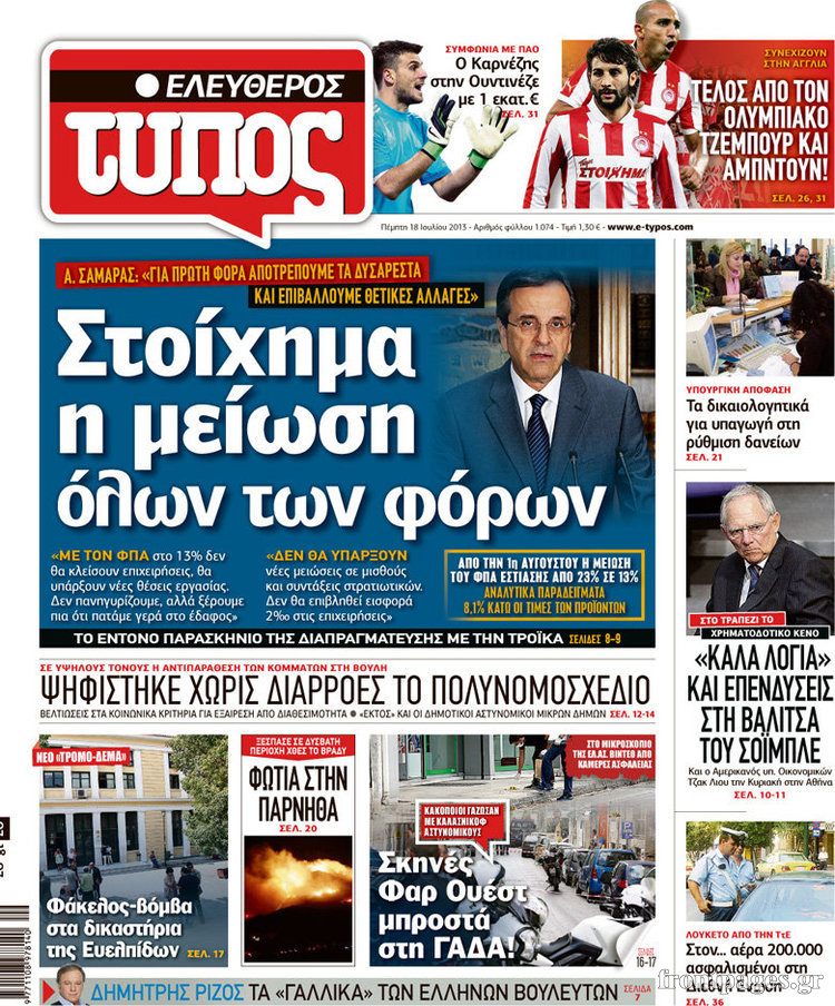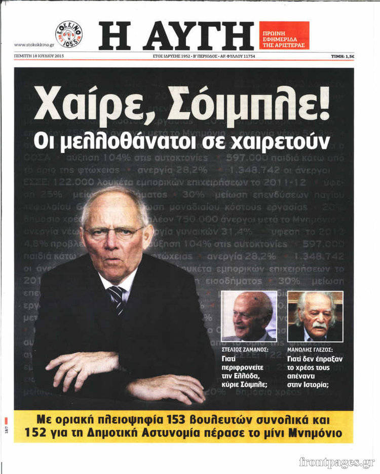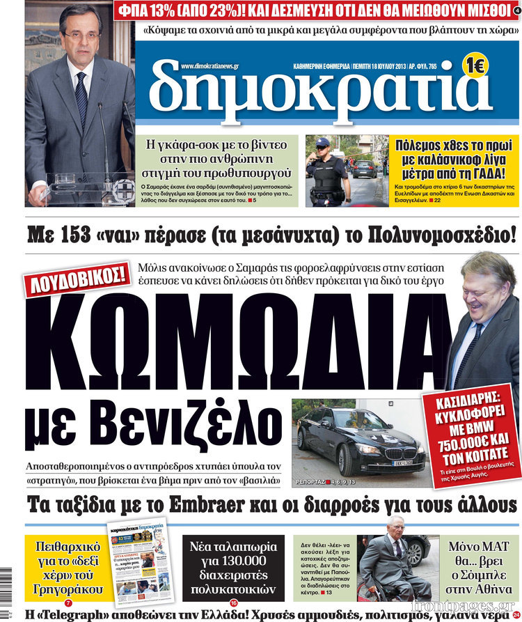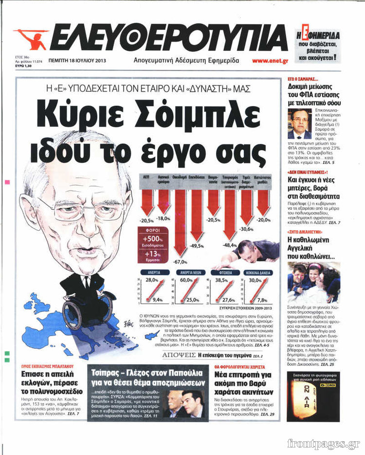 Οι πολιτικές εφημερίδες Enikos Newsroom 08:38, Πέμπτη 18 Ιουλίου 2013 Media Οι πολιτικές εφημερίδες Διαβάστε τα πρωτοσέλιδα των πολιτικών εφημερίδων: ΕΦΗΜΕΡΙΔΕΣ ΠΟΛΙΤΙΚΕΣ ΕΦΗΜΕΡΙΔΕΣ ΠΡΩΤΟΣΕΛΙΔΑ Μοιράσου το: σχολίασε κι εσύ (0 σχόλια) Ακολουθήστε το enikos.gr στο Google News και μάθετε πρώτοι όλες τις ειδήσεις Δείτε όλες τις τελευταίες ειδήσεις από την Ελλάδα και τον Κόσμο στο enikos.gr Ειδήσεις Ροή Ειδήσεων 7 ώρες πριν Εκτός ευρωομάδας ΣΥΡΙΖΑ ο Νίκος Παππάς μετά την επίθεση στον δημοσιογράφο Νίκο Γιαννόπουλο – Η μήνυση και οι νέες δηλώσεις 7 ώρες πριν «Αγριεύουν» οι αγρότες: «Δεν συντρέχει λόγος συνάντησης με τον πρωθυπουργό» – Ώρα αποφάσεων στη σύσκεψη της Πέμπτης 7 ώρες πριν Κυψέλη: Χωρίς την οικογένειά της δίπλα της απολογήθηκε η 16χρονη – «Της είχε επιτεθεί κάποιος για να την βιάσει, φοβήθηκε και κυκλοφορούσε με μαχαίρι» 7 ώρες πριν Politico: Το πρόβλημα της Ευρώπης δεν είναι το Βέλγιο αλλά ο Ντόναλντ Τραμπ 8 ώρες πριν Αλεξανδρούπολη: Πολυοργανική ανεπάρκεια λόγω υποσιτισμού η αιτία θανάτου του 3χρονου αγοριού 7 ώρες πριν Μυστήριο με τεράστιες κυκλικές πέτρες 200 κιλών – Ανακαλύφθηκαν τυχαία κατά τη διάρκεια οδικών έργων και κανείς δεν ξέρει από πού προέρχονται 8 ώρες πριν Ύπνος: Ειδικός εξηγεί τον πραγματικό λόγο που ξυπνάτε στις 4 τα ξημερώματα – Ο ρόλος των ορμονών και του κιρκάδιου ρυθμού 9 ώρες πριν Αριθμολογία: Οι άνθρωποι που έχουν γεννηθεί αυτές τις 4 ημερομηνίες, είναι τρυφεροί και αγαπούν ανιδιοτελώς 20 ώρες πριν 20 χρόνια τα Χριστούγεννα ξεκινούν στα Public με μεγάλη ποικιλία σε δώρα! 2 λεπτά πριν Οι οικονομικές εφημερίδες 18/12/2025 6 λεπτά πριν Οι αθλητικές εφημερίδες 18/12/2025 11 λεπτά πριν Οι πολιτικές εφημερίδες 18/12/2025 20 λεπτά πριν Τα ζώδια σήμερα, Πέμπτη 18 Δεκεμβρίου: Λέοντες, η καρδιά σας θέλει να εκφραστεί 27 λεπτά πριν Το Ποντίκι σήμερα Πέμπτη 18/12/2025 ENIKOS NETWORK Αϋπνία: Το κόλπο που θα σας βοηθήσει να κοιμηθείτε απόψε – Είναι απλό και έχει αποτέλεσμα 2,6 εκατομμύρια πολίτες έχουν ήδη εμβολιαστεί κατά της γρίπης ΕΛΣΤΑΤ: Τι δείχνουν τα νέα στοιχεία για τις ηλεκτρονικές παραγγελίες των επιχειρήσεων ΚΕΠΕ: Οι 3 διακριτές συμβολές των ΜμΕ και της μεταποίησης στην ελληνική οικονομία Χαρτογραφώντας το «σημείο χωρίς επιστροφή»: Για πρώτη φορά αποκαλύπτεται με λεπτομέρεια το ακανθώδες όριο της ατμόσφαιρας τ... Η Google καταργεί τη λειτουργία «dark web report» – Πώς θα μπορούν οι χρήστες να διαγράφουν τα δεδομένα τους περισσότερα 05:48 , Πέμπτη 18 Δεκεμβρίου 2025 Οι οικονομικές εφημερίδες 18/12/2025 Διαβάστε τα πρωτοσέλιδα από τις οικονομικές εφημερίδες, σήμερα 18/12/2025. 05:43 , Πέμπτη 18 Δεκεμβρίου 2025 Οι αθλητικές εφημερίδες 18/12/2025 Διαβάστε τα πρωτοσέλιδα από τις αθλητικές εφημερίδες, σήμερα 18/12/2025. 05:38 , Πέμπτη 18 Δεκεμβρίου 2025 Οι πολιτικές εφημερίδες 18/12/2025 Διαβάστε τα πρωτοσέλιδα από τις πολιτικές εφημερίδες, σήμερα 18/12/2025. 05:22 , Πέμπτη 18 Δεκεμβρίου 2025 Το Ποντίκι σήμερα Πέμπτη 18/12/2025 Διαβάστε το πρωτοσέλιδο της εφημερίδας «Το Ποντίκι» σήμερα 18/12/2025. ΤΕΛΕΥΤΑΙΕΣ ΕΙΔΗΣΕΙΣ 2 λεπτά πριν Οι οικονομικές εφημερίδες 18/12/2025 6 λεπτά πριν Οι αθλητικές εφημερίδες 18/12/2025 11 λεπτά πριν Οι πολιτικές εφημερίδες 18/12/2025 20 λεπτά πριν Τα ζώδια σήμερα, Πέμπτη 18 Δεκεμβρίου: Λέοντες, η καρδιά... 27 λεπτά πριν Το Ποντίκι σήμερα Πέμπτη 18/12/2025 32 λεπτά πριν Εφημερεύοντα φαρμακεία σε Αθήνα και Θεσσαλονίκη (18/12) 34 λεπτά πριν Αλεξάνδρα Ούστα: «Αυτό που με τρέλανε στον σύζυγό μου... 41 λεπτά πριν Μιχάλης Αεράκης: «Της είπα “θέλω να κάνουμε... 49 λε