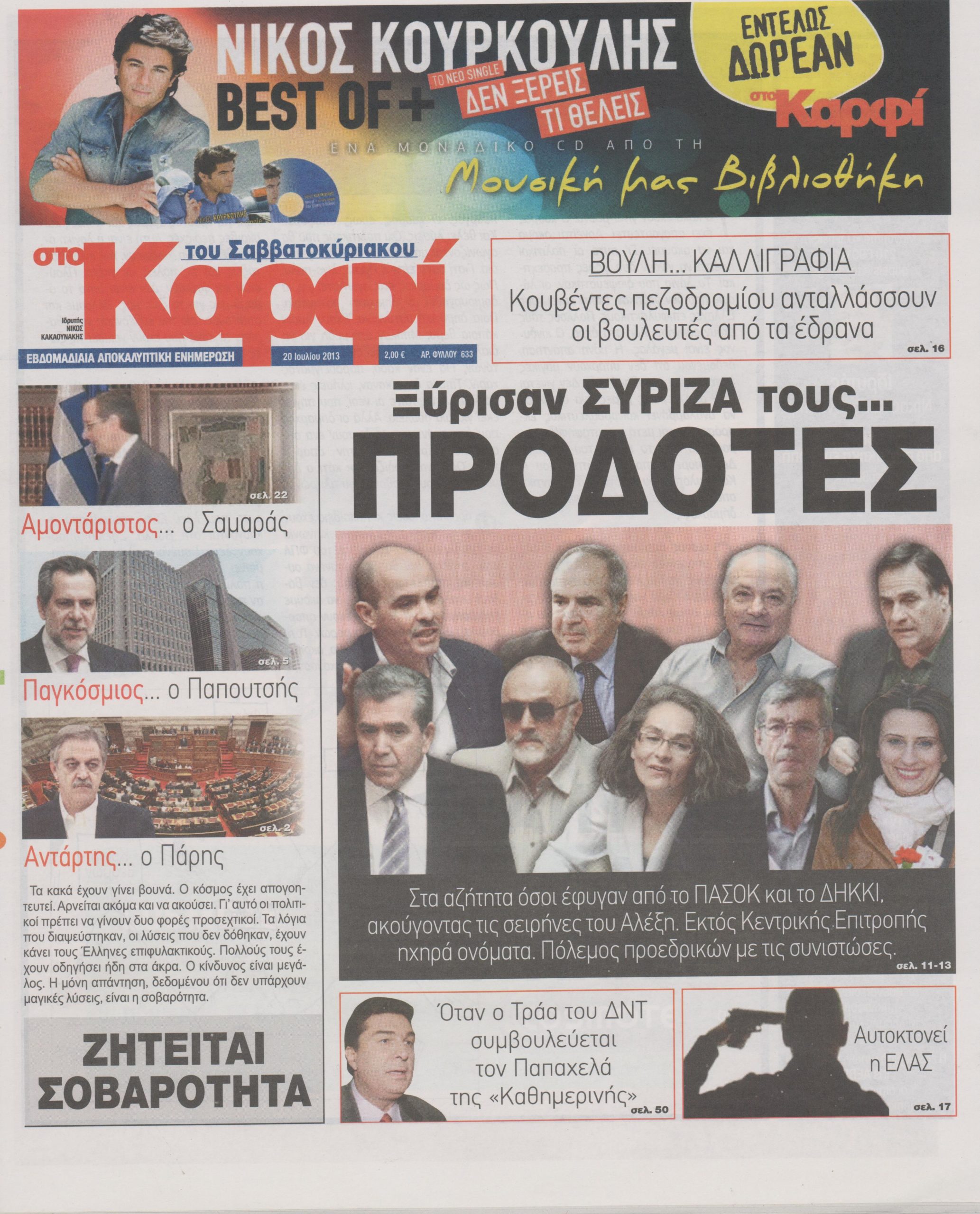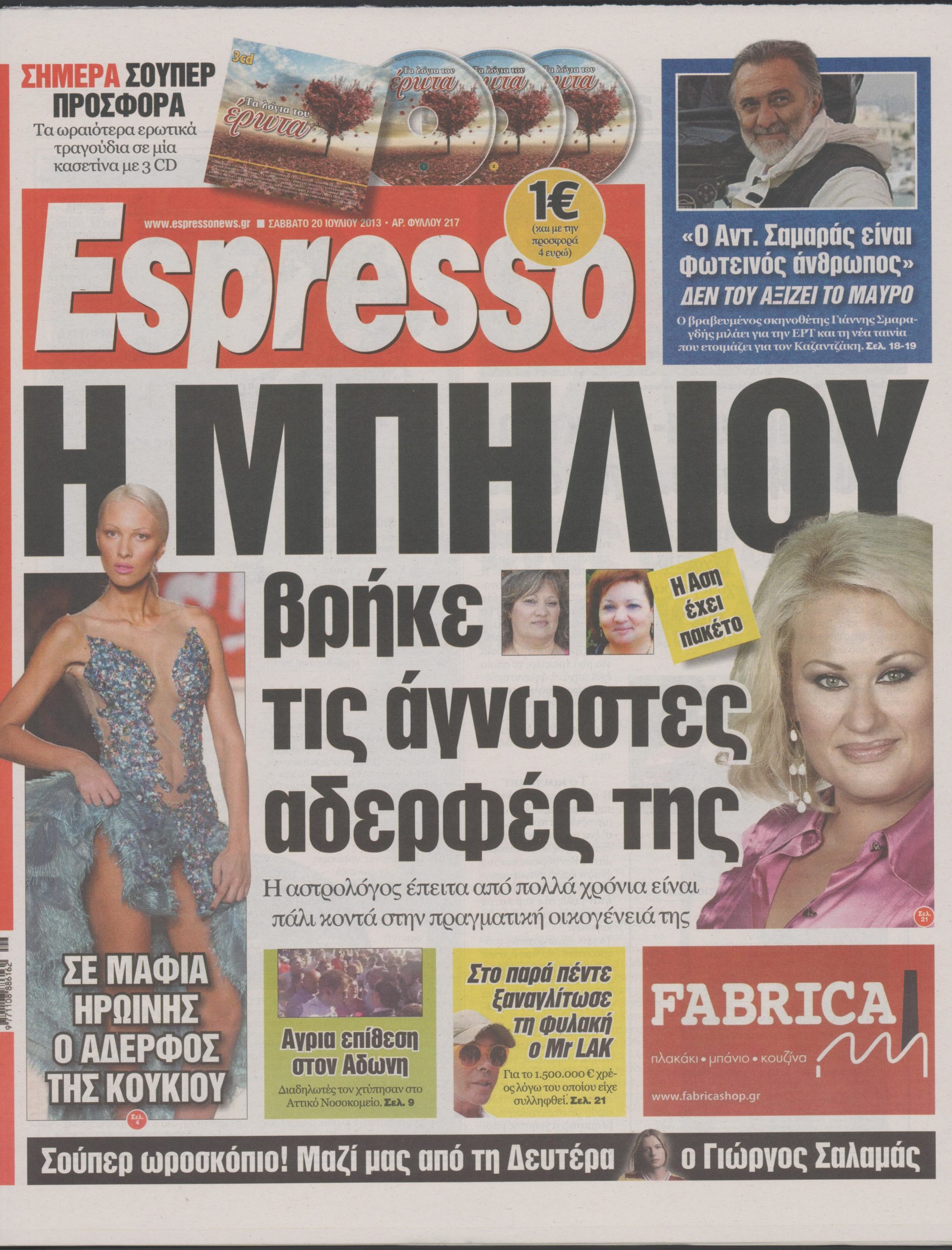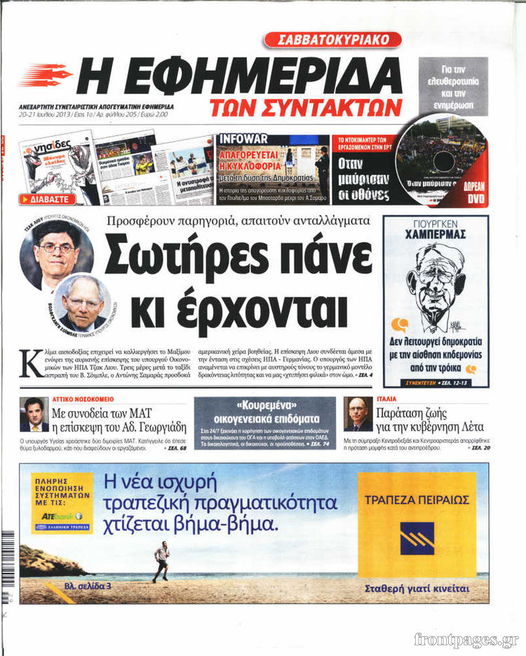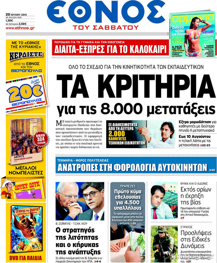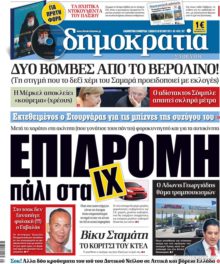 Οι πολιτικές εφημερίδες Enikos Newsroom 08:01, Σάββατο 20 Ιουλίου 2013 Media Οι πολιτικές εφημερίδες Διαβάστε τα πρωτοσέλιδα των πολιτικών εφημερίδων… ΕΦΗΜΕΡΙΔΕΣ ΠΟΛΙΤΙΚΕΣ ΕΦΗΜΕΡΙΔΕΣ Μοιράσου το: σχολίασε κι εσύ (0 σχόλια) Ακολουθήστε το enikos.gr στο Google News και μάθετε πρώτοι όλες τις ειδήσεις Δείτε όλες τις τελευταίες ειδήσεις από την Ελλάδα και τον Κόσμο στο enikos.gr Ειδήσεις Ροή Ειδήσεων 3 ώρες πριν Χριστούγεννα στα μπλόκα: Επιμένουν στις κινητοποιήσεις τους οι αγρότες – Ανοίγουν τα διόδια το Σαββατοκύριακο 3 ώρες πριν Ουκρανία: Η άνευ προηγουμένου επίθεση σε ρωσικό τάνκερ στη Μεσόγειο και το μήνυμα προς στον Πούτιν – Το «μακρύ χέρι» του Κιέβου 2 ώρες πριν Πούτιν: Τα μηνύματα σε Ευρώπη και ΝΑΤΟ από το μαραθώνιο «σόου» του – Η απαίτηση για «σεβασμό» και η ειρήνη «με τους όρους» της Μόσχας 3 ώρες πριν Τραμπ: Δεν αποκλείει την πιθανότητα ενός πολέμου στη Βενεζουέλα – «Ο Μαδούρο ξέρει καλύτερα από τον καθένα τι ακριβώς θέλω» 4 ώρες πριν Συνεχίζει να προκαλεί ο Μίτσκοσκι: «Για μένα το όνομα Μακεδονία είναι ιερό» 2 ώρες πριν Ανακαλύφθηκαν αρχαία χρυσά νομίσματα 2.200 ετών που απεικονίζουν τον θεό Απόλλωνα – Η άγνωστη σύνδεση με τον Φίλιππο Β΄ της Μακεδονίας 3 ώρες πριν Ύπνος: Μια κρυφή κατάσταση του εγκεφάλου πριν από τον ύπνο μπορεί να είναι το “κλειδί” για υψηλή ευφυΐα και δημιουργικότητα 4 ώρες πριν Αριθμολογία: Οι άνθρωποι που έχουν γεννηθεί αυτές τις 4 ημερομηνίες, συχνά παρεξηγούνται – «Η καλοσύνη τους κρύβει τεράστια δύναμη» 5 ώρες πριν Ξεχάστε το καθάρισμα το Σαββατοκύριακο: Ο «κανόνας των 20 λεπτών» που θα σας λύσει τα χέρια 5 λεπτά πριν Συρία: Μαζικά πλήγματα των ΗΠΑ σε θέσεις του Ισλαμικού Κράτους – Χέγκσεθ: «Δεν είναι αρχή πολέμου, είναι μια δήλωση εκδίκησης» για το θάνατο των στρατιωτών μας 18 λεπτά πριν Ουκρανία: Ολοκληρώθηκαν οι συνομιλίες με τους Αμερικανούς κι Ευρωπαίους διαπραγματευτές 33 λεπτά πριν Μπαρτσελόνα – Μπασκόνια 134-124: Οι «μπλαουγκράνα» πήραν το ματς της χρονιάς ύστερα από τρεις παρατάσεις 48 λεπτά πριν Φαίη Σκορδά: «Παλιότερα τα κομπλιμέντα τα προσπερνούσα, τώρα τα έχω ανάγκη» 1 ώρα πριν Βασίλης Σπανούλης: Δεν εμφανίστηκε ούτε ένας δημοσιογράφος στην συνέντευξη Τύπου – «Καλησπέρα στον… κανέναν», δείτε βίντεο ENIKOS NETWORK Το ΕΚΑΒ τιμήθηκε από την Ακαδημία Αθηνών για τα 40 χρόνια προσφοράς του Έχετε πραγματικά μεγάλη καρδιά; 10 χαρακτηριστικά όσων έχουν καλοσύνη Αναστολή μέτρων αναγκαστικής εκτέλεσης για κτηνοτρόφους που πλήττονται από την ευλογιά των αιγοπροβάτων Πλήρης επάρκεια προϊόντων στις λαϊκές της Αττικής, παρά τις αγροτικές κινητοποιήσεις – Τι απαντούν οι πωλητές Χαρτογραφώντας το «σημείο χωρίς επιστροφή»: Για πρώτη φορά αποκαλύπτεται με λεπτομέρεια το ακανθώδες όριο της ατμόσφαιρας τ... Η Google καταργεί τη λειτουργία «dark web report» – Πώς θα μπορούν οι χρήστες να διαγράφουν τα δεδομένα τους περισσότερα 22:42 , Παρασκευή 19 Δεκεμβρίου 2025 Γιώργος Γιαννόπουλος για “Το σόι σου”: “Είναι ευτυχία και ευλογία αυτή η σειρά” «Είναι ευτυχία και ευλογία η συγκυρία αυτής της σειράς», θα πει ο Γιώργος Γιαννόπουλος -ο αγαπ... 20:37 , Παρασκευή 19 Δεκεμβρίου 2025 Don’t Forget The Lyrics: Η Έλλη Κοκκίνου υποδέχεται 4 παίκτες που θα κάνουν τα πάντα για να μη χάσουν ούτε… μισή λέξη από τους στίχους Το «Don’t Forget The Lyrics» επιστρέφει απόψε, Παρασκευή 19 Δεκεμβρίου, στις 21:00 με νέο επει... 19:31 , Παρασκευή 19 Δεκεμβρίου 2025 GNTM: Απόψε ο μεγάλος τελικός για τους 4 φιναλίστ Έπειτα από μ
