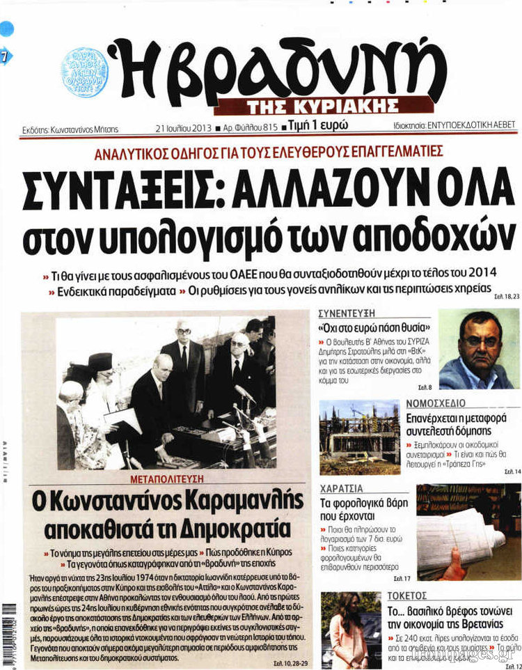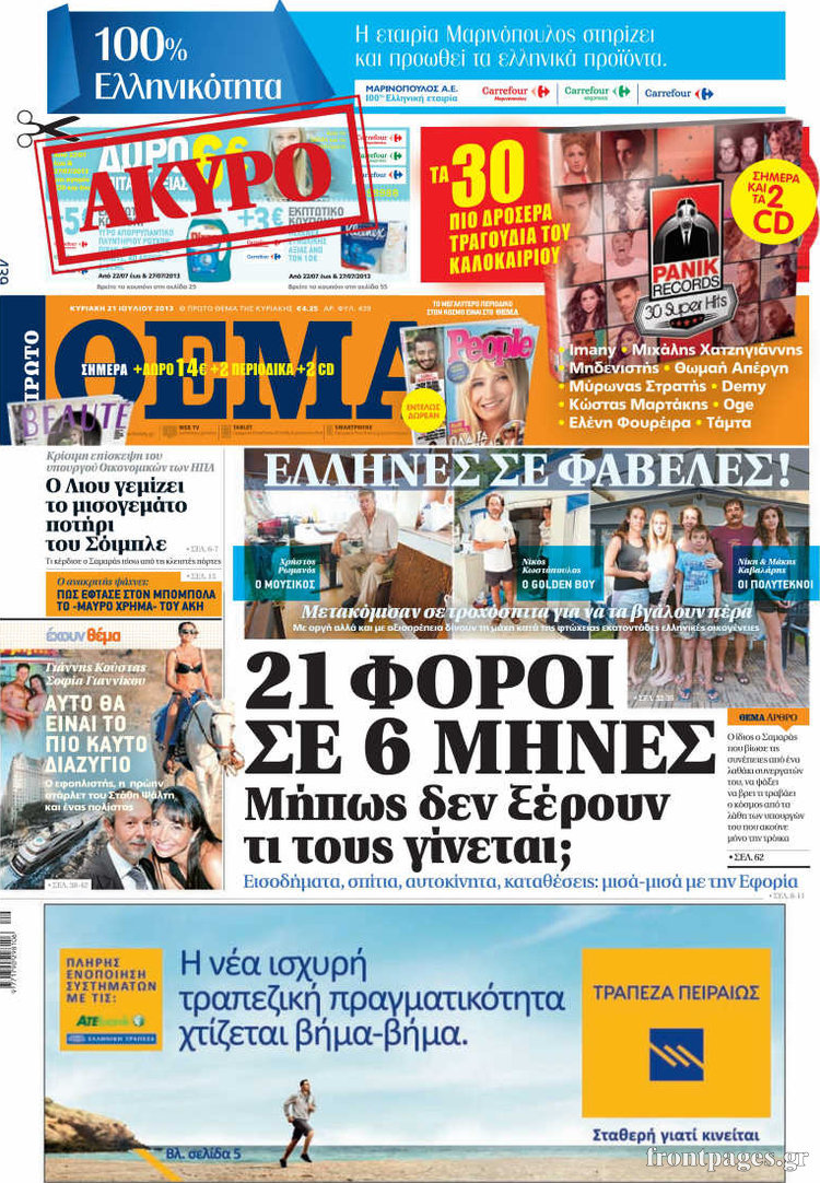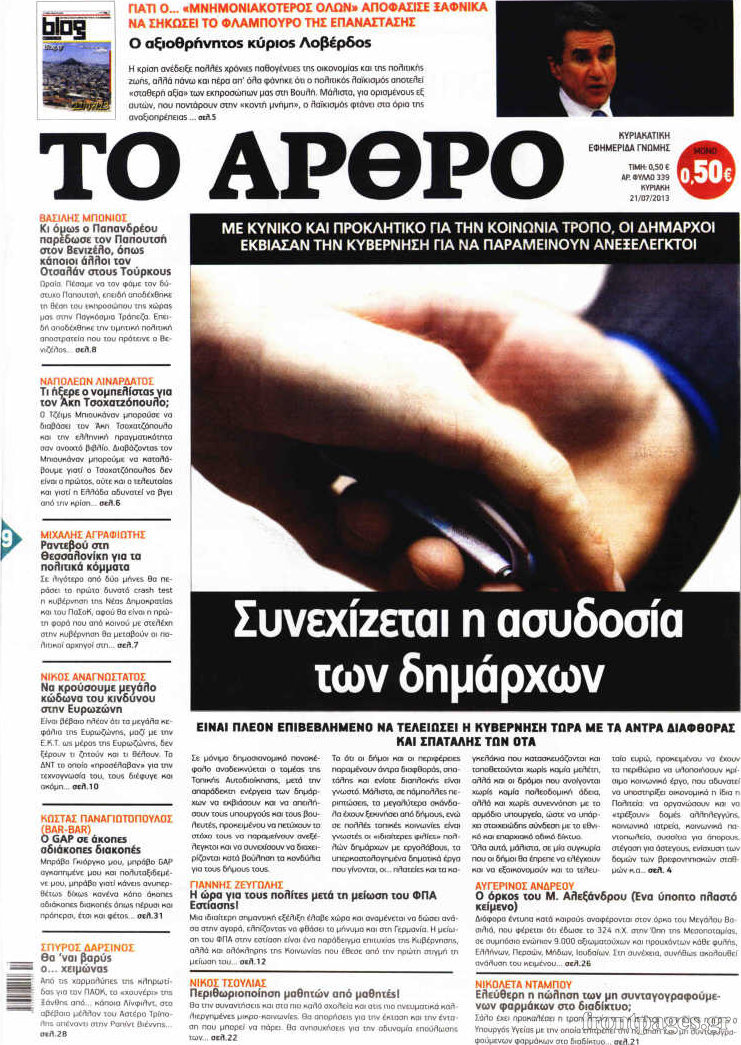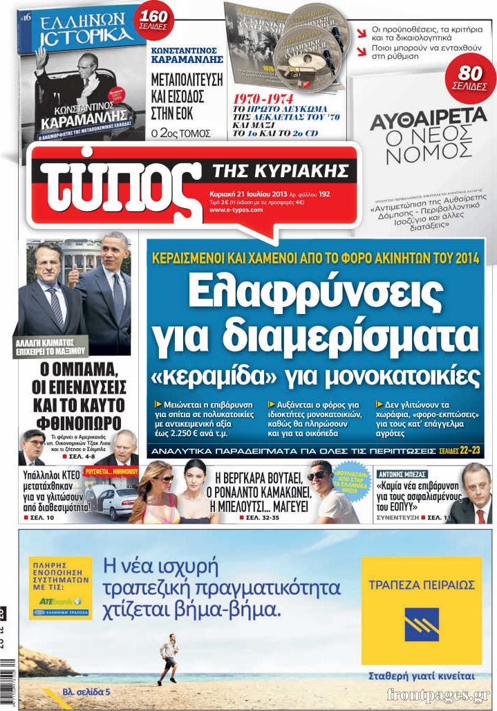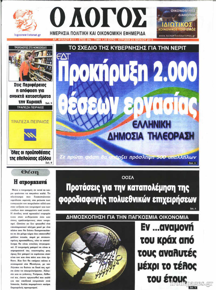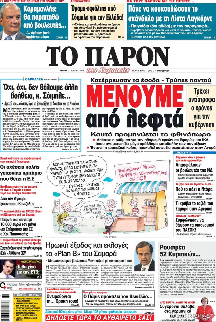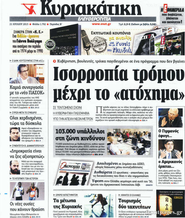 Οι πολιτικές εφημερίδες Enikos Newsroom 09:58, Κυριακή 21 Ιουλίου 2013 Media Οι πολιτικές εφημερίδες Διαβάστε τα πρωτοσέλιδα των πολιτικών εφημερίδων. ΕΦΗΜΕΡΙΔΕΣ ΠΟΛΙΤΙΚΕΣ ΕΦΗΜΕΡΙΔΕΣ Μοιράσου το: σχολίασε κι εσύ (0 σχόλια) Ακολουθήστε το enikos.gr στο Google News και μάθετε πρώτοι όλες τις ειδήσεις Δείτε όλες τις τελευταίες ειδήσεις από την Ελλάδα και τον Κόσμο στο enikos.gr Ειδήσεις Ροή Ειδήσεων 3 ώρες πριν Πώς δρούσε το κύκλωμα που διακινούσε ναρκωτικά σε σχολεία – Υπέβαλαν σε βασανιστήρια όσους δεν τηρούσαν τους «κανόνες πειθαρχίας» 4 ώρες πριν Αγρότες: Γιορτές στα μπλόκα με ανοιχτά διόδια – Δικογραφία στα Ιωάννινα για το σήκωμα των μπαρών 3 ώρες πριν Ζελένσκι: Οι Αμερικανοί πρότειναν συνάντηση Ουκρανίας, ΗΠΑ, Ρωσίας στο Μαϊάμι 2 ώρες πριν Τραμπ: Πώς περνάει τις γιορτές των Χριστουγέννων – Τα δώρα που κάνει στα εγγόνια του 2 ώρες πριν Μικαέλα Μπέντχαους: Ο πρώτος άνθρωπος σε αναπηρικό αμαξίδιο που ταξίδεψε στο διάστημα – ΒΙΝΤΕΟ 4 ώρες πριν Η τύχη χαμογελά σε 3 ζώδια έως τις 28 Δεκεμβρίου – «Προσέξτε τις επιλογές σας και η επιμονή σας θα ανταμειφθεί» 5 ώρες πριν Μία ανεκμετάλλευτη πηγή θα μπορούσε να προσφέρει ανεξάντλητη ενέργεια – Οι επιστήμονες ίσως γνωρίζουν πώς να την ξεκλειδώσουν 1 ώρα πριν Μήπως οι γιορτές σας δεν είναι τόσο τέλειες; 7 χριστουγεννιάτικες συνήθειες που μαρτυρούν ότι μια οικογένεια είναι δυσλειτουργική 11 ώρες πριν Enerwave: Το νέο «ρεύμα» στη λιανική ενέργειας που αλλάζει την εμπειρία του καταναλωτή 10 λεπτά πριν Πώς να απαλλαγείτε από τη μυρωδιά του τηγανητού φαγητού: Το μυστικό βρίσκεται στην κουζίνα σας 15 λεπτά πριν Βλαχοδήμος: «Νιώθω καλά που είμαι σημαντικός για τη Σεβίλλη» – Τι είπε για τη Ρεάλ Μαδρίτης και τον Μπαπέ 24 λεπτά πριν Πρίγκιπας Ουίλιαμ: Μαγείρεψε παρέα με τον πρίγκιπα Τζορτζ για τους αστέγους – ΦΩΤΟ και ΒΙΝΤΕΟ 33 λεπτά πριν Επιχείρηση της Τροχαίας κατά της παράνομης στάθμευσης στο Νέο Ψυχικό – Τέσσερις συλλήψεις 42 λεπτά πριν Κυριάκος Μητσοτάκης: Στην Ιερουσαλήμ την Τρίτη ο Πρωθυπουργός για την τριμερή Ελλάδας, Κύπρου, Ισραήλ – Θα συναντηθεί και με τον Αμπάς ENIKOS NETWORK Οι γυναίκες αποκαλύπτουν το πιο ελκυστικό πράγμα που μπορεί να κάνει ένας άνδρας Ομορφιά και αντιγήρανση: Ειδικοί μιλούν για συσκευές περιποίησης του δέρματος Θεοδωρικάκος: Εθνική στρατηγική για τους ημιαγωγούς – Πρώτο βήμα η χρηματοδότηση του πρώτου Κέντρου Ικανοτήτων, με 3,63 εκα... Επίδομα θέρμανσης: Μπαίνει η πρώτη δόση την Τρίτη – Οι επόμενες πληρωμές Χαρτογραφώντας το «σημείο χωρίς επιστροφή»: Για πρώτη φορά αποκαλύπτεται με λεπτομέρεια το ακανθώδες όριο της ατμόσφαιρας τ... Η Google καταργεί τη λειτουργία «dark web report» – Πώς θα μπορούν οι χρήστες να διαγράφουν τα δεδομένα τους περισσότερα 18:19 , Σάββατο 20 Δεκεμβρίου 2025 HOTΕΛ ΕΛVIRA: Η Ελβίρα μαθαίνει πως ο Χάρι μένει κρυφά στο ξενοδοχείο του Παντελή Συνεχίζονται οι εκλογές για πρόεδρο, στο νέο επεισόδιο της κωμικής σειράς του MEGA, HOTΕΛ ΕΛVI... 14:04 , Σάββατο 20 Δεκεμβρίου 2025 Η Realnews αυτής της Κυριακής (21/12/2025) Με τίτλο: «Ασπίδα προστασίας για την Ελλάδα» κυκλοφορεί, αυτήν την Κυριακή, η Realnews. Σημαντ... 12:53 , Σάββατο 20 Δεκεμβρίου 2025 Να μ’ αγαπάς: Το παρελθόν έρχεται στο φως – Καταιγιστικές εξελίξεις στα τελευταία επεισόδια του 2025 Ο Άγγελος αποκαλύπτεται, η Φωτεινή ανησυχεί για τον Λευτέρη και η Ζωή έρχεται αντιμέτωπη με το... 11:41 , Σάββατο 20 Δεκεμβρίου 2025 «Η αγάπη δεν χάνεται ποτέ»: Η μικρού μήκους ταινία κινουμένων σχεδίων που θέ