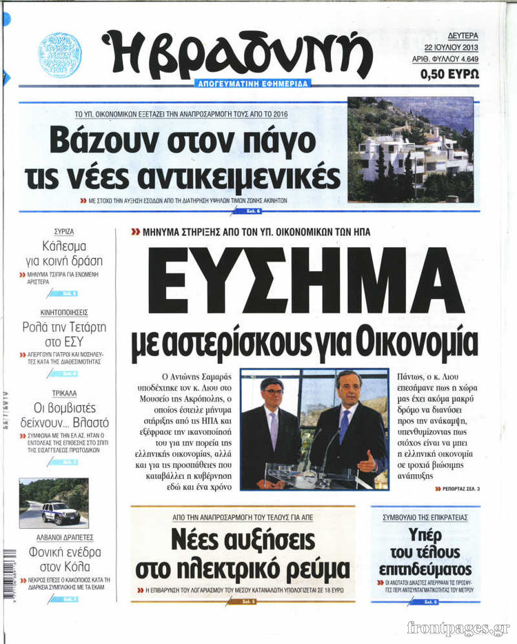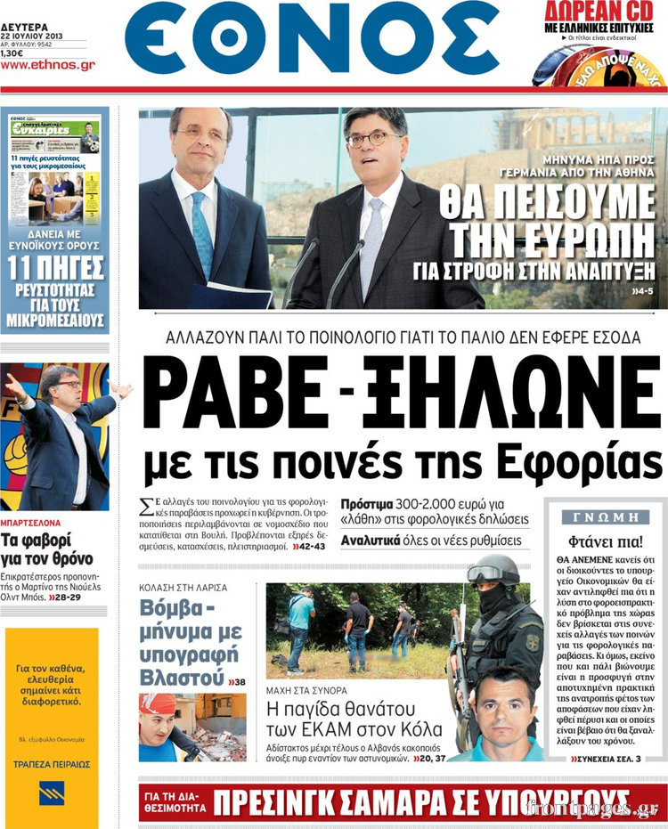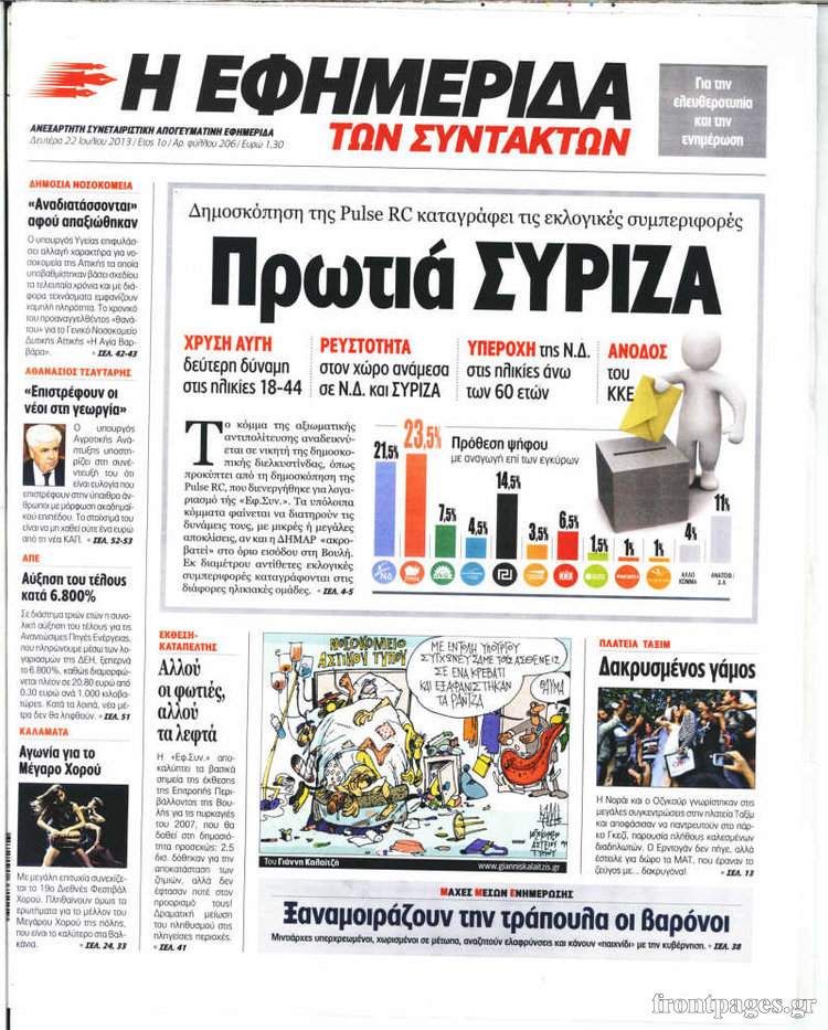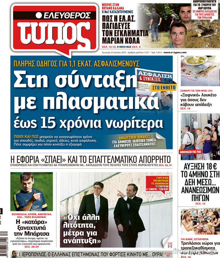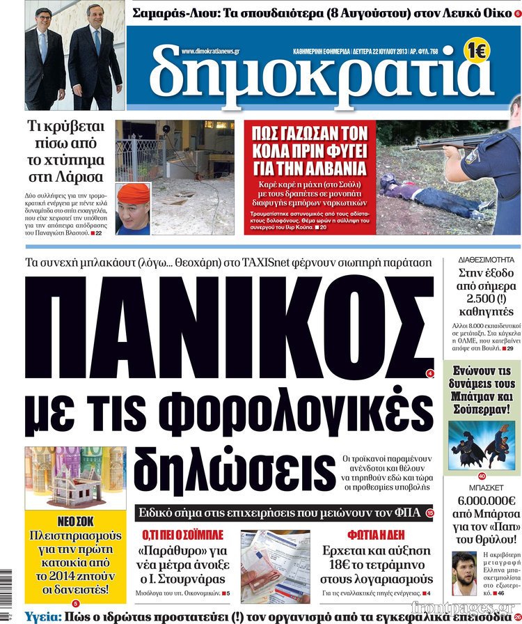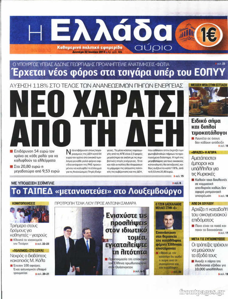 Οι πολιτικές εφημερίδες Enikos Newsroom 08:12, Δευτέρα 22 Ιουλίου 2013 Media Οι πολιτικές εφημερίδες Διαβάστε τα πρωτοσέλιδα των πολιτικών εφημερίδων: ΕΦΗΜΕΡΙΔΕΣ ΠΟΛΙΤΙΚΕΣ ΕΦΗΜΕΡΙΔΕΣ ΠΡΩΤΟΣΕΛΙΔΑ Μοιράσου το: σχολίασε κι εσύ (0 σχόλια) Ακολουθήστε το enikos.gr στο Google News και μάθετε πρώτοι όλες τις ειδήσεις Δείτε όλες τις τελευταίες ειδήσεις από την Ελλάδα και τον Κόσμο στο enikos.gr Ειδήσεις Ροή Ειδήσεων 4 ώρες πριν Πώς δρούσε το κύκλωμα που διακινούσε ναρκωτικά σε σχολεία – Υπέβαλαν σε βασανιστήρια όσους δεν τηρούσαν τους «κανόνες πειθαρχίας» 4 ώρες πριν Αγρότες: Γιορτές στα μπλόκα με ανοιχτά διόδια – Δικογραφία στα Ιωάννινα για το σήκωμα των μπαρών 4 ώρες πριν Ζελένσκι: Οι Αμερικανοί πρότειναν συνάντηση Ουκρανίας, ΗΠΑ, Ρωσίας στο Μαϊάμι 2 ώρες πριν Τραμπ: Πώς περνάει τις γιορτές των Χριστουγέννων – Τα δώρα που κάνει στα εγγόνια του 3 ώρες πριν Μικαέλα Μπέντχαους: Ο πρώτος άνθρωπος σε αναπηρικό αμαξίδιο που ταξίδεψε στο διάστημα – ΒΙΝΤΕΟ 4 ώρες πριν Η τύχη χαμογελά σε 3 ζώδια έως τις 28 Δεκεμβρίου – «Προσέξτε τις επιλογές σας και η επιμονή σας θα ανταμειφθεί» 5 ώρες πριν Μία ανεκμετάλλευτη πηγή θα μπορούσε να προσφέρει ανεξάντλητη ενέργεια – Οι επιστήμονες ίσως γνωρίζουν πώς να την ξεκλειδώσουν 1 ώρα πριν Μήπως οι γιορτές σας δεν είναι τόσο τέλειες; 7 χριστουγεννιάτικες συνήθειες που μαρτυρούν ότι μια οικογένεια είναι δυσλειτουργική 12 ώρες πριν Enerwave: Το νέο «ρεύμα» στη λιανική ενέργειας που αλλάζει την εμπειρία του καταναλωτή 2 λεπτά πριν Ο ΑΝΤ1 γεμίζει τις γιορτές με μουσική – Ποιους καλλιτέχνες θα απολαύσουμε 20 λεπτά πριν Πέθανε η σπουδαία αρχαιολόγος Λίλα Μαραγκού – 30 λεπτά πριν Πώς να απαλλαγείτε από τη μυρωδιά του τηγανητού φαγητού: Το μυστικό βρίσκεται στην κουζίνα σας 35 λεπτά πριν Βλαχοδήμος: «Νιώθω καλά που είμαι σημαντικός για τη Σεβίλλη» – Τι είπε για τη Ρεάλ Μαδρίτης και τον Μπαπέ 44 λεπτά πριν Πρίγκιπας Ουίλιαμ: Μαγείρεψε παρέα με τον πρίγκιπα Τζορτζ για τους αστέγους – ΦΩΤΟ και ΒΙΝΤΕΟ ENIKOS NETWORK Οι γυναίκες αποκαλύπτουν το πιο ελκυστικό πράγμα που μπορεί να κάνει ένας άνδρας Ομορφιά και αντιγήρανση: Ειδικοί μιλούν για συσκευές περιποίησης του δέρματος Θεοδωρικάκος: Εθνική στρατηγική για τους ημιαγωγούς – Πρώτο βήμα η χρηματοδότηση του πρώτου Κέντρου Ικανοτήτων, με 3,63 εκα... Επίδομα θέρμανσης: Μπαίνει η πρώτη δόση την Τρίτη – Οι επόμενες πληρωμές Χαρτογραφώντας το «σημείο χωρίς επιστροφή»: Για πρώτη φορά αποκαλύπτεται με λεπτομέρεια το ακανθώδες όριο της ατμόσφαιρας τ... Η Google καταργεί τη λειτουργία «dark web report» – Πώς θα μπορούν οι χρήστες να διαγράφουν τα δεδομένα τους περισσότερα 20:28 , Σάββατο 20 Δεκεμβρίου 2025 Ο ΑΝΤ1 γεμίζει τις γιορτές με μουσική – Ποιους καλλιτέχνες θα απολαύσουμε Φέτος στον ΑΝΤ1 γιορτάζουμε τις νύχτες μας παρέα με αγαπημένους καλλιτέχνες και μεγάλες μουσι... 18:19 , Σάββατο 20 Δεκεμβρίου 2025 HOTΕΛ ΕΛVIRA: Η Ελβίρα μαθαίνει πως ο Χάρι μένει κρυφά στο ξενοδοχείο του Παντελή Συνεχίζονται οι εκλογές για πρόεδρο, στο νέο επεισόδιο της κωμικής σειράς του MEGA, HOTΕΛ ΕΛVI... 14:04 , Σάββατο 20 Δεκεμβρίου 2025 Η Realnews αυτής της Κυριακής (21/12/2025) Με τίτλο: «Ασπίδα προστασίας για την Ελλάδα» κυκλοφορεί, αυτήν την Κυριακή, η Realnews. Σημαντ... 12:53 , Σάββατο 20 Δεκεμβρίου 2025 Να μ’ αγαπάς: Το παρελθόν έρχεται στο φως – Καταιγιστικές εξελίξεις στα τελευταία επεισόδια του 2025 Ο Άγγελος αποκαλύπτεται, η Φωτεινή ανησυχεί για τον Λευτέρη και η Ζωή έρχεται αντιμέτωπη με το...