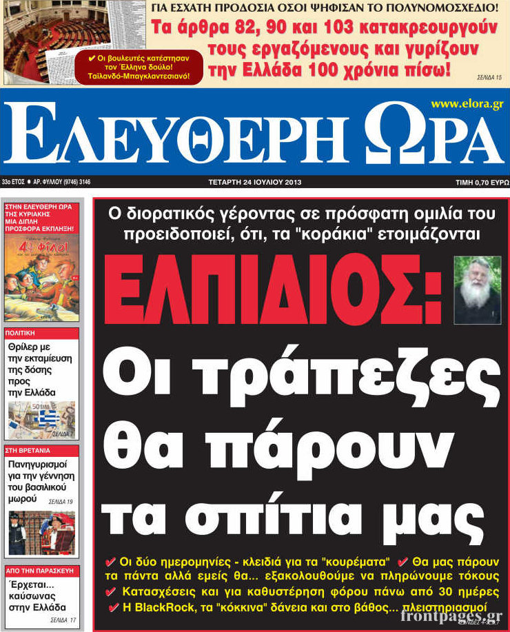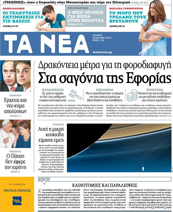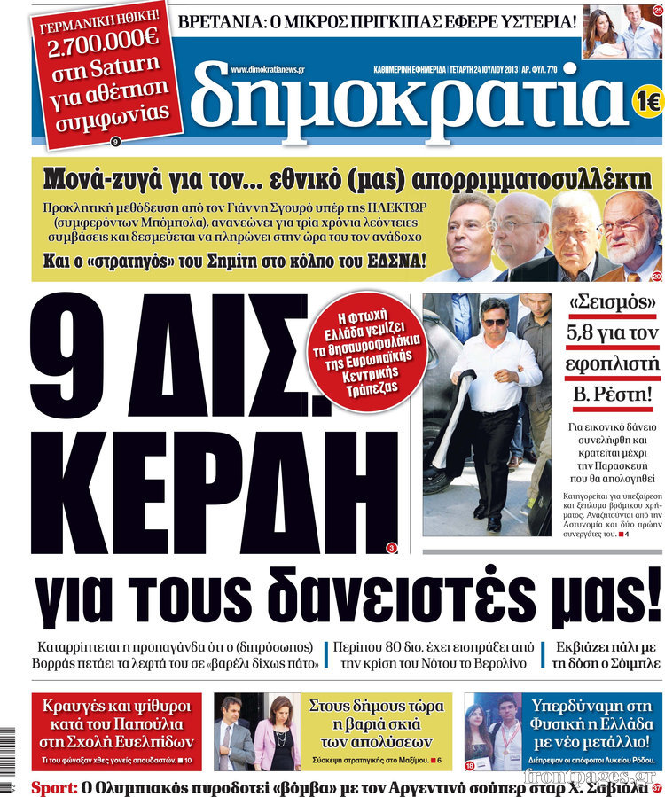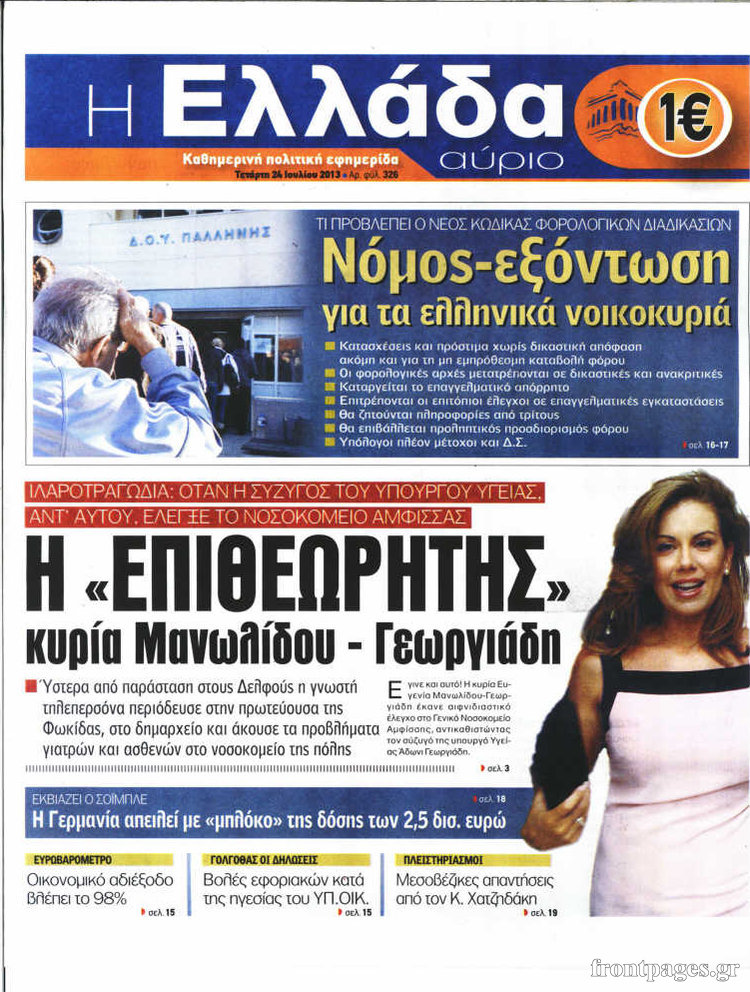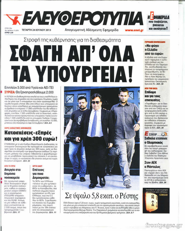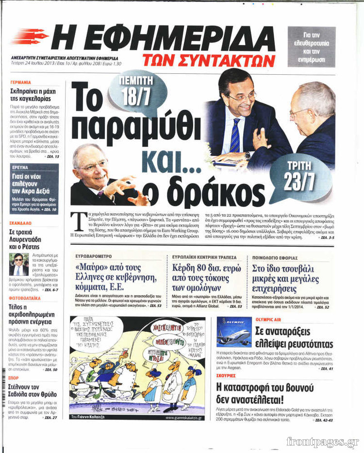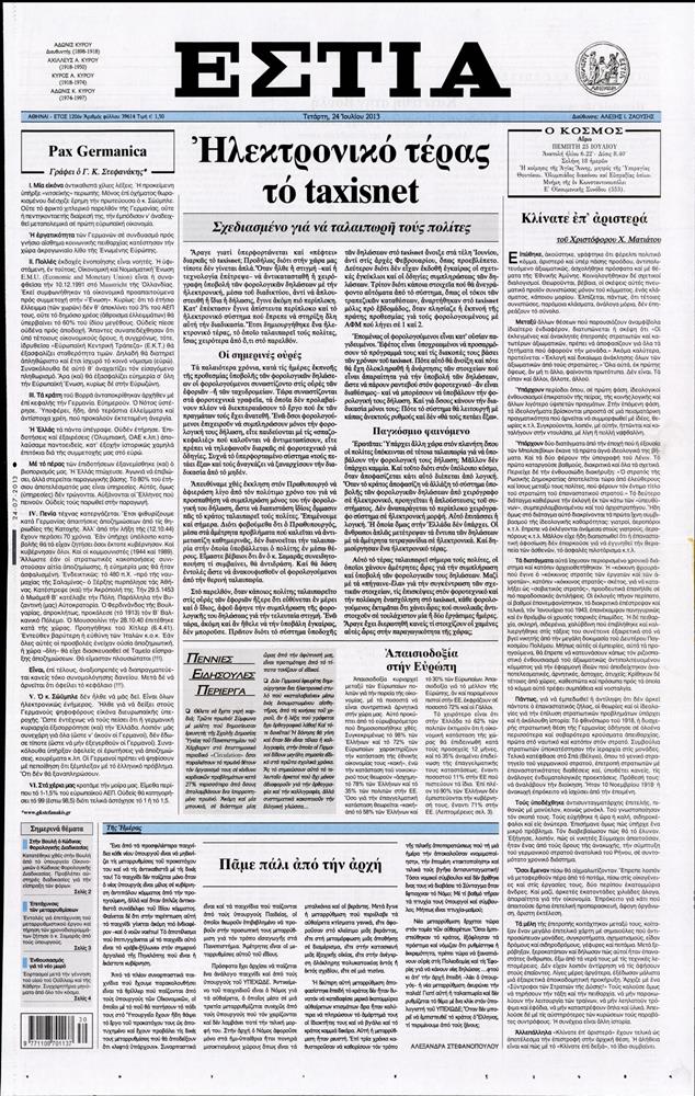 Οι πολιτικές εφημερίδες Enikos Newsroom 08:21, Τετάρτη 24 Ιουλίου 2013 Media Οι πολιτικές εφημερίδες Διαβάστε τα πρωτοσέλιδα των πολιτικών εφημερίδων. ΕΦΗΜΕΡΙΔΕΣ ΠΟΛΙΤΙΚΕΣ ΕΦΗΜΕΡΙΔΕΣ ΠΡΩΤΟΣΕΛΙΔΑ Μοιράσου το: σχολίασε κι εσύ (0 σχόλια) Ακολουθήστε το enikos.gr στο Google News και μάθετε πρώτοι όλες τις ειδήσεις Δείτε όλες τις τελευταίες ειδήσεις από την Ελλάδα και τον Κόσμο στο enikos.gr Ειδήσεις Ροή Ειδήσεων 3 ώρες πριν Χριστούγεννα στα μπλόκα οι αγρότες: Άνοιξαν στα διόδια και μοίρασαν προϊόντα στους πολίτες – Νέα σύσκεψη την Κυριακή στη Νίκαια 4 ώρες πριν Κύκλωμα διακίνησης ναρκωτικών σε σχολεία: Τηλεφωνούσαν στους ανηλίκους την ώρα του μαθήματος – Οι διάλογοι-σοκ, τα «ψευδώνυμα» και τα βασανιστήρια 3 ώρες πριν Αρχεία Επστάιν: Οι 500 σελίδες που λείπουν, τα αναπάντητα ερωτήματα και οι επώνυμοι – Τι έπεται 5 ώρες πριν Ζελένσκι: Μόνο οι ΗΠΑ και ο Τραμπ μπορούν να πιέσουν τη Ρωσία να βάλει τέλος στον πόλεμο 5 ώρες πριν Φοινικούντα: Προφυλακιστέος ο 30χρονος για συνέργεια στη διπλή δολοφονία – Και άλλα πρόσωπα στο «μικροσκόπιο» 3 ώρες πριν Αποκαλύφθηκε το άγνωστο «GPS» της αρχαιότητας – Πώς οι ναοί «φώτιζαν» τον δρόμο των ναυτικών πριν από την εφεύρεση των φάρων 4 ώρες πριν Ύπνος: Η διατροφή που μπορεί να σας βοηθήσει να κοιμάστε καλύτερα και να ζήσετε περισσότερο 5 ώρες πριν Αριθμολογία: Ο αριθμός του φύλακα αγγέλου σας, με βάση τον μήνα γέννησής σας – «Έτσι σας στέλνει σημάδια το σύμπαν» 17 ώρες πριν Enerwave: Το νέο «ρεύμα» στη λιανική ενέργειας που αλλάζει την εμπειρία του καταναλωτή 19 λεπτά πριν Σεισμός 3,8 Ρίχτερ ανοιχτά της Αμοργού 35 λεπτά πριν Άννα Βίσση: Τα… Social Media «προσκύνησαν» την «απόλυτη» για την συναυλία της στο Καλλιμάρμαρο που προβλήθηκε από το Mega 49 λεπτά πριν Φωτεινή Αθερίδου: «Προσπαθώ να είμαι κάθετη και αυστηρή σαν μαμά πια» 1 ώρα πριν ΗΠΑ, Αίγυπτος, Κατάρ και Τουρκία συζήτησαν τη δεύτερη φάση του ειρηνευτικού σχεδίου για τη Γάζα 1 ώρα πριν Γιάννης Αντετοκούνμπο: Έμεινε στην 6η θέση της ψηφοφορίας του ESPN για το βραβείο του MVP του NBA ENIKOS NETWORK Οι γυναίκες αποκαλύπτουν το πιο ελκυστικό πράγμα που μπορεί να κάνει ένας άνδρας Ομορφιά και αντιγήρανση: Ειδικοί μιλούν για συσκευές περιποίησης του δέρματος «Πολεμική» προετοιμασία από την ευρωπαϊκή βιομηχανία ενέργειας – Η Eurelectric ζητεί «ομπρέλα» προστασίας για τις υποδομές Ακύρωση ΑΦΜ για απάτες – Ποιους βάζει στο στόχαστρο η ΑΑΔΕ Χαρτογραφώντας το «σημείο χωρίς επιστροφή»: Για πρώτη φορά αποκαλύπτεται με λεπτομέρεια το ακανθώδες όριο της ατμόσφαιρας τ... Η Google καταργεί τη λειτουργία «dark web report» – Πώς θα μπορούν οι χρήστες να διαγράφουν τα δεδομένα τους περισσότερα 01:30 , Κυριακή 21 Δεκεμβρίου 2025 Άννα Βίσση: Τα… Social Media «προσκύνησαν» την «απόλυτη» για την συναυλία της στο Καλλιμάρμαρο που προβλήθηκε από το Mega Την ημέρα των γενεθλίων της Άννας Βίσση, το MEGA τίμησε τη διαχρονική παρουσία της «απόλυτης Ε... 00:00 , Κυριακή 21 Δεκεμβρίου 2025 The Voice: Η επιστροφή της Έλενας Παπαρίζου και η ατάκα του Γιώργου Μαζωνάκη μετά τις καταγγελίες Στη φάση των Cross Battles Live μπήκε το The Voice, με την Έλενα Παπαρίζου να επιστρέφει στο π... 20:30 , Σάββατο 20 Δεκεμβρίου 2025 Αυτή την Κυριακή με τη Realnews: Instyle, μαζί Drive και Realnews Geopolitics Αυτή την Κυριακή με τη Realnews: Instyle, μαζί Drive και Realnews Geopolitics Instyle Η Άννα Ρ... 20:28 , Σάββατο 20 Δεκεμβρίου 2025 Ο ΑΝΤ1 γεμίζει τις γιορτές με μουσική – Ποιους καλλιτέχνες θα απολαύσουμε Φέτος στον ΑΝΤ1 γιορτάζουμε τις νύχτες μας παρέα με αγαπημέν