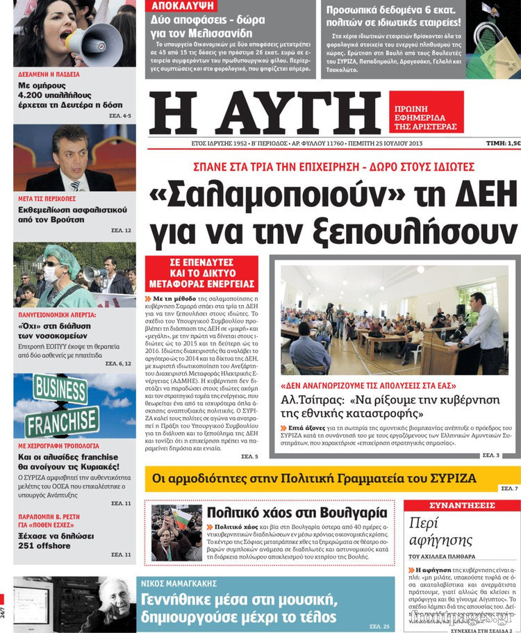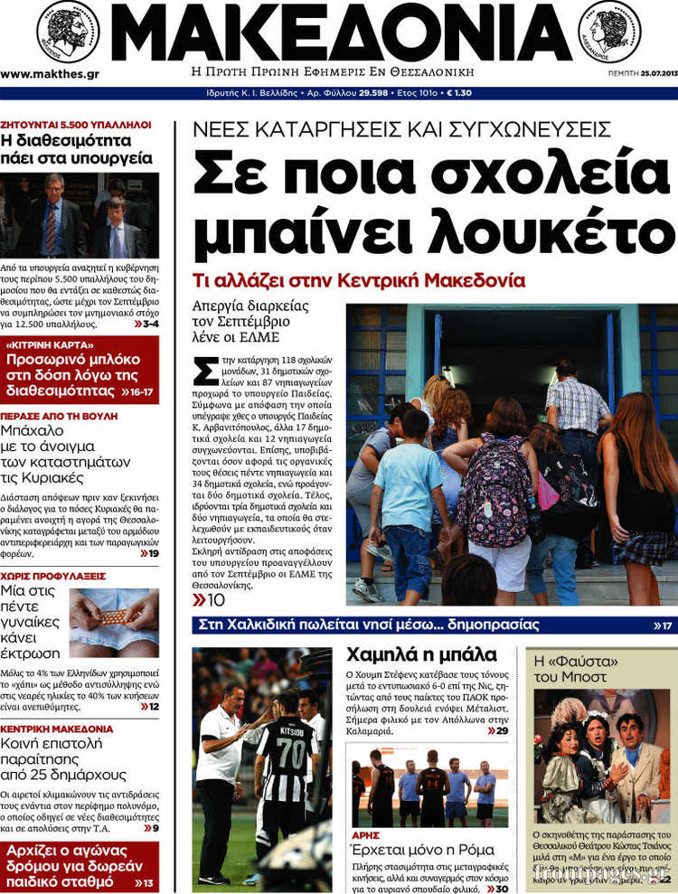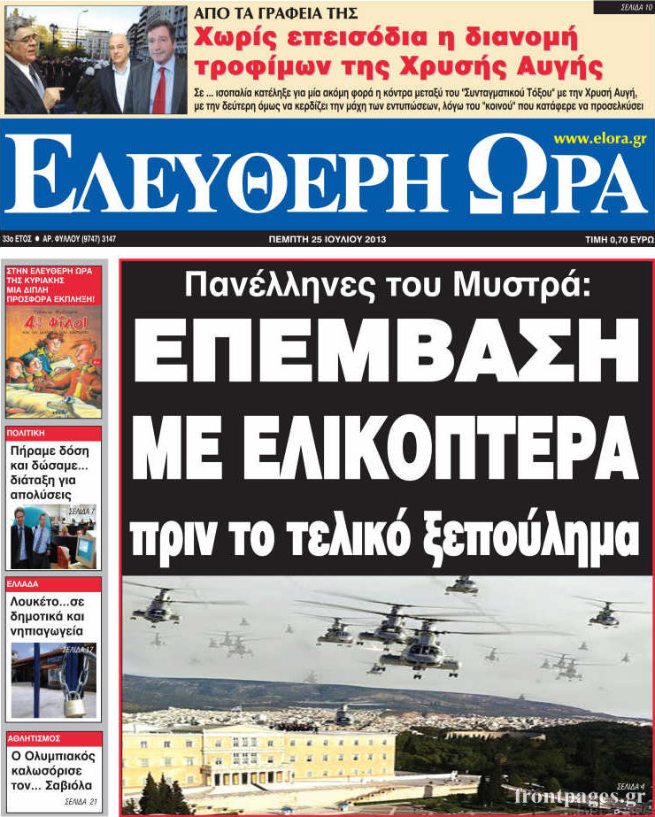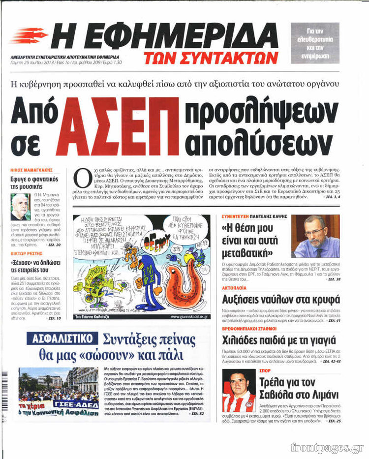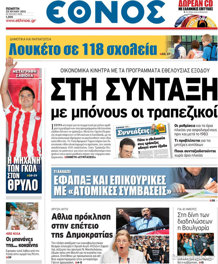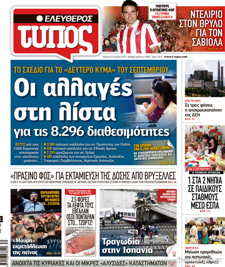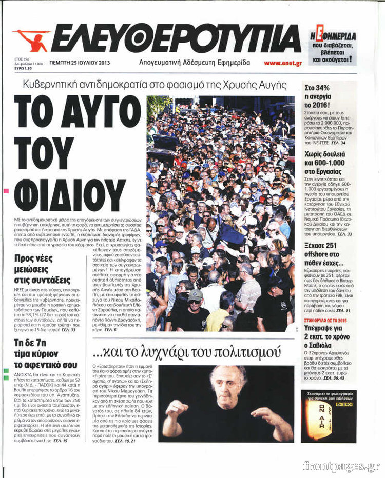 Οι πολιτικές εφημερίδες Enikos Newsroom 08:31, Πέμπτη 25 Ιουλίου 2013 Media Οι πολιτικές εφημερίδες Διαβάστε τα πρωτοσέλιδα των πολιτικών εφημερίδων. ΕΦΗΜΕΡΙΔΕΣ ΠΟΛΙΤΙΚΕΣ ΕΦΗΜΕΡΙΔΕΣ ΠΡΩΤΟΣΕΛΙΔΑ Μοιράσου το: σχολίασε κι εσύ (0 σχόλια) Ακολουθήστε το enikos.gr στο Google News και μάθετε πρώτοι όλες τις ειδήσεις Δείτε όλες τις τελευταίες ειδήσεις από την Ελλάδα και τον Κόσμο στο enikos.gr Ειδήσεις Ροή Ειδήσεων 4 ώρες πριν Χριστούγεννα στα μπλόκα: Επιμένουν στις κινητοποιήσεις τους οι αγρότες – Ανοίγουν τα διόδια το Σαββατοκύριακο 5 ώρες πριν Ουκρανία: Η άνευ προηγουμένου επίθεση σε ρωσικό τάνκερ στη Μεσόγειο και το μήνυμα προς στον Πούτιν – Το «μακρύ χέρι» του Κιέβου 4 ώρες πριν Πούτιν: Τα μηνύματα σε Ευρώπη και ΝΑΤΟ από το μαραθώνιο «σόου» του – Η απαίτηση για «σεβασμό» και η ειρήνη «με τους όρους» της Μόσχας 5 ώρες πριν Τραμπ: Δεν αποκλείει την πιθανότητα ενός πολέμου στη Βενεζουέλα – «Ο Μαδούρο ξέρει καλύτερα από τον καθένα τι ακριβώς θέλω» 5 ώρες πριν Συνεχίζει να προκαλεί ο Μίτσκοσκι: «Για μένα το όνομα Μακεδονία είναι ιερό» 4 ώρες πριν Ανακαλύφθηκαν αρχαία χρυσά νομίσματα 2.200 ετών που απεικονίζουν τον θεό Απόλλωνα – Η άγνωστη σύνδεση με τον Φίλιππο Β΄ της Μακεδονίας 5 ώρες πριν Ύπνος: Μια κρυφή κατάσταση του εγκεφάλου πριν από τον ύπνο μπορεί να είναι το “κλειδί” για υψηλή ευφυΐα και δημιουργικότητα 6 ώρες πριν Αριθμολογία: Οι άνθρωποι που έχουν γεννηθεί αυτές τις 4 ημερομηνίες, συχνά παρεξηγούνται – «Η καλοσύνη τους κρύβει τεράστια δύναμη» 7 ώρες πριν Ξεχάστε το καθάρισμα το Σαββατοκύριακο: Ο «κανόνας των 20 λεπτών» που θα σας λύσει τα χέρια 23 λεπτά πριν Θεσσαλονίκη: Εξαφανίστηκε 13χρονος από χώρο φιλοξενίας ασυνόδευτων ανηλίκων στο Ωραιόκαστρο 34 λεπτά πριν Ντόναλντ Τραμπ: «Πολύ βαριά αντίποινα» στη Συρία – «Πλήττουμε πολύ δυνατά οχυρά του Ισλαμικού Κράτους» 48 λεπτά πριν Εξάρχεια: Ένταση με μολότοφ, χημικά και κρότου λάμψης 1 ώρα πριν ΗΠΑ: Τραγωδία στην Αλαμπάμα – Σκότωσε την δημοσιογράφο σύζυγό του και αυτοκτόνησε μπροστά στον 3χρονο γιο τους 1 ώρα πριν Πρόταση γάμου στο ΣΕΦ κατά την διάρκεια του αγώνα Ολυμπιακός-Βιλερμπάν – Δείτε βίντεο ENIKOS NETWORK Το ΕΚΑΒ τιμήθηκε από την Ακαδημία Αθηνών για τα 40 χρόνια προσφοράς του Έχετε πραγματικά μεγάλη καρδιά; 10 χαρακτηριστικά όσων έχουν καλοσύνη Αναστολή μέτρων αναγκαστικής εκτέλεσης για κτηνοτρόφους που πλήττονται από την ευλογιά των αιγοπροβάτων Πλήρης επάρκεια προϊόντων στις λαϊκές της Αττικής, παρά τις αγροτικές κινητοποιήσεις – Τι απαντούν οι πωλητές Χαρτογραφώντας το «σημείο χωρίς επιστροφή»: Για πρώτη φορά αποκαλύπτεται με λεπτομέρεια το ακανθώδες όριο της ατμόσφαιρας τ... Η Google καταργεί τη λειτουργία «dark web report» – Πώς θα μπορούν οι χρήστες να διαγράφουν τα δεδομένα τους περισσότερα 22:42 , Παρασκευή 19 Δεκεμβρίου 2025 Γιώργος Γιαννόπουλος για “Το σόι σου”: “Είναι ευτυχία και ευλογία αυτή η σειρά” «Είναι ευτυχία και ευλογία η συγκυρία αυτής της σειράς», θα πει ο Γιώργος Γιαννόπουλος -ο αγαπ... 20:37 , Παρασκευή 19 Δεκεμβρίου 2025 Don’t Forget The Lyrics: Η Έλλη Κοκκίνου υποδέχεται 4 παίκτες που θα κάνουν τα πάντα για να μη χάσουν ούτε… μισή λέξη από τους στίχους Το «Don’t Forget The Lyrics» επιστρέφει απόψε, Παρασκευή 19 Δεκεμβρίου, στις 21:00 με νέο επει... 19:31 , Παρασκευή 19 Δεκεμβρίου 2025 GNTM: Απόψε ο μεγάλος τελικός για τους 4 φιναλίστ Έπειτα από μήνες γεμάτους μόδα, δημιουργία και έντονες αναμετρήσεις, το GNTM 2025 κορυφώνεται,... 18:11 , Παρασκευή 19 