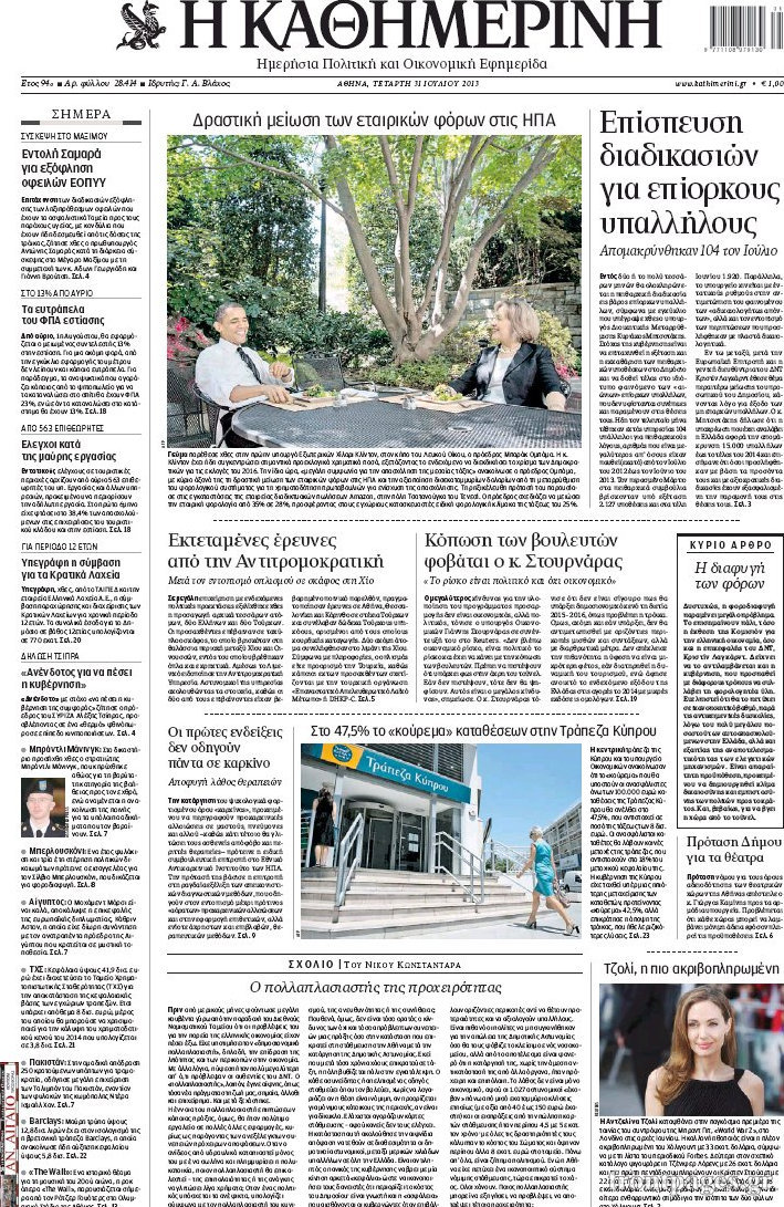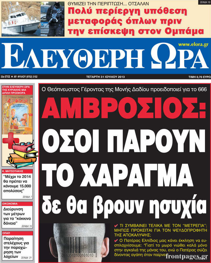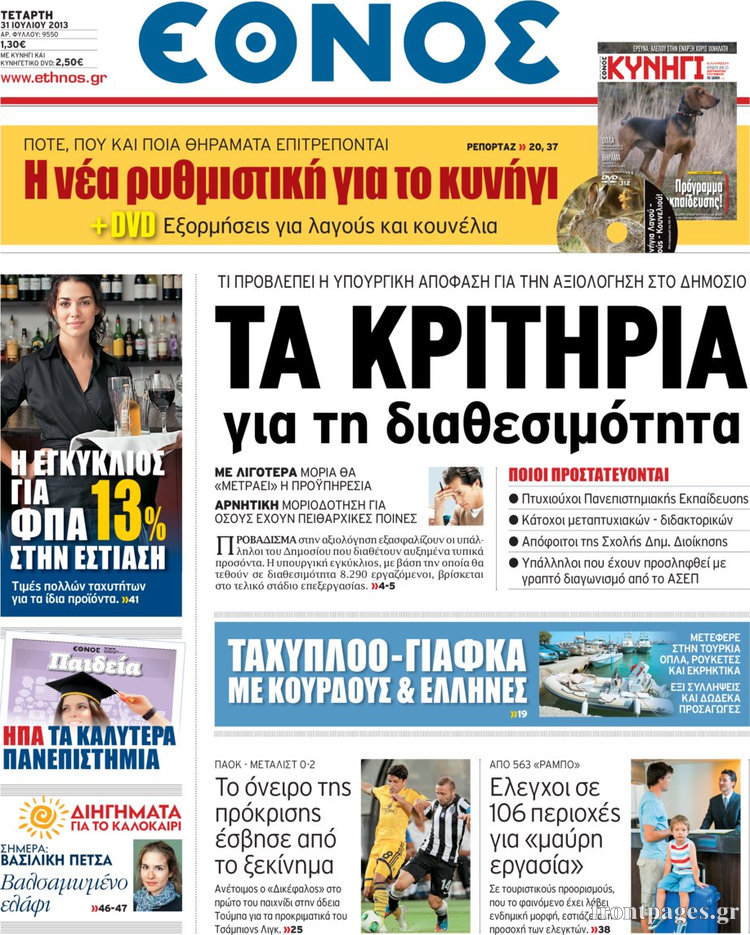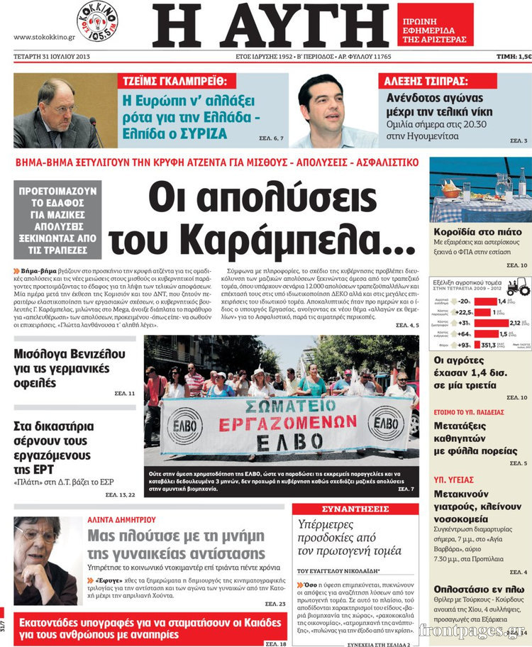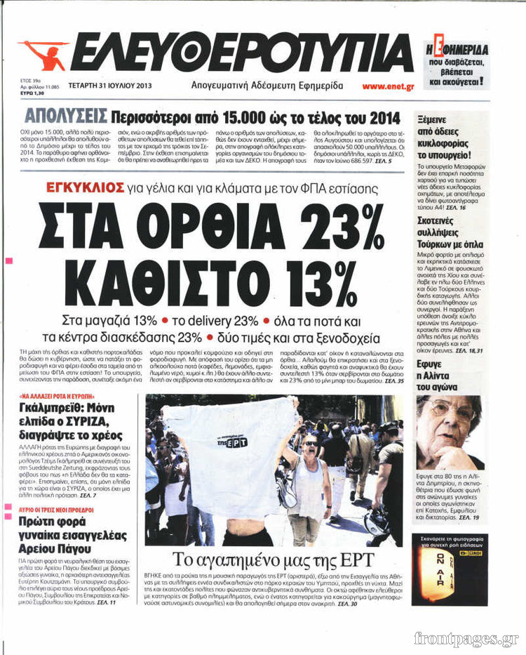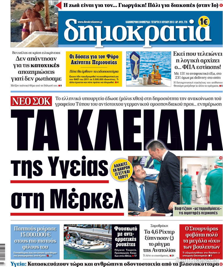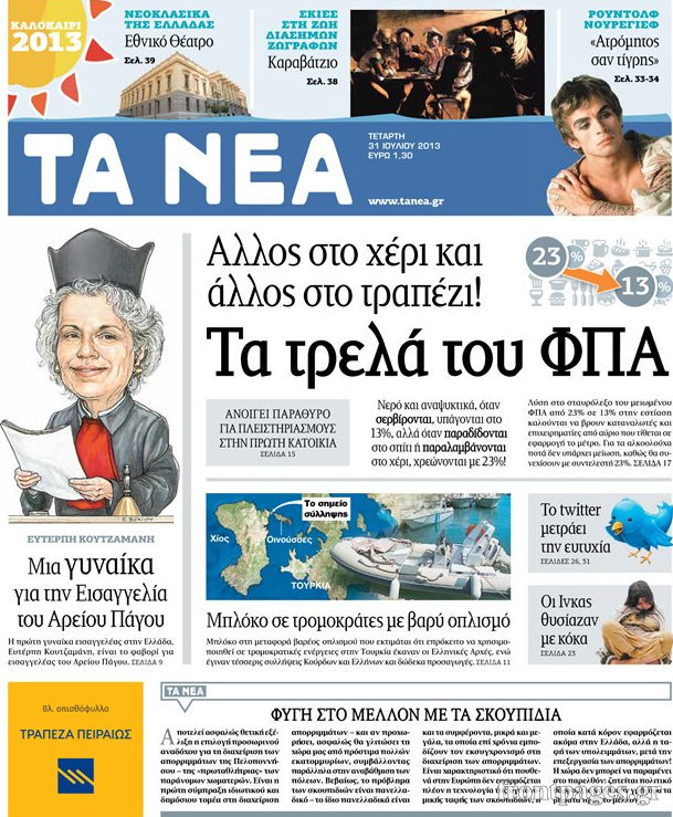 Oι πολιτικές εφημερίδες Enikos Newsroom 08:04, Τετάρτη 31 Ιουλίου 2013 Media Oι πολιτικές εφημερίδες Τα πρωτοσέλιδα των πολιτικών εφημερίδων. ΕΦΗΜΕΡΙΔΕΣ ΠΟΛΙΤΙΚΕΣ ΕΦΗΜΕΡΙΔΕΣ Μοιράσου το: σχολίασε κι εσύ (0 σχόλια) Ακολουθήστε το enikos.gr στο Google News και μάθετε πρώτοι όλες τις ειδήσεις Δείτε όλες τις τελευταίες ειδήσεις από την Ελλάδα και τον Κόσμο στο enikos.gr Ειδήσεις Ροή Ειδήσεων 53 λεπτά πριν Χριστούγεννα στα μπλόκα: Επιμένουν στις κινητοποιήσεις τους οι αγρότες – Ανοίγουν τα διόδια το Σαββατοκύριακο 1 ώρα πριν Ουκρανία: Η άνευ προηγουμένου επίθεση σε ρωσικό τάνκερ στη Μεσόγειο και το μήνυμα προς στον Πούτιν – Το «μακρύ χέρι» του Κιέβου 30 λεπτά πριν Πούτιν: Τα μηνύματα σε Ευρώπη και ΝΑΤΟ από το μαραθώνιο «σόου» του – Η απαίτηση για «σεβασμό» και η ειρήνη «με τους όρους» της Μόσχας 1 ώρα πριν Τραμπ: Δεν αποκλείει την πιθανότητα ενός πολέμου στη Βενεζουέλα – «Ο Μαδούρο ξέρει καλύτερα από τον καθένα τι ακριβώς θέλω» 2 ώρες πριν Συνεχίζει να προκαλεί ο Μίτσκοσκι: «Για μένα το όνομα Μακεδονία είναι ιερό» 4 ώρες πριν Πούτιν: «Ναι, είμαι ερωτευμένος» – Βίντεο από τη σπάνια προσωπική παραδοχή του 3 ώρες πριν Αριθμολογία: Οι άνθρωποι που έχουν γεννηθεί αυτές τις 4 ημερομηνίες, συχνά παρεξηγούνται – «Η καλοσύνη τους κρύβει τεράστια δύναμη» 2 ώρες πριν Ύπνος: Μια κρυφή κατάσταση του εγκεφάλου πριν από τον ύπνο μπορεί να είναι το “κλειδί” για υψηλή ευφυΐα και δημιουργικότητα 4 ώρες πριν Ξεχάστε το καθάρισμα το Σαββατοκύριακο: Ο «κανόνας των 20 λεπτών» που θα σας λύσει τα χέρια 31 λεπτά πριν Ανακαλύφθηκαν αρχαία χρυσά νομίσματα 2.200 ετών που απεικονίζουν τον θεό Απόλλωνα – Η άγνωστη σύνδεση με τον Φίλιππο Β΄ της Μακεδονίας 1 λεπτό πριν Γάζα: Ισραηλινό πλήγμα σε σχολείο που είχαν καταφύγει εκτοπισμένοι – Τουλάχιστον έξι νεκροί 16 λεπτά πριν Ολυμπιακός – Βιλερμπάν 107-84: Επιστροφή στις νίκες με… προπόνηση 21 λεπτά πριν Νέος Κόσμος: Συνελήφθη 41χρονος με ένταλμα από την Τουρκία για εμπόριο ναρκωτικών και ληστεία 30 λεπτά πριν Πούτιν: Τα μηνύματα σε Ευρώπη και ΝΑΤΟ από το μαραθώνιο «σόου» του – Η απαίτηση για «σεβασμό» και η ειρήνη «με τους όρους» της Μόσχας 31 λεπτά πριν Ανακαλύφθηκαν αρχαία χρυσά νομίσματα 2.200 ετών που απεικονίζουν τον θεό Απόλλωνα – Η άγνωστη σύνδεση με τον Φίλιππο Β΄ της Μακεδονίας ENIKOS NETWORK Το ΕΚΑΒ τιμήθηκε από την Ακαδημία Αθηνών για τα 40 χρόνια προσφοράς του Έχετε πραγματικά μεγάλη καρδιά; 10 χαρακτηριστικά όσων έχουν καλοσύνη Αναστολή μέτρων αναγκαστικής εκτέλεσης για κτηνοτρόφους που πλήττονται από την ευλογιά των αιγοπροβάτων Πλήρης επάρκεια προϊόντων στις λαϊκές της Αττικής, παρά τις αγροτικές κινητοποιήσεις – Τι απαντούν οι πωλητές Χαρτογραφώντας το «σημείο χωρίς επιστροφή»: Για πρώτη φορά αποκαλύπτεται με λεπτομέρεια το ακανθώδες όριο της ατμόσφαιρας τ... Η Google καταργεί τη λειτουργία «dark web report» – Πώς θα μπορούν οι χρήστες να διαγράφουν τα δεδομένα τους περισσότερα 22:42 , Παρασκευή 19 Δεκεμβρίου 2025 Γιώργος Γιαννόπουλος για “Το σόι σου”: “Είναι ευτυχία και ευλογία αυτή η σειρά” «Είναι ευτυχία και ευλογία η συγκυρία αυτής της σειράς», θα πει ο Γιώργος Γιαννόπουλος -ο αγαπ... 20:37 , Παρασκευή 19 Δεκεμβρίου 2025 Don’t Forget The Lyrics: Η Έλλη Κοκκίνου υποδέχεται 4 παίκτες που θα κάνουν τα πάντα για να μη χάσουν ούτε… μισή λέξη από τους στίχους Το «Don’t Forget The Lyrics» επιστρέφει απόψε, Παρασκευή 19 Δεκεμβρίου, στις 21:00 με νέο επει... 19:31 , Παρασκευή 19 Δεκεμβρίου 2025 GNTM: Απόψε ο 