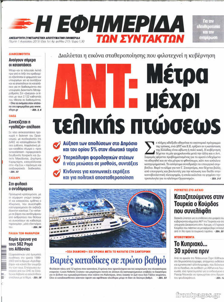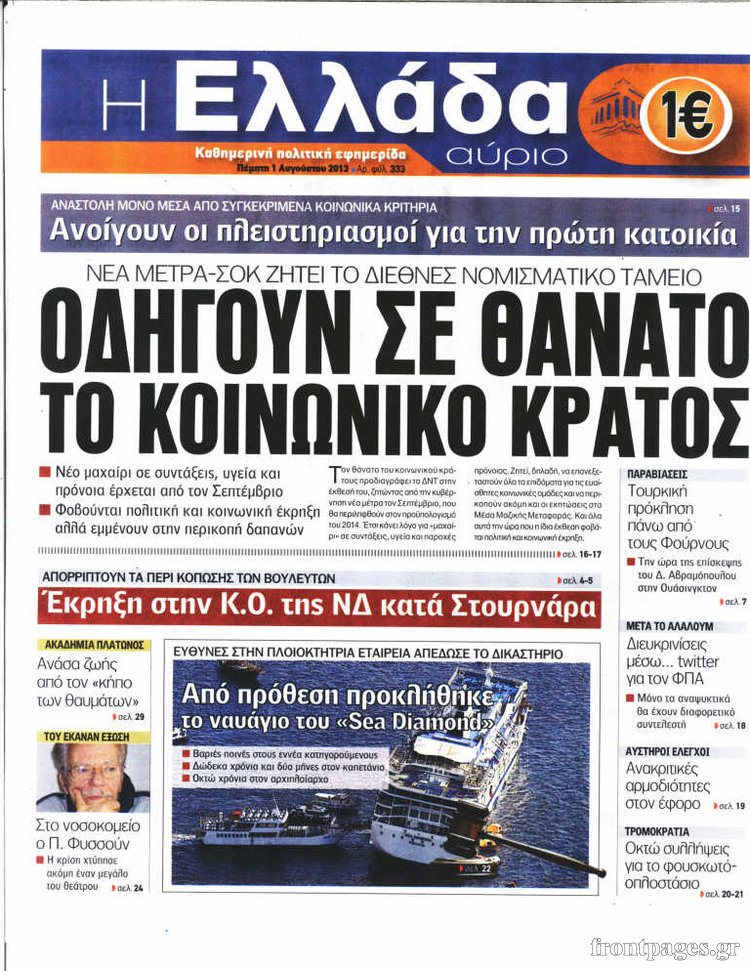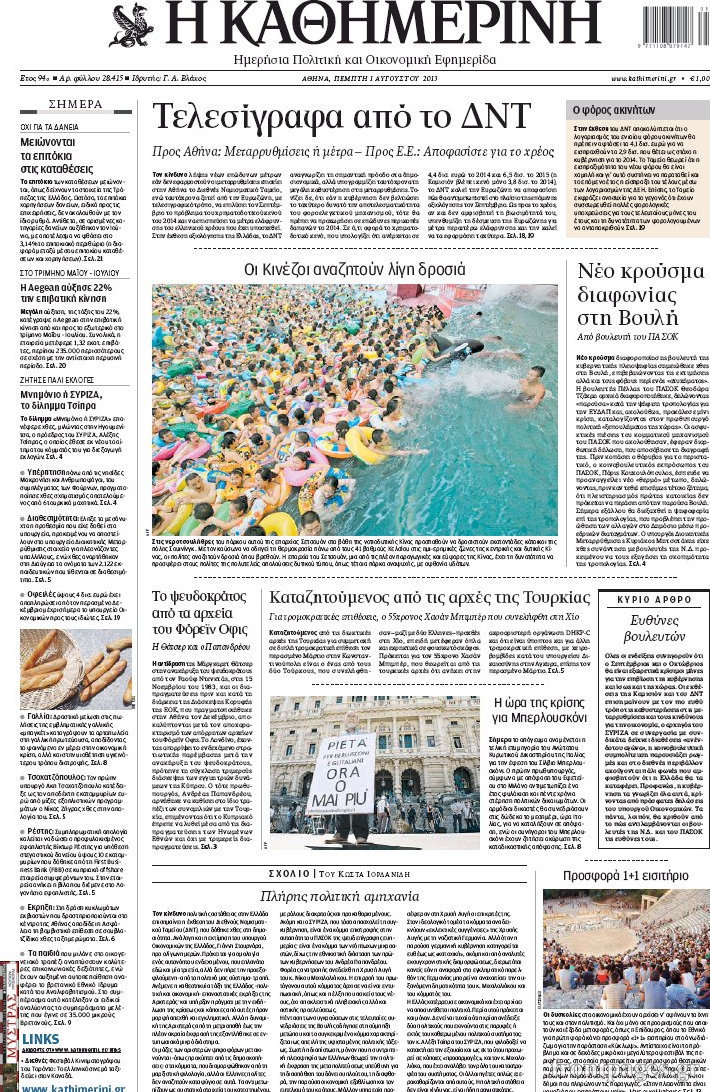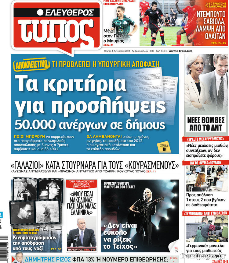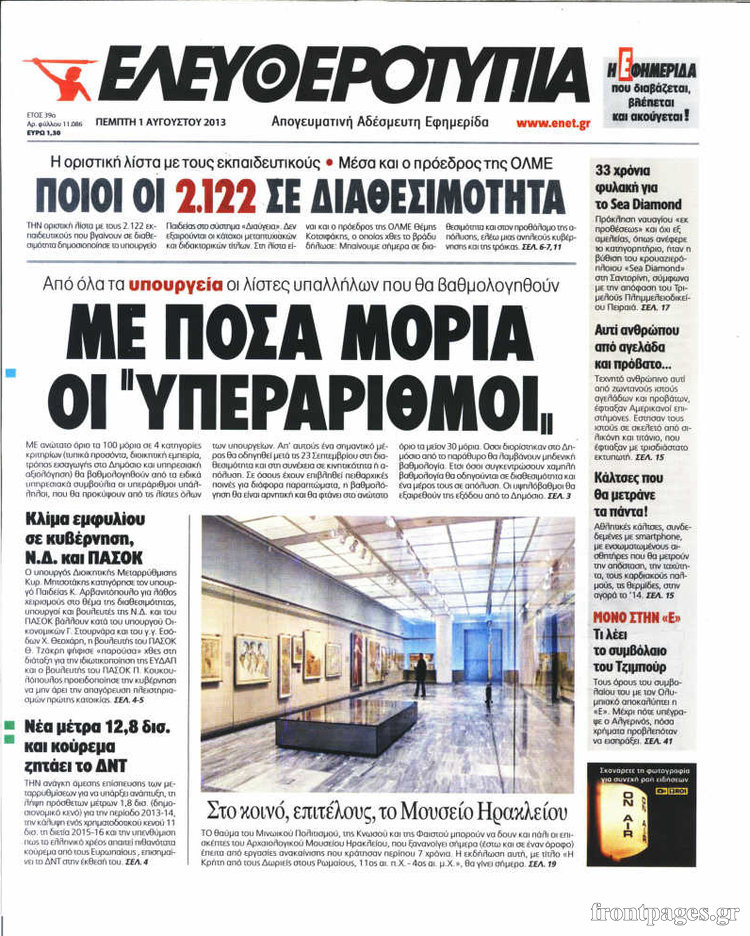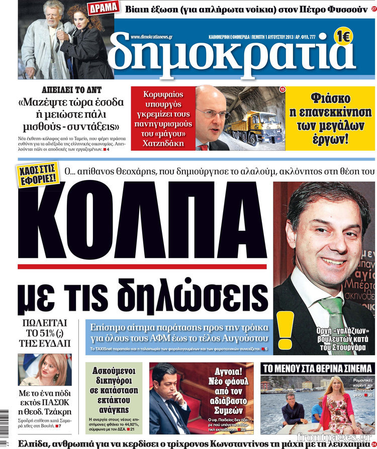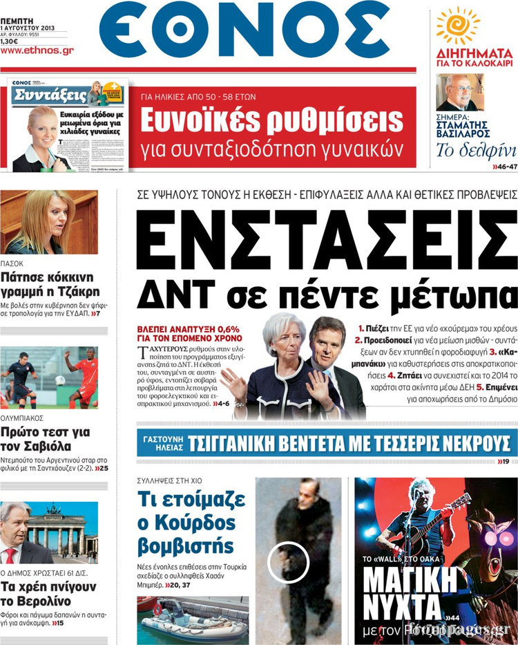 Oι πολιτικές εφημερίδες Enikos Newsroom 08:40, Πέμπτη 01 Αυγούστου 2013 Media Oι πολιτικές εφημερίδες ΕΦΗΜΕΡΙΔΕΣ ΠΟΛΙΤΙΚΕΣ ΕΦΗΜΕΡΙΔΕΣ Μοιράσου το: σχολίασε κι εσύ (0 σχόλια) Ακολουθήστε το enikos.gr στο Google News και μάθετε πρώτοι όλες τις ειδήσεις Δείτε όλες τις τελευταίες ειδήσεις από την Ελλάδα και τον Κόσμο στο enikos.gr Ειδήσεις Ροή Ειδήσεων 4 ώρες πριν Μεσόγειος: Η διαδρομή του ρωσικού τάνκερ «Qendil» και η στοχευμένη επίθεση της Ουκρανίας με drone – Ο Πούτιν προειδοποίησε για αντίποινα 23 λεπτά πριν Αγρότες: Έκλεισαν για μία ώρα την παρακαμπτήρια της Ιόνιας Οδού στη θέση Χαλίκι 2 ώρες πριν Εμπλοκή και αερομαχίες με οπλισμένα τουρκικά F-16 στο Αιγαίο 2 ώρες πριν Πούτιν: «Ναι, είμαι ερωτευμένος» – Βίντεο από τη σπάνια προσωπική παραδοχή του 27 λεπτά πριν Ανδρέας Λυκουρέντζος: Υπέβαλε την παραίτησή του ο πρόεδρος του ΕΛΓΑ, αλλά δεν έγινε δεκτή – Όλο το παρασκήνιο 37 λεπτά πριν Αριθμολογία: Οι άνθρωποι που έχουν γεννηθεί αυτές τις 4 ημερομηνίες, συχνά παρεξηγούνται – «Η καλοσύνη τους κρύβει τεράστια δύναμη» 3 ώρες πριν Μήπως έχετε χάσει τον εαυτό σας στη σχέση σας; 7 «αθόρυβες» υποχωρήσεις που μάλλον κάνατε, χωρίς να το συνειδητοποιήσετε 2 ώρες πριν Ξεχάστε το καθάρισμα το Σαββατοκύριακο: Ο «κανόνας των 20 λεπτών» που θα σας λύσει τα χέρια 5 ώρες πριν Κουίζ για την παλιά Αθήνα: Αναγνωρίζετε την περιοχή; Έχετε περάσει 100% από εκεί 8 λεπτά πριν Συνεχίζει να προκαλεί ο Μίτσκοσκι: «Για μένα το όνομα Μακεδονία είναι ιερό» 18 λεπτά πριν Ο Γιάννης Κακλέας σκηνοθετεί Βερόνικα Δαβάκη και Ιβάν Σβιτάιλο στη «Locandiera» 23 λεπτά πριν Αγρότες: Έκλεισαν για μία ώρα την παρακαμπτήρια της Ιόνιας Οδού στη θέση Χαλίκι 27 λεπτά πριν Ανδρέας Λυκουρέντζος: Υπέβαλε την παραίτησή του ο πρόεδρος του ΕΛΓΑ, αλλά δεν έγινε δεκτή – Όλο το παρασκήνιο 32 λεπτά πριν Ηράκλειο: «Ιπτάμενοι» Άγιοι Βασίληδες μοίρασαν δώρα και χαμόγελα στα παιδιά στο ΠΑΓΝΗ – Δείτε βίντεο ENIKOS NETWORK Το ΕΚΑΒ τιμήθηκε από την Ακαδημία Αθηνών για τα 40 χρόνια προσφοράς του Έχετε πραγματικά μεγάλη καρδιά; 10 χαρακτηριστικά όσων έχουν καλοσύνη Έρχονται νέες προσλήψεις σε Δήμο – Όλες οι λεπτομέρειες Επίδομα παιδιού: Πότε ανοίγει ξανά η πλατφόρμα για τις αιτήσεις Χαρτογραφώντας το «σημείο χωρίς επιστροφή»: Για πρώτη φορά αποκαλύπτεται με λεπτομέρεια το ακανθώδες όριο της ατμόσφαιρας τ... Η Google καταργεί τη λειτουργία «dark web report» – Πώς θα μπορούν οι χρήστες να διαγράφουν τα δεδομένα τους περισσότερα 20:37 , Παρασκευή 19 Δεκεμβρίου 2025 Don’t Forget The Lyrics: Η Έλλη Κοκκίνου υποδέχεται 4 παίκτες που θα κάνουν τα πάντα για να μη χάσουν ούτε… μισή λέξη από τους στίχους Το «Don’t Forget The Lyrics» επιστρέφει απόψε, Παρασκευή 19 Δεκεμβρίου, στις 21:00 με νέο επει... 19:31 , Παρασκευή 19 Δεκεμβρίου 2025 GNTM: Απόψε ο μεγάλος τελικός για τους 4 φιναλίστ Έπειτα από μήνες γεμάτους μόδα, δημιουργία και έντονες αναμετρήσεις, το GNTM 2025 κορυφώνεται,... 18:11 , Παρασκευή 19 Δεκεμβρίου 2025 Το σόι σου: Ο Άρης έρχεται στην Ελλάδα για τις γιορτές των Χριστουγέννων – Τι θα δούμε στο αποψινό εορταστικό επεισόδιο Ένα απολαυστικό, εορταστικό επεισόδιο της σειράς “Το σόι σου”, γεμάτο ευτράπελα αλ... 15:15 , Παρασκευή 19 Δεκεμβρίου 2025 Την Κυριακή με τη Realnews: Ό,τι και αν αγοράσεις, σκανάρεις και κερδίζεις! Την Κυριακή με τη Realnews: Ό,τι και αν αγοράσεις, σκανάρεις και κερδίζεις! Με το PADU app, το... ΤΕΛΕΥΤΑΙΕΣ ΕΙΔΗΣΕΙΣ 8 λεπτά πριν Συνεχίζει να προκαλεί ο Μίτσκοσκι: «Για μένα το όνομα... 18 λεπτά πριν Ο Γιάννης Κακλέας σκηνοθετεί Β
