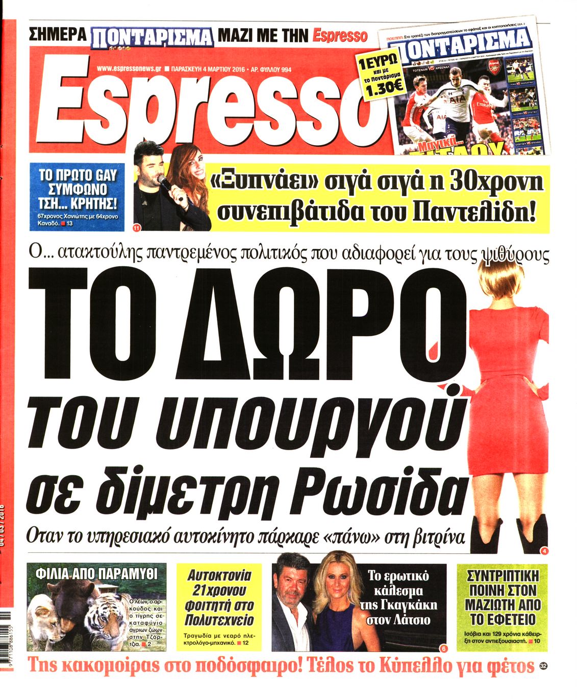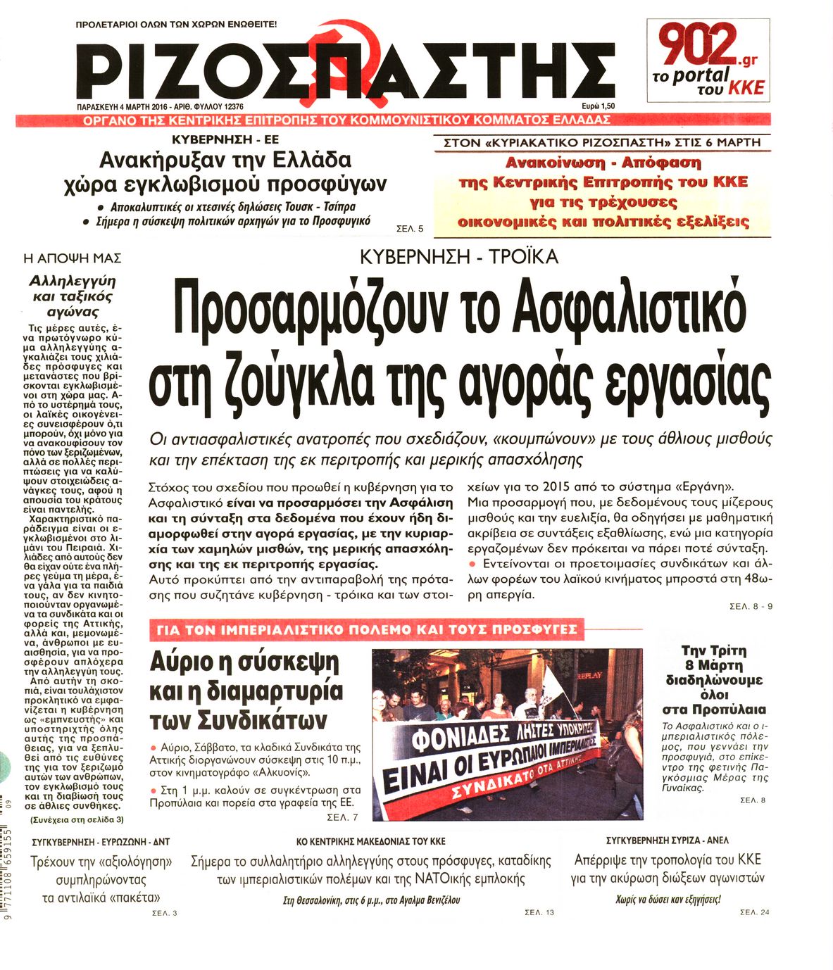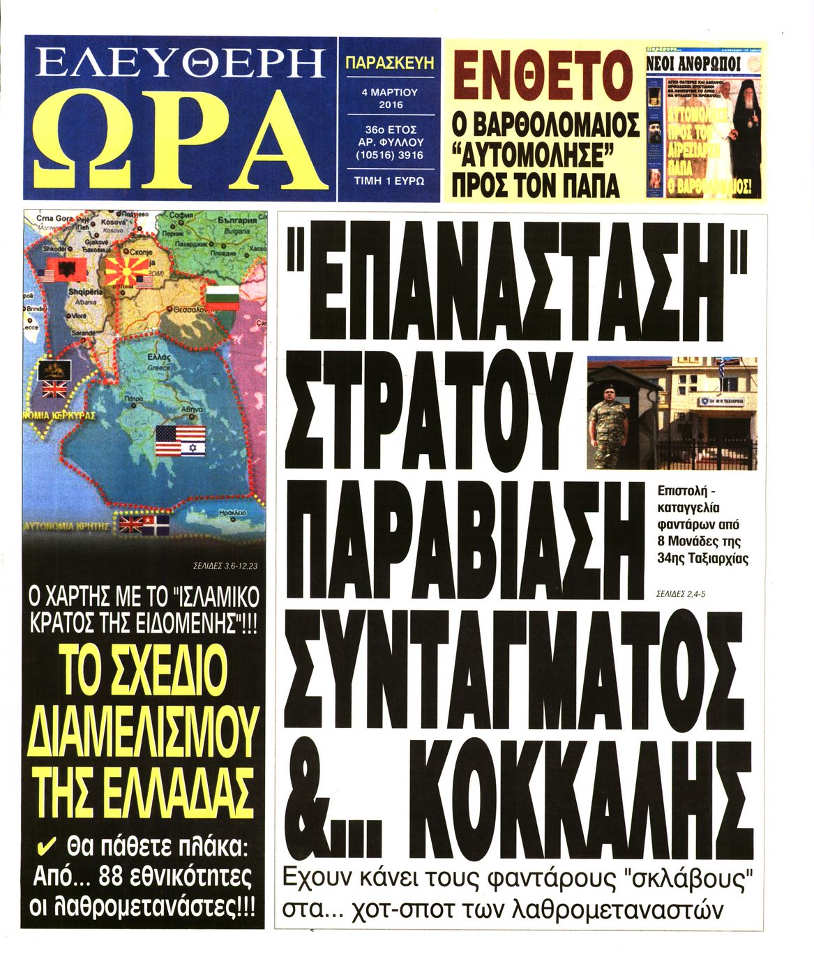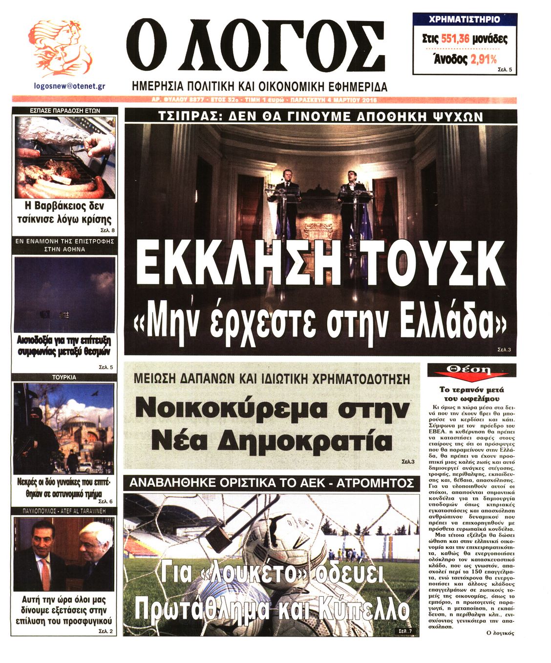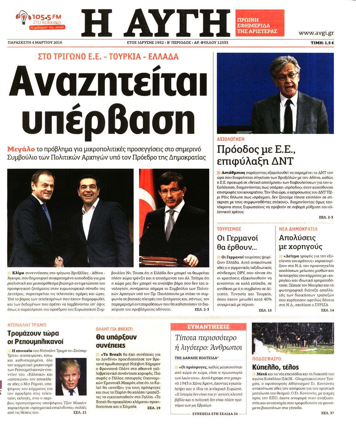 Οι πολιτικές εφημερίδες 4/3/2016 Enikos Newsroom 06:23, Παρασκευή 04 Μαρτίου 2016 Media Διαβάστε τα σημερινά πρωτοσέλιδα των πολιτικών εφημερίδων: ΠΟΛΙΤΙΚΕΣ ΕΦΗΜΕΡΙΔΕΣ ΠΡΩΤΟΣΕΛΙΔΑ Μοιράσου το: σχολίασε κι εσύ (0 σχόλια) Ακολουθήστε το enikos.gr στο Google News και μάθετε πρώτοι όλες τις ειδήσεις Δείτε όλες τις τελευταίες ειδήσεις από την Ελλάδα και τον Κόσμο στο enikos.gr Ειδήσεις Ροή Ειδήσεων 2 ώρες πριν Χριστούγεννα στα μπλόκα: Επιμένουν στις κινητοποιήσεις τους οι αγρότες – Ανοίγουν τα διόδια το Σαββατοκύριακο 3 ώρες πριν Ουκρανία: Η άνευ προηγουμένου επίθεση σε ρωσικό τάνκερ στη Μεσόγειο και το μήνυμα προς στον Πούτιν – Το «μακρύ χέρι» του Κιέβου 2 ώρες πριν Πούτιν: Τα μηνύματα σε Ευρώπη και ΝΑΤΟ από το μαραθώνιο «σόου» του – Η απαίτηση για «σεβασμό» και η ειρήνη «με τους όρους» της Μόσχας 3 ώρες πριν Τραμπ: Δεν αποκλείει την πιθανότητα ενός πολέμου στη Βενεζουέλα – «Ο Μαδούρο ξέρει καλύτερα από τον καθένα τι ακριβώς θέλω» 3 ώρες πριν Συνεχίζει να προκαλεί ο Μίτσκοσκι: «Για μένα το όνομα Μακεδονία είναι ιερό» 2 ώρες πριν Ανακαλύφθηκαν αρχαία χρυσά νομίσματα 2.200 ετών που απεικονίζουν τον θεό Απόλλωνα – Η άγνωστη σύνδεση με τον Φίλιππο Β΄ της Μακεδονίας 3 ώρες πριν Ύπνος: Μια κρυφή κατάσταση του εγκεφάλου πριν από τον ύπνο μπορεί να είναι το “κλειδί” για υψηλή ευφυΐα και δημιουργικότητα 4 ώρες πριν Αριθμολογία: Οι άνθρωποι που έχουν γεννηθεί αυτές τις 4 ημερομηνίες, συχνά παρεξηγούνται – «Η καλοσύνη τους κρύβει τεράστια δύναμη» 5 ώρες πριν Ξεχάστε το καθάρισμα το Σαββατοκύριακο: Ο «κανόνας των 20 λεπτών» που θα σας λύσει τα χέρια 19 λεπτά πριν Φαίη Σκορδά: «Παλιότερα τα κομπλιμέντα τα προσπερνούσα, τώρα τα έχω ανάγκη» 34 λεπτά πριν Βασίλης Σπανούλης: Δεν εμφανίστηκε ούτε ένας δημοσιογράφος στην συνέντευξη Τύπου – «Καλησπέρα στον… κανέναν», δείτε βίντεο 46 λεπτά πριν Πόλεμος στην Ουκρανία: Εφτά νεκροί από ρωσική πυραυλική επίθεση στο λιμάνι της Οδησσού 49 λεπτά πριν ΗΠΑ: Η κυβέρνηση του Ντόναλντ Τραμπ άρχισε να δημοσιοποιεί τα αρχεία Έπσταϊν 1 ώρα πριν Σάμος: Άνοιξε το μπλόκο των αγροτών στον κόμβο Κοκκαρίου – Σε νέα συνεδρίαση θα καθορίσουν την στάση τους ENIKOS NETWORK Το ΕΚΑΒ τιμήθηκε από την Ακαδημία Αθηνών για τα 40 χρόνια προσφοράς του Έχετε πραγματικά μεγάλη καρδιά; 10 χαρακτηριστικά όσων έχουν καλοσύνη Αναστολή μέτρων αναγκαστικής εκτέλεσης για κτηνοτρόφους που πλήττονται από την ευλογιά των αιγοπροβάτων Πλήρης επάρκεια προϊόντων στις λαϊκές της Αττικής, παρά τις αγροτικές κινητοποιήσεις – Τι απαντούν οι πωλητές Χαρτογραφώντας το «σημείο χωρίς επιστροφή»: Για πρώτη φορά αποκαλύπτεται με λεπτομέρεια το ακανθώδες όριο της ατμόσφαιρας τ... Η Google καταργεί τη λειτουργία «dark web report» – Πώς θα μπορούν οι χρήστες να διαγράφουν τα δεδομένα τους περισσότερα 22:42 , Παρασκευή 19 Δεκεμβρίου 2025 Γιώργος Γιαννόπουλος για “Το σόι σου”: “Είναι ευτυχία και ευλογία αυτή η σειρά” «Είναι ευτυχία και ευλογία η συγκυρία αυτής της σειράς», θα πει ο Γιώργος Γιαννόπουλος -ο αγαπ... 20:37 , Παρασκευή 19 Δεκεμβρίου 2025 Don’t Forget The Lyrics: Η Έλλη Κοκκίνου υποδέχεται 4 παίκτες που θα κάνουν τα πάντα για να μη χάσουν ούτε… μισή λέξη από τους στίχους Το «Don’t Forget The Lyrics» επιστρέφει απόψε, Παρασκευή 19 Δεκεμβρίου, στις 21:00 με νέο επει... 19:31 , Παρασκευή 19 Δεκεμβρίου 2025 GNTM: Απόψε ο μεγάλος τελικός για τους 4 φιναλίστ Έπειτα από μήνες γεμάτους μόδα, δημιουργία και έντονες αναμετρήσεις, το GNTM 2025 κορυφώνεται,... 18:11 , Παρασ