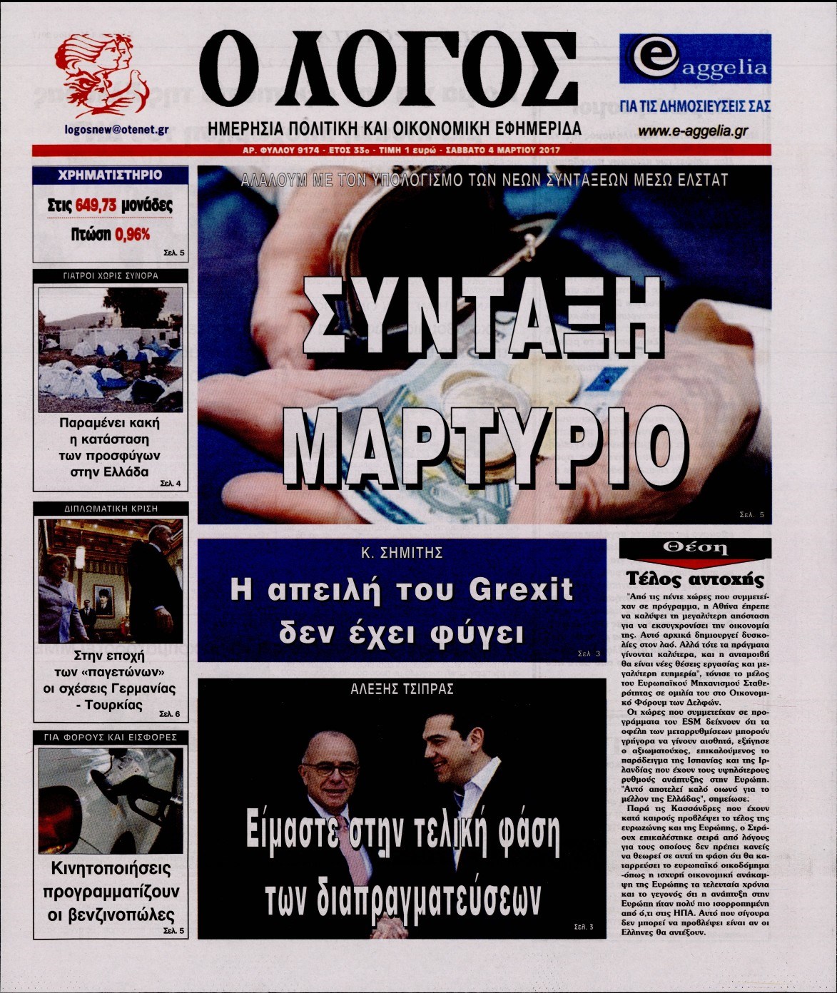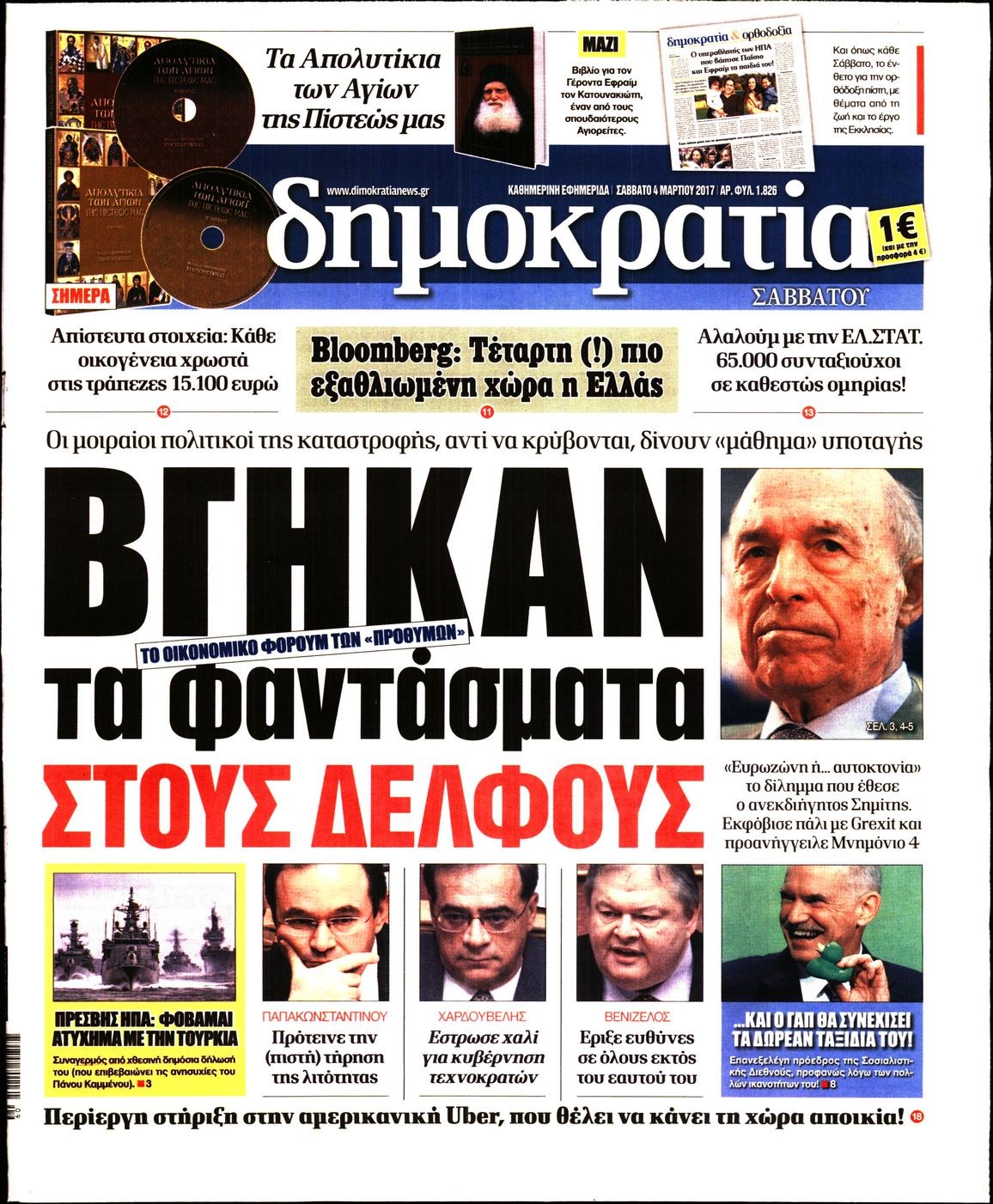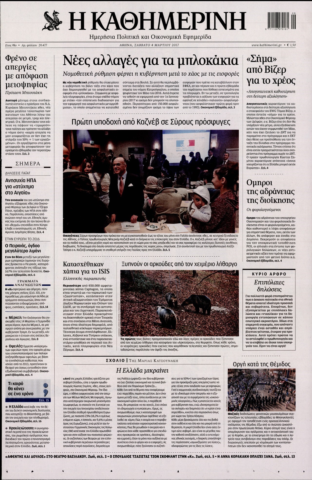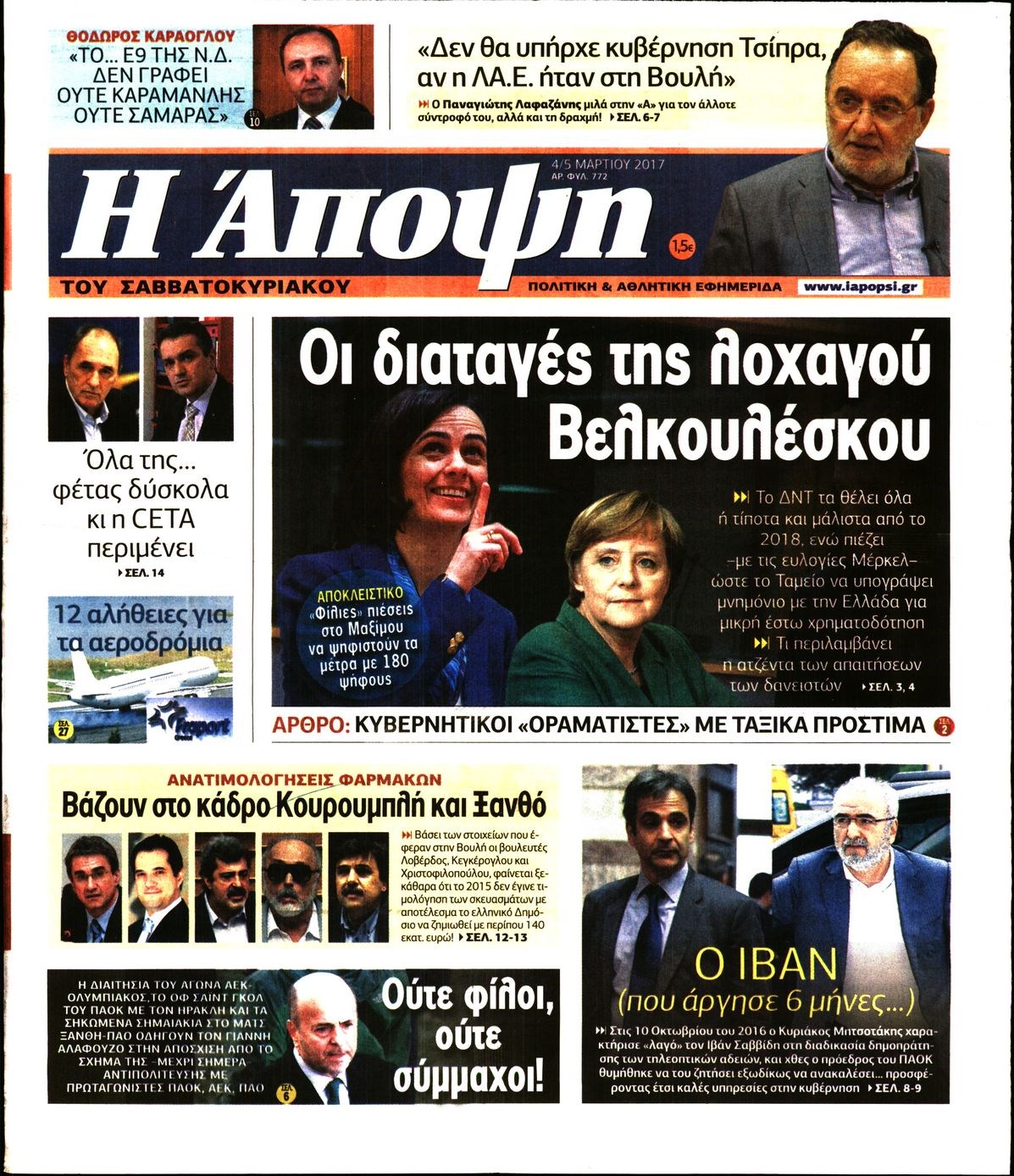 Οι πολιτικές εφημερίδες 4/3/2017 Enikos Newsroom 07:05, Σάββατο 04 Μαρτίου 2017 Media Διαβάστε τα σημερινά πρωτοσέλιδα των πολιτικών εφημερίδων: ΠΟΛΙΤΙΚΕΣ ΕΦΗΜΕΡΙΔΕΣ ΠΡΩΤΟΣΕΛΙΔΑ Μοιράσου το: σχολίασε κι εσύ (0 σχόλια) Ακολουθήστε το enikos.gr στο Google News και μάθετε πρώτοι όλες τις ειδήσεις Δείτε όλες τις τελευταίες ειδήσεις από την Ελλάδα και τον Κόσμο στο enikos.gr Ειδήσεις Ροή Ειδήσεων 6 ώρες πριν Εκτός ευρωομάδας ΣΥΡΙΖΑ ο Νίκος Παππάς μετά την επίθεση στον δημοσιογράφο Νίκο Γιαννόπουλο – Η μήνυση και οι νέες δηλώσεις 6 ώρες πριν «Αγριεύουν» οι αγρότες: «Δεν συντρέχει λόγος συνάντησης με τον πρωθυπουργό» – Ώρα αποφάσεων στη σύσκεψη της Πέμπτης 6 ώρες πριν Κυψέλη: Χωρίς την οικογένειά της δίπλα της απολογήθηκε η 16χρονη – «Της είχε επιτεθεί κάποιος για να την βιάσει, φοβήθηκε και κυκλοφορούσε με μαχαίρι» 6 ώρες πριν Politico: Το πρόβλημα της Ευρώπης δεν είναι το Βέλγιο αλλά ο Ντόναλντ Τραμπ 8 ώρες πριν Αλεξανδρούπολη: Πολυοργανική ανεπάρκεια λόγω υποσιτισμού η αιτία θανάτου του 3χρονου αγοριού 6 ώρες πριν Μυστήριο με τεράστιες κυκλικές πέτρες 200 κιλών – Ανακαλύφθηκαν τυχαία κατά τη διάρκεια οδικών έργων και κανείς δεν ξέρει από πού προέρχονται 7 ώρες πριν Ύπνος: Ειδικός εξηγεί τον πραγματικό λόγο που ξυπνάτε στις 4 τα ξημερώματα – Ο ρόλος των ορμονών και του κιρκάδιου ρυθμού 8 ώρες πριν Αριθμολογία: Οι άνθρωποι που έχουν γεννηθεί αυτές τις 4 ημερομηνίες, είναι τρυφεροί και αγαπούν ανιδιοτελώς 20 ώρες πριν 20 χρόνια τα Χριστούγεννα ξεκινούν στα Public με μεγάλη ποικιλία σε δώρα! 2 λεπτά πριν Μιχάλης Αεράκης: «Της είπα “θέλω να κάνουμε σπιτικό, αλλά υπάρχουν τρεις προϋποθέσεις…”» 10 λεπτά πριν Αυστραλία: Κυβερνητική δέσμευση για αυστηρότερα μέτρα κατά της υποκίνησης μίσους 26 λεπτά πριν Ντόναλντ Τραμπ: Παρουσίασε τα επιτεύγματα της διακυβέρνησής του – Σκληρή κριτική στον Τζο Μπάιντεν 40 λεπτά πριν Κτηνοτρόφοι: Με δάκρυα στα μάτια ζουν τον εφιάλτη των άδειων στάβλων – «Καταστράφηκαν οι ζωές μας» 55 λεπτά πριν Νέο αμερικανικό πλήγμα σε σκάφος που φέρεται να μετέφερε ναρκωτικά στον Ειρηνικό – Τέσσερις νεκροί ENIKOS NETWORK Αϋπνία: Το κόλπο που θα σας βοηθήσει να κοιμηθείτε απόψε – Είναι απλό και έχει αποτέλεσμα 2,6 εκατομμύρια πολίτες έχουν ήδη εμβολιαστεί κατά της γρίπης ΕΛΣΤΑΤ: Τι δείχνουν τα νέα στοιχεία για τις ηλεκτρονικές παραγγελίες των επιχειρήσεων ΚΕΠΕ: Οι 3 διακριτές συμβολές των ΜμΕ και της μεταποίησης στην ελληνική οικονομία Χαρτογραφώντας το «σημείο χωρίς επιστροφή»: Για πρώτη φορά αποκαλύπτεται με λεπτομέρεια το ακανθώδες όριο της ατμόσφαιρας τ... Η Google καταργεί τη λειτουργία «dark web report» – Πώς θα μπορούν οι χρήστες να διαγράφουν τα δεδομένα τους περισσότερα 02:30 , Πέμπτη 18 Δεκεμβρίου 2025 Αλ Τσαντίρι Νιουζ: Η κόρη της Πάολα στο κοινό – Η ατάκα Λαζόπουλου που την έκανε να «κοκκινήσει» Γιορτινή διάθεση και ευχάριστες στιγμές γέμισε η αποψινή, τελευταία για το 2025, εκπομπή του «... 22:24 , Τετάρτη 17 Δεκεμβρίου 2025 Το Σπίτι Δίπλα Στο Ποτάμι: Σε κίνδυνο η υγεία του Απόστολου – Τι θα δούμε απόψε “Το Σπίτι Δίπλα στο Ποτάμι” ξετυλίγει το νήμα της ζωής των πέντε αδελφών με καταισ... 21:14 , Τετάρτη 17 Δεκεμβρίου 2025 Παιχνίδια Εκδίκησης: Θα καταφέρει ο Χρήστος να κλονίσει την εμπιστοσύνη της Μάγιας απέναντι στον Άγη; Τα «Παιχνίδια Εκδίκησης» έρχονται απόψε στις 22:30, στον Αντ1, με το τελευταίο επεισόδιο της χ... 20:57 , Τετάρτη 17 Δεκεμβρίου 2025 Άγιος Έρωτας: Η Χλόη καταθέτει εναντίον του πατέρα της κ
