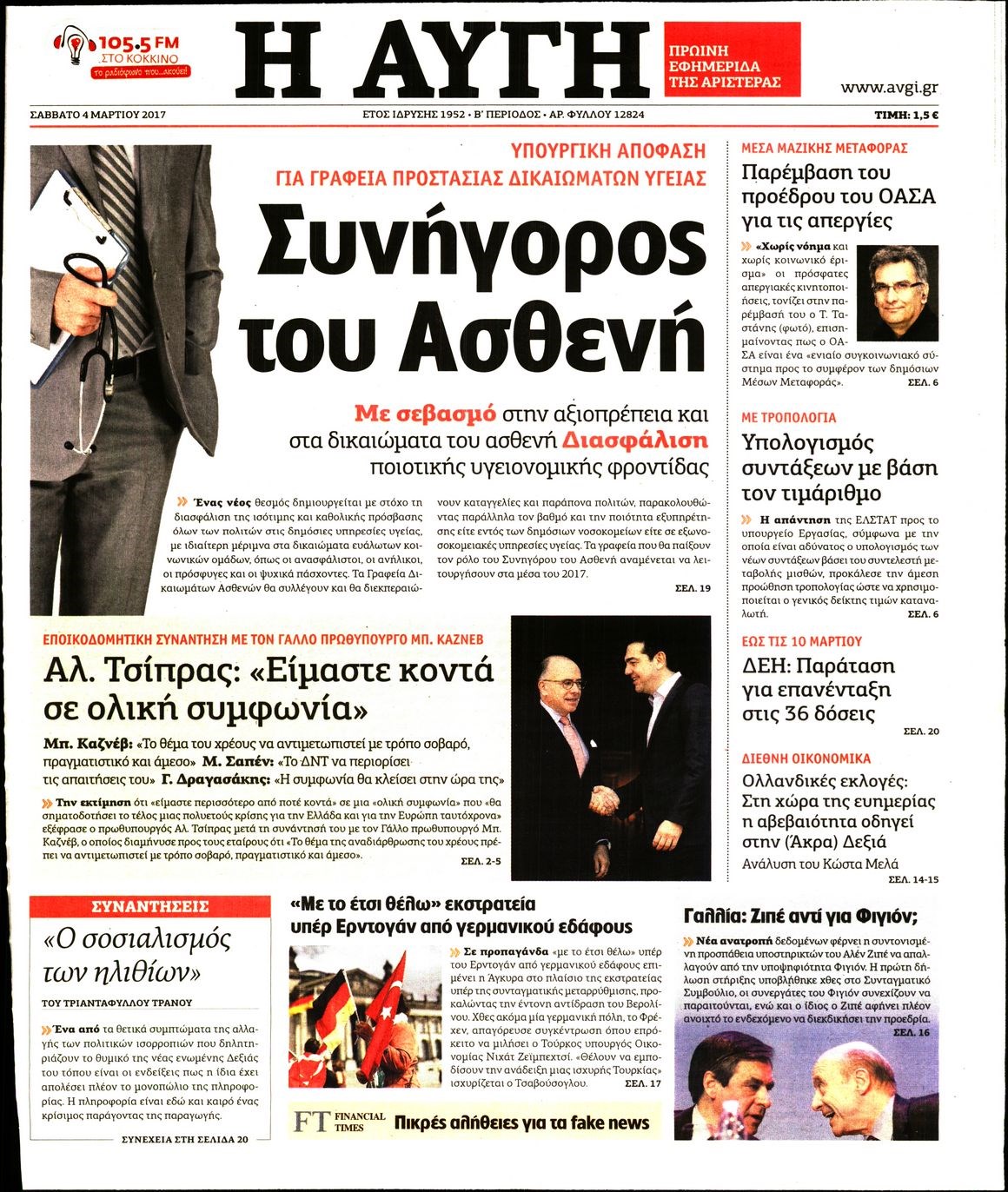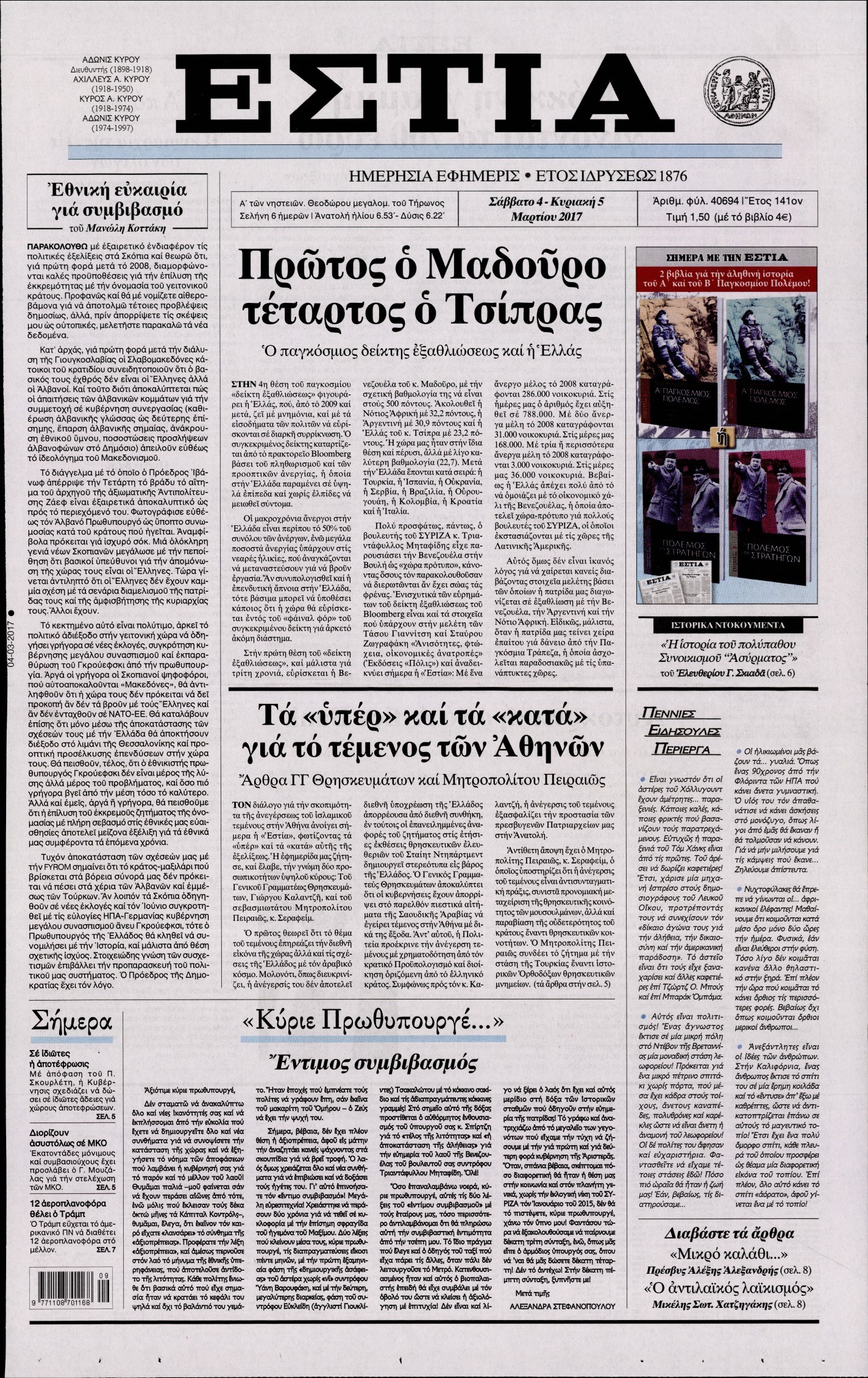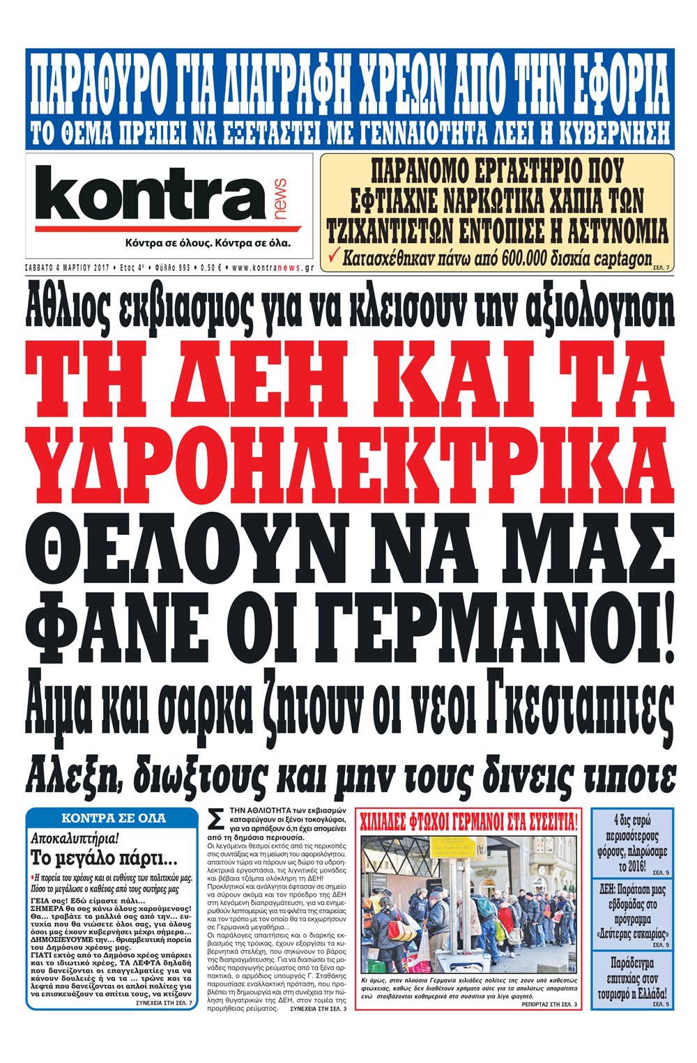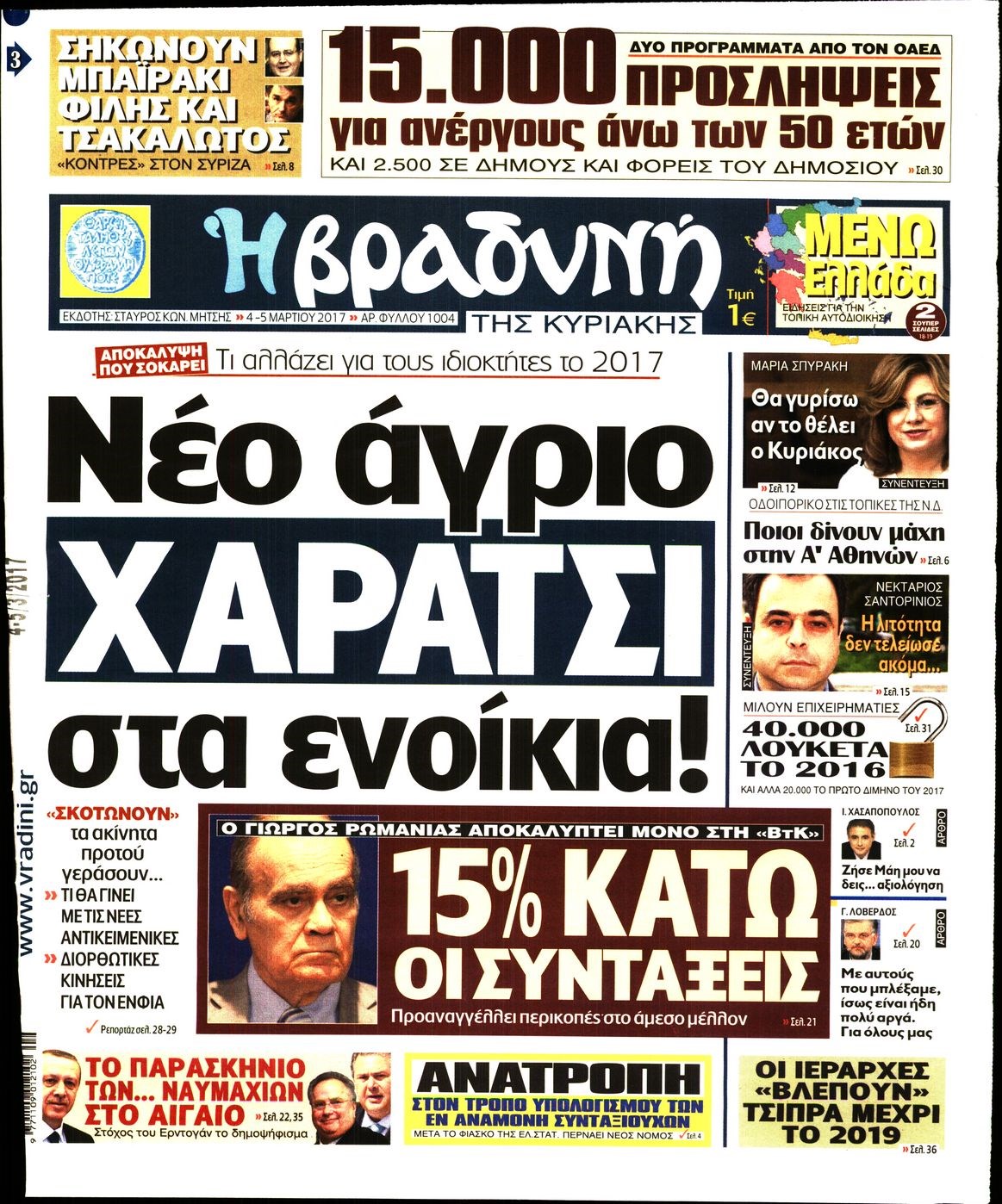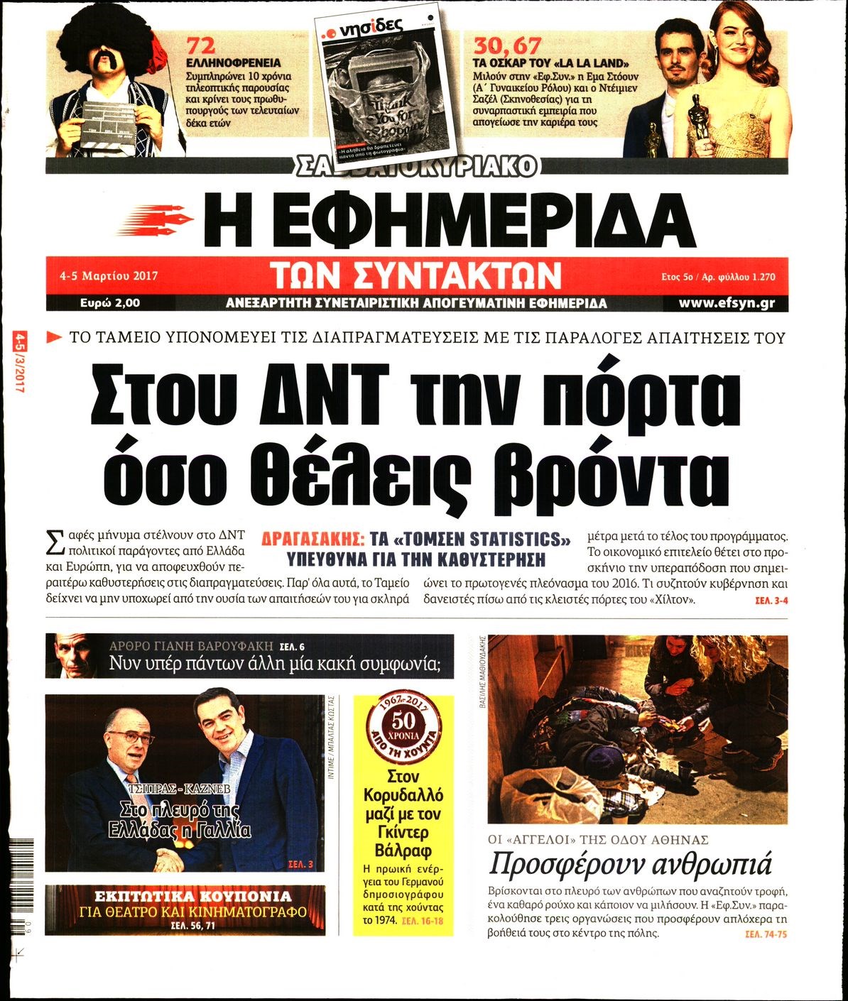 Οι πολιτικές εφημερίδες 4/3/2017 Enikos Newsroom 07:05, Σάββατο 04 Μαρτίου 2017 Media Διαβάστε τα σημερινά πρωτοσέλιδα των πολιτικών εφημερίδων: ΠΟΛΙΤΙΚΕΣ ΕΦΗΜΕΡΙΔΕΣ ΠΡΩΤΟΣΕΛΙΔΑ Μοιράσου το: σχολίασε κι εσύ (0 σχόλια) Ακολουθήστε το enikos.gr στο Google News και μάθετε πρώτοι όλες τις ειδήσεις Δείτε όλες τις τελευταίες ειδήσεις από την Ελλάδα και τον Κόσμο στο enikos.gr Ειδήσεις Ροή Ειδήσεων 6 ώρες πριν Εκτός ευρωομάδας ΣΥΡΙΖΑ ο Νίκος Παππάς μετά την επίθεση στον δημοσιογράφο Νίκο Γιαννόπουλο – Η μήνυση και οι νέες δηλώσεις 6 ώρες πριν «Αγριεύουν» οι αγρότες: «Δεν συντρέχει λόγος συνάντησης με τον πρωθυπουργό» – Ώρα αποφάσεων στη σύσκεψη της Πέμπτης 6 ώρες πριν Κυψέλη: Χωρίς την οικογένειά της δίπλα της απολογήθηκε η 16χρονη – «Της είχε επιτεθεί κάποιος για να την βιάσει, φοβήθηκε και κυκλοφορούσε με μαχαίρι» 6 ώρες πριν Politico: Το πρόβλημα της Ευρώπης δεν είναι το Βέλγιο αλλά ο Ντόναλντ Τραμπ 8 ώρες πριν Αλεξανδρούπολη: Πολυοργανική ανεπάρκεια λόγω υποσιτισμού η αιτία θανάτου του 3χρονου αγοριού 6 ώρες πριν Μυστήριο με τεράστιες κυκλικές πέτρες 200 κιλών – Ανακαλύφθηκαν τυχαία κατά τη διάρκεια οδικών έργων και κανείς δεν ξέρει από πού προέρχονται 7 ώρες πριν Ύπνος: Ειδικός εξηγεί τον πραγματικό λόγο που ξυπνάτε στις 4 τα ξημερώματα – Ο ρόλος των ορμονών και του κιρκάδιου ρυθμού 8 ώρες πριν Αριθμολογία: Οι άνθρωποι που έχουν γεννηθεί αυτές τις 4 ημερομηνίες, είναι τρυφεροί και αγαπούν ανιδιοτελώς 20 ώρες πριν 20 χρόνια τα Χριστούγεννα ξεκινούν στα Public με μεγάλη ποικιλία σε δώρα! 2 λεπτά πριν Μιχάλης Αεράκης: «Της είπα “θέλω να κάνουμε σπιτικό, αλλά υπάρχουν τρεις προϋποθέσεις…”» 10 λεπτά πριν Αυστραλία: Κυβερνητική δέσμευση για αυστηρότερα μέτρα κατά της υποκίνησης μίσους 26 λεπτά πριν Ντόναλντ Τραμπ: Παρουσίασε τα επιτεύγματα της διακυβέρνησής του – Σκληρή κριτική στον Τζο Μπάιντεν 40 λεπτά πριν Κτηνοτρόφοι: Με δάκρυα στα μάτια ζουν τον εφιάλτη των άδειων στάβλων – «Καταστράφηκαν οι ζωές μας» 55 λεπτά πριν Νέο αμερικανικό πλήγμα σε σκάφος που φέρεται να μετέφερε ναρκωτικά στον Ειρηνικό – Τέσσερις νεκροί ENIKOS NETWORK Αϋπνία: Το κόλπο που θα σας βοηθήσει να κοιμηθείτε απόψε – Είναι απλό και έχει αποτέλεσμα 2,6 εκατομμύρια πολίτες έχουν ήδη εμβολιαστεί κατά της γρίπης ΕΛΣΤΑΤ: Τι δείχνουν τα νέα στοιχεία για τις ηλεκτρονικές παραγγελίες των επιχειρήσεων ΚΕΠΕ: Οι 3 διακριτές συμβολές των ΜμΕ και της μεταποίησης στην ελληνική οικονομία Χαρτογραφώντας το «σημείο χωρίς επιστροφή»: Για πρώτη φορά αποκαλύπτεται με λεπτομέρεια το ακανθώδες όριο της ατμόσφαιρας τ... Η Google καταργεί τη λειτουργία «dark web report» – Πώς θα μπορούν οι χρήστες να διαγράφουν τα δεδομένα τους περισσότερα 02:30 , Πέμπτη 18 Δεκεμβρίου 2025 Αλ Τσαντίρι Νιουζ: Η κόρη της Πάολα στο κοινό – Η ατάκα Λαζόπουλου που την έκανε να «κοκκινήσει» Γιορτινή διάθεση και ευχάριστες στιγμές γέμισε η αποψινή, τελευταία για το 2025, εκπομπή του «... 22:24 , Τετάρτη 17 Δεκεμβρίου 2025 Το Σπίτι Δίπλα Στο Ποτάμι: Σε κίνδυνο η υγεία του Απόστολου – Τι θα δούμε απόψε “Το Σπίτι Δίπλα στο Ποτάμι” ξετυλίγει το νήμα της ζωής των πέντε αδελφών με καταισ... 21:14 , Τετάρτη 17 Δεκεμβρίου 2025 Παιχνίδια Εκδίκησης: Θα καταφέρει ο Χρήστος να κλονίσει την εμπιστοσύνη της Μάγιας απέναντι στον Άγη; Τα «Παιχνίδια Εκδίκησης» έρχονται απόψε στις 22:30, στον Αντ1, με το τελευταίο επεισόδιο της χ... 20:57 , Τετάρτη 17 Δεκεμβρίου 2025 Άγιος Έρωτας: Η Χλόη καταθέτει εναντίον του πατέρα της κ