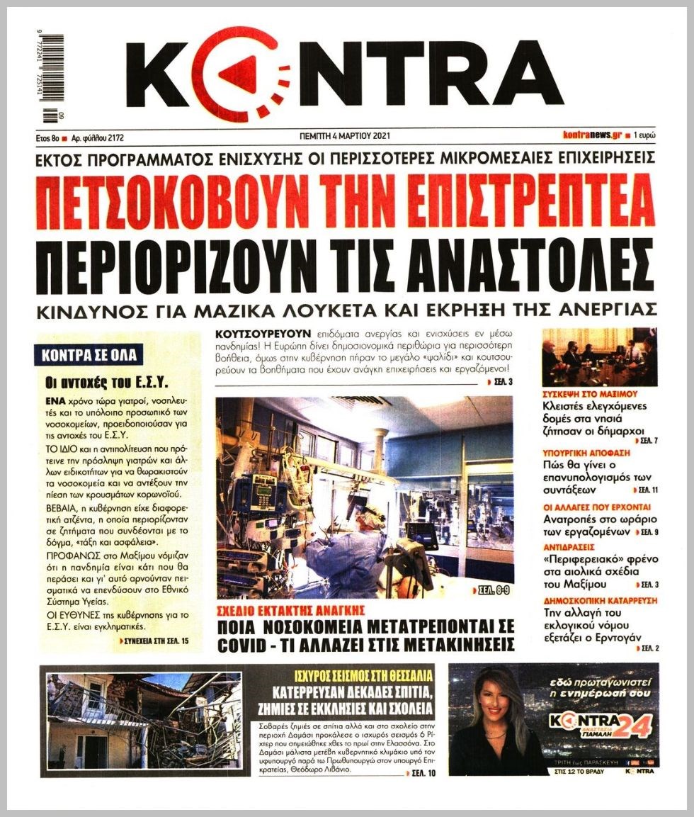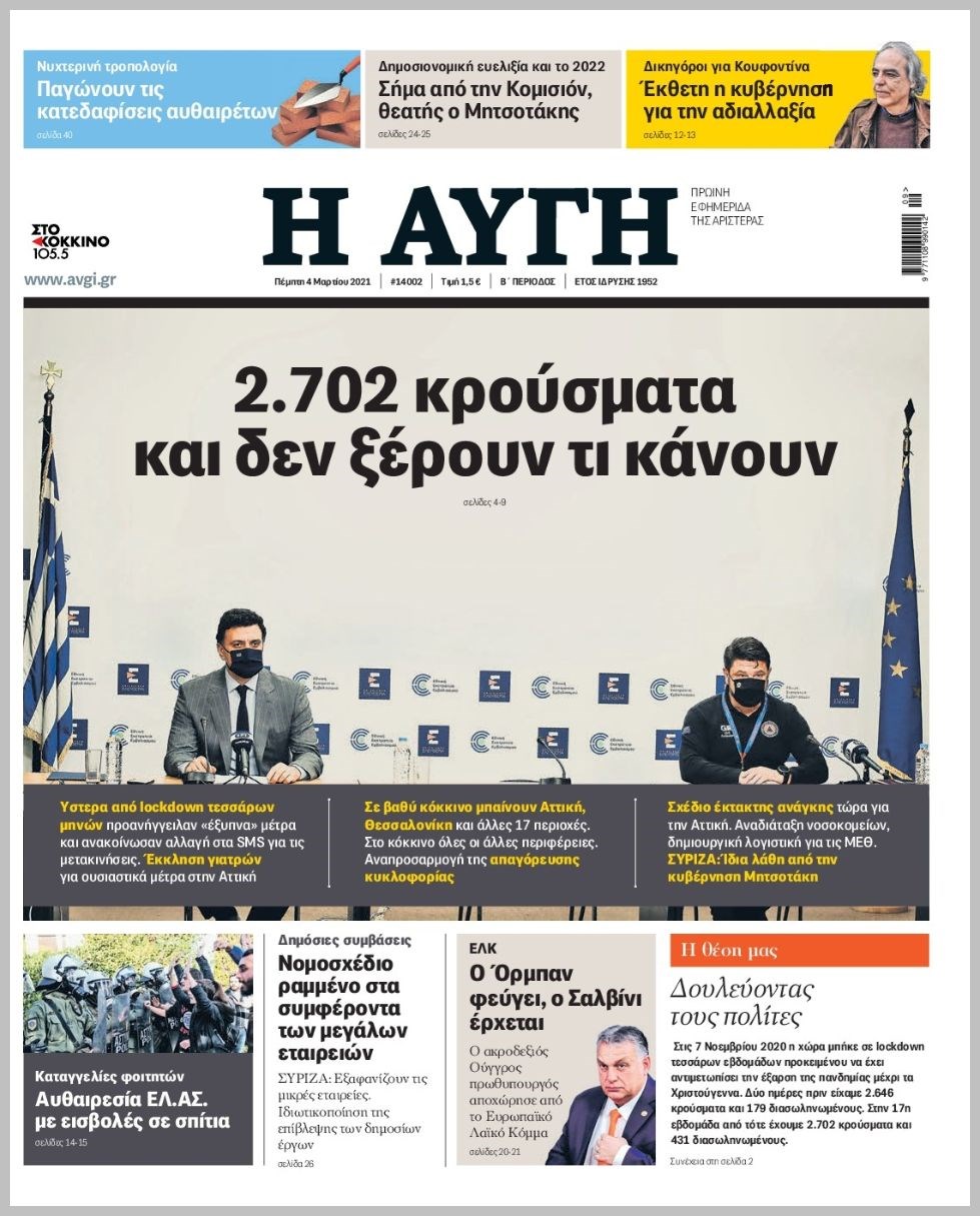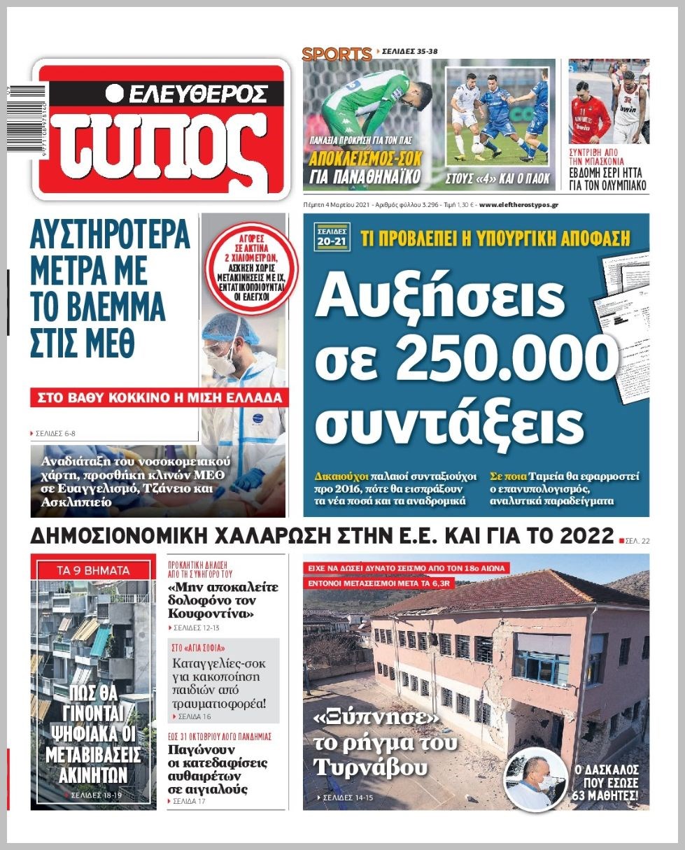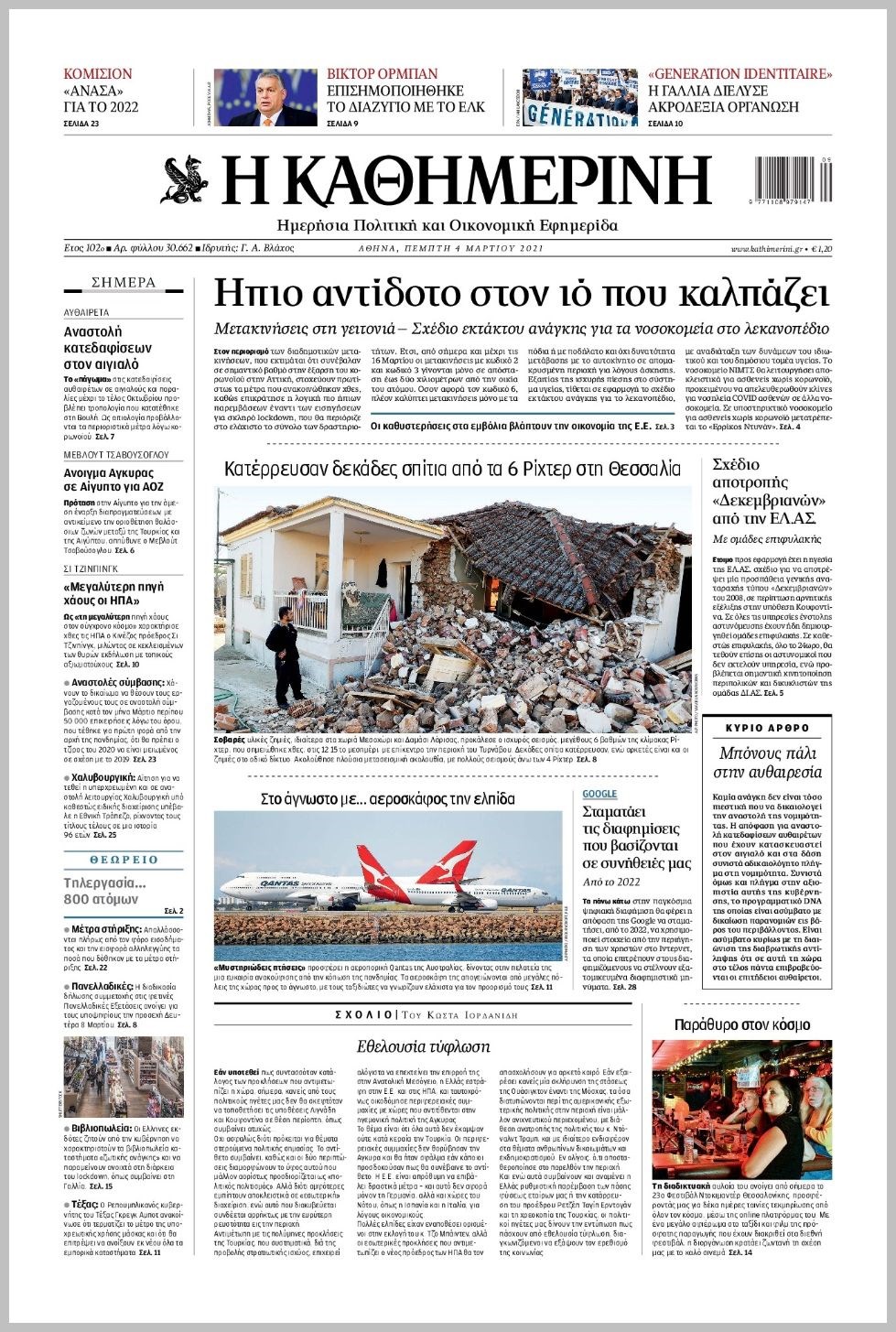 Οι πολιτικές εφημερίδες 4/3/2021 Διονύσης Νίκκας 06:09, Πέμπτη 04 Μαρτίου 2021 Media Διαβάστε τα πρωτοσέλιδα των πολιτικών εφημερίδων… ΕΦΗΜΕΡΙΔΕΣ ΠΟΛΙΤΙΚΕΣ ΕΦΗΜΕΡΙΔΕΣ ΠΡΩΤΟΣΕΛΙΔΑ Μοιράσου το: σχολίασε κι εσύ (0 σχόλια) Ακολουθήστε το enikos.gr στο Google News και μάθετε πρώτοι όλες τις ειδήσεις Δείτε όλες τις τελευταίες ειδήσεις από την Ελλάδα και τον Κόσμο στο enikos.gr Ειδήσεις Ροή Ειδήσεων 2 ώρες πριν Ζελένσκι: Μόνο οι ΗΠΑ και ο Τραμπ μπορούν να πιέσουν τη Ρωσία να βάλει τέλος στον πόλεμο 2 ώρες πριν Φοινικούντα: Προφυλακιστέος ο 30χρονος για συνέργεια στη διπλή δολοφονία – Και άλλα πρόσωπα στο «μικροσκόπιο» 3 ώρες πριν Κυριάκος Μητσοτάκης: Στην Ιερουσαλήμ την Τρίτη ο Πρωθυπουργός για την τριμερή Ελλάδας, Κύπρου, Ισραήλ – Θα συναντηθεί και με τον Αμπάς 6 ώρες πριν Πώς δρούσε το κύκλωμα που διακινούσε ναρκωτικά σε σχολεία – Υπέβαλαν σε βασανιστήρια όσους δεν τηρούσαν τους «κανόνες πειθαρχίας» 3 ώρες πριν Πάπας Λέων: Όταν έχει αϋπνίες επενδύει παραγωγικά τον χρόνο του – Ποιο παιχνίδι παίζει στο κινητό 2 ώρες πριν Αριθμολογία: Ο αριθμός του φύλακα αγγέλου σας, με βάση τον μήνα γέννησής σας – «Έτσι σας στέλνει σημάδια το σύμπαν» 3 ώρες πριν Πώς να απαλλαγείτε από τη μυρωδιά του τηγανητού φαγητού: Το μυστικό βρίσκεται στην κουζίνα σας 4 ώρες πριν Μήπως οι γιορτές σας δεν είναι τόσο τέλειες; 7 χριστουγεννιάτικες συνήθειες που μαρτυρούν ότι μια οικογένεια είναι δυσλειτουργική 14 ώρες πριν Enerwave: Το νέο «ρεύμα» στη λιανική ενέργειας που αλλάζει την εμπειρία του καταναλωτή 10 λεπτά πριν Χριστούγεννα στα μπλόκα οι αγρότες: Άνοιξαν στα διόδια και μοίρασαν προϊόντα στους πολίτες – Νέα σύσκεψη την Κυριακή στη Νίκαια 20 λεπτά πριν Ολυμπιακός – Κηφισιά 1-1: Δεύτερη σερί ισοπαλία για τους Ερυθρόλευκους – Υπό… αμφισβήτηση η κορυφή της Super League 31 λεπτά πριν Κύκλωμα διακίνησης ναρκωτικών σε σχολεία: Τηλεφωνούσαν στους ανηλίκους την ώρα του μαθήματος – Οι διάλογοι-σοκ, τα «ψευδώνυμα» και τα βασανιστήρια 40 λεπτά πριν Χαβιέρ Μιλέι: Ο πρόεδρος της Αργεντινής χαιρετίζει την «πίεση των ΗΠΑ» στη Βενεζουέλα 47 λεπτά πριν Ξένια Τσίρκοβα: Έμαθε από την τηλεόραση ότι είναι η μεγάλη νικήτρια του GNTM – Η αντίδρασή της – ΒΙΝΤΕΟ ENIKOS NETWORK Οι γυναίκες αποκαλύπτουν το πιο ελκυστικό πράγμα που μπορεί να κάνει ένας άνδρας Ομορφιά και αντιγήρανση: Ειδικοί μιλούν για συσκευές περιποίησης του δέρματος Ακύρωση ΑΦΜ για απάτες – Ποιους βάζει στο στόχαστρο η ΑΑΔΕ Ρεύμα: Πώς μπορείτε να αλλάξετε πάροχο γρήγορα και εύκολα – Τα βήματα της διαδικασίας Χαρτογραφώντας το «σημείο χωρίς επιστροφή»: Για πρώτη φορά αποκαλύπτεται με λεπτομέρεια το ακανθώδες όριο της ατμόσφαιρας τ... Η Google καταργεί τη λειτουργία «dark web report» – Πώς θα μπορούν οι χρήστες να διαγράφουν τα δεδομένα τους περισσότερα 20:30 , Σάββατο 20 Δεκεμβρίου 2025 Αυτή την Κυριακή με τη Realnews: Instyle, μαζί Drive και Realnews Geopolitics Αυτή την Κυριακή με τη Realnews: Instyle, μαζί Drive και Realnews Geopolitics Instyle Η Άννα Ρ... 20:28 , Σάββατο 20 Δεκεμβρίου 2025 Ο ΑΝΤ1 γεμίζει τις γιορτές με μουσική – Ποιους καλλιτέχνες θα απολαύσουμε Φέτος στον ΑΝΤ1 γιορτάζουμε τις νύχτες μας παρέα με αγαπημένους καλλιτέχνες και μεγάλες μουσι... 18:19 , Σάββατο 20 Δεκεμβρίου 2025 HOTΕΛ ΕΛVIRA: Η Ελβίρα μαθαίνει πως ο Χάρι μένει κρυφά στο ξενοδοχείο του Παντελή Συνεχίζονται οι εκλογές για πρόεδρο, στο νέο επεισόδιο της κωμικής σειράς του MEGA, HOTΕΛ ΕΛVI... 14:04 , Σάββατο 20 Δεκεμβρίου 2025 Η Realnews αυτής της Κυριακής (21/12/2025) Με τίτλο: «Ασπίδ