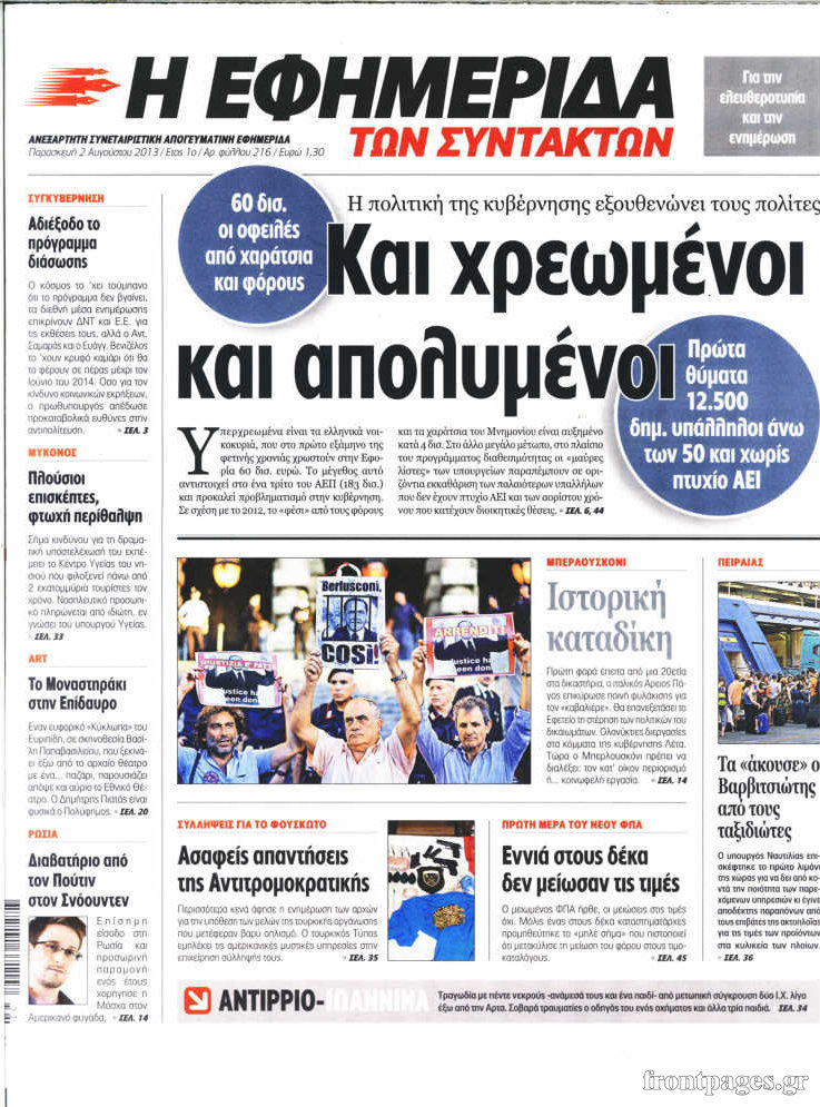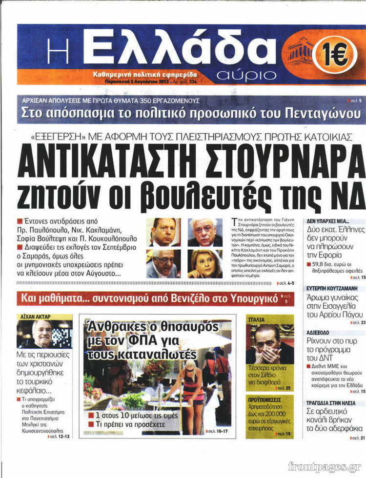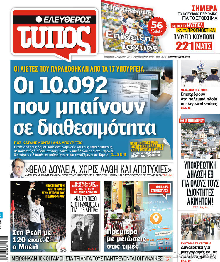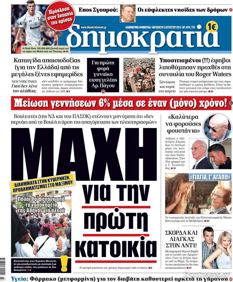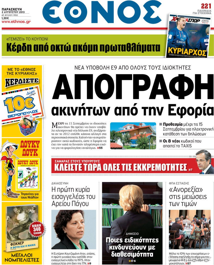 Οι πολιτικές εφημερίδες Enikos Newsroom 10:28, Παρασκευή 02 Αυγούστου 2013 Media Οι πολιτικές εφημερίδες ΕΦΗΜΕΡΙΔΕΣ ΠΟΛΙΤΙΚΕΣ ΕΦΗΜΕΡΙΔΕΣ Μοιράσου το: σχολίασε κι εσύ (0 σχόλια) Ακολουθήστε το enikos.gr στο Google News και μάθετε πρώτοι όλες τις ειδήσεις Δείτε όλες τις τελευταίες ειδήσεις από την Ελλάδα και τον Κόσμο στο enikos.gr Ειδήσεις Ροή Ειδήσεων 4 ώρες πριν Υπόθεση Έπσταϊν: Το Υπουργείο Δικαιοσύνης δημοσιοποίησε μια σειρά από εξαιρετικά επεξεργασμένα αρχεία – «Λείπουν τα πιο σημαντικά έγγραφα», λένε οι Δημοκρατικοί 44 λεπτά πριν Γιορτές με μπλόκα για τους αγρότες: Ανοίγουν διόδια και μοιράζουν προϊόντα στους ταξιδιώτες 1 ώρα πριν Εξαφάνιση 33χρονου γιατρού στην Κρήτη: «Άναψα τα φώτα, τρόμαξε και άρχισε να τρέχει στα χωράφια» – Η τελευταία διαδρομή και η μαρτυρία «κλειδί» 3 ώρες πριν Ο «χάρτης» με τις αυξήσεις και τις φοροελαφρύνσεις του 2026 – Ποιοι και πόσα κερδίζουν 1 ώρα πριν Τα αρχεία του Έπσταϊν αποκαλύπτουν φωτογραφία του έκπτωτου πρίγκιπα Άντριου – Είναι ξαπλωμένος στην αγκαλιά 5 γυναικών 1 ώρα πριν Μία νέα «χρυσή» περίοδος αρχίζει για 3 ζώδια από σήμερα – «Μία αναπάντεχη ευκαιρία οδηγεί στην επιτυχία» 5 ώρες πριν Αυγά: Πόσα μπορείτε να τρώτε την ημέρα με ασφάλεια για μέγιστη πρόσληψη πρωτεΐνης 3 ώρες πριν Αρχαιολόγοι ανακάλυψαν σε χωράφι απεικόνιση 600 ετών ενός Αγίου – Τα στοιχεία που δείχνουν ότι μαρτύρησε 2 ώρες πριν Αγχώνεται για το χριστουγεννιάτικο δώρο που πήρε στην πλούσια σύντροφό του – «Φοβάμαι πως θα το βρει φθηνιάρικο, φοράει βραχιόλια Cartier» 2 λεπτά πριν Τα Labubu «μετακομίζουν» στο Χόλιγουντ: Η Sony Pictures ετοιμάζει live-action ταινία με τον σκηνοθέτη του «Wonka» 9 λεπτά πριν Νέες ταυτότητες: Μεγάλη αναμονή για ραντεβού στην Αττική – Τέλος τα ταξίδια εκτός Ελλάδος από τον Αύγουστο για όσους δεν έχουν αλλάξει 18 λεπτά πριν Οι 7 φράσεις που δεν λένε ποτέ οι συναισθηματικά έξυπνοι άνθρωποι κατά τη διάρκεια ενός καβγά 21 λεπτά πριν Τηλεθέαση (19/12): Ανατροπές και πρωτιές στην πρωινή ζώνη 29 λεπτά πριν Πώς η κλιματική αλλαγή επηρεάζει εγκύους και βρέφη – Οι επιπτώσεις των υψηλών θερμοκρασιών ENIKOS NETWORK Είστε μόνιμα απρόσεκτοι; 3 σημάδια που δείχνουν ότι μπορεί να είναι σύμπτωμα πάθησης Πόσα κιλά παίρνουμε πραγματικά τα Χριστούγεννα, σύμφωνα με την επιστήμη – Πώς να το αποτρέψουμε; Επίδομα παιδιού: Τι αλλάζει από το 2026 – Το όφελος από τις φορολογικές ελαφρύνσεις Mega χριστουγεννιάτικη φορολοταρία: «Κλείδωσε» η ημερομηνία για την κλήρωση – Ερωτήσεις και απαντήσεις Χαρτογραφώντας το «σημείο χωρίς επιστροφή»: Για πρώτη φορά αποκαλύπτεται με λεπτομέρεια το ακανθώδες όριο της ατμόσφαιρας τ... Η Google καταργεί τη λειτουργία «dark web report» – Πώς θα μπορούν οι χρήστες να διαγράφουν τα δεδομένα τους περισσότερα 09:30 , Σάββατο 20 Δεκεμβρίου 2025 «Porto Leone: Στη γειτονιά με τα κόκκινα φανάρια» – Ο Χρόνης αποκαλύπτει στην Αλεξάνδρα το μυστικό για το παιδί της Λένας Η μεγάλη δραματική σειρά του Apha «Porto Leone: Στη γειτονιά με τα κόκκινα φανάρια» μας μεταφέ... 08:14 , Σάββατο 20 Δεκεμβρίου 2025 Τρομεροί γονείς: Η Μαρία Καβογιάννη εισβάλλει στο σπίτι της οικογένειας Στεφανίδη Όσα θα δούμε στο νέο διπλό επεισόδιο της σειράς «Τρομεροί γονείς», σήμερα Σάββατο 20 Δεκεμβρίο... 05:48 , Σάββατο 20 Δεκεμβρίου 2025 Οι οικονομικές εφημερίδες 20/12/2025 Διαβάστε τα πρωτοσέλιδα από τις οικονομικές εφημερίδες, σήμερα 20/12/2025. 05:43 , Σάββατο 20 Δεκεμβρίου 2025 Οι αθλητικές εφημερίδες 20/12/2025 Διαβάστε τα πρωτοσέλιδα από τις αθλητικές 