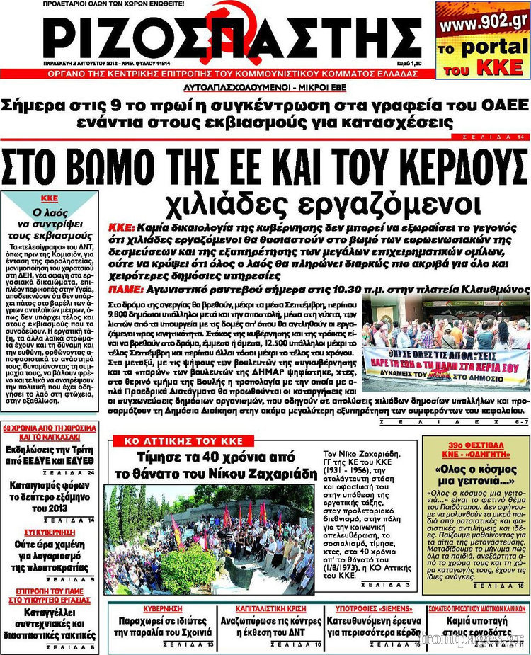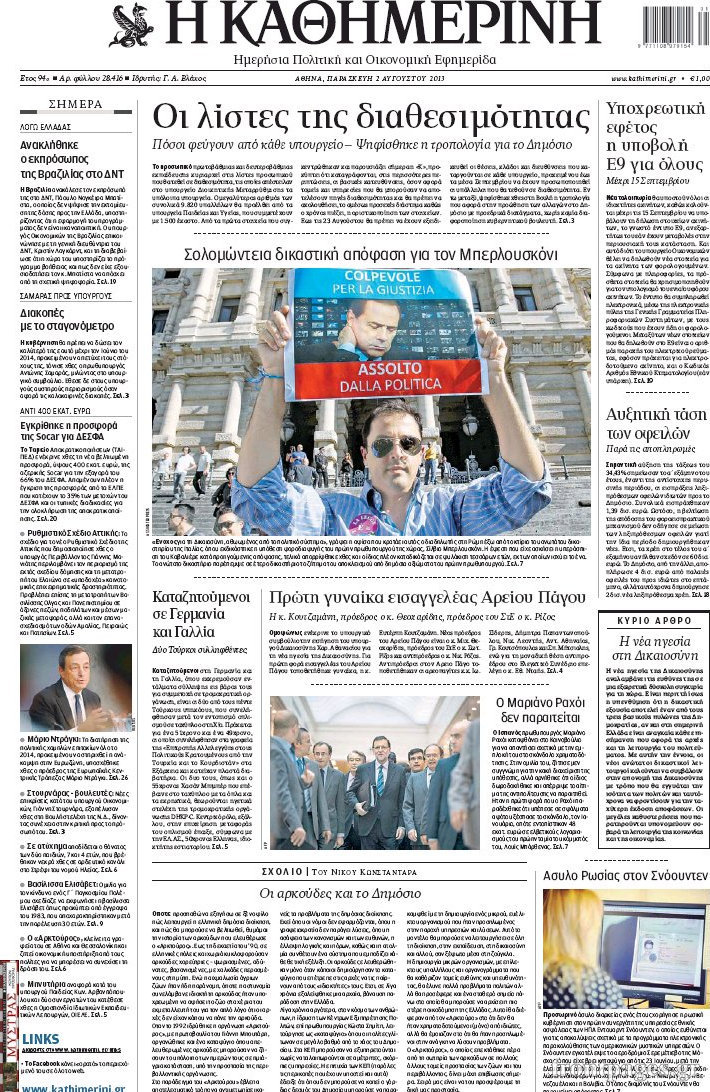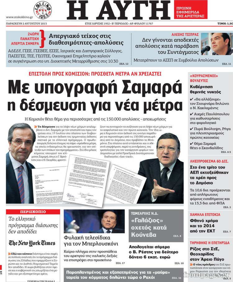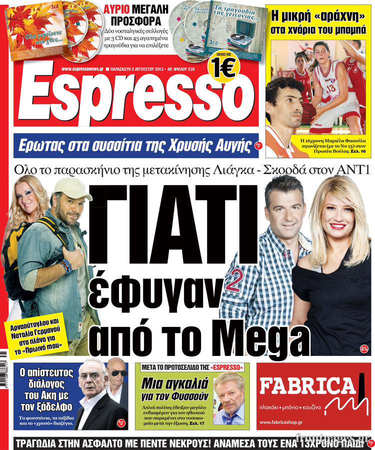 Οι πολιτικές εφημερίδες Enikos Newsroom 10:28, Παρασκευή 02 Αυγούστου 2013 Media Οι πολιτικές εφημερίδες ΕΦΗΜΕΡΙΔΕΣ ΠΟΛΙΤΙΚΕΣ ΕΦΗΜΕΡΙΔΕΣ Μοιράσου το: σχολίασε κι εσύ (0 σχόλια) Ακολουθήστε το enikos.gr στο Google News και μάθετε πρώτοι όλες τις ειδήσεις Δείτε όλες τις τελευταίες ειδήσεις από την Ελλάδα και τον Κόσμο στο enikos.gr Ειδήσεις Ροή Ειδήσεων 4 ώρες πριν Υπόθεση Έπσταϊν: Το Υπουργείο Δικαιοσύνης δημοσιοποίησε μια σειρά από εξαιρετικά επεξεργασμένα αρχεία – «Λείπουν τα πιο σημαντικά έγγραφα», λένε οι Δημοκρατικοί 44 λεπτά πριν Γιορτές με μπλόκα για τους αγρότες: Ανοίγουν διόδια και μοιράζουν προϊόντα στους ταξιδιώτες 1 ώρα πριν Εξαφάνιση 33χρονου γιατρού στην Κρήτη: «Άναψα τα φώτα, τρόμαξε και άρχισε να τρέχει στα χωράφια» – Η τελευταία διαδρομή και η μαρτυρία «κλειδί» 3 ώρες πριν Ο «χάρτης» με τις αυξήσεις και τις φοροελαφρύνσεις του 2026 – Ποιοι και πόσα κερδίζουν 1 ώρα πριν Τα αρχεία του Έπσταϊν αποκαλύπτουν φωτογραφία του έκπτωτου πρίγκιπα Άντριου – Είναι ξαπλωμένος στην αγκαλιά 5 γυναικών 1 ώρα πριν Μία νέα «χρυσή» περίοδος αρχίζει για 3 ζώδια από σήμερα – «Μία αναπάντεχη ευκαιρία οδηγεί στην επιτυχία» 5 ώρες πριν Αυγά: Πόσα μπορείτε να τρώτε την ημέρα με ασφάλεια για μέγιστη πρόσληψη πρωτεΐνης 3 ώρες πριν Αρχαιολόγοι ανακάλυψαν σε χωράφι απεικόνιση 600 ετών ενός Αγίου – Τα στοιχεία που δείχνουν ότι μαρτύρησε 2 ώρες πριν Αγχώνεται για το χριστουγεννιάτικο δώρο που πήρε στην πλούσια σύντροφό του – «Φοβάμαι πως θα το βρει φθηνιάρικο, φοράει βραχιόλια Cartier» 2 λεπτά πριν Τα Labubu «μετακομίζουν» στο Χόλιγουντ: Η Sony Pictures ετοιμάζει live-action ταινία με τον σκηνοθέτη του «Wonka» 9 λεπτά πριν Νέες ταυτότητες: Μεγάλη αναμονή για ραντεβού στην Αττική – Τέλος τα ταξίδια εκτός Ελλάδος από τον Αύγουστο για όσους δεν έχουν αλλάξει 18 λεπτά πριν Οι 7 φράσεις που δεν λένε ποτέ οι συναισθηματικά έξυπνοι άνθρωποι κατά τη διάρκεια ενός καβγά 21 λεπτά πριν Τηλεθέαση (19/12): Ανατροπές και πρωτιές στην πρωινή ζώνη 29 λεπτά πριν Πώς η κλιματική αλλαγή επηρεάζει εγκύους και βρέφη – Οι επιπτώσεις των υψηλών θερμοκρασιών ENIKOS NETWORK Είστε μόνιμα απρόσεκτοι; 3 σημάδια που δείχνουν ότι μπορεί να είναι σύμπτωμα πάθησης Πόσα κιλά παίρνουμε πραγματικά τα Χριστούγεννα, σύμφωνα με την επιστήμη – Πώς να το αποτρέψουμε; Επίδομα παιδιού: Τι αλλάζει από το 2026 – Το όφελος από τις φορολογικές ελαφρύνσεις Mega χριστουγεννιάτικη φορολοταρία: «Κλείδωσε» η ημερομηνία για την κλήρωση – Ερωτήσεις και απαντήσεις Χαρτογραφώντας το «σημείο χωρίς επιστροφή»: Για πρώτη φορά αποκαλύπτεται με λεπτομέρεια το ακανθώδες όριο της ατμόσφαιρας τ... Η Google καταργεί τη λειτουργία «dark web report» – Πώς θα μπορούν οι χρήστες να διαγράφουν τα δεδομένα τους περισσότερα 09:30 , Σάββατο 20 Δεκεμβρίου 2025 «Porto Leone: Στη γειτονιά με τα κόκκινα φανάρια» – Ο Χρόνης αποκαλύπτει στην Αλεξάνδρα το μυστικό για το παιδί της Λένας Η μεγάλη δραματική σειρά του Apha «Porto Leone: Στη γειτονιά με τα κόκκινα φανάρια» μας μεταφέ... 08:14 , Σάββατο 20 Δεκεμβρίου 2025 Τρομεροί γονείς: Η Μαρία Καβογιάννη εισβάλλει στο σπίτι της οικογένειας Στεφανίδη Όσα θα δούμε στο νέο διπλό επεισόδιο της σειράς «Τρομεροί γονείς», σήμερα Σάββατο 20 Δεκεμβρίο... 05:48 , Σάββατο 20 Δεκεμβρίου 2025 Οι οικονομικές εφημερίδες 20/12/2025 Διαβάστε τα πρωτοσέλιδα από τις οικονομικές εφημερίδες, σήμερα 20/12/2025. 05:43 , Σάββατο 20 Δεκεμβρίου 2025 Οι αθλητικές εφημερίδες 20/12/2025 Διαβάστε τα πρωτοσέλιδα από τις αθλητικές 
