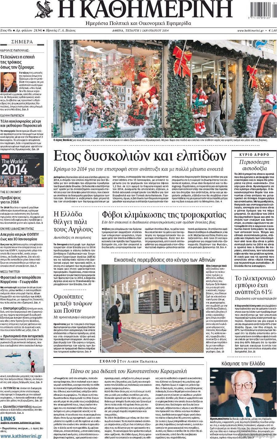 Οι πολιτικές εφημερίδες Enikos Newsroom 08:56, Τετάρτη 01 Ιανουαρίου 2014 Media Οι πολιτικές εφημερίδες ΕΦΗΜΕΡΙΔΕΣ ΠΟΛΙΤΙΚΕΣ ΕΦΗΜΕΡΙΔΕΣ ΠΡΩΤΟΣΕΛΙΔΑ Μοιράσου το: σχολίασε κι εσύ (0 σχόλια) Ακολουθήστε το enikos.gr στο Google News και μάθετε πρώτοι όλες τις ειδήσεις Δείτε όλες τις τελευταίες ειδήσεις από την Ελλάδα και τον Κόσμο στο enikos.gr Ειδήσεις Ροή Ειδήσεων 47 λεπτά πριν Πώς δρούσε το κύκλωμα που διακινούσε ναρκωτικά σε σχολεία – Υπέβαλαν σε βασανιστήρια όσους δεν τηρούσαν τους «κανόνες πειθαρχίας» 1 ώρα πριν Αγρότες: Γιορτές στα μπλόκα με ανοιχτά διόδια – Δικογραφία στα Ιωάννινα για το σήκωμα των μπαρών 5 ώρες πριν Αρχεία Έπσταϊν: Οι συγκλονιστικές φωτογραφίες – Ο Μάικλ Τζάκσον, ο Μικ Τζάγκερ και ο Κέβιν Σπέισι ανάμεσα στους διάσημους που απεικονίζονται 3 ώρες πριν Βέλγιο: Άγνωστοι έριξαν κόκκινη μπογιά στο προξενείο της Πολωνίας στις Βρυξέλλες 2 ώρες πριν ΕΛΑΣ: Συνελήφθησαν Υπαρχιπυροσβέστης και δύο ακόμη άτομα για κατοχή και διακίνηση ναρκωτικών ουσιών – Η καταγγελία και ο τιμοκατάλογος 1 ώρα πριν Η τύχη χαμογελά σε 3 ζώδια έως τις 28 Δεκεμβρίου – «Προσέξτε τις επιλογές σας και η επιμονή σας θα ανταμειφθεί» 6 ώρες πριν Διαιτολόγος αποκαλύπτει 9 πρωινές συνήθειες που «λιώνουν» το κοιλιακό λίπος – «Υποστηρίζουν την υγιεινή απώλεια βάρους» 7 ώρες πριν Οι 7 φράσεις που δεν λένε ποτέ οι συναισθηματικά έξυπνοι άνθρωποι κατά τη διάρκεια ενός καβγά 9 ώρες πριν Enerwave: Το νέο «ρεύμα» στη λιανική ενέργειας που αλλάζει την εμπειρία του καταναλωτή 7 λεπτά πριν Αττική: Εξαρθρώθηκε εγκληματική οργάνωση που έκλεβε οχήματα, τα παραποιούσε και τα μεταπωλούσε σε πολίτες – Πώς δρούσε το κύκλωμα 15 λεπτά πριν Κωνσταντίνος Αργυρός: «Δεν θέλω να ασχοληθώ με την πολιτική σε αυτή τη φάση – Μου έχουν γίνει προτάσεις» 24 λεπτά πριν Σέρρες: Διέρρηξαν διαμέρισμα και «βούτηξαν» ρολόγια συνολικής αξίας 15.000 ευρώ – 3 συλλήψεις 32 λεπτά πριν Κουίζ για την παλιά Αθήνα: Αναγνωρίζετε την συνοικία; Είναι από τις πιο γνωστές 40 λεπτά πριν Ζελένσκι: Οι Αμερικανοί πρότειναν συνάντηση Ουκρανίας, ΗΠΑ, Ρωσίας στο Μαϊάμι ENIKOS NETWORK Η αποχή από την αναπαραγωγή παρατείνει τη ζωή στα ζώα, σύμφωνα με μελέτη – Τι ισχύει για τους ανθρώπους; Σημαντικές επαφές στις ΗΠΑ είχε ο υπουργός Υγείας Άδωνις Γεωργιάδης Στα ύψη ο χρυσός – Νέο ρεκόρ στην τιμή της λίρας, πόσο πωλείται Τέλη κυκλοφορίας 2026: Προσοχή στην προθεσμία εξόφλησής τους – Πώς διαμορφώνονται τα πρόστιμα σε περίπτωση καθυστέρησης Χαρτογραφώντας το «σημείο χωρίς επιστροφή»: Για πρώτη φορά αποκαλύπτεται με λεπτομέρεια το ακανθώδες όριο της ατμόσφαιρας τ... Η Google καταργεί τη λειτουργία «dark web report» – Πώς θα μπορούν οι χρήστες να διαγράφουν τα δεδομένα τους περισσότερα 14:04 , Σάββατο 20 Δεκεμβρίου 2025 Η Realnews αυτής της Κυριακής (21/12/2025) Με τίτλο: «Ασπίδα προστασίας για την Ελλάδα» κυκλοφορεί, αυτήν την Κυριακή, η Realnews. Σημαντ... 12:53 , Σάββατο 20 Δεκεμβρίου 2025 Να μ’ αγαπάς: Το παρελθόν έρχεται στο φως – Καταιγιστικές εξελίξεις στα τελευταία επεισόδια του 2025 Ο Άγγελος αποκαλύπτεται, η Φωτεινή ανησυχεί για τον Λευτέρη και η Ζωή έρχεται αντιμέτωπη με το... 11:41 , Σάββατο 20 Δεκεμβρίου 2025 «Η αγάπη δεν χάνεται ποτέ»: Η μικρού μήκους ταινία κινουμένων σχεδίων που θέτει ερωτήματα για τη ζωή και τον θάνατο Ο θάνατος είναι ένα από τα πιο σκληρά θέματα που καλείται να διαχειριστεί κάποιος στη διάρκεια... 09:30 , Σάββατο 20 Δεκεμβρίου 2025 «Porto Leone: Στη γειτονιά με τα κόκκινα φανάρια» – Ο Χ