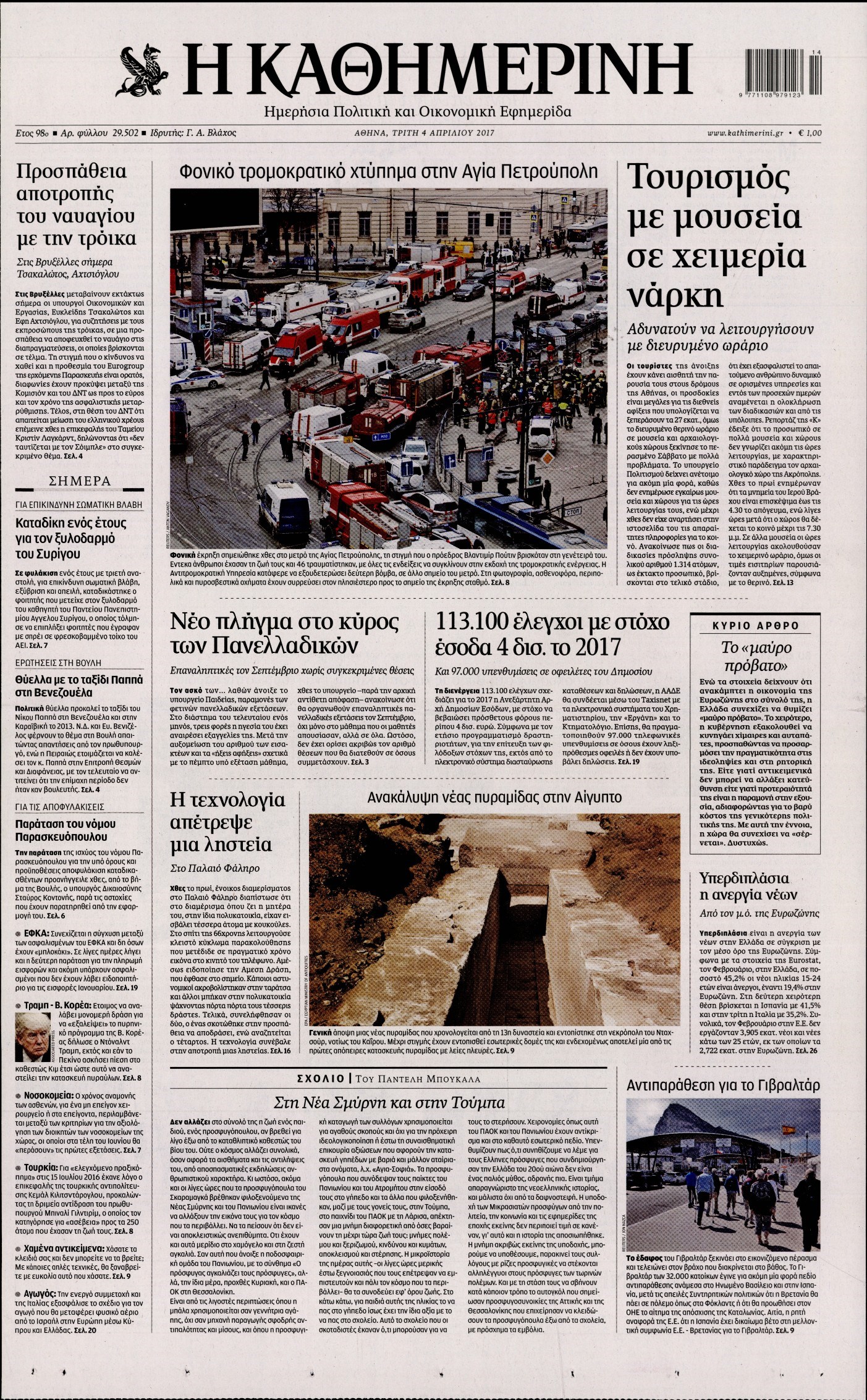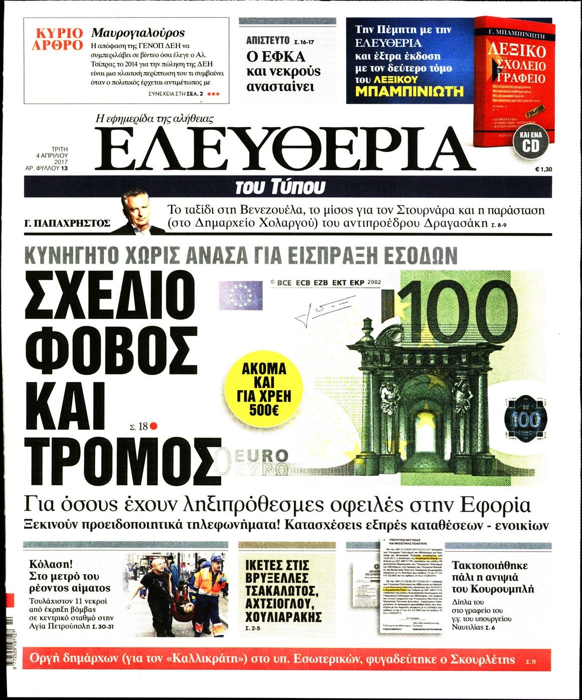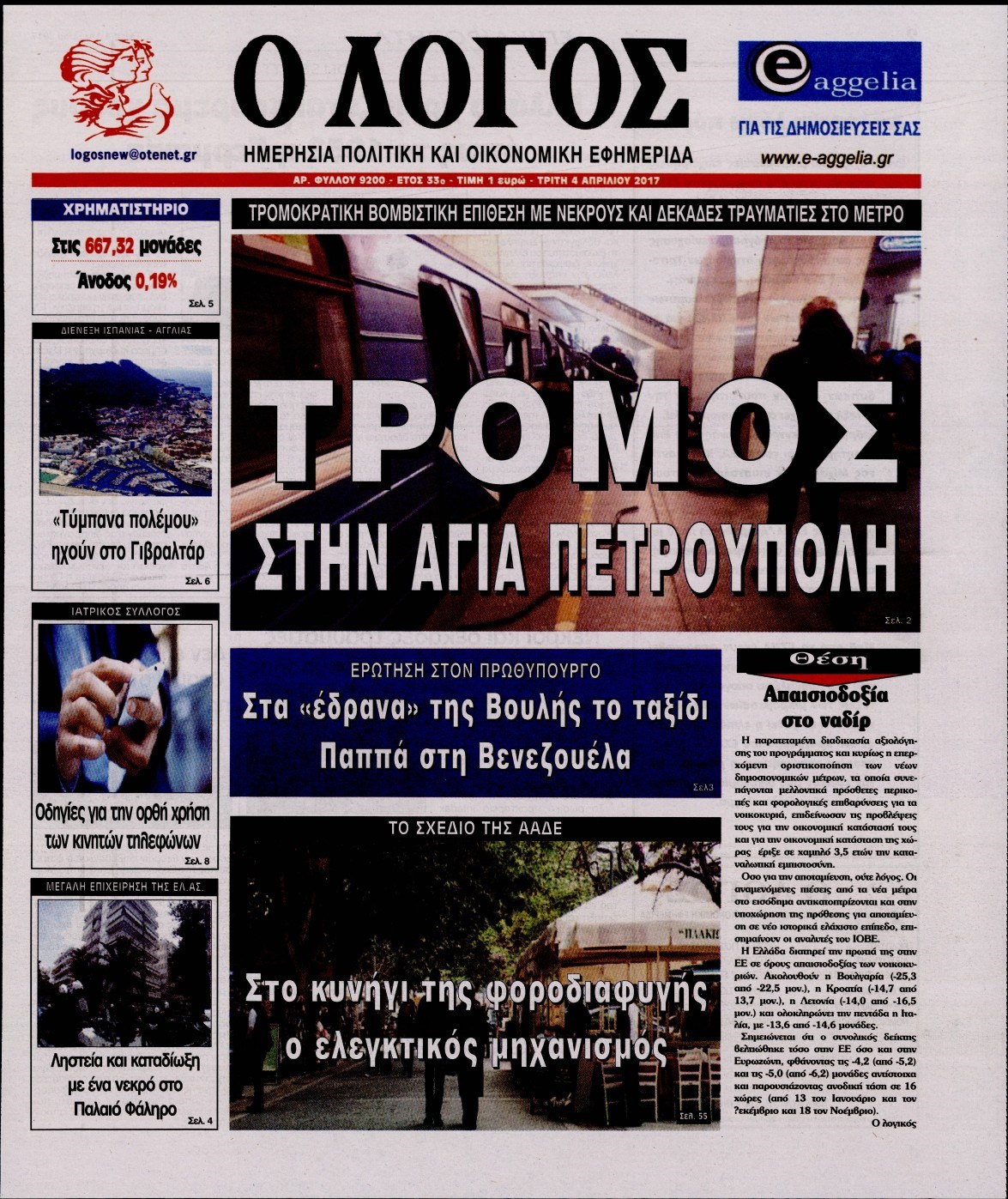Οι πολιτικές εφημερίδες 4/4/2017 Enikos Newsroom 00:00, Δευτέρα 01 Ιανουαρίου 0001 Media Διαβάστε τα σημερινά πρωτοσέλιδα των πολιτικών εφημερίδων: ΠΟΛΙΤΙΚΕΣ ΕΦΗΜΕΡΙΔΕΣ ΠΡΩΤΟΣΕΛΙΔΑ Μοιράσου το: σχολίασε κι εσύ (0 σχόλια) Ακολουθήστε το enikos.gr στο Google News και μάθετε πρώτοι όλες τις ειδήσεις Δείτε όλες τις τελευταίες ειδήσεις από την Ελλάδα και τον Κόσμο στο enikos.gr Ειδήσεις Ροή Ειδήσεων 4 ώρες πριν Αγρότες: Την Τρίτη η απόφαση για διάλογο ή κλιμάκωση των κινητοποιήσεών τους – Πώς χαρακτηρίζουν τις ανακοινώσεις Τσιάρα και οι επόμενες κινήσεις 4 ώρες πριν Τραμπ για Ουκρανία: «Είμαστε πιο κοντά σε συμφωνία από ποτέ» – «Πολυεθνική δύναμη» προτείνουν οι Ευρωπαίοι 4 ώρες πριν Κυψέλη: Η 16χρονη που μαχαίρωσε την 14χρονη είχε συλληφθεί 3 φορές στο παρελθόν – Έβριζε καθηγητές, έβαζε φωτιές σε κάδους και εκβίαζε συμμαθητές της 4 ώρες πριν Χαλκιδική: Πώς δρούσαν οι αστυνομικοί που συνελήφθησαν για κλήσεις που δεν έκοβαν – Η «ετήσια συνδρομή» για τα μπλόκα της Τροχαίας και οι «δωρεές» 4 ώρες πριν Τρομοκρατική επίθεση στο Σίδνεϊ: Θλίψη για τα 15 θύματα – Οργή στην εβραϊκή κοινότητα που προειδοποιούσε επί δύο χρόνια 5 ώρες πριν Ύπνος: Η αρχαία μορφή άσκησης που αποδεικνύεται αποτελεσματική στην αντιμετώπιση της αϋπνίας, σύμφωνα με μελέτη 6 ώρες πριν Αριθμολογία: Ο τυχερός σας αριθμός, ανάλογα με τον μήνα γέννησής σας 7 ώρες πριν Πώς να μην μαραίνονται γρήγορα τα κομμένα λουλούδια: Το λάθος στην τοποθέτηση του βάζου που πρέπει να αποφεύγετε 4 ώρες πριν Επιστήμονες ίσως έλυσαν το μυστήριο γύρω από τα Χόμπιτ – Νέα έρευνα αποκαλύπτει πώς εξαφανίστηκαν 9 λεπτά πριν Έντι Γαβριηλίδης: «Πούλησα ακριβά σε δημοπρασία το φουστάνι που φόρεσε η Lady Gaga γιατί ξέμεινα από χρήματα» 26 λεπτά πριν Ροντ Στιούαρτ: Εκνευρίστηκε με θεατή στην συναυλία του στην Αθήνα – «Φύγε από την μέση, χαλάς το σόου» 39 λεπτά πριν Μεξικό: Συντριβή μικρού αεροσκάφους – Τουλάχιστον επτά νεκροί 52 λεπτά πριν Serie A: O Γουέσλι Φράνκα επανάφερε τη Ρόμα στις νίκες, 1-0 την Κόμο του Τάσου Δουβίκα 1 ώρα πριν Σεισμός 5,2 Ρίχτερ ανοιχτά της Ζακύνθου ENIKOS NETWORK Πότε το χρόνιο ροχαλητό να αποτελέσει ένδειξη κινδύνου για την καρδιά; Τι λένε οι ειδικοί Μάριος Θεμιστοκλέους: Το ΕΣΥ ενισχύεται, εκσυγχρονίζεται, αλλάζει ΕΒΕΠ για αγροτικές κινητοποιήσεις: Κάθε επιπλέον εβδομάδα προσθέτει περίπου 200 εκατ. ευρώ ζημιά Τι προβλέπει το νομοσχέδιο του υπουργείου Εθνικής Άμυνας – Oι αλλαγές στους μισθούς Σύγχρονος Νοστράδαμος: Προειδοποιεί για «μεγάλο γεγονός» τους επόμενους μήνες που θα συγκλονίσει τη Βρετανία και τον κόσμο Τεστ παρατηρητικότητας: Μπορείτε να βρείτε τις 3 διαφορές στις εικόνες με έναν πιγκουίνο σε 14 δευτερόλεπτα περισσότερα 21:35 , Δευτέρα 15 Δεκεμβρίου 2025 Το Σπίτι Δίπλα Στο Ποτάμι: Η Ιουλία και ο Φωκάς μετακομίζουν στη Ρόδο – Δύο νέοι χαρακτήρες μπαίνουν στη σειρά Δύο νέοι, κομβικοί χαρακτήρες κάνουν την εμφάνισή τους αυτή την εβδομάδα στην αγαπημένη σειρά ... 19:46 , Δευτέρα 15 Δεκεμβρίου 2025 Άγιος έρωτας: Η Χριστίνα λέει την αλήθεια στον Αντρέα Ο Βασίλης δέχεται επίθεση από τους συμμαθητές του, η Αναστασία είναι συντετριμμένη με την απώλ... 18:45 , Δευτέρα 15 Δεκεμβρίου 2025 Συνέδριο «Ελληνικός Τουρισμός 2025, Μια εθνική υπόθεση!» – «Ο Θαλάσσιος Πυλώνας ως Ενιαία Στρατηγική: Συνέργειες σε Λιμάνια, Μαρίνες, Ακτοπλοΐα, Κρουαζιέρα και Yachting» Στο πλαίσιο της τέταρτης και τελευταίας ενότητας του 7ου συνεδρίου «Ελληνικός Τουρισμός 2025, ... 18:13 , Δευτέ